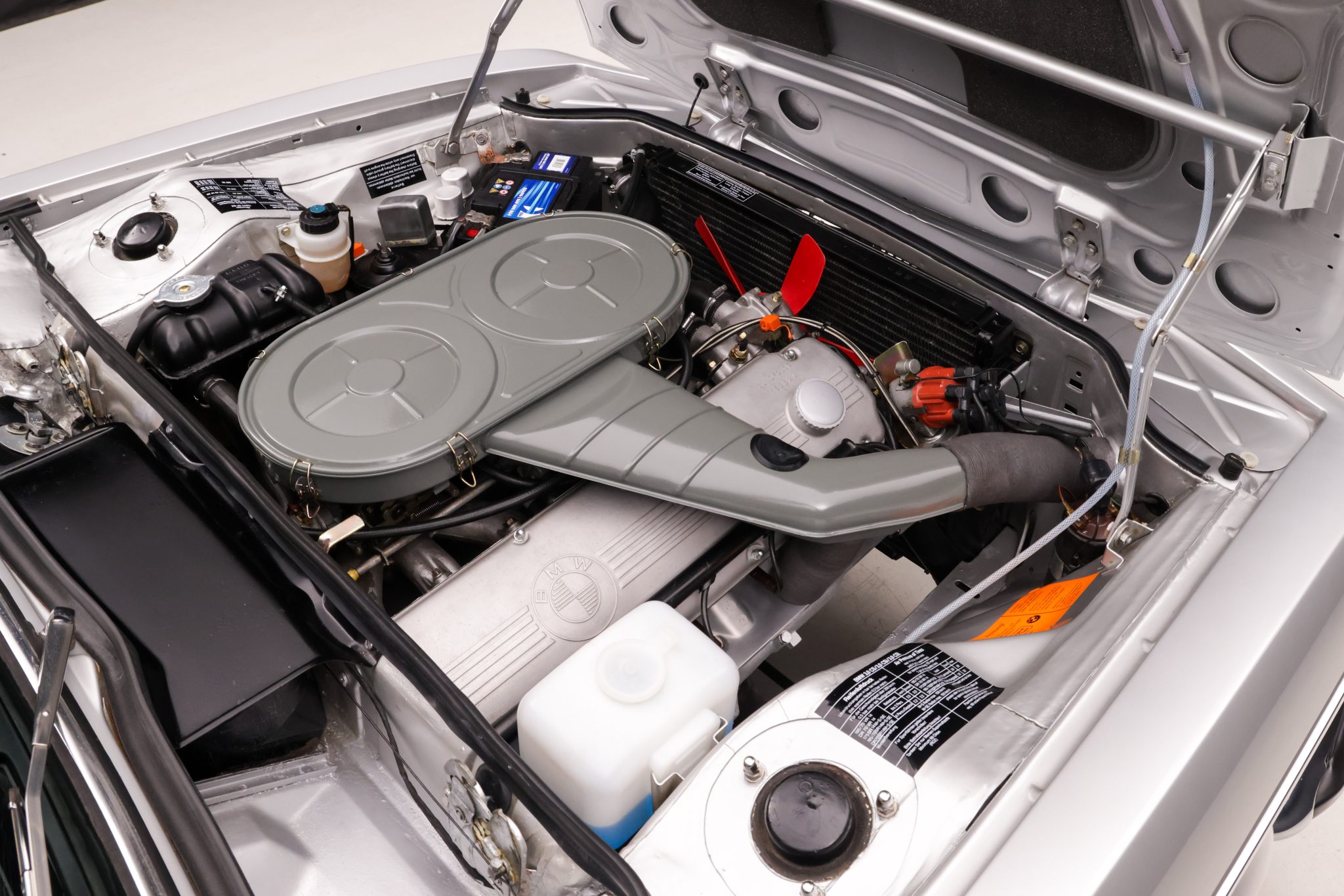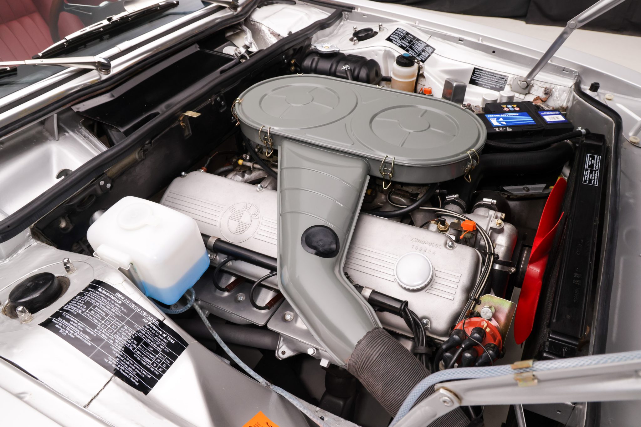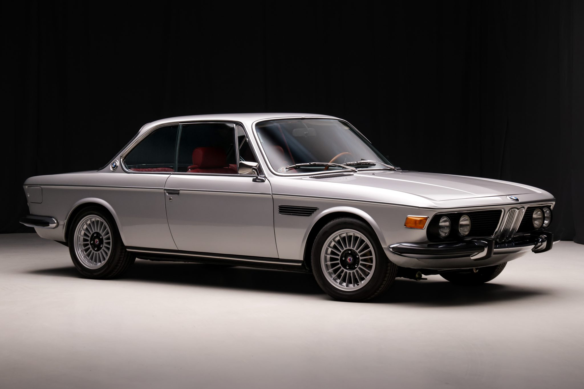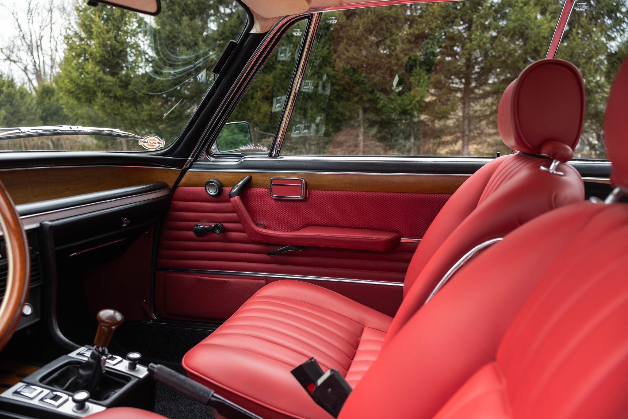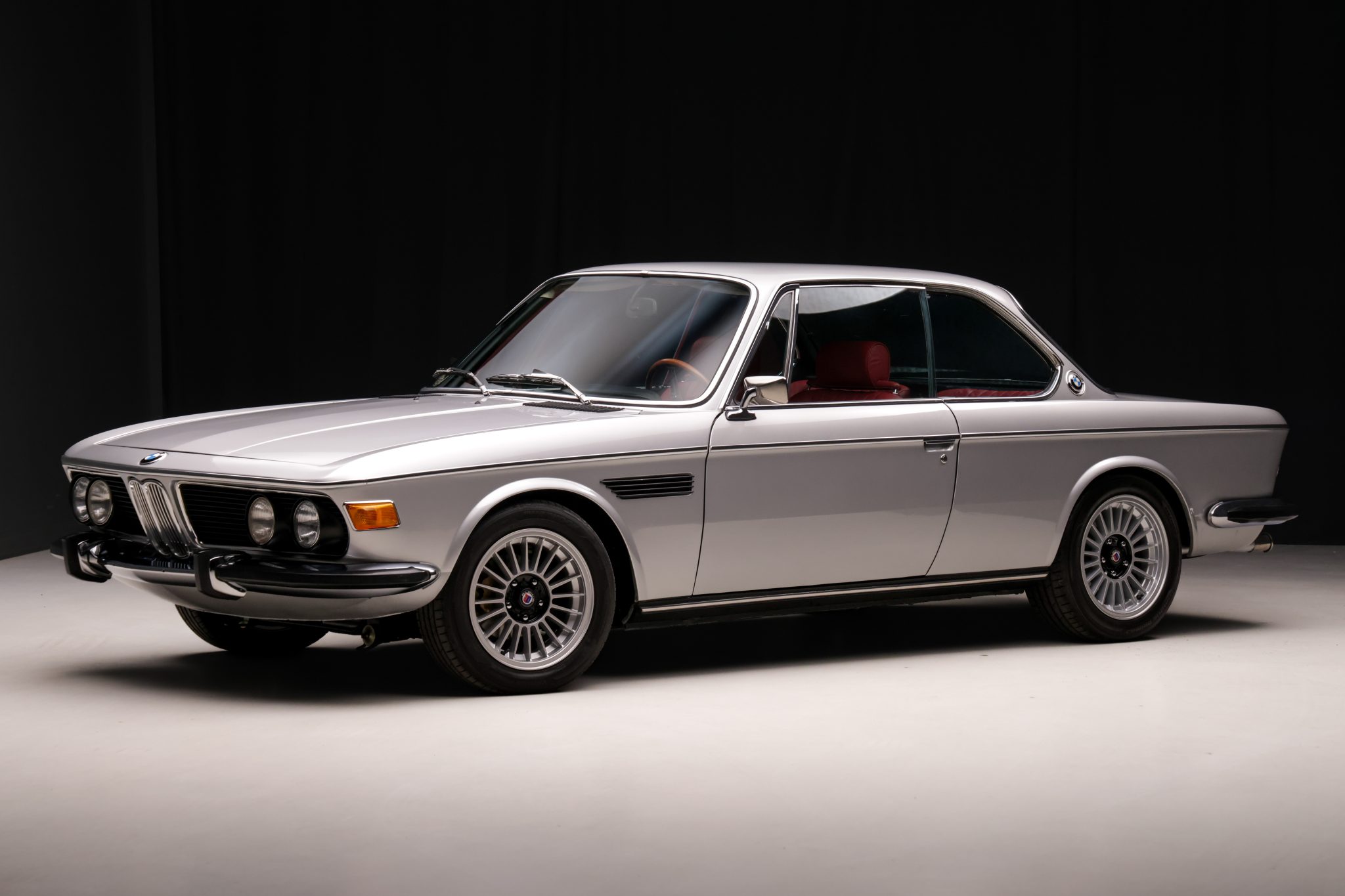 It is finished in Polaris Metallic over red leather and is powered by a 3.0-liter M30 inline-six linked with a four-speed manual transmission. Equipment includes 16″ light alloy Alpina-style wheels, power-operated rear windows, an AM/FM radio, and a heater.