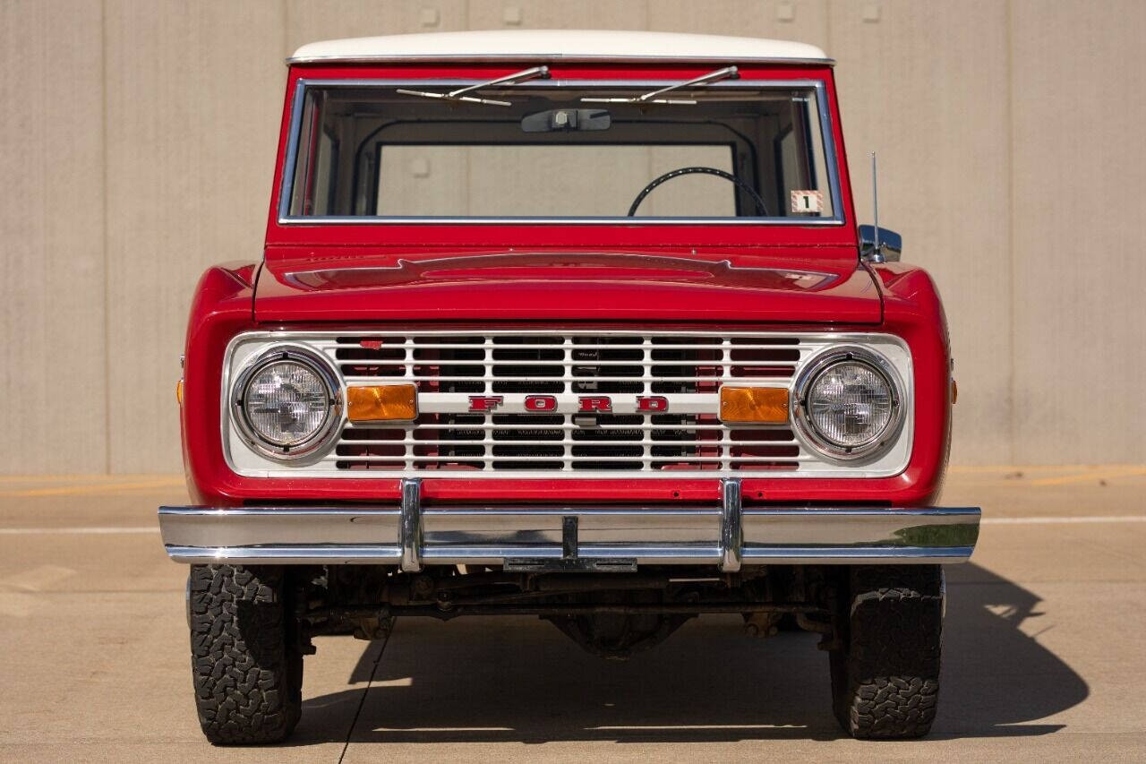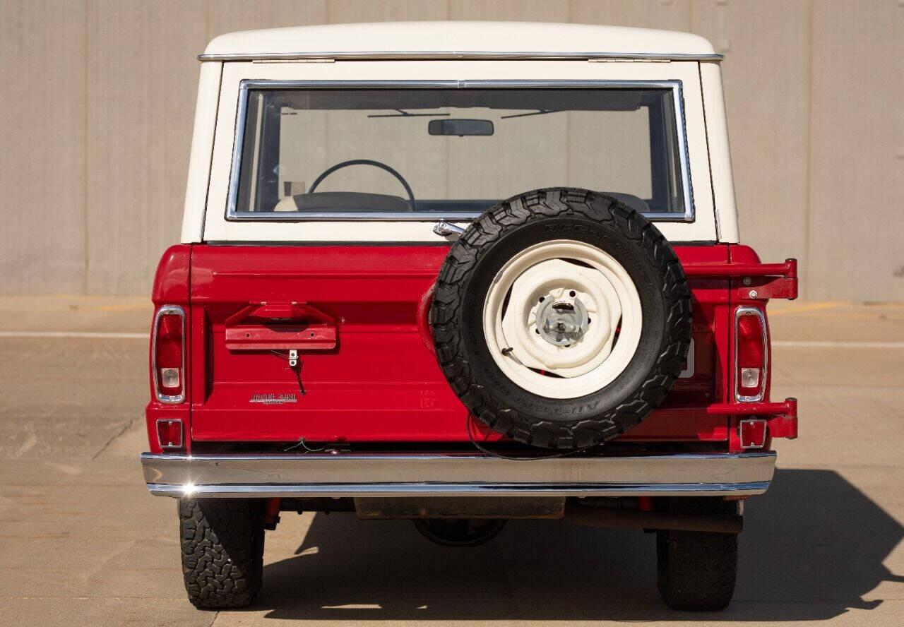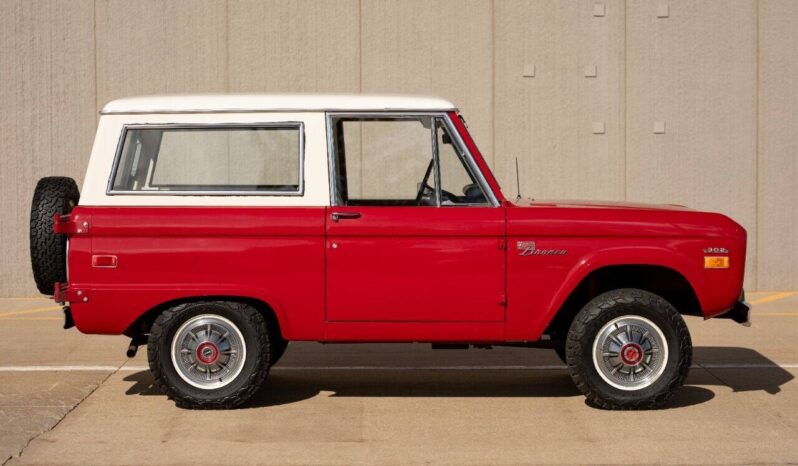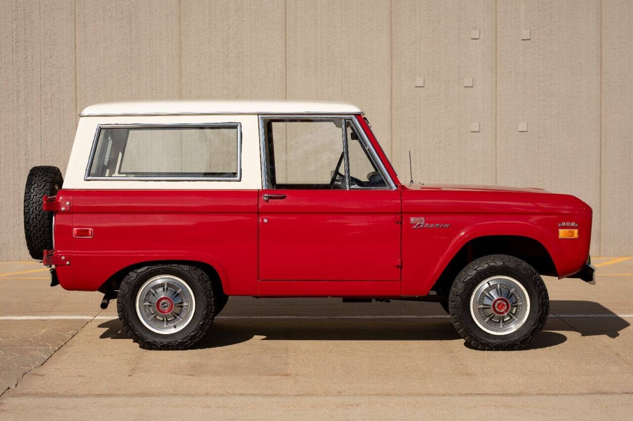 1971 Ford Bronco Sport Wagon 4X4 3 speed manual transmission Low mileage 46,406 very original SUV Mostly Original paint and original interior Very rare Marti works report showing one of 6 made in this configuration Optional Swing away spare tire mount tire, AM radio, Aux fuel tanks, two skid plates, rear bench seat Powered by a 302 V8 with an manual 3 speed transmission and a solid 4 wheel drive system. The original White Hardtop over the original Candy apple Red paint really shines and is the perfect color combination for this unique ride.