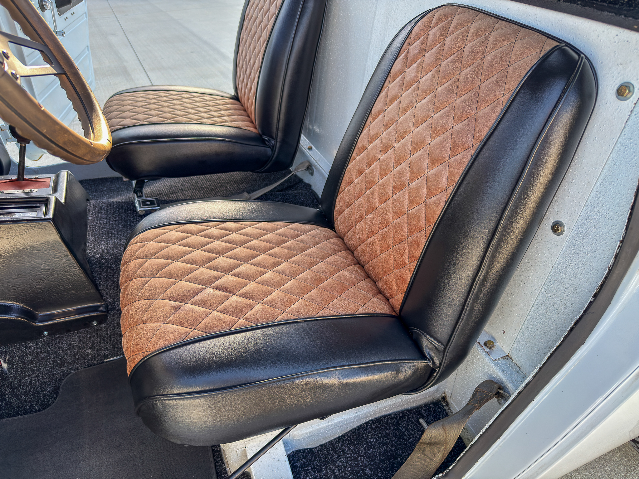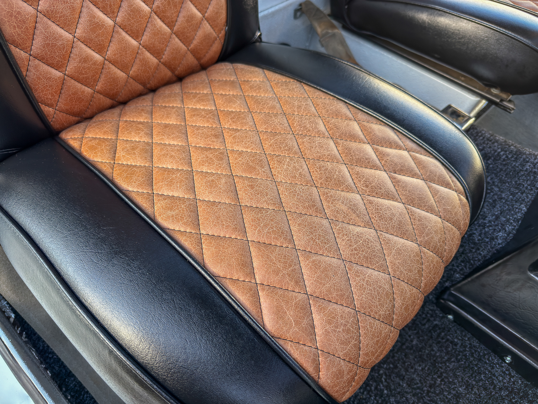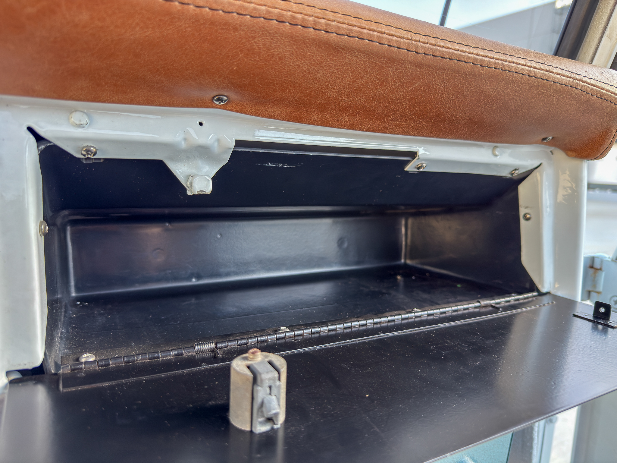 The truck is finished in white with a silver cab top over a custom black and tan interior, and it has an oak wood plank bed floor, a three-speed automatic transmission, dual fuel tanks, 15″ Mickey Thompson wheels, LED headlights, electric windshield wipers, front disc brakes, power steering, and a dual exhaust system with an X-pipe. The 304ci V8 is said to have been bored over .030″ during a 2019 rebuild Power is sent to the rear or all four wheels through a three-speed automatic transmission and a dual-range transfer case. A transmission cooler was installed under current ownership, as well, and differentials with 3.73:1 gearing are said to complete the drivetrain.