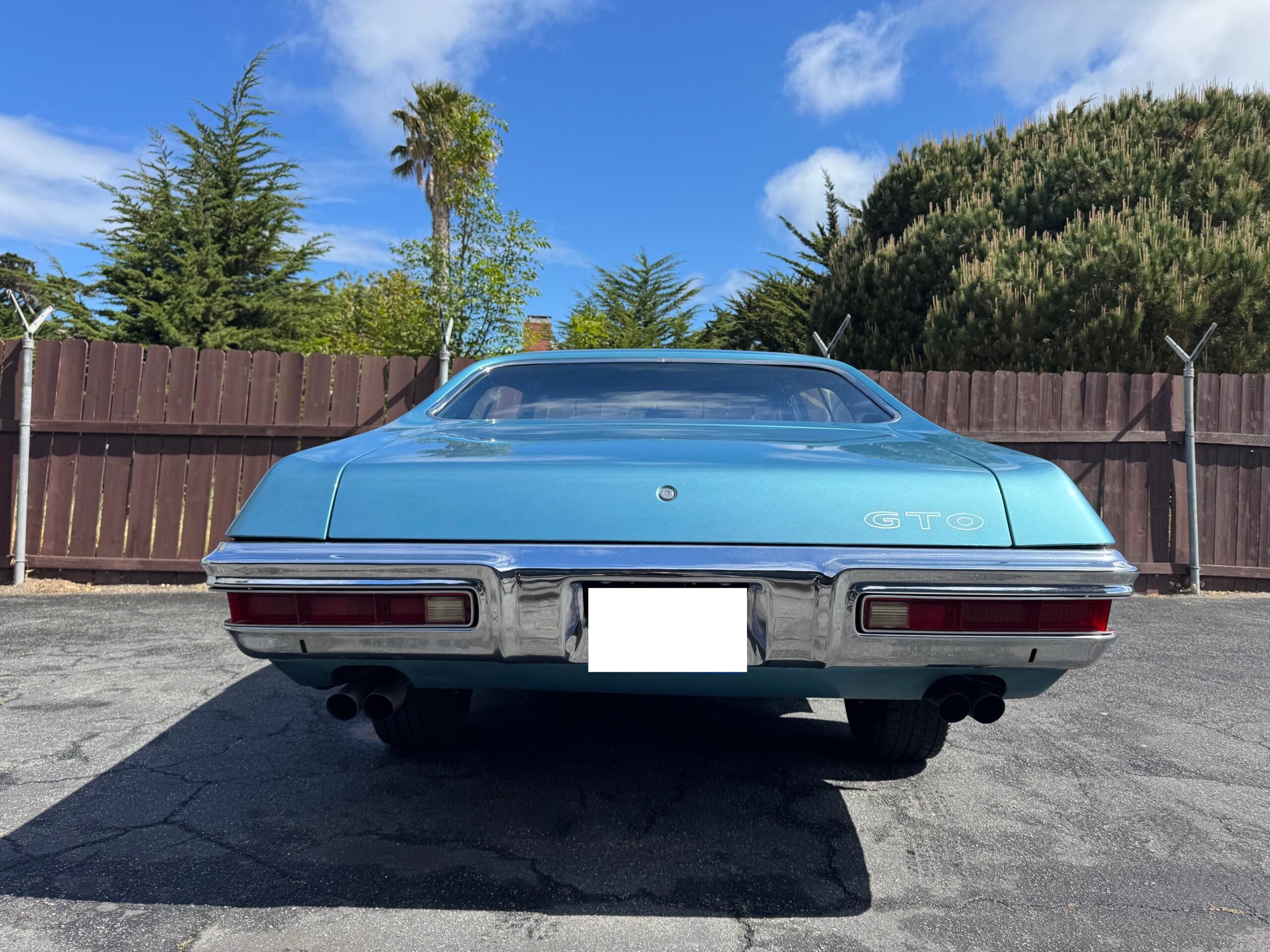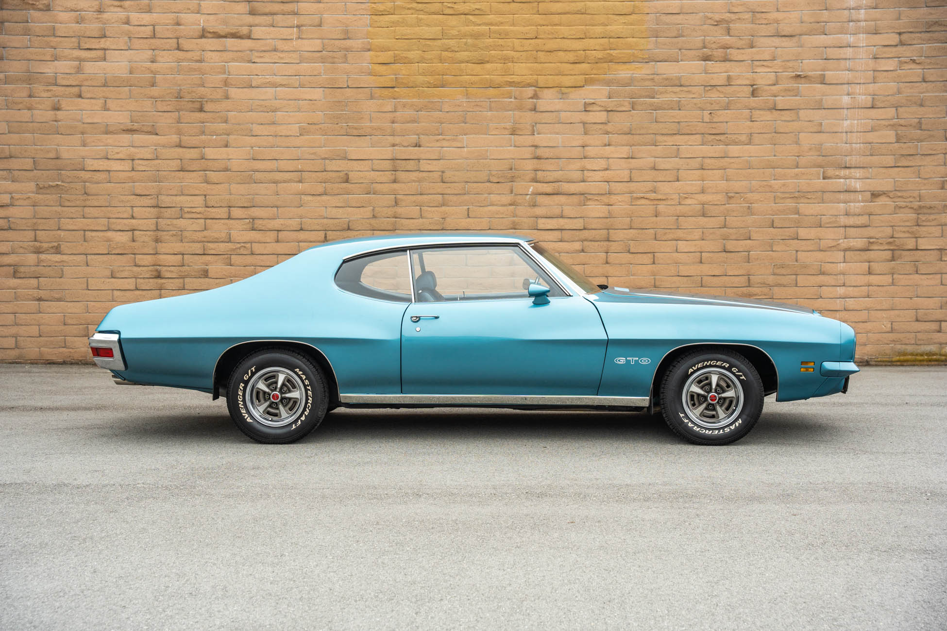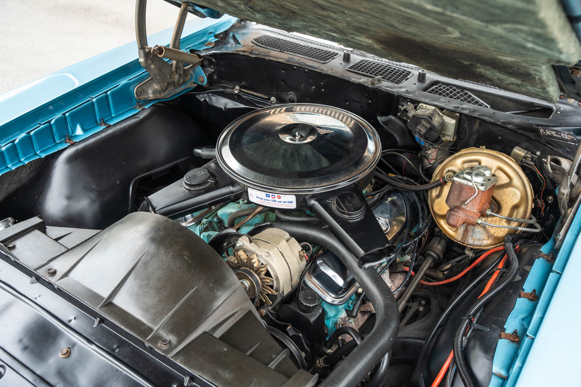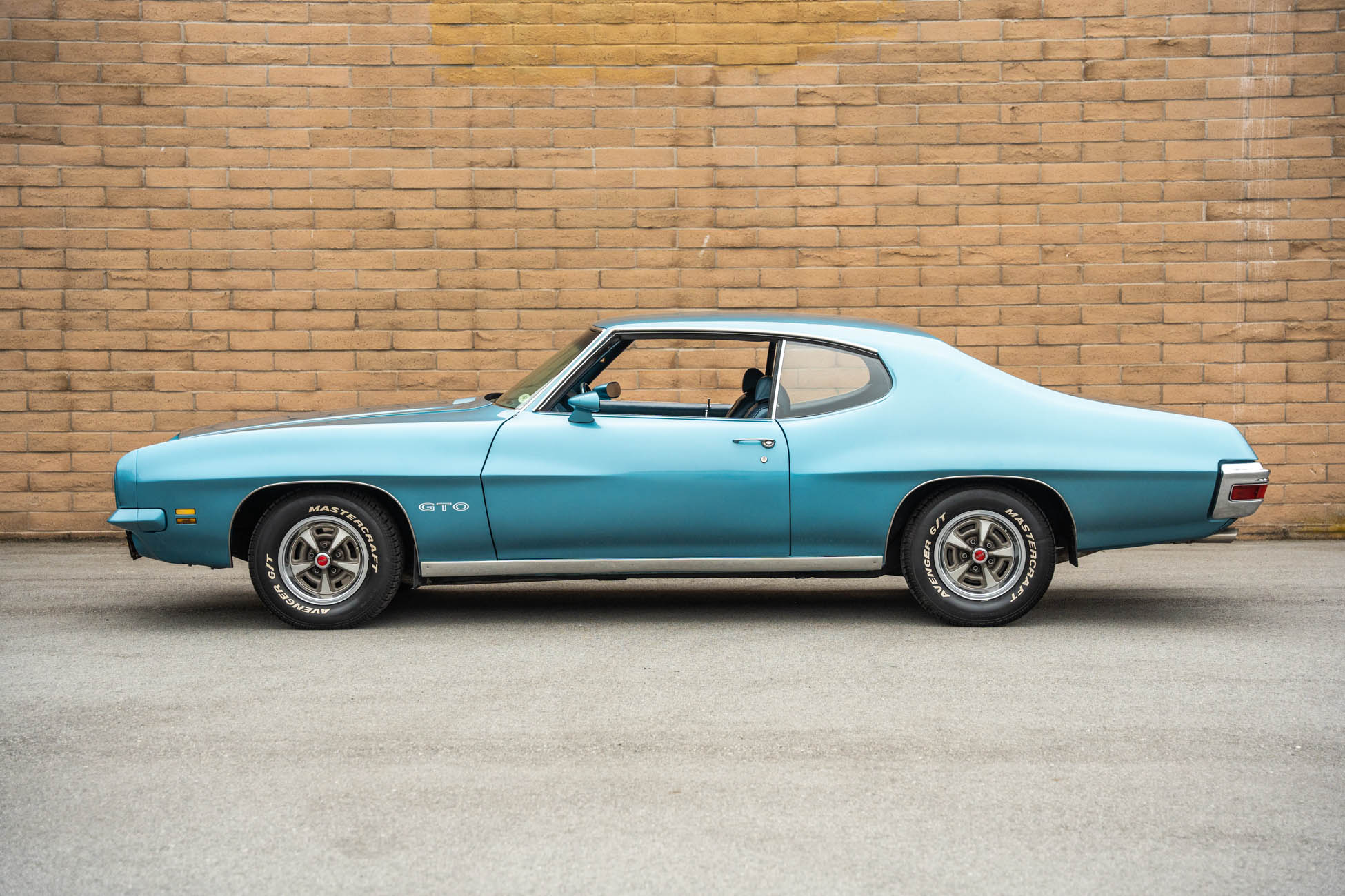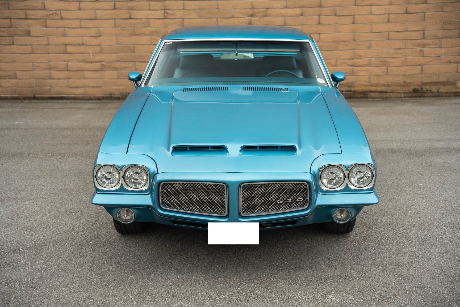 It is powered by a 400ci V8 mated to a Muncie four-speed manual transmission, both of which were overhauled during the refurbishment, and the exterior was repainted in Adriatic Blue. Equipment includes a body-color Endura front bumper, aftermarket headlights, a twin-scoop hood, an H-pipe exhaust system, 14″ Rally II wheels, power-assisted front disc brakes, power steering, a limited-slip differential, and a center console with a Hurst shifter. A high-performance audio system with an Alpine receiver, an amplifier, and a 10″ subwoofer was installed in 2020.