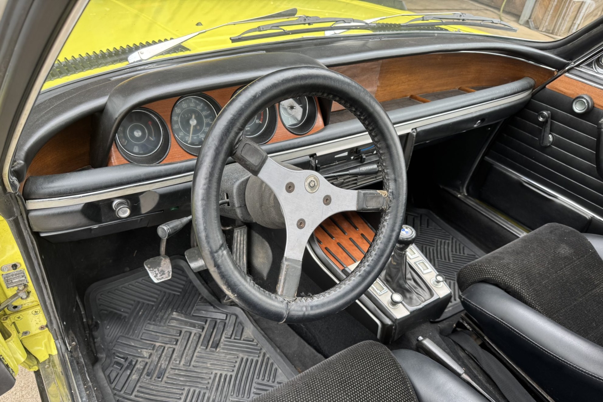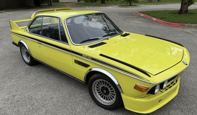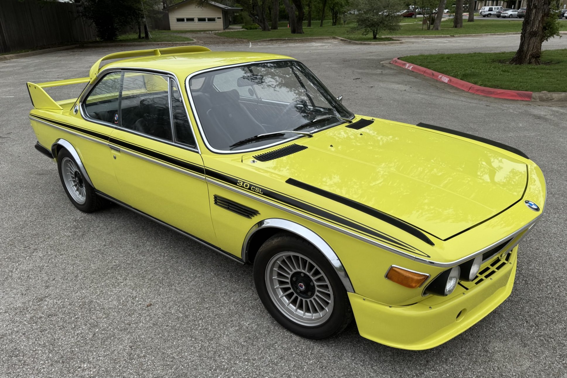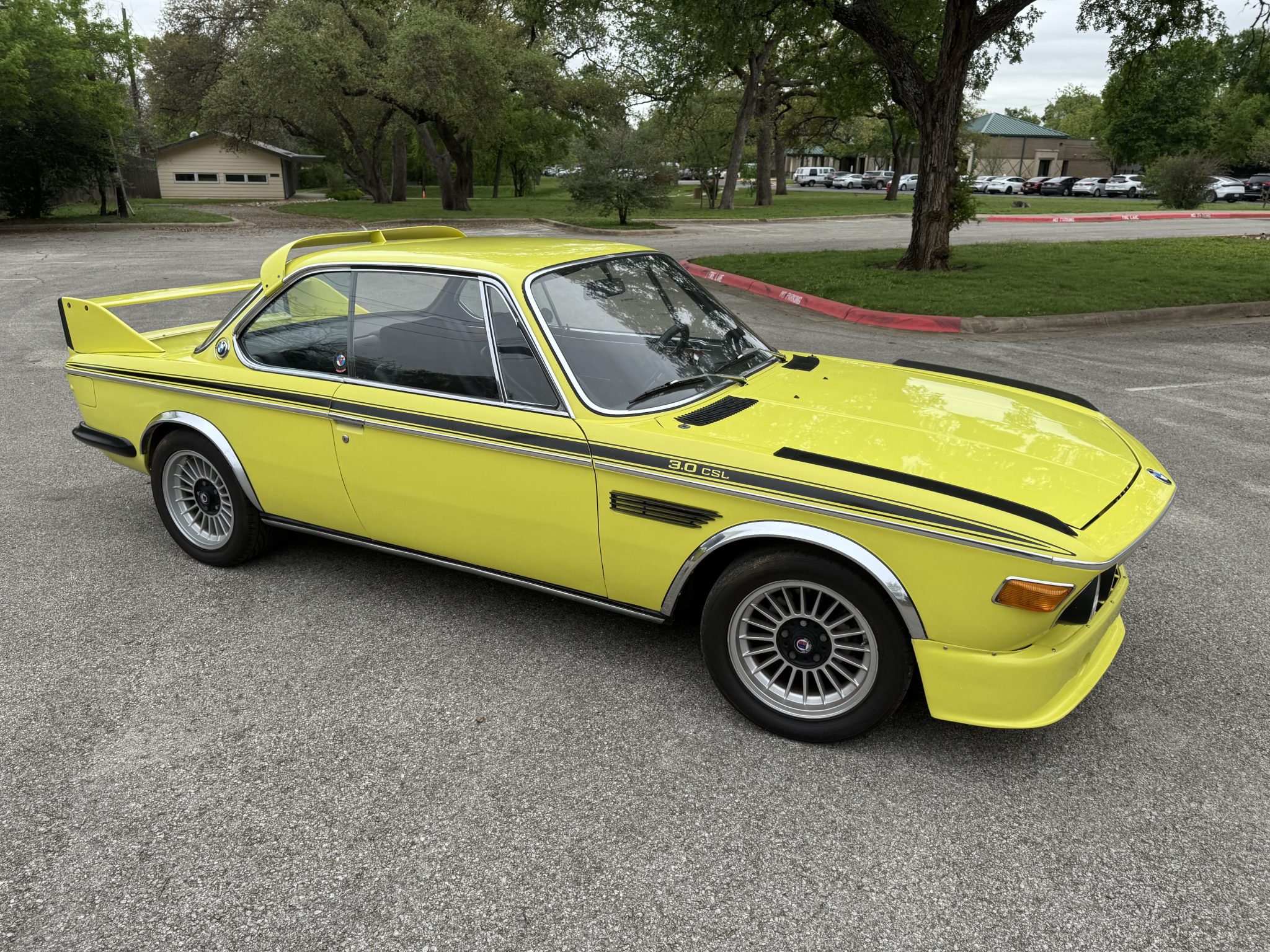 Finished in Golf Yellow over black cloth and vinyl upholstery, it is powered by an M90 inline-six reportedly rebuilt to displace 3.6 liters and outfitted with Bosch L-Jetronic fuel injection and Stahl exhaust headers. Additional modifications include a replacement five-speed manual transmission, 16” Alpina alloy wheels, aero body components from later CSL models, and a stainless steel exhaust system with a MagnaFlow muffler.
