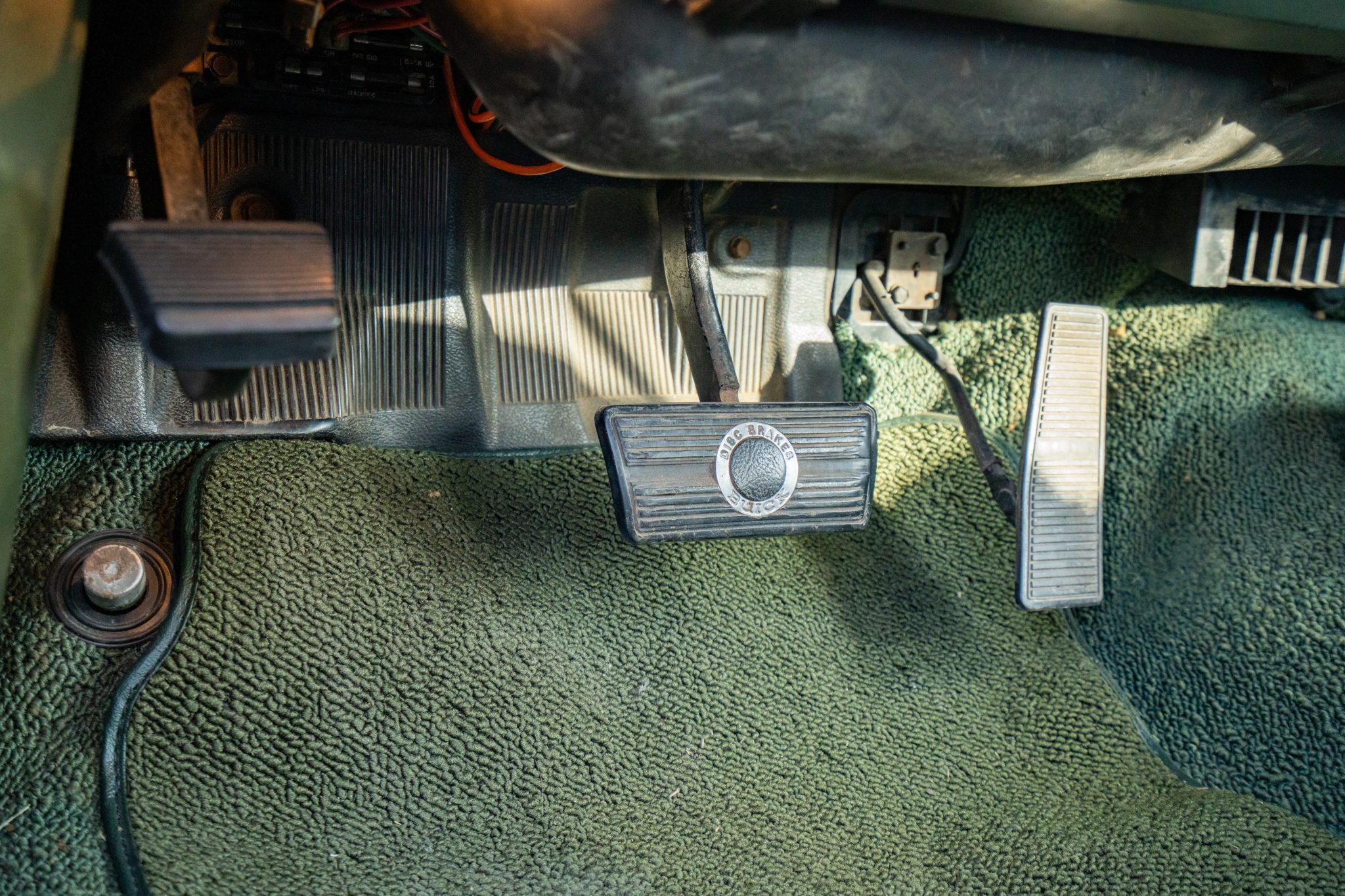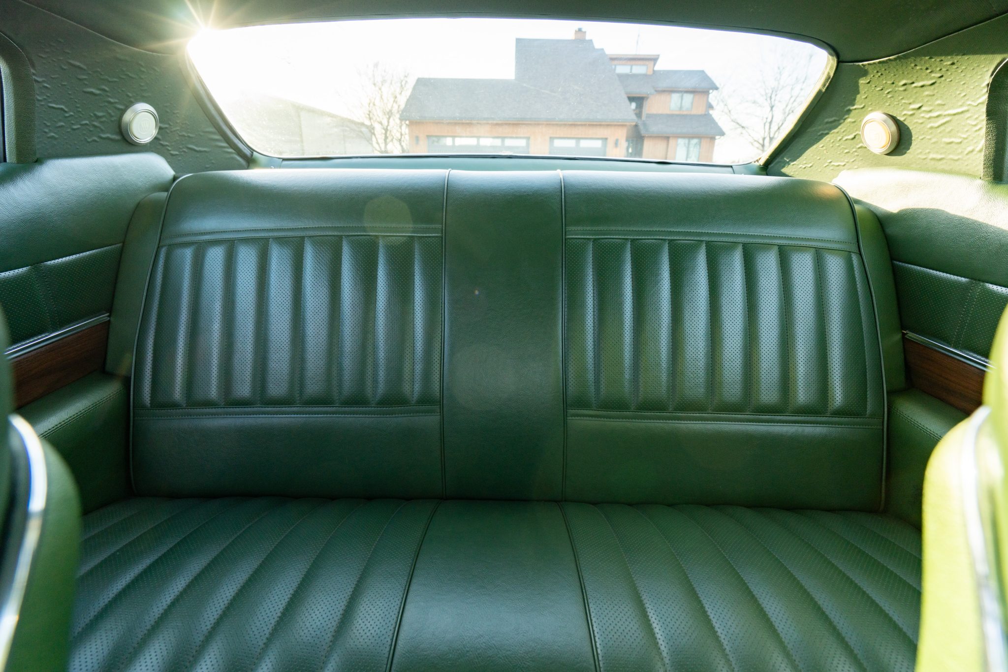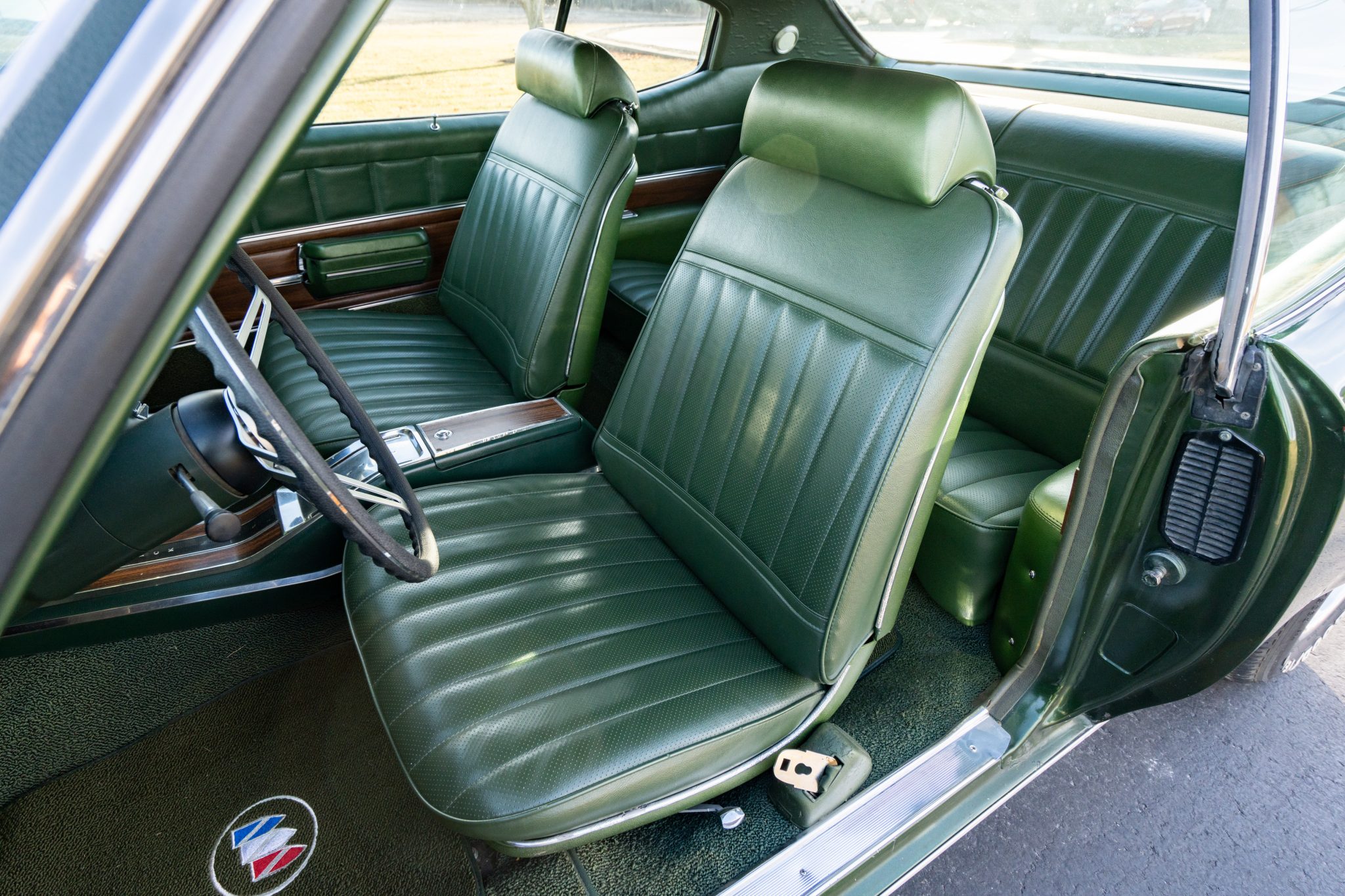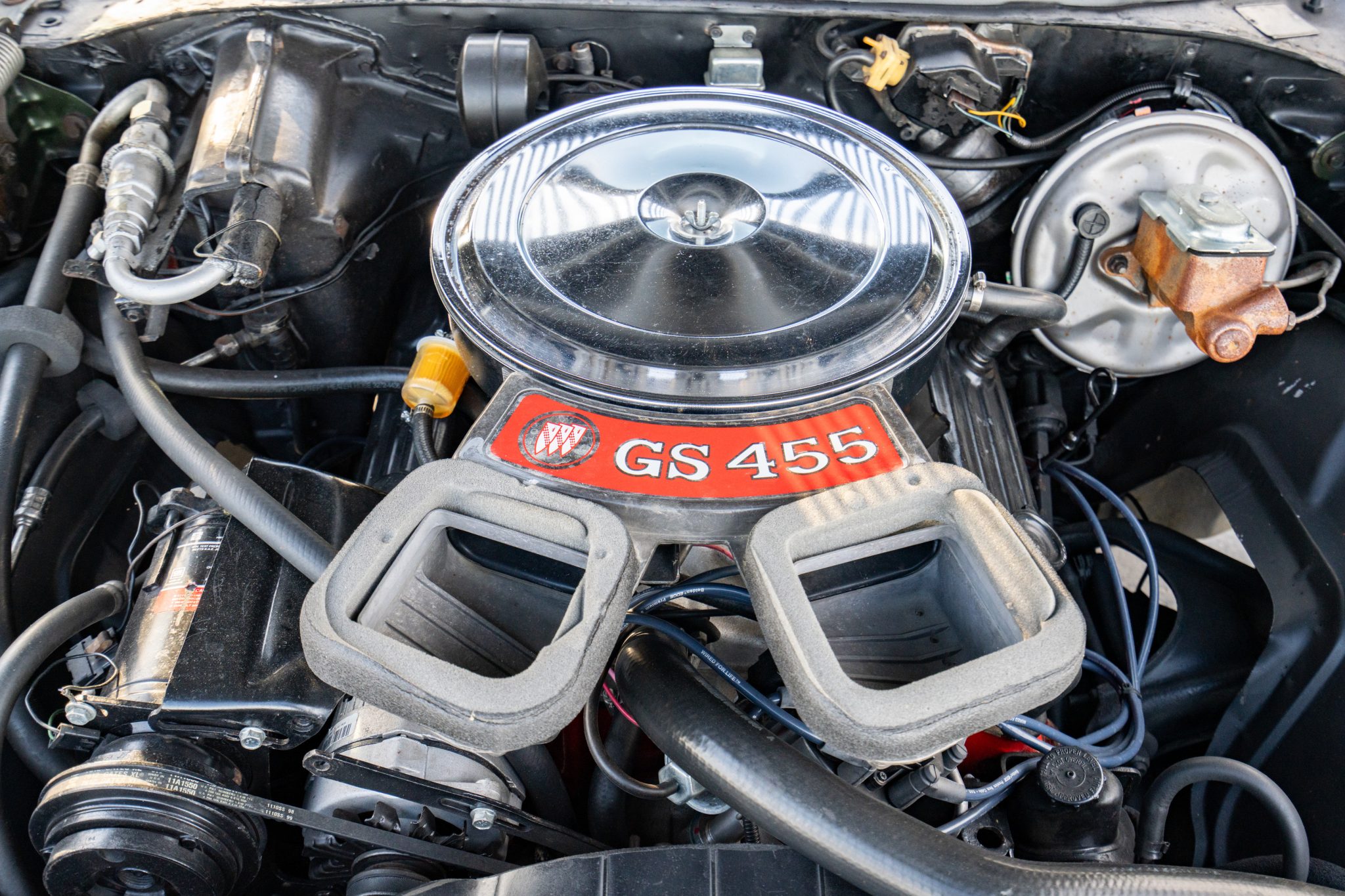 This 1972 Buick Skylark Custom coupe underwent a refurbishment that included refinishing the exterior in green with black stripes. Exterior details include a green vinyl roof cover, a rear spoiler, GS badging, and a twin-scoop hood, while the car rides on 15″ rally-style wheels that are mounted over power front disc and rear drum brakes. Power is provided by a replacement 455ci V8 mated to a three-speed automatic transmission, and the engine breathes through a four-barrel carburetor and an Edelbrock intake manifold.