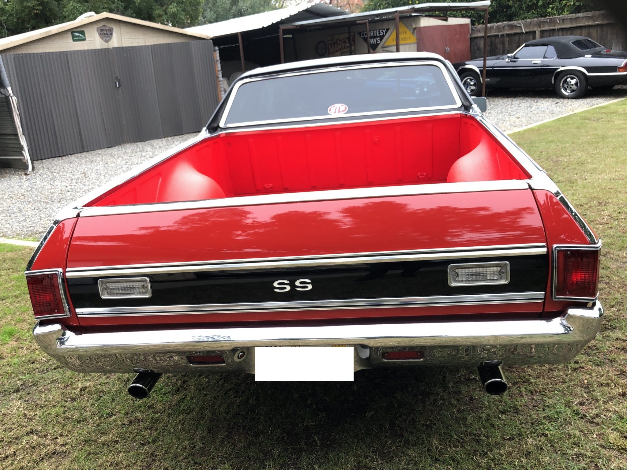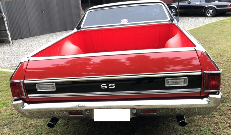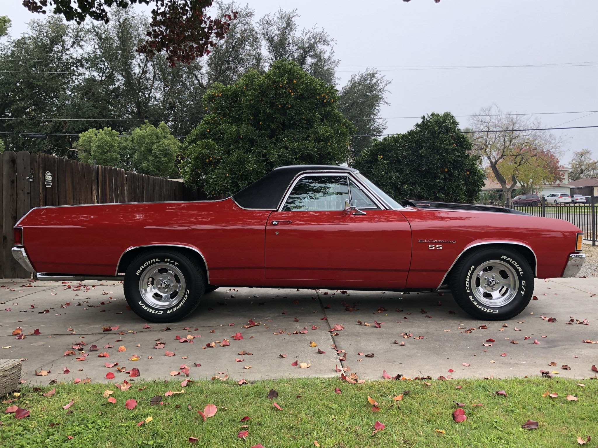 This 1972 Chevrolet El Camino Custom was refinishing the car in red, reupholstering the interior in black, and installing a 454ci V8 and a Transmission Specialties three-speed automatic transmission. Additional equipment includes an Edelbrock four-barrel carburetor and intake manifold, aluminum cylinder heads, ceramic-coated exhaust headers, an electric cooling fan, 15″ alloy wheels, rear air shocks, boxed lower trailing arms, and urethane suspension bushings.