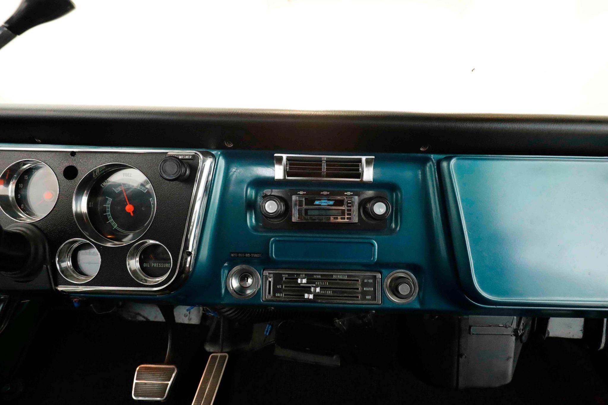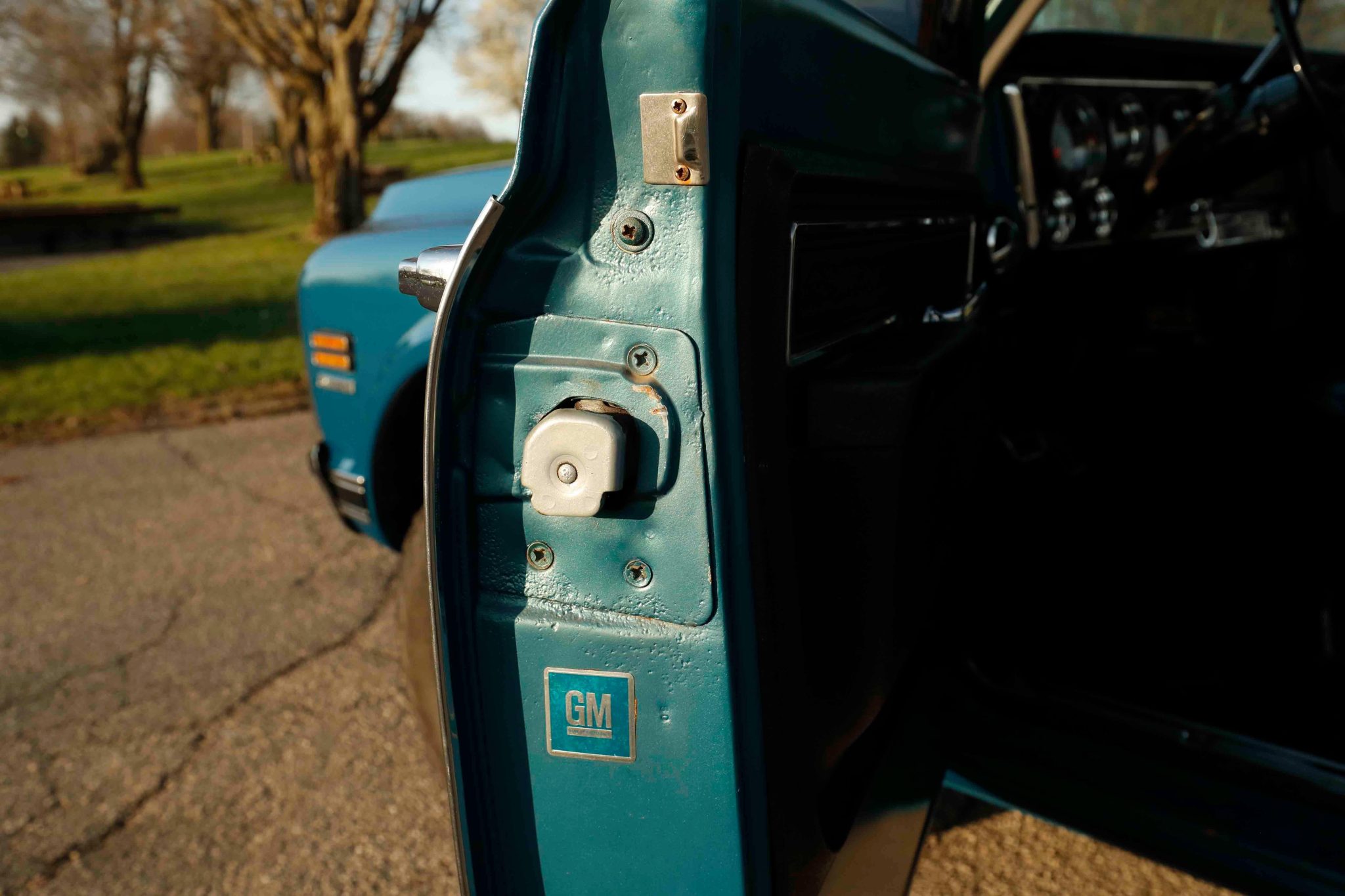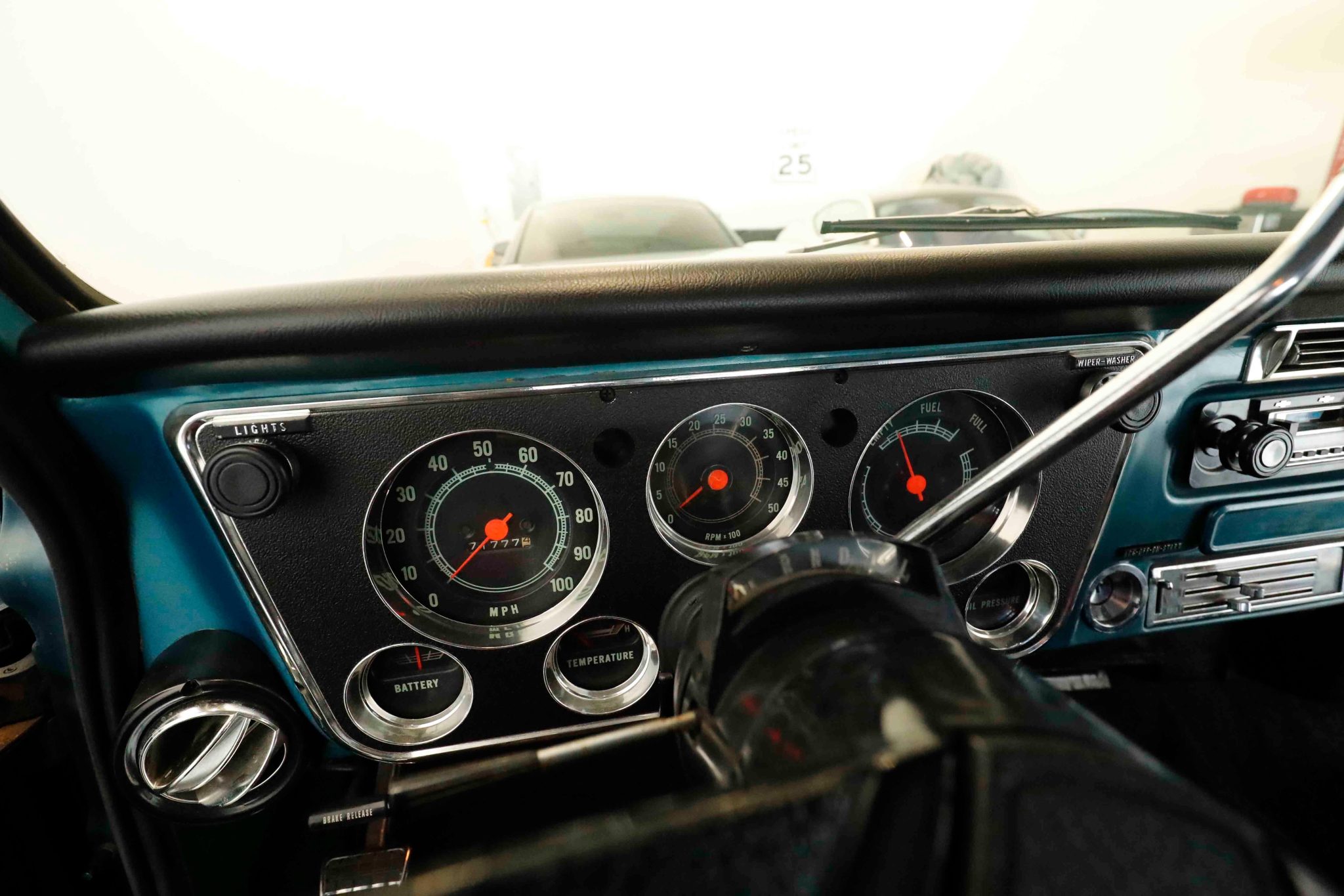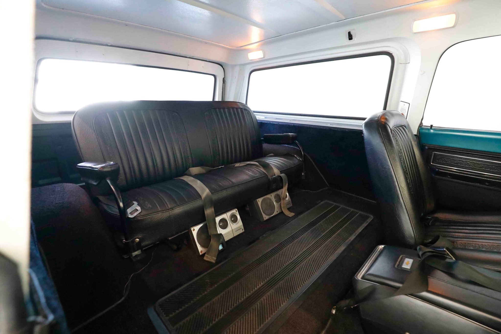 This 1972 Chevrolet K5 Blazer 4×4 underwent a refurbishment in the early 2000s It is powered by a 350ci V8 linked with a three-speed automatic transmission, a dual-range transfer case, and a Positraction limited-slip rear differential. The truck is finished in blue over black vinyl, and features include a white removable hardtop, a drop-down tailgate, rally-style wheels, manually locking front hubs, power-assisted brakes, power steering, front bucket seats, a center console, a rear bench, and air conditioning.