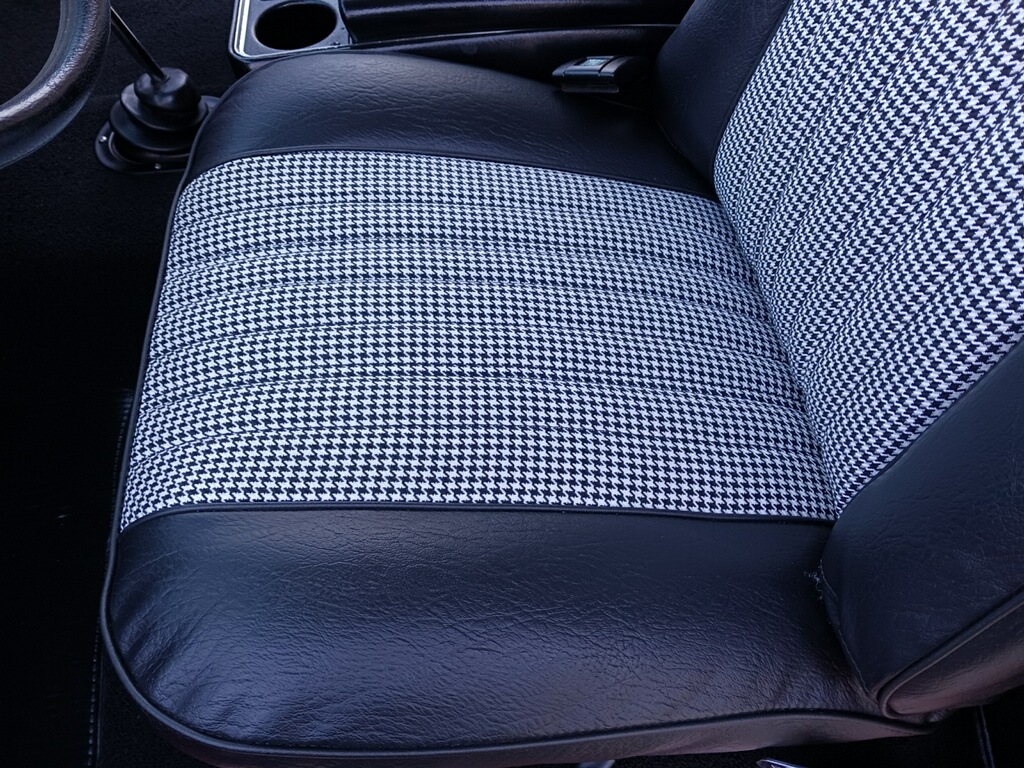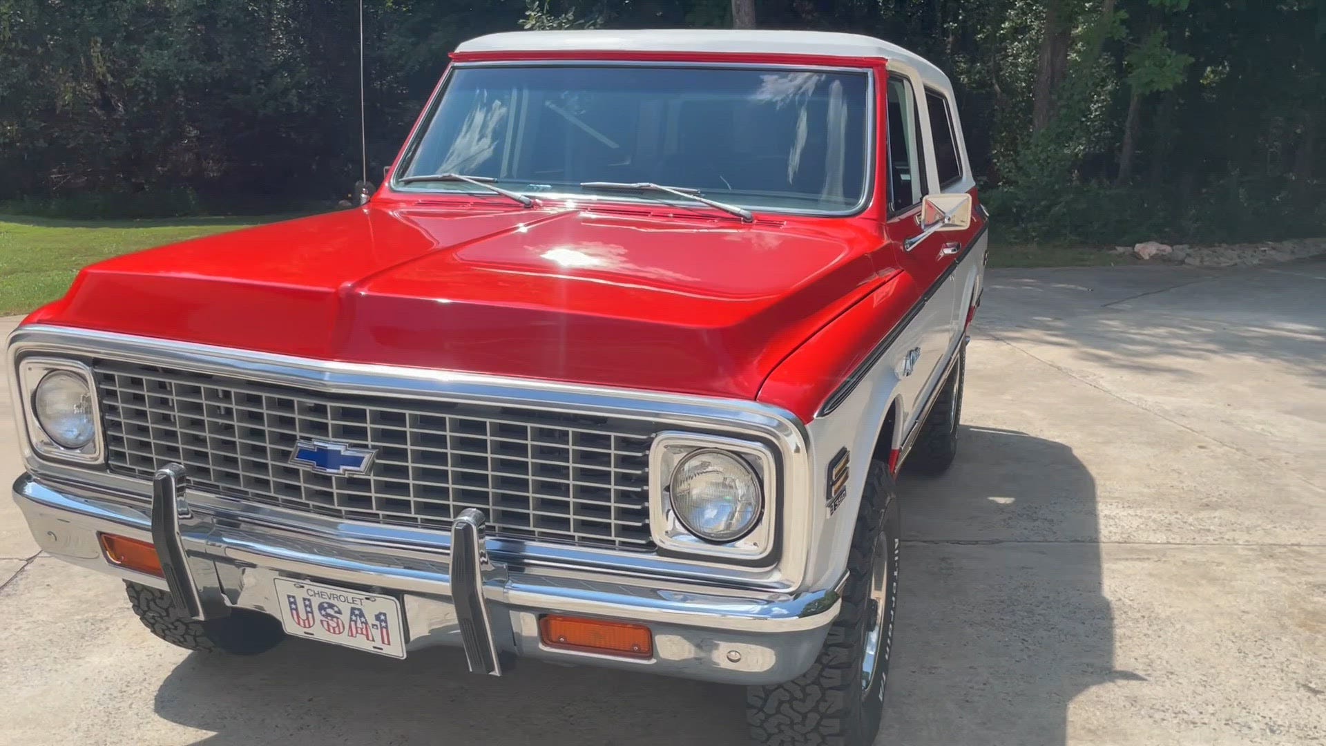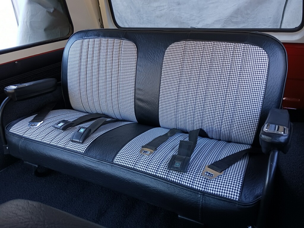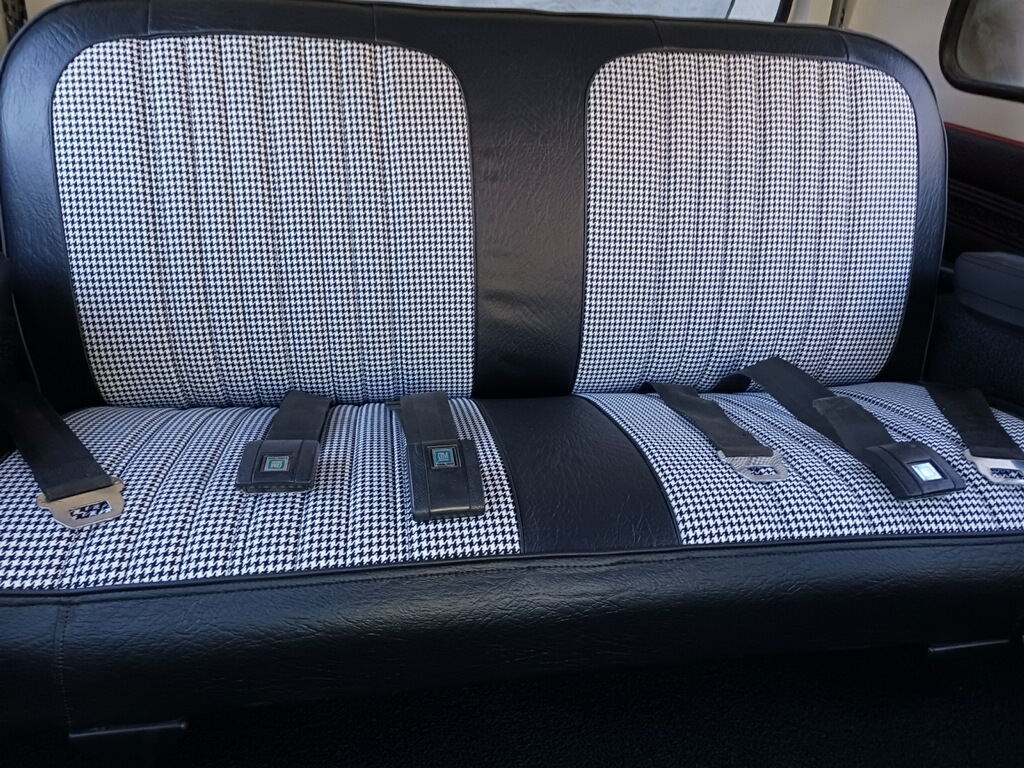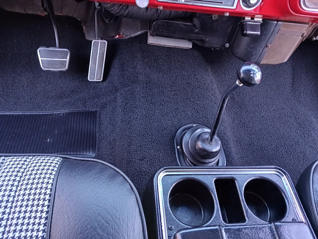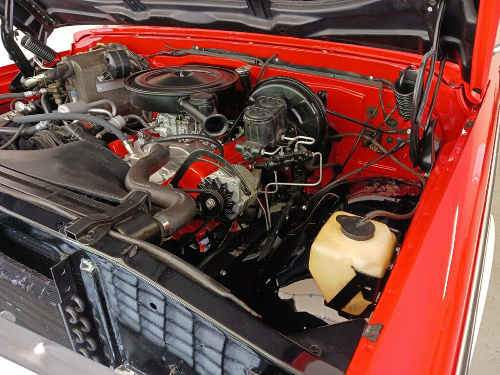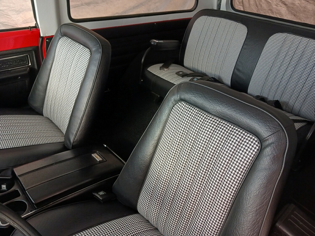 This 1972 Chevrolet K5 Blazer CST was refurbished in 2023, which is said to have included overhauling the 350ci V8 and the three-speed automatic transmission as well as resealing the dual-range transfer case. The truck was repainted red and white, and the seats were reupholstered in black vinyl and houndstooth cloth. Additional equipment includes 15″ Rally wheels, a removable hardtop, a receiver hitch, manually locking front hubs, power steering, a Pioneer stereo, and R134a-converted air conditioning.