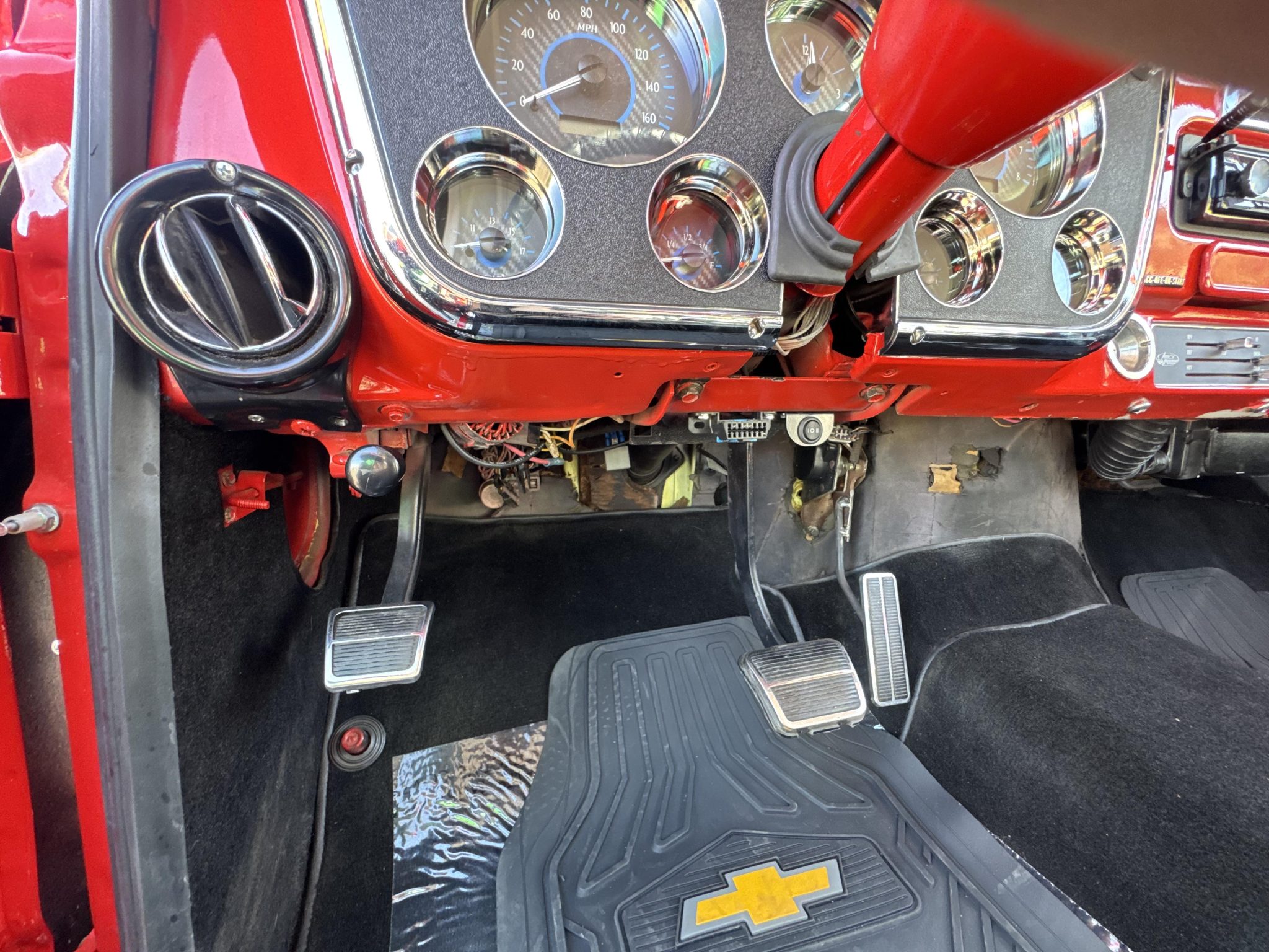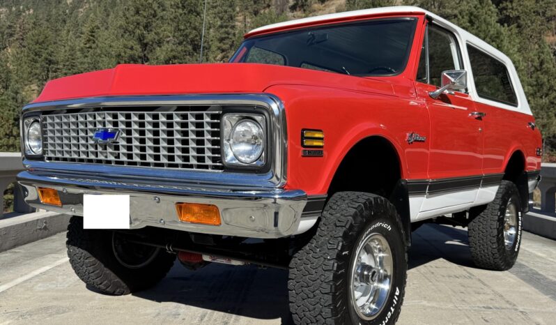 This 1972 Chevrolet K5 Blazer CST 4×4 received a mechanical refurbishment in 2024, which included installing a rebuilt 5.3-liter Vortec V8 that was replaced under warranty in 2025, along with a 4L60 four-speed automatic transmission, and the front and limited-slip rear axles were fitted with 3.73:1 gears. The red and white body is complemented by a white hardtop and black CST trim, and the cabin is appointed with black vinyl front bucket seats, Vintage Air climate control, a JVC Bluetooth receiver, and Dakota Digital gauges. The truck rides on a lifted suspension with Rancho shocks, and equipment includes manually locking front hubs, power steering, power front disc brakes, cruise control, 15″ Rally-style wheels, and 32″ BFGoodrich tires.