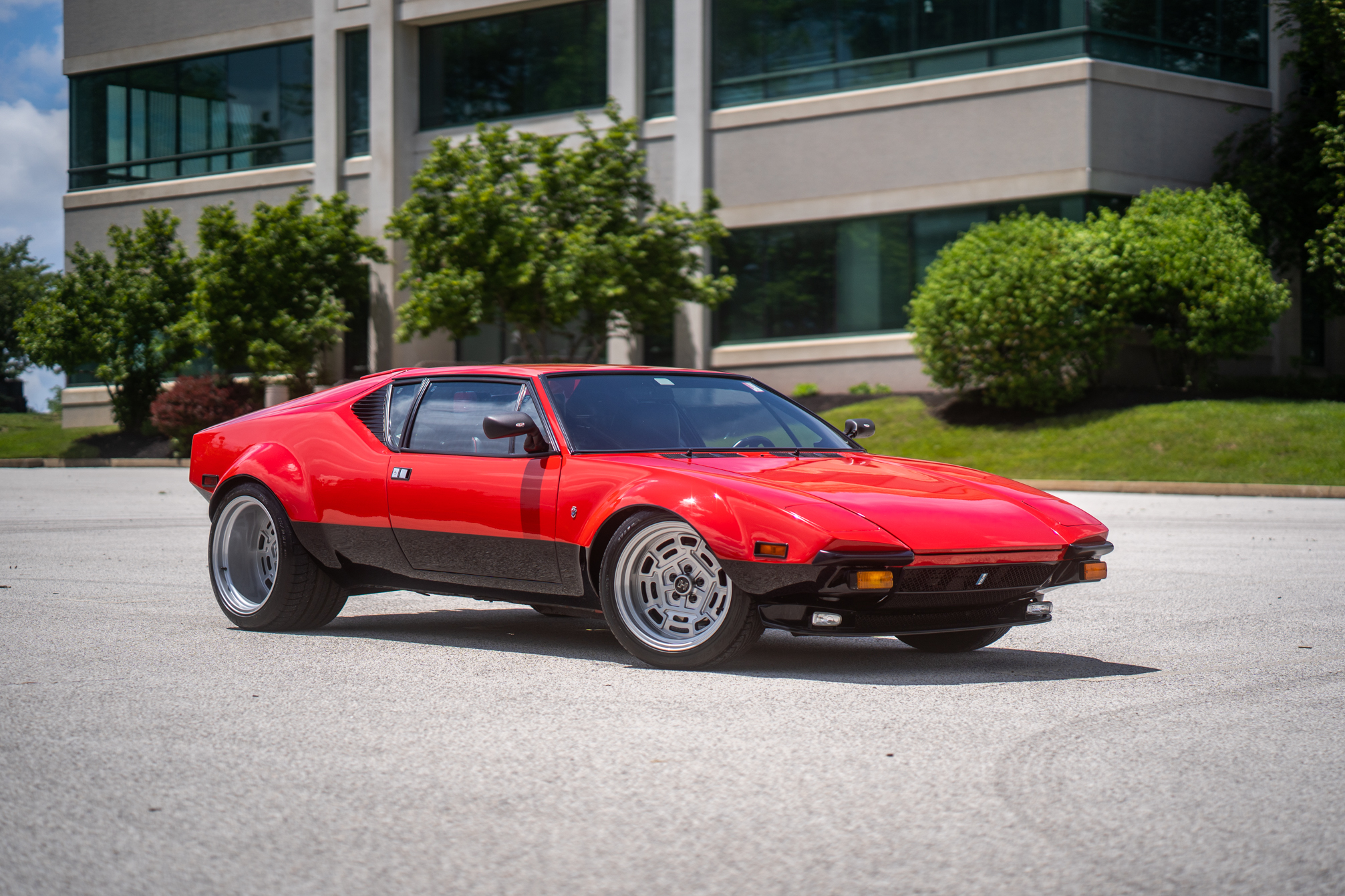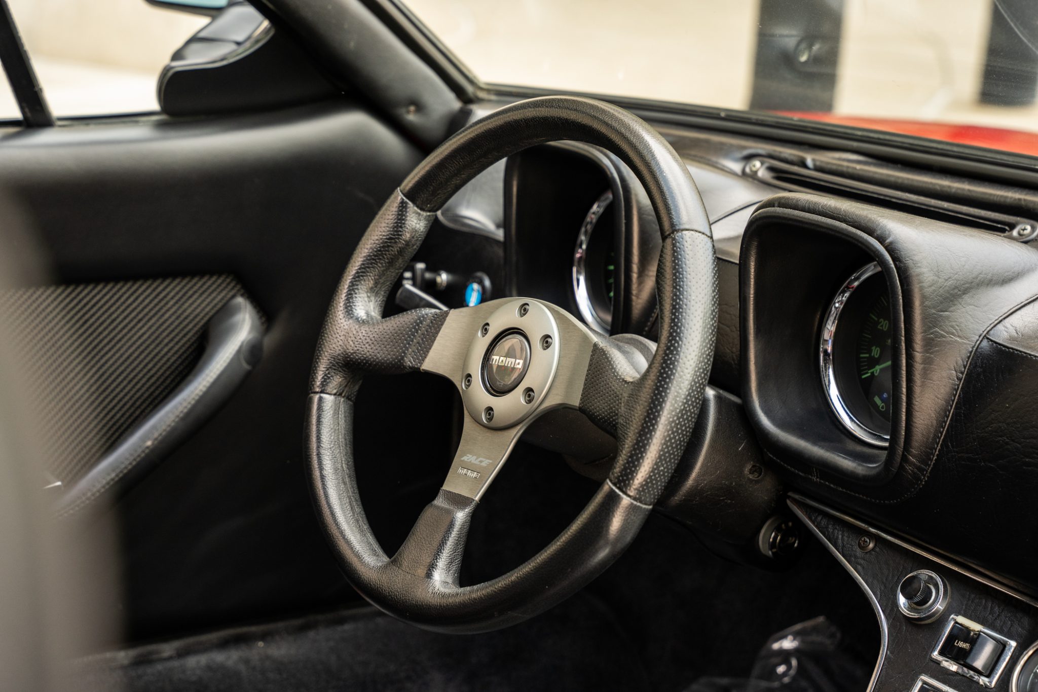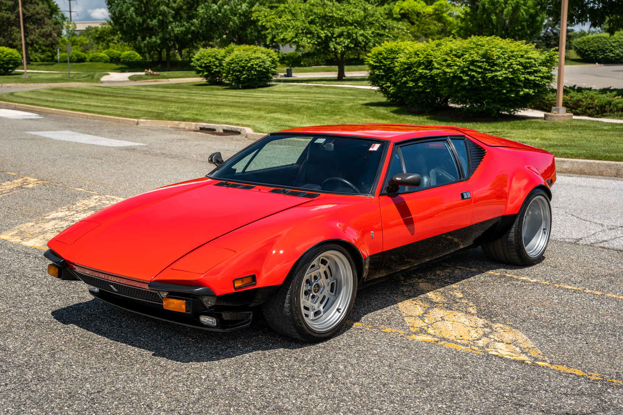 The car was refurbished and modified which included an exterior color change, an engine rebuild, an interior refresh, and installation of wheel-arch flares and staggered-diameter wheels. The 397ci V8 is paired with a five-speed manual transaxle, and additional features include a gated shifter, power-operated windows, a MOMO steering wheel, a disconnected nitrous-oxide injection system, and bucket seats with black leather upholstery.