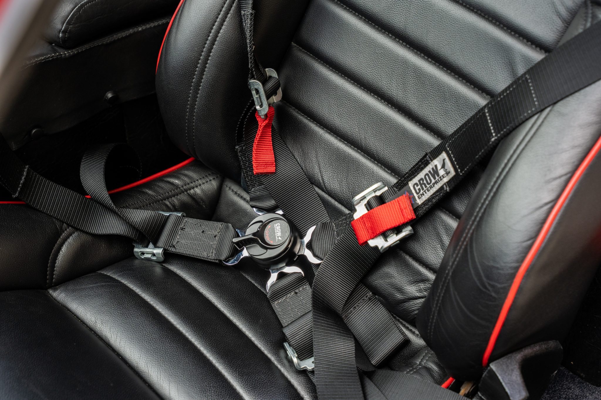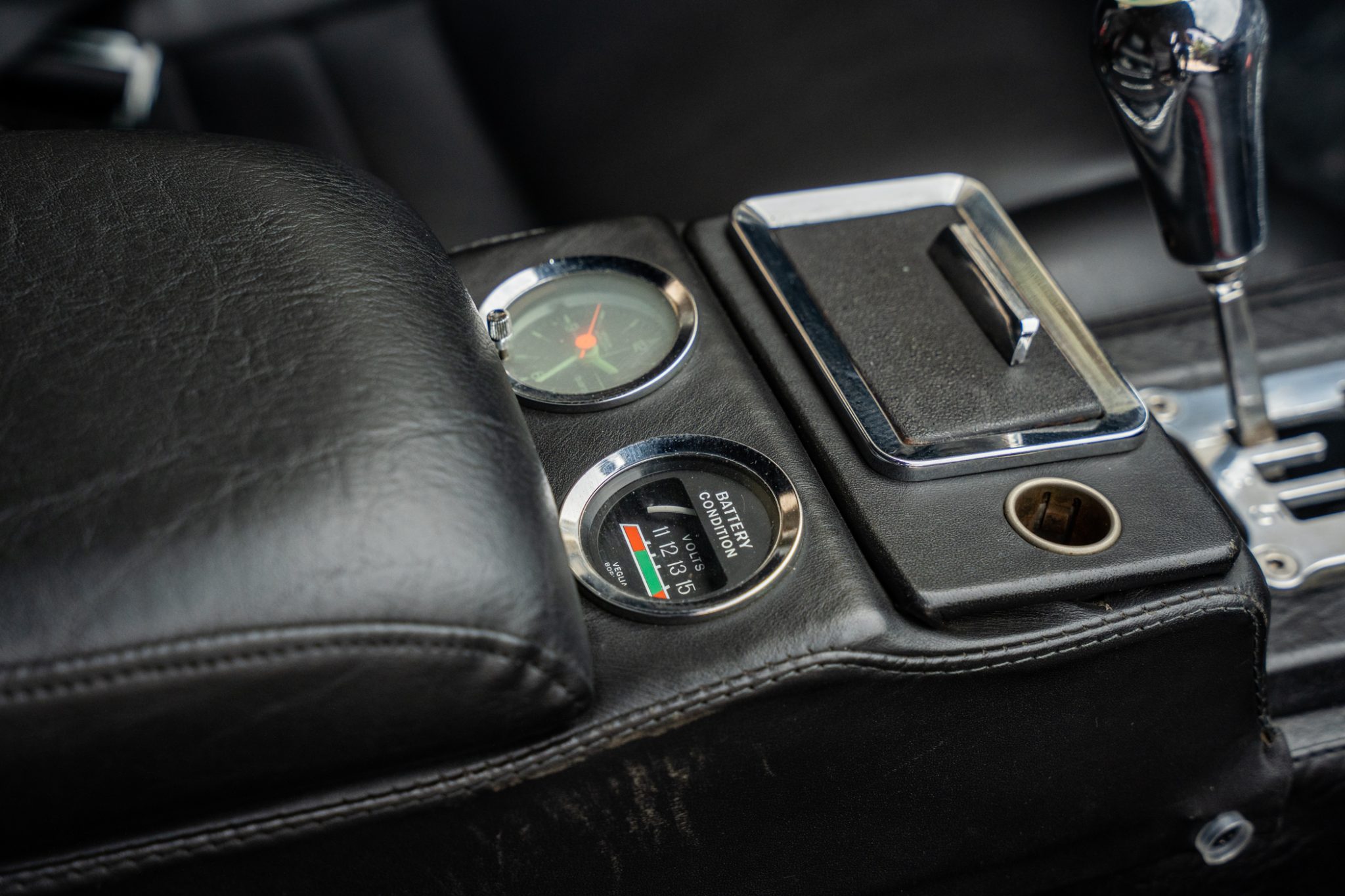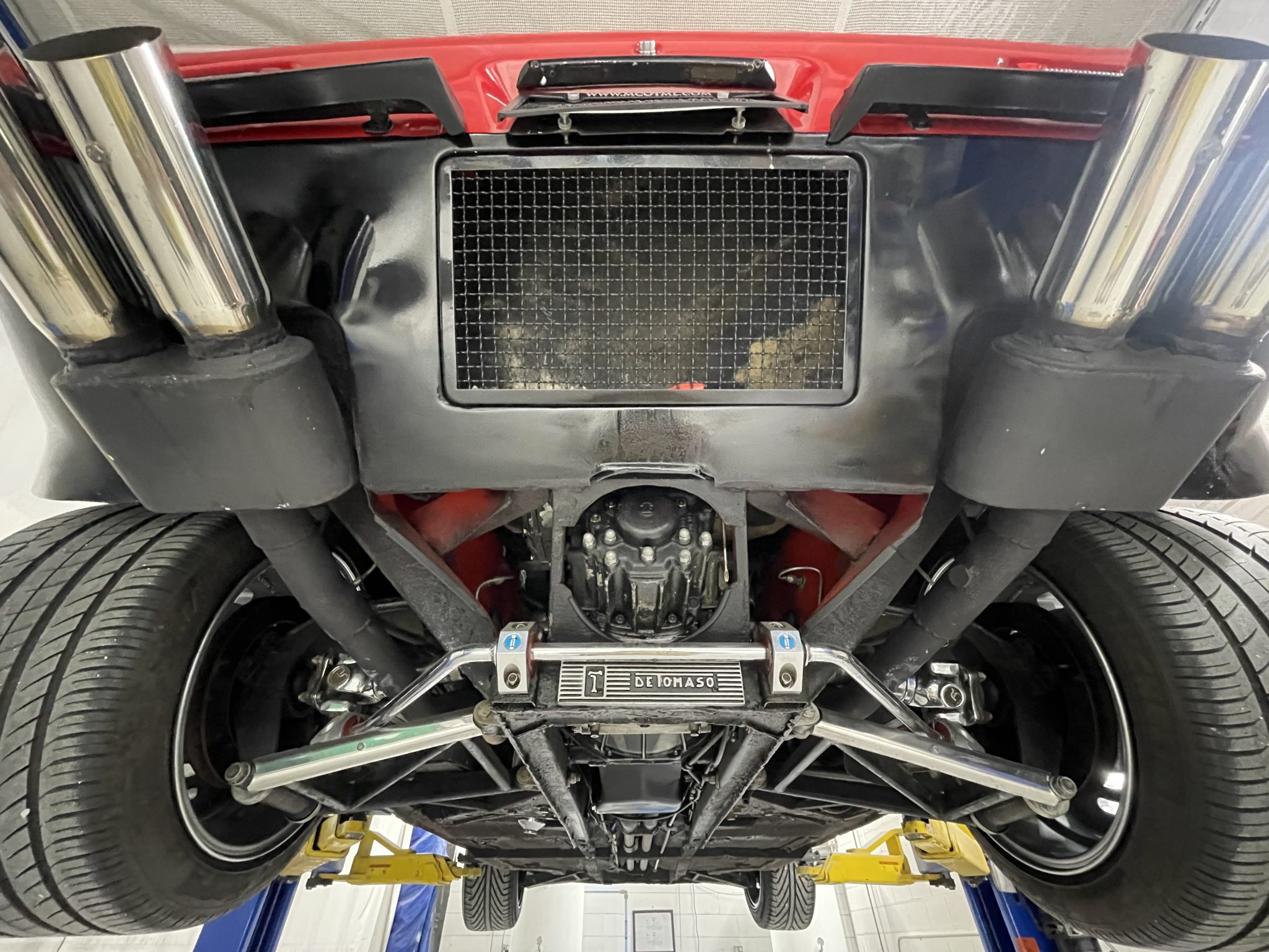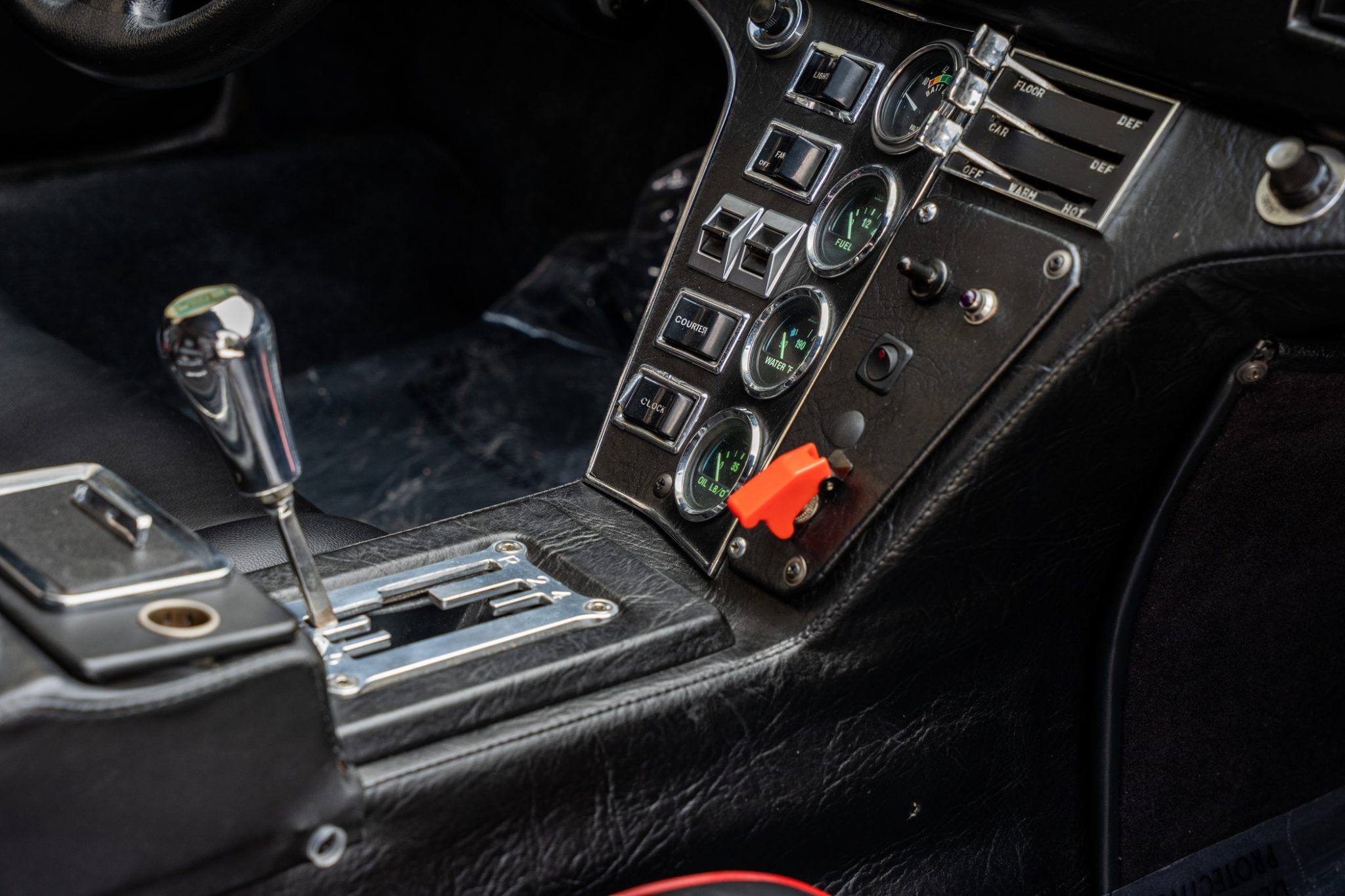 The car was refurbished and modified which included an exterior color change, an engine rebuild, an interior refresh, and installation of wheel-arch flares and staggered-diameter wheels. The 397ci V8 is paired with a five-speed manual transaxle, and additional features include a gated shifter, power-operated windows, a MOMO steering wheel, a disconnected nitrous-oxide injection system, and bucket seats with black leather upholstery.