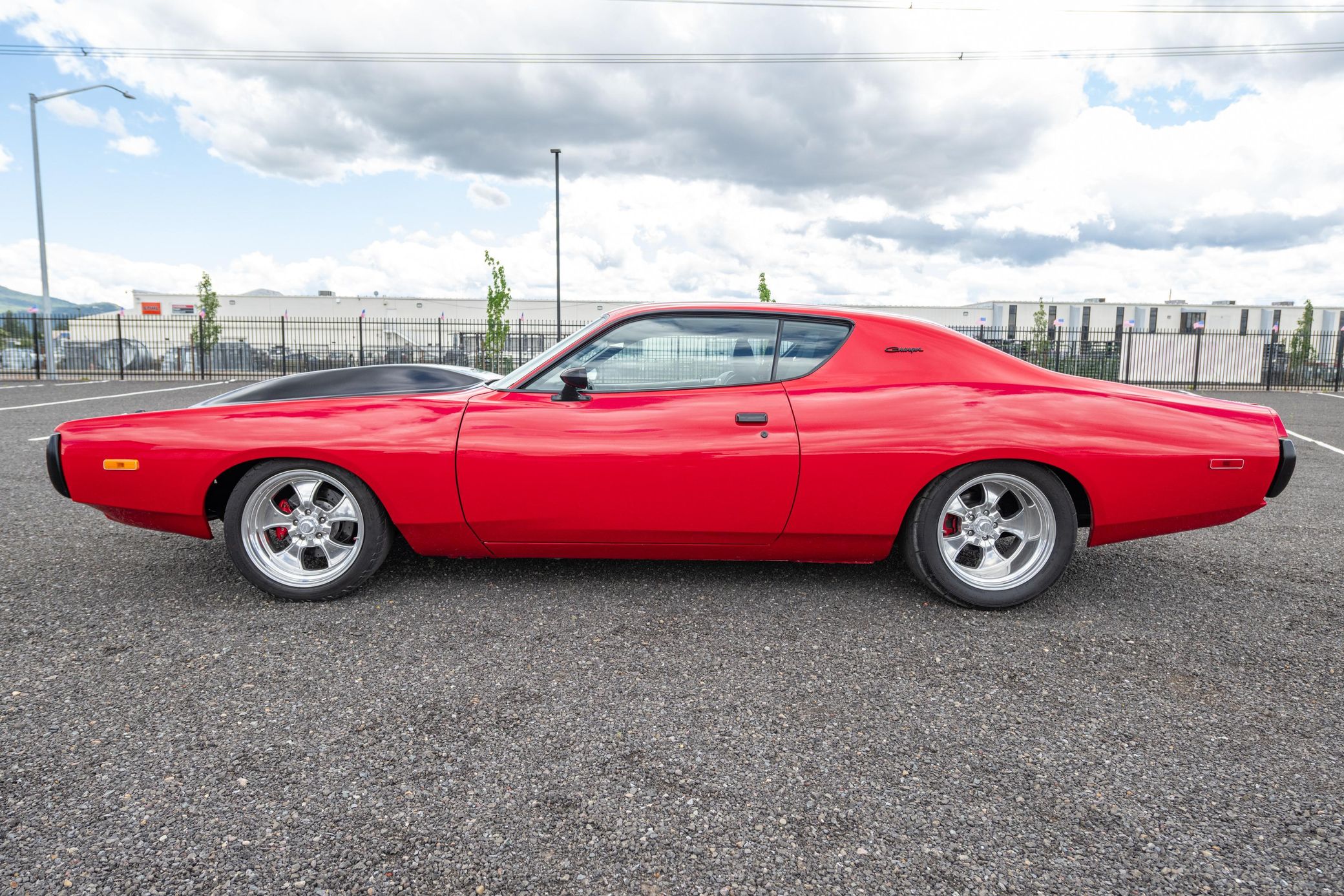 This Charger has had a lot of custom work done, with the main attraction being the 358-cubic-inch V8 reportedly taken from a NASCAR Craftsman Truck vehicle. It also touts some other cool features like a narrowed Dana rear axle, meaty Mickey Thompson tires, and an updated interior.