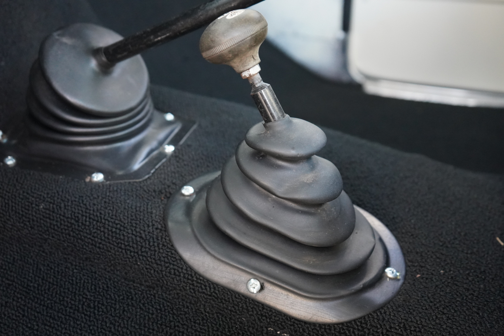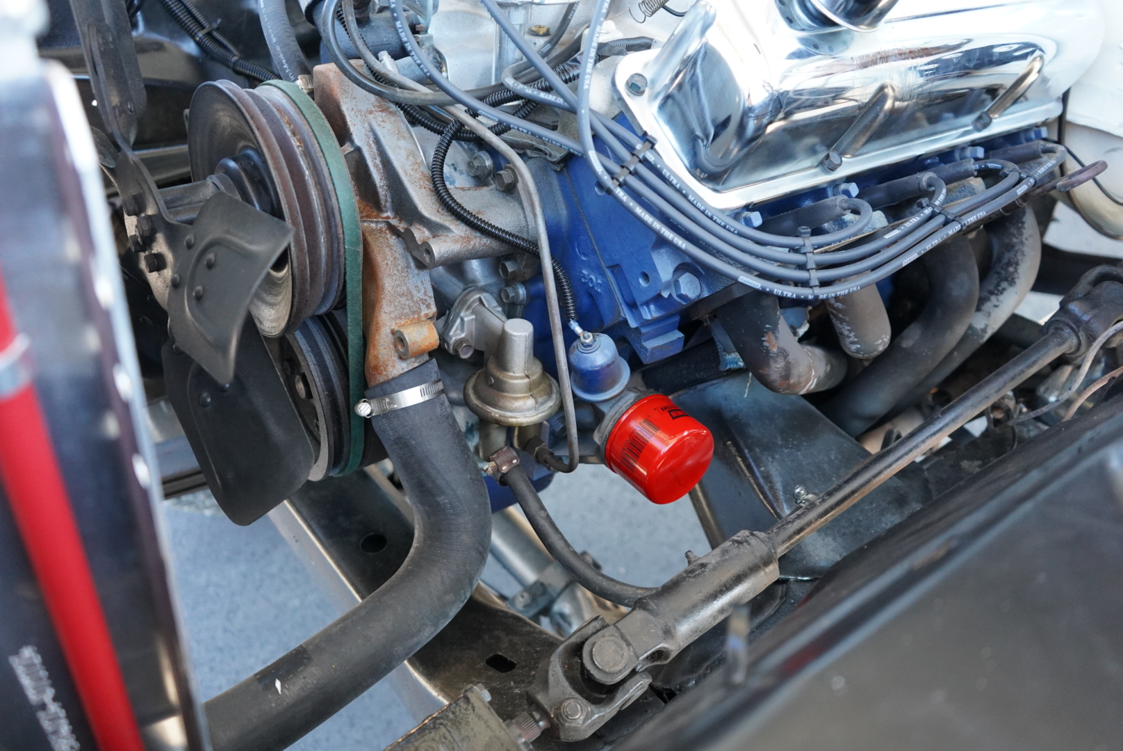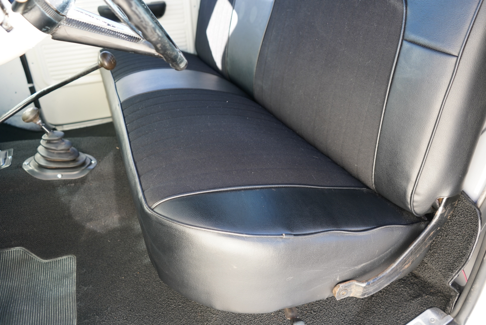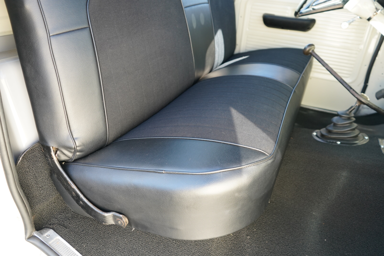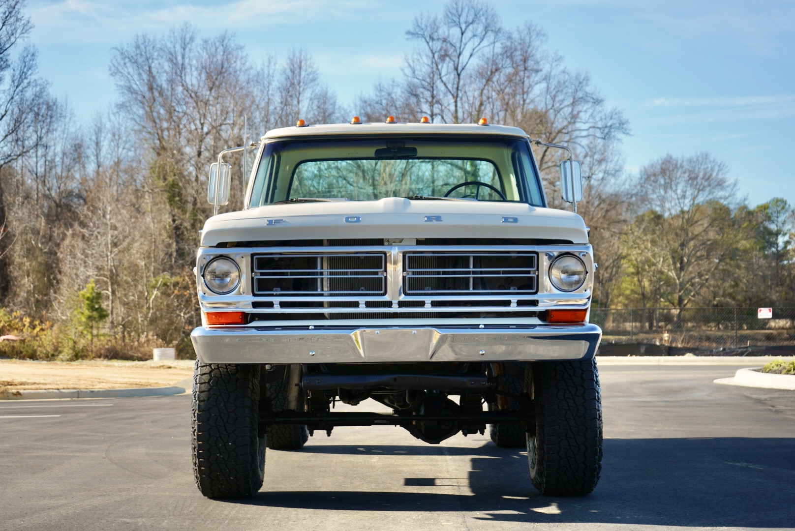 The body was refinished in Wimbledon White and mounted on a 2″ body lift kit, while the interior was re-trimmed with black vinyl and cloth seat upholstery. Power is provided by a replacement 360ci V8 that is topped with an Edelbrock intake manifold and carburetor and linked to a four-speed manual transmission and a divorced dual-range transfer case. Additional equipment includes a Dana 60 rear axle, aftermarket side steps, a spray-in bedliner, chrome bumpers and side moldings, and a dual exhaust system with long-tube headers and Flowmaster mufflers.