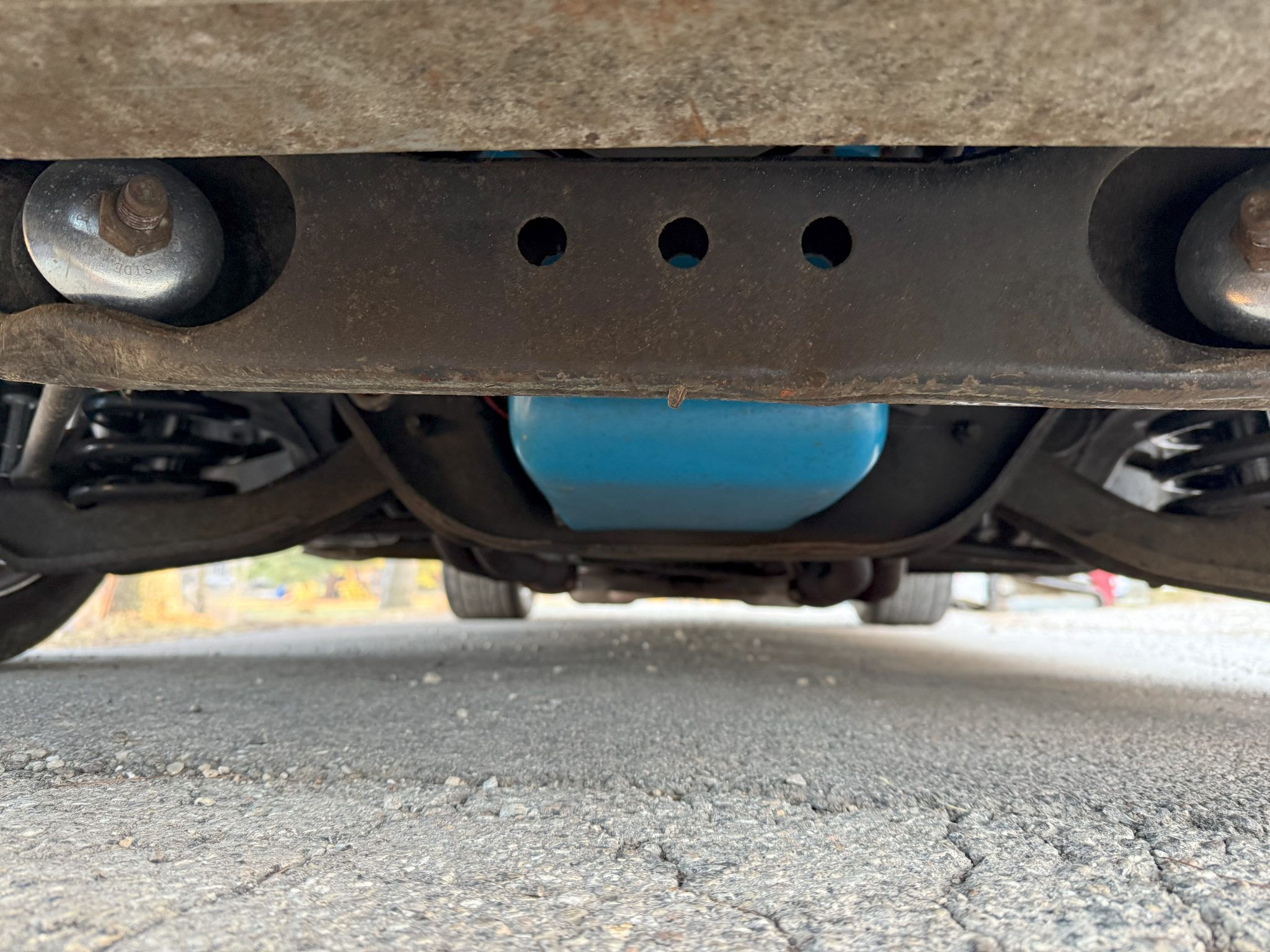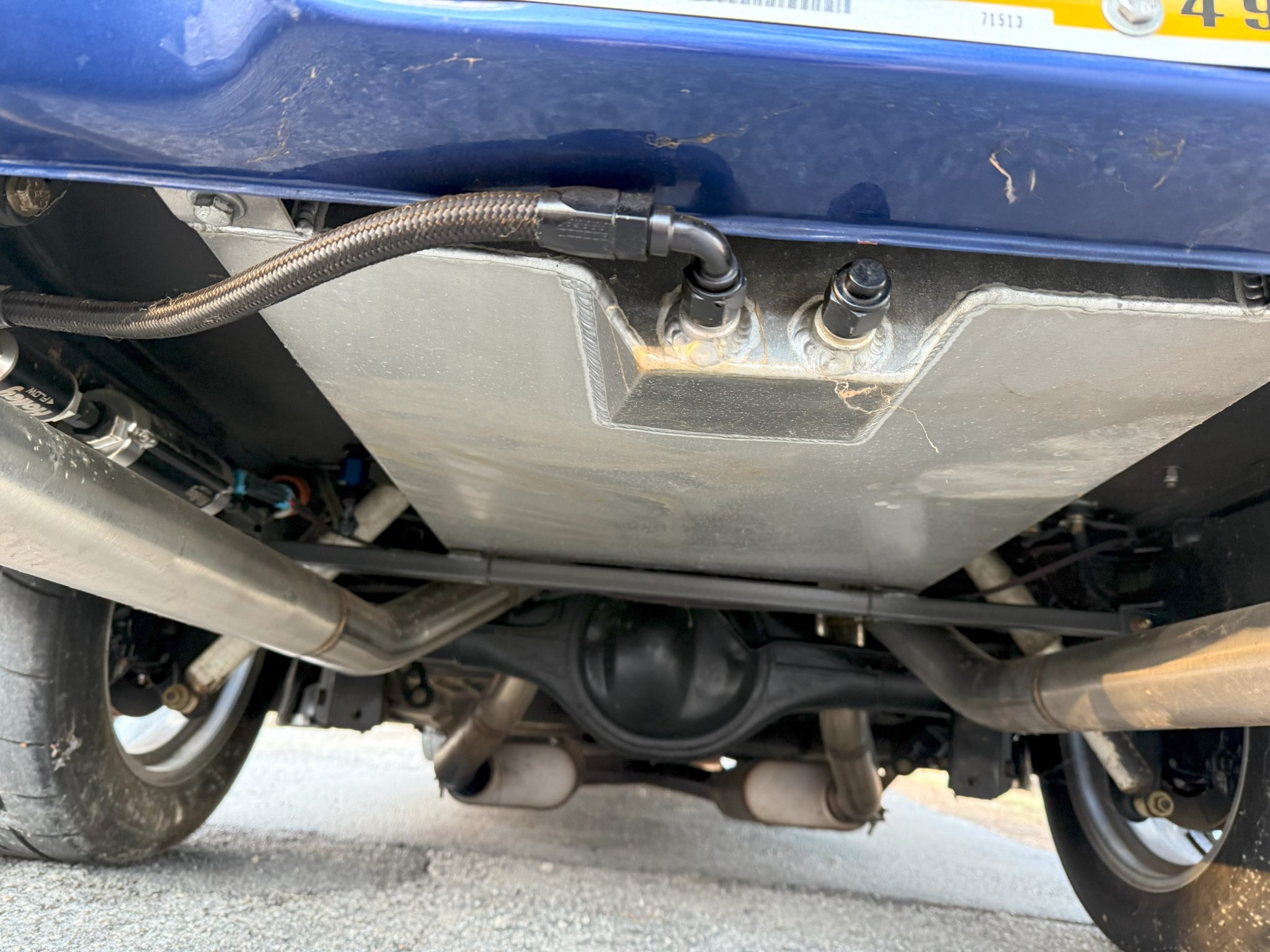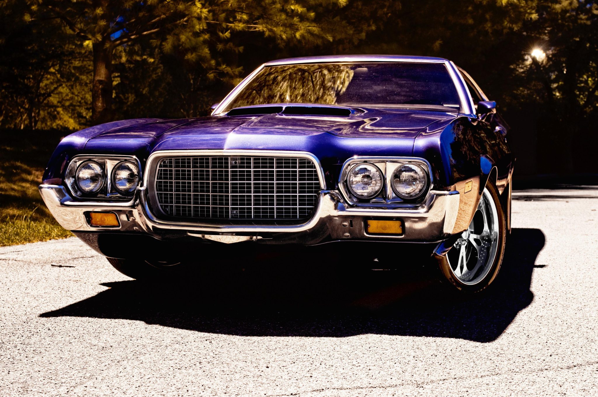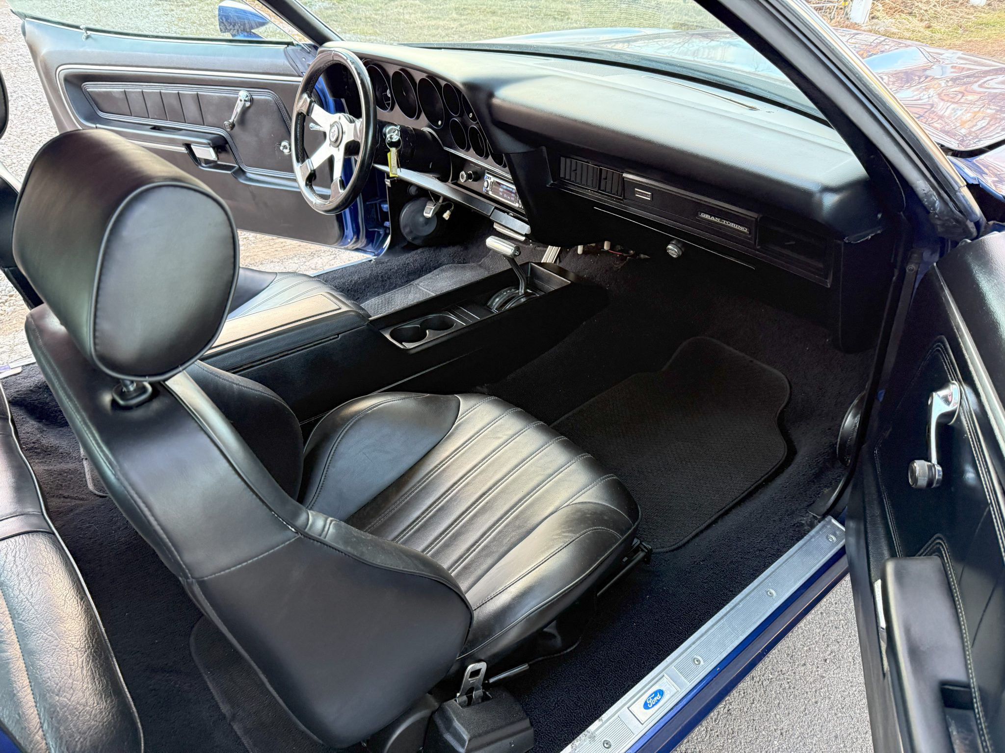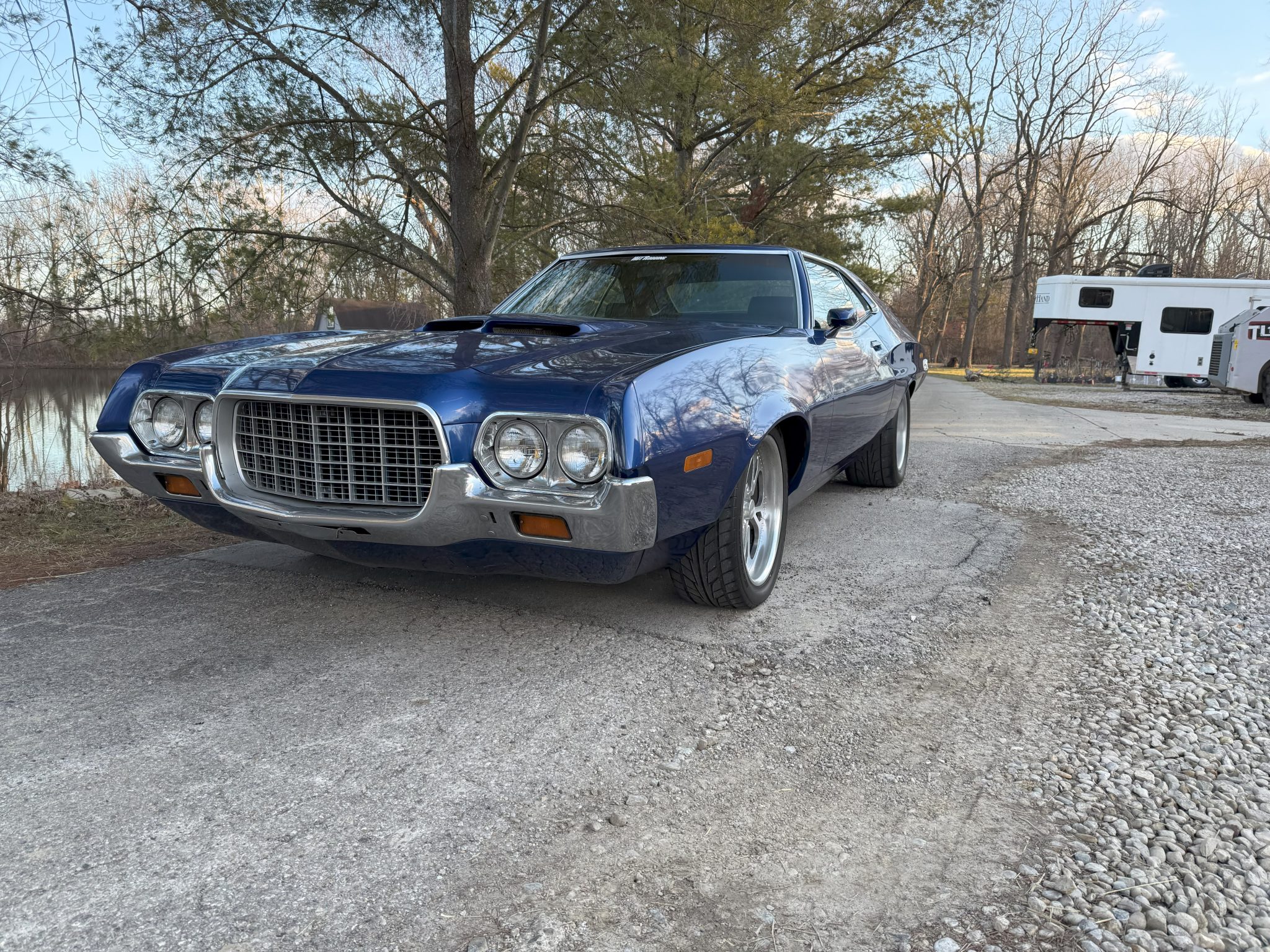 work since involved adding Holley electronic fuel injection and rebuilding the 502ci V8. The car was refinished in blue and is equipped with a three-speed automatic transmission, a 9″ rear end with a Detroit TrueTrac differential, 31-spline Moser axles, a trunk-housed fuel cell, 18″ Bonspeed Wild Thang wheels, Wilwood four-wheel disc brakes, power steering, and Flowmaster mufflers. The interior features aftermarket front bucket seats, a replacement rear bench, headliner, and carpeting, a center console, Vintage Air air conditioning, and an aftermarket stereo, speakers, and Kicker amplifier.