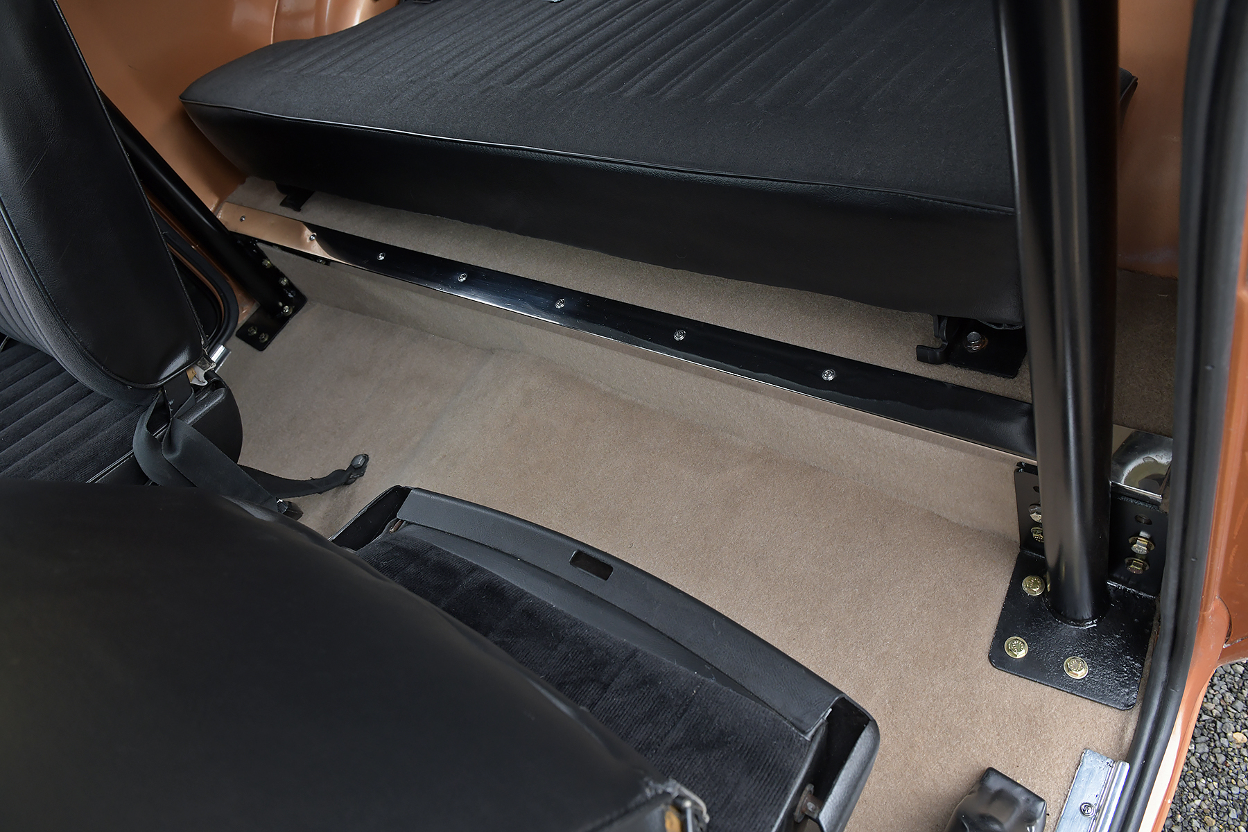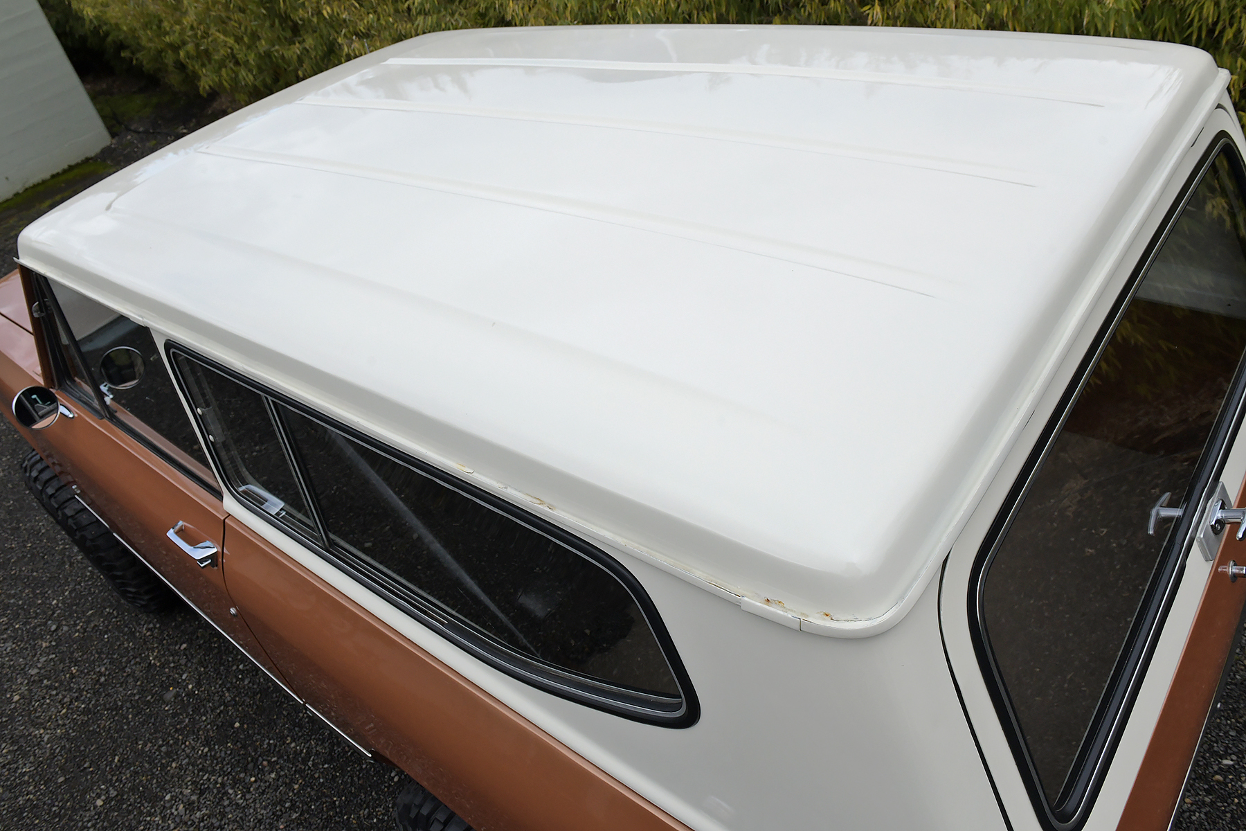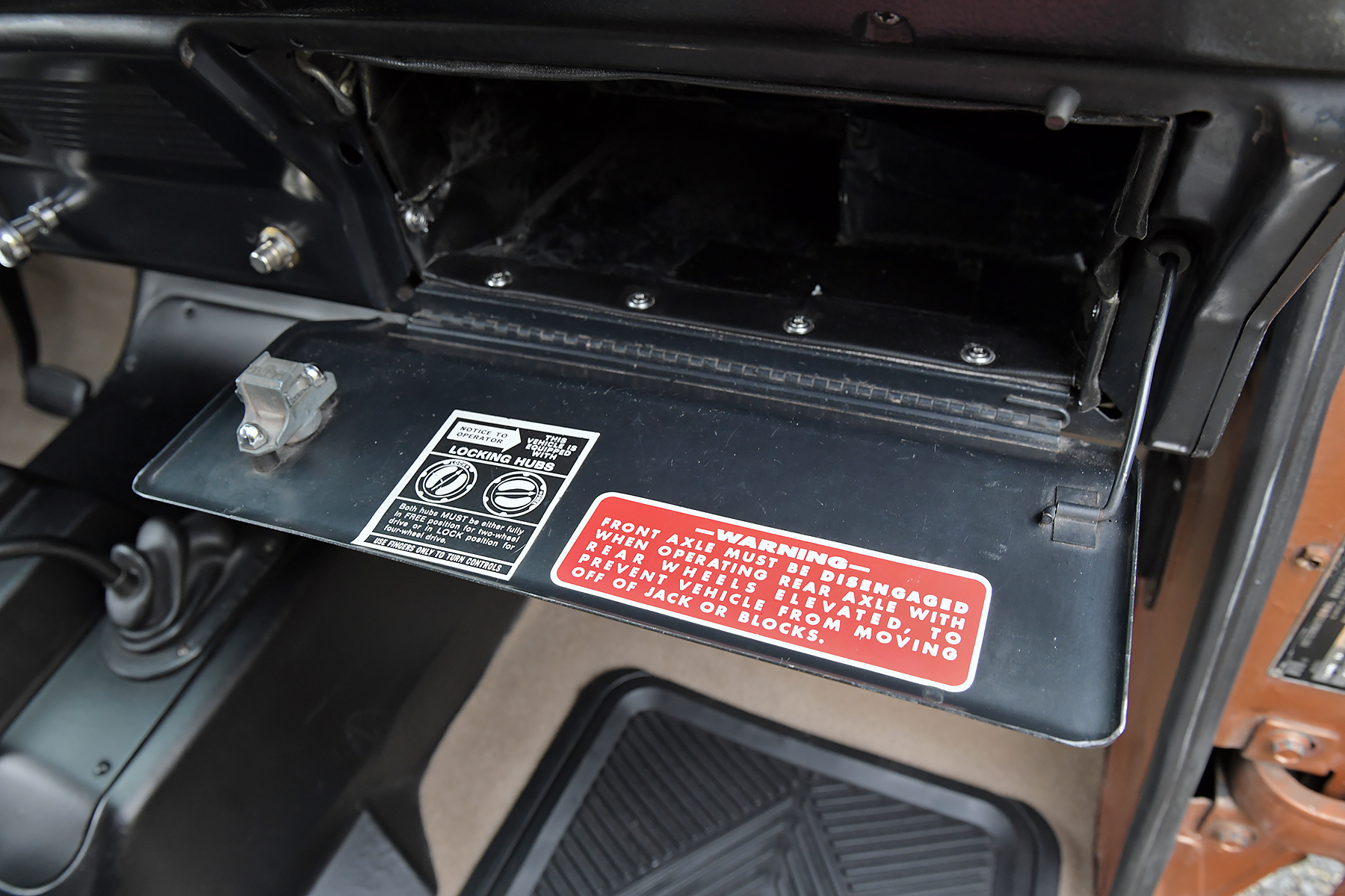 This 1972 International Harvester Scout II is powered by a 345ci V8 equipped with a Holley carburetor and linked to a three-speed automatic transmission and a dual-range transfer case. Finished in Rose Gold with a removable hardtop over black upholstery, the truck rides on a lifted suspension along with 15″ alloy wheels wrapped in 33″ BFGoodrich tires. Equipment includes Warn manually locking front hubs, power steering and brakes, a roll bar, front bucket seats, a folding rear bench, and a heater.