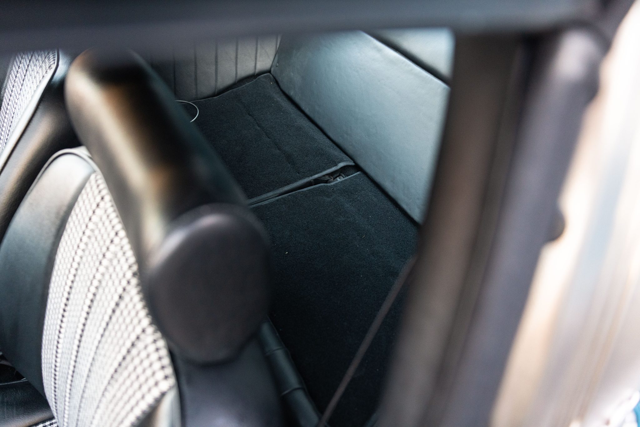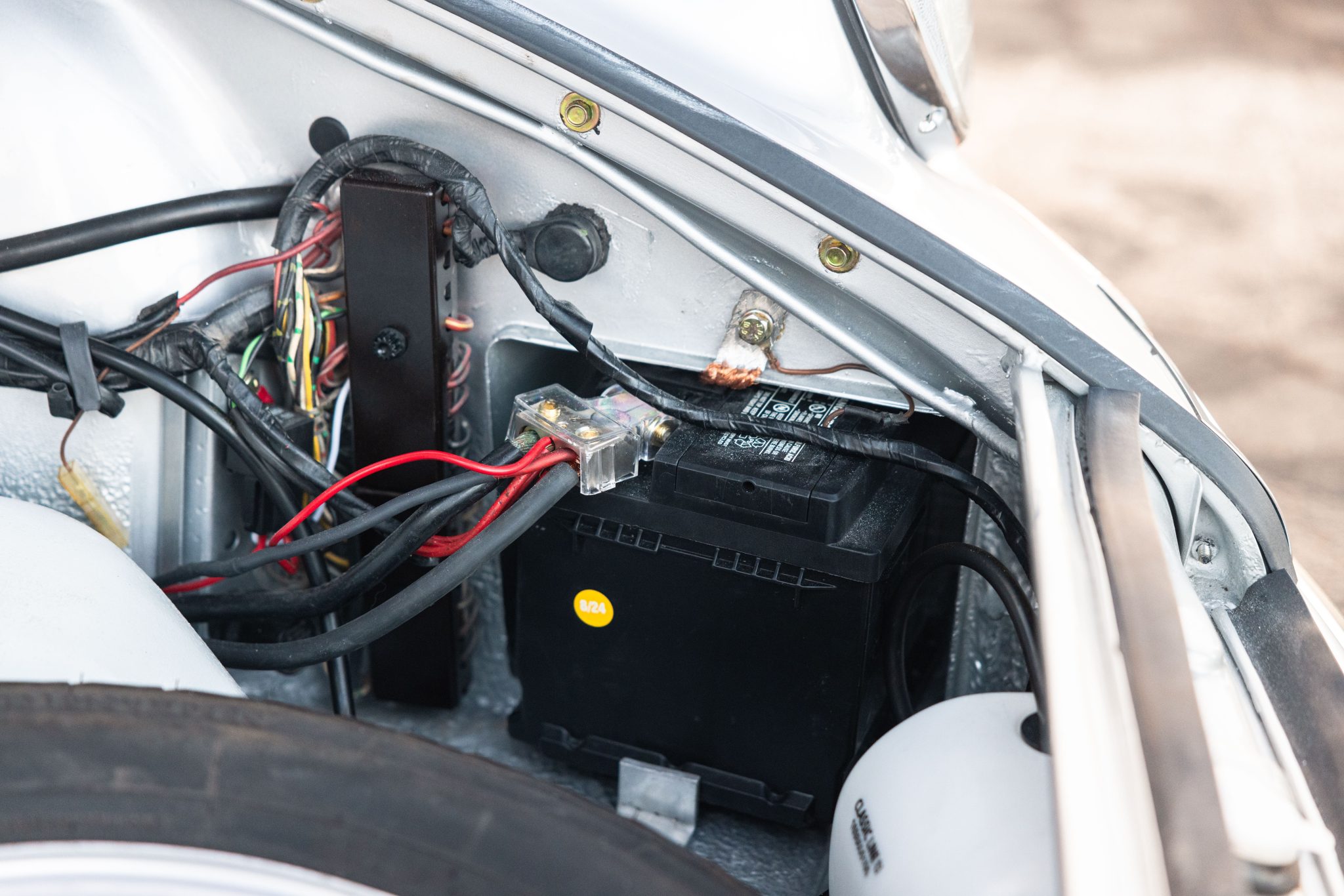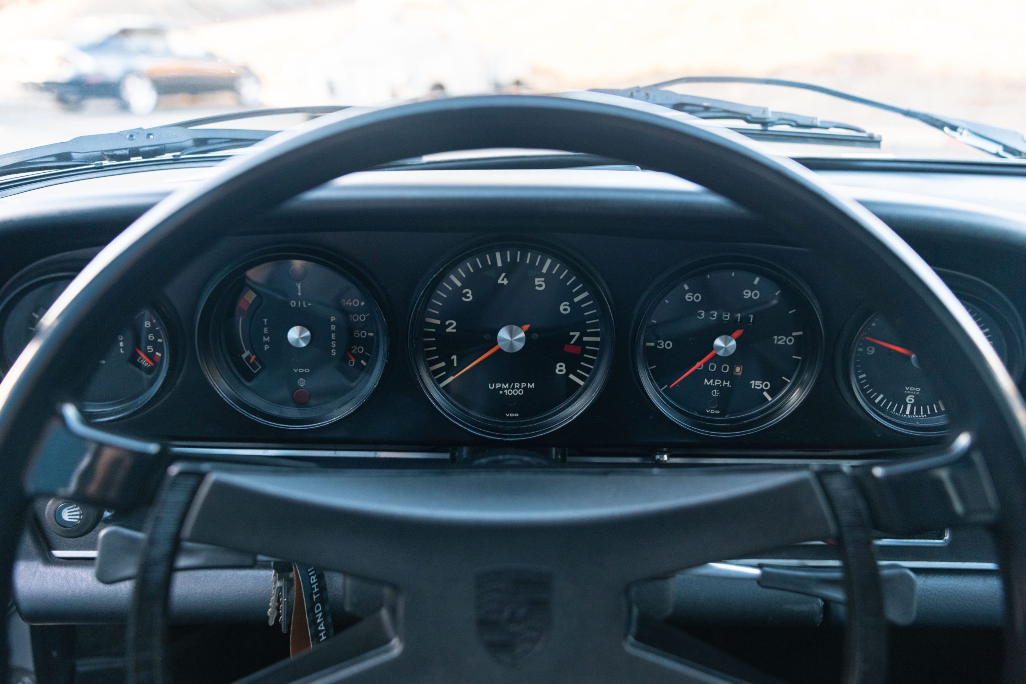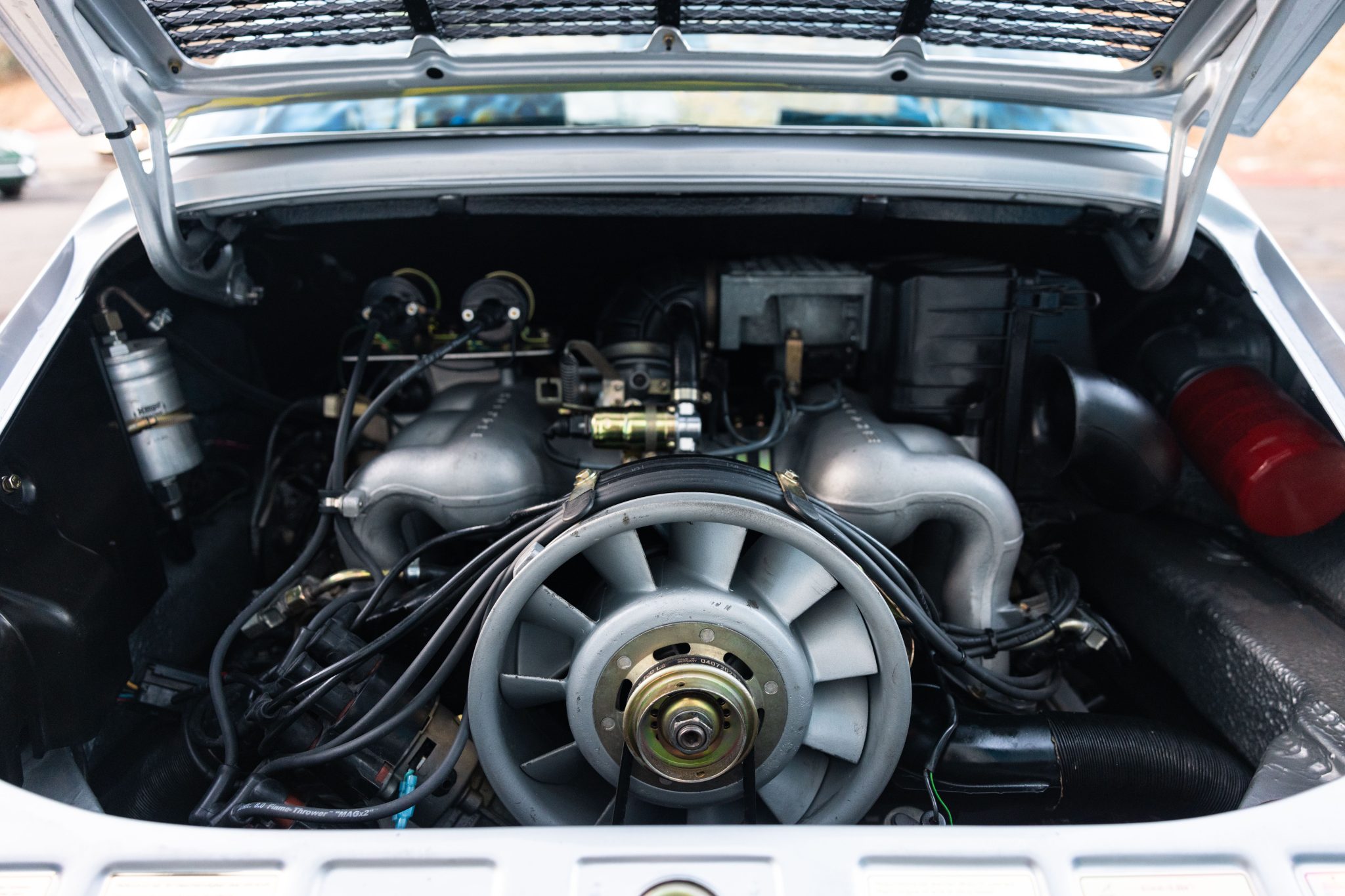 This 1972 Porsche 911S Targa was refurbished and modified in 2024, including a repaint and the installation of a twin-plug 3.2L flat-six and a 915 five-speed manual transaxle. The car is finished in silver metallic over black leatherette and houndstooth cloth, and equipment includes SSI heat exchangers, a removable roof panel, a stainless-steel Targa bar, H4 headlights, Euro-spec bumpers, a front spoiler, and 15″ Fuchs alloy wheels.
