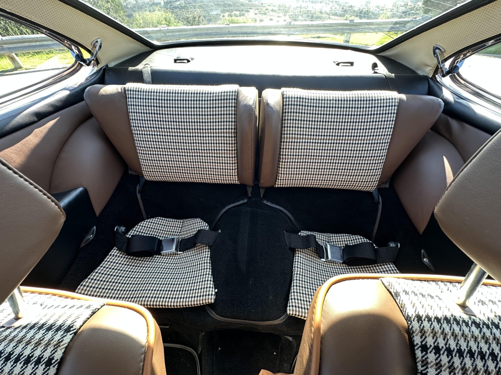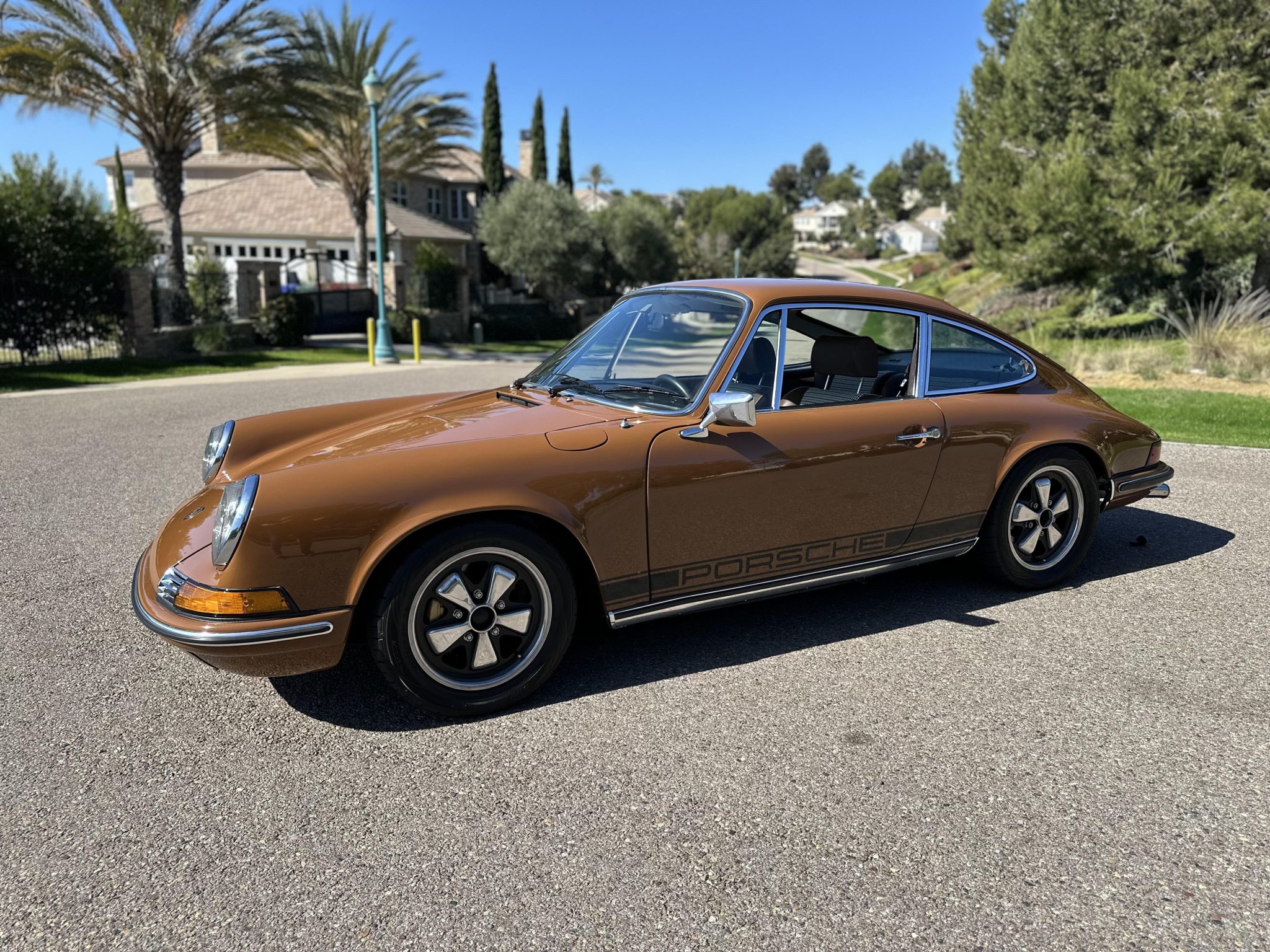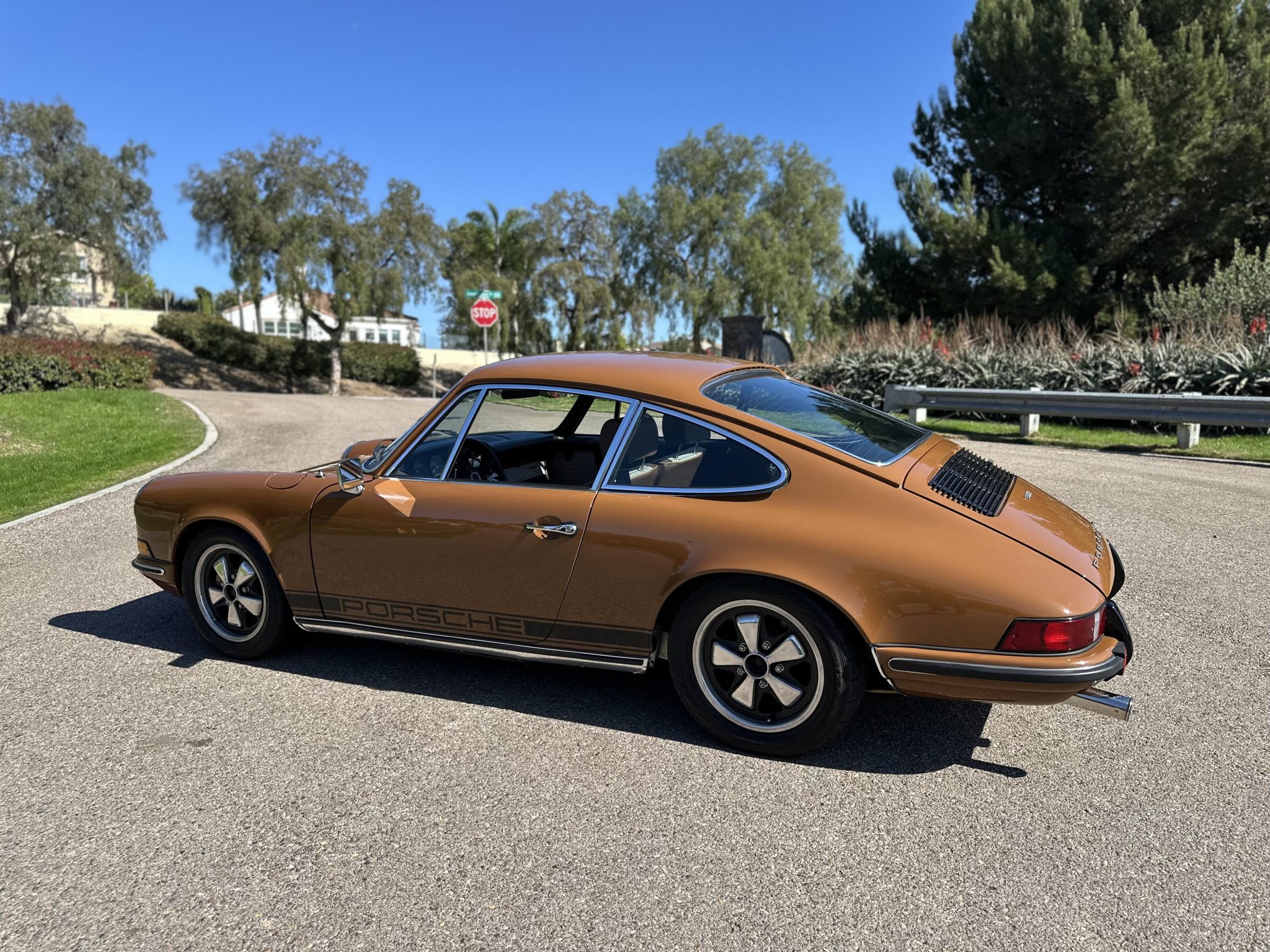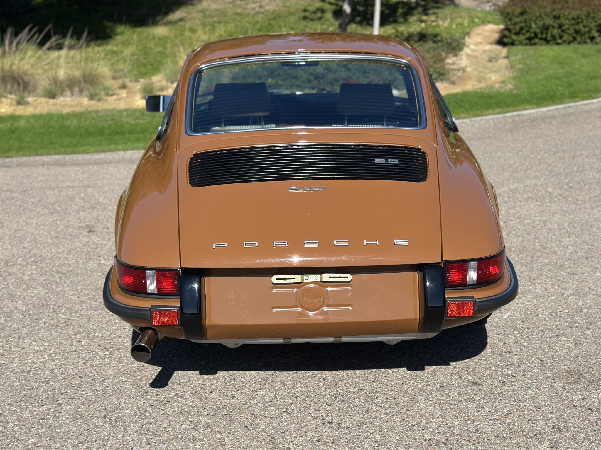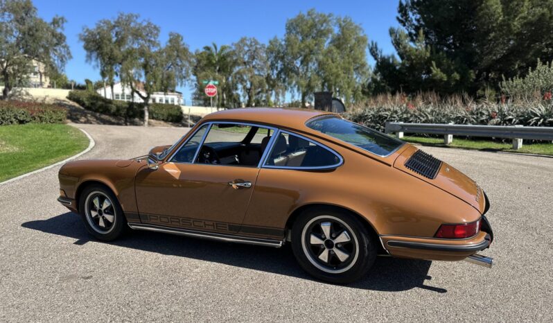 This 1972 Porsche 911T coupe was rebuilding the flat-six to displace 3.1 liters, replacing the 915 five-speed manual transaxle, installing a Wavetrac limited-slip differential, and replacing the SSI heat exchangers. Prior to the owner’s acquisition, PMO carburetors and Electromotive DFI ignition were installed, the exterior was refinished, and the interior was refreshed with brown leather upholstery with houndstooth inserts. Additional equipment includes 15″ Fuchs wheels, 911S-type front brake calipers, revised suspension, LED H4 headlights, a MOMO Prototipo steering wheel, and a Bluetooth stereo.