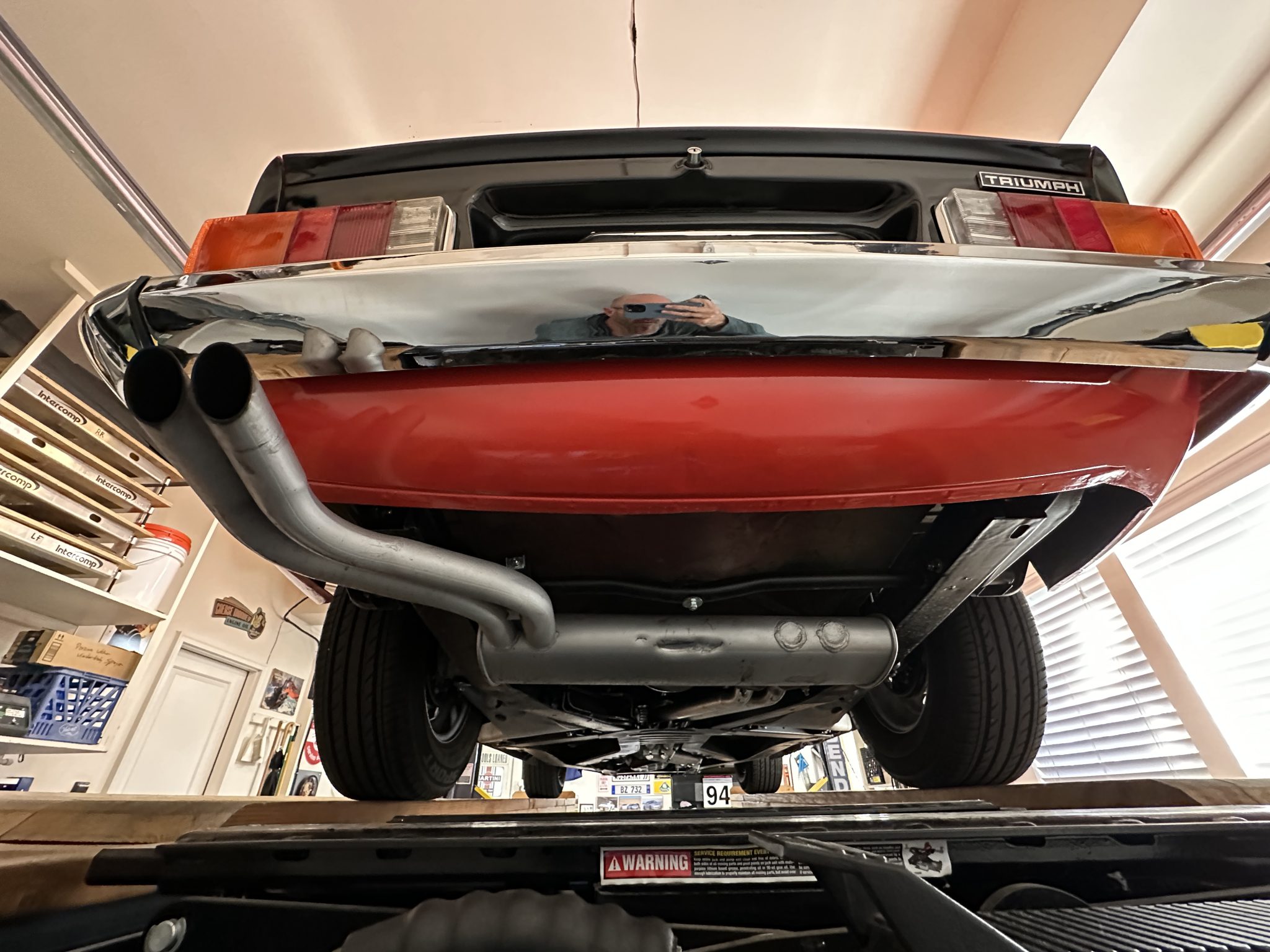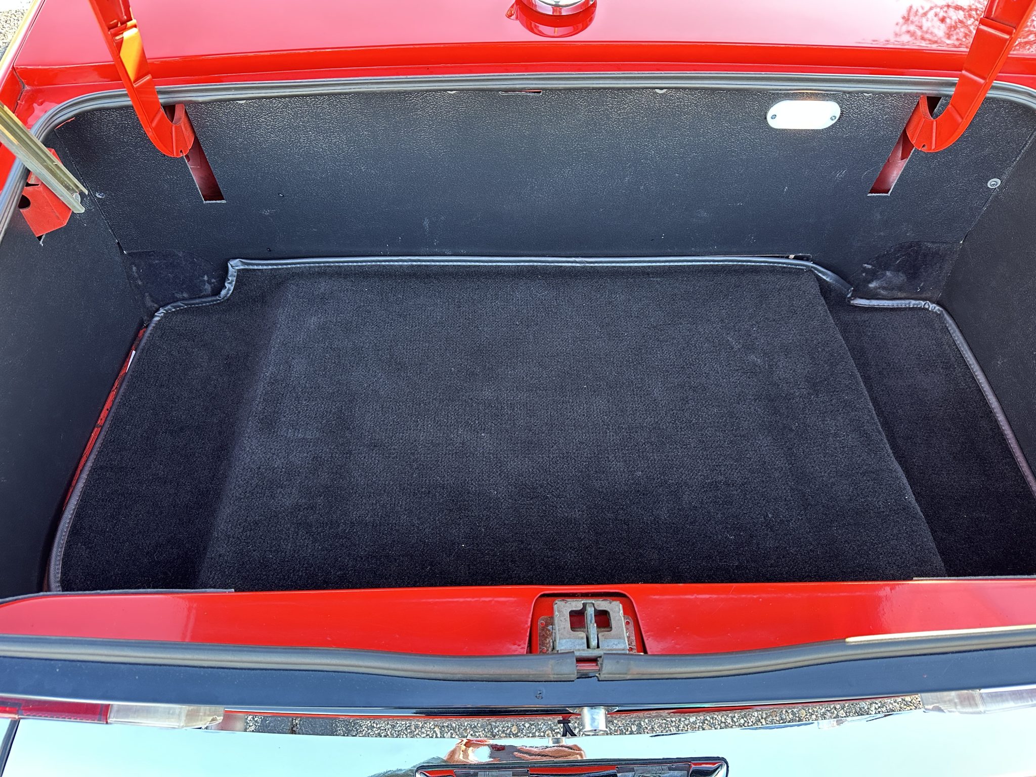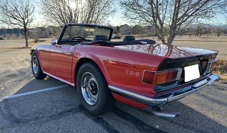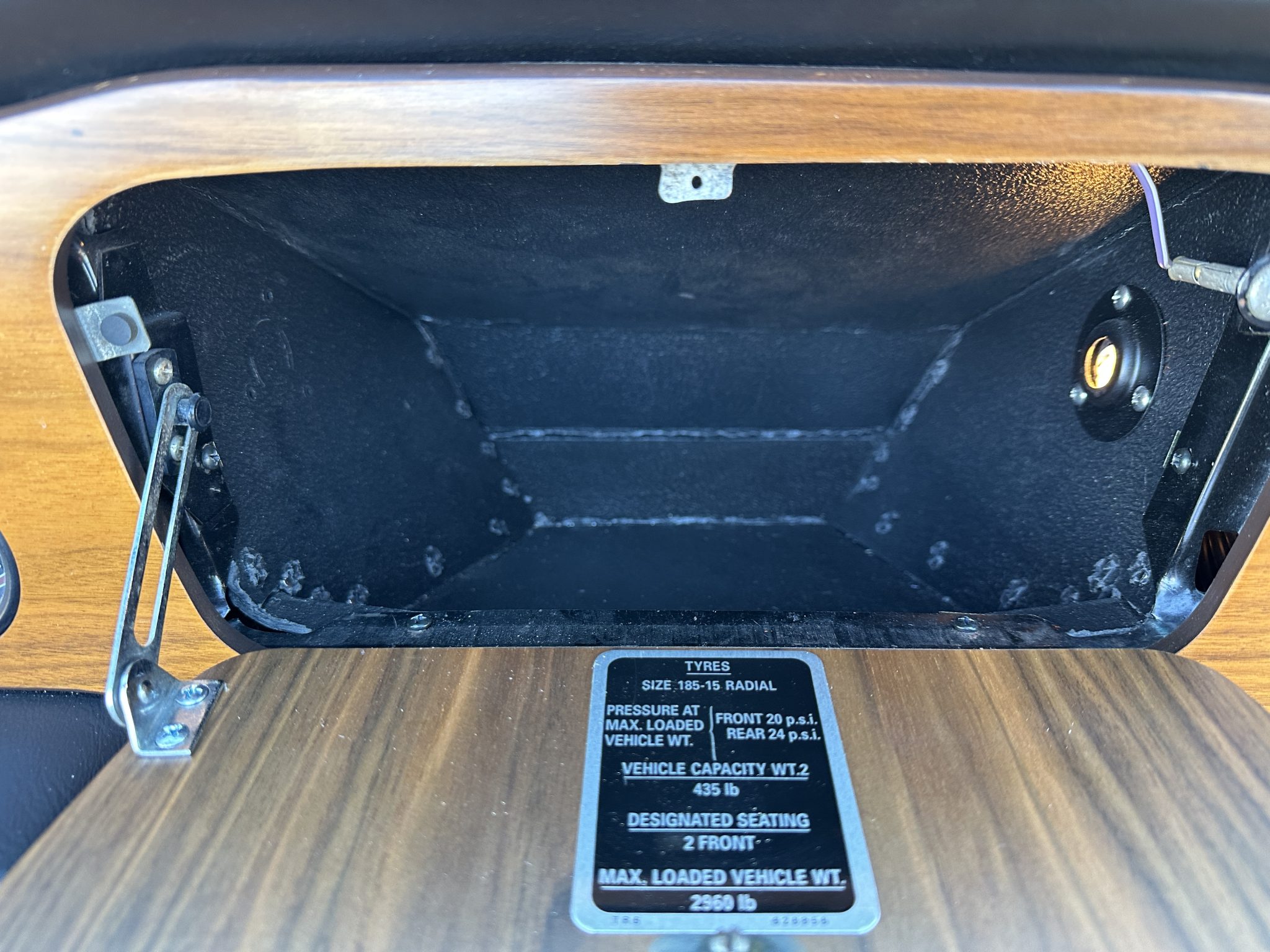 Finished in Pimento Red over black vinyl, the car is powered by a 2.5-liter inline-six paired with a four-speed manual transmission. Equipment includes a mild camshaft, Petronix electronic ignition, a spin-on oil filter conversion, K&N air cleaners, dual SU carburetors, a stainless-steel exhaust system, adjustable rear trailing arm brackets, a rear tube shock conversion, front disc brakes, 15″ steel wheels, a front chin spoiler, a black soft top, chrome bumpers, a cabin heater, and crank windows. The tires were replaced in preparation for the sale.