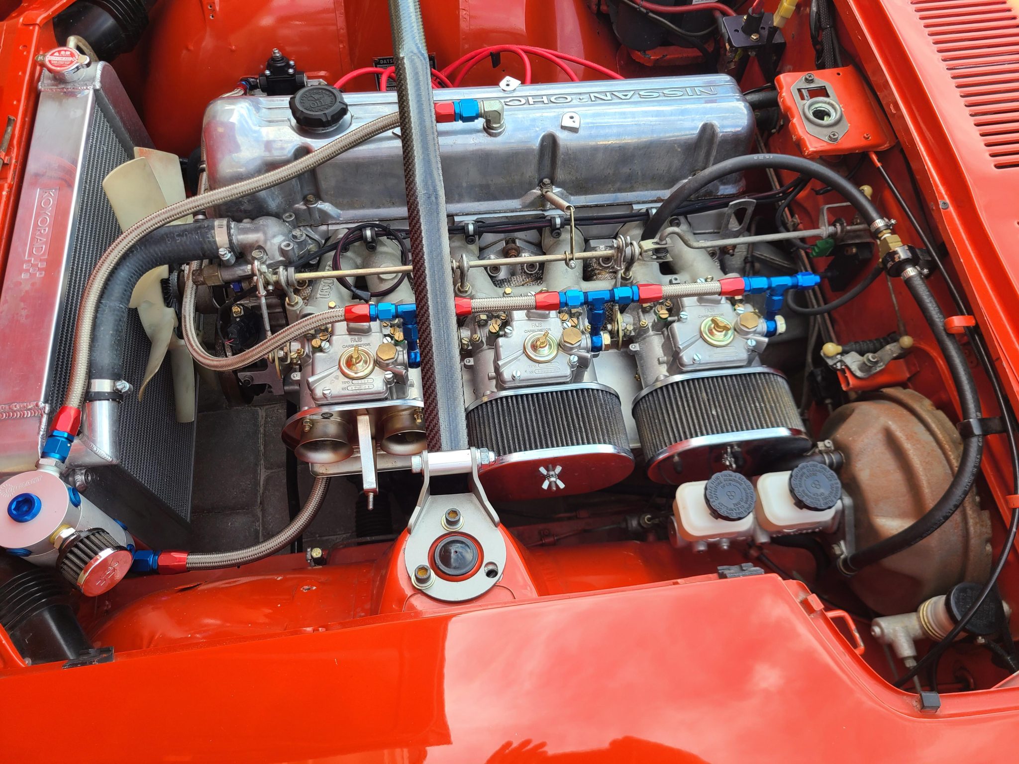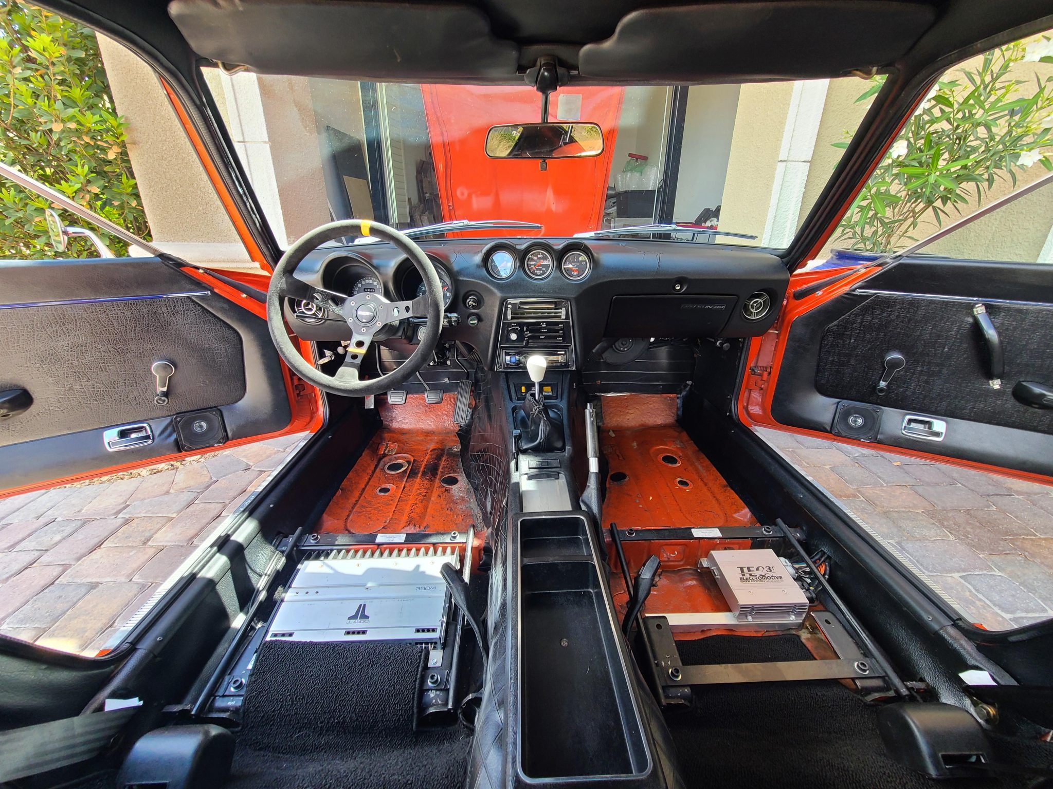 This 1973 Datsun 240Z is fitted with a stroked 3.0L L-series inline-six that was sourced from Rebello Racing and is equipped with triple Weber-style carburetors and an Electromotive TEC3 engine management system. Shifting is via a five-speed manual transmission, and the car is equipped with Wolf Creek Racing stub axles and a 3.90:1 limited-slip differential from a Subaru Impreza. Additional equipment includes three-piece CCW 16″ wheels, Recaro LXW seats, Ground Control coilovers, front disc brakes, AutoMeter Sport Comp gauges, an Alpine head unit connected to amplified Focal and Yamaha speakers, and a Painless wiring kit.