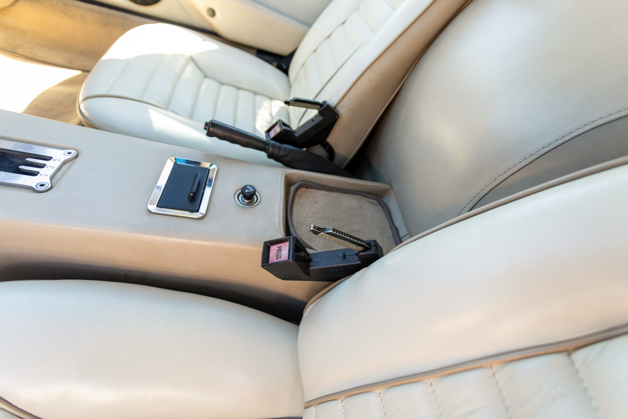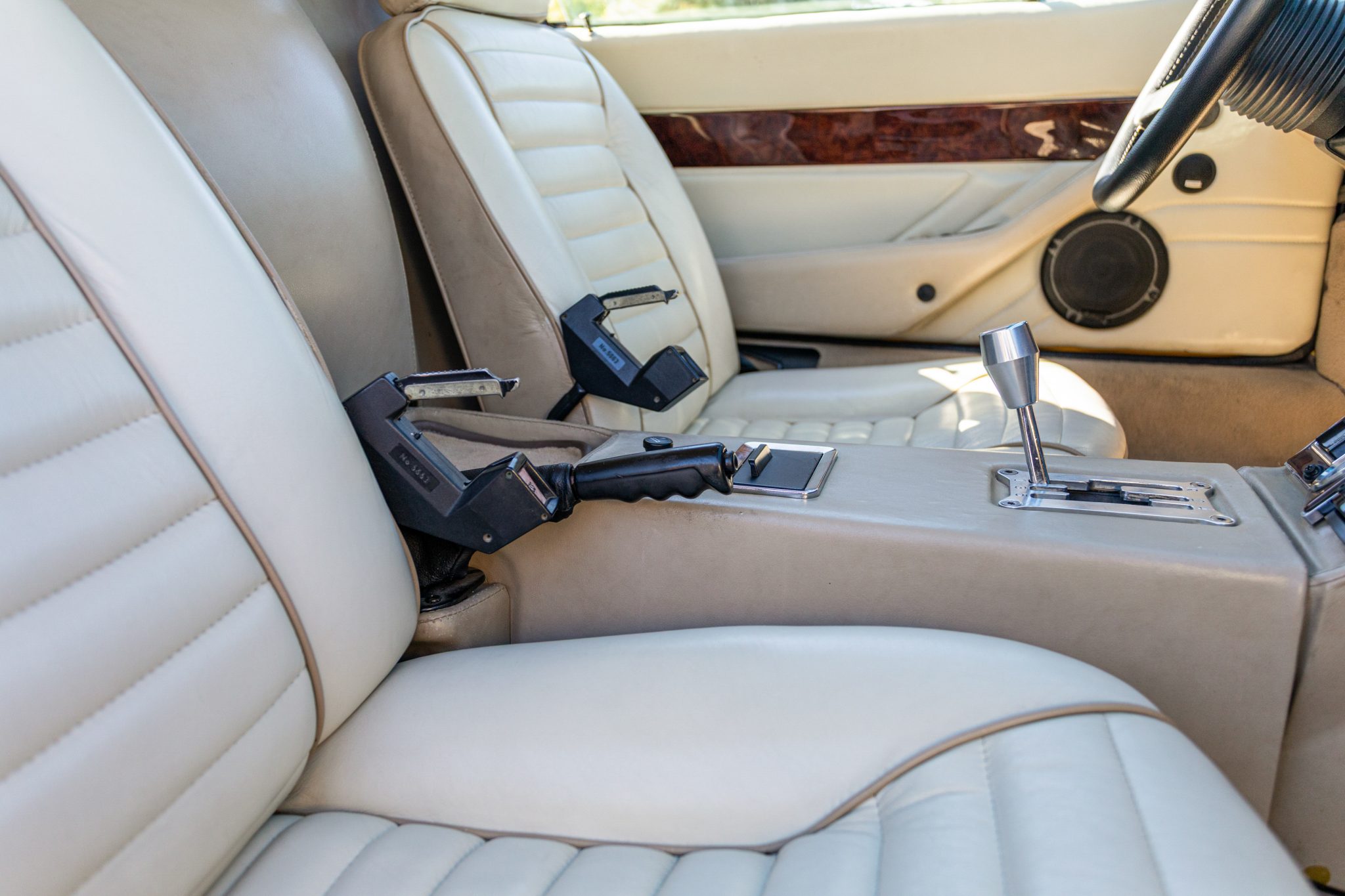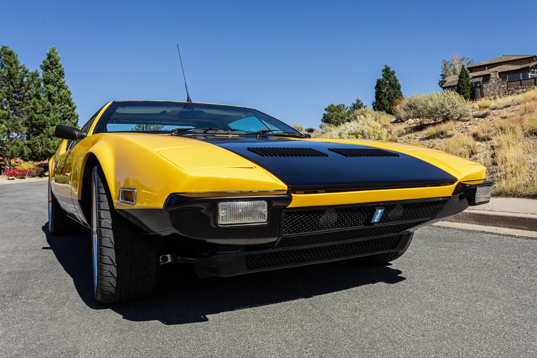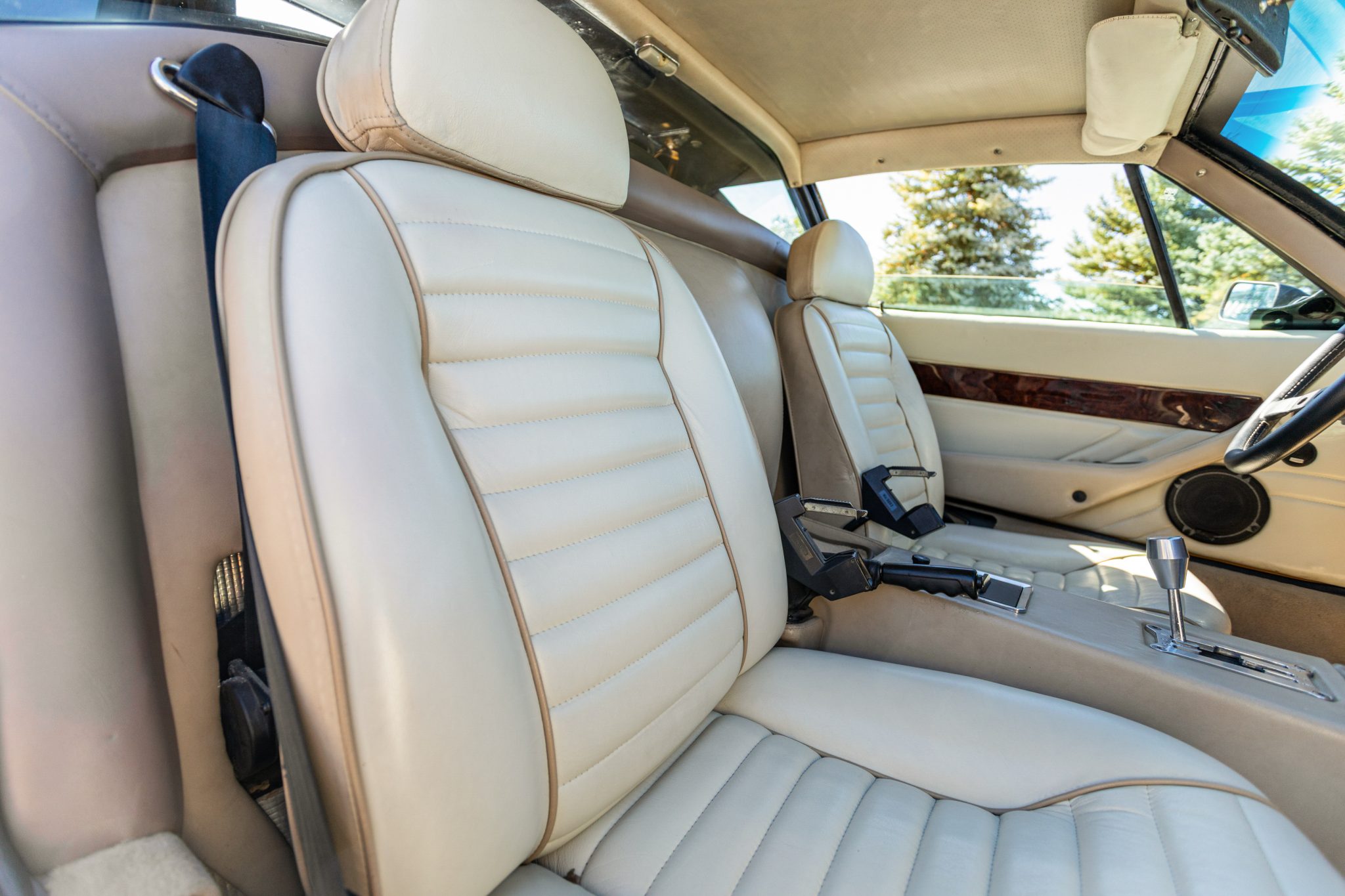Work involved an interior retrim and a rebuild of the 351ci Ford Cleveland V8 with roller rockers, ARP hardware, a Holley Demon carburetor, and a Brüllen exhaust system. The suspension was updated with aluminum control arms, Carrera shocks, and polyurethane sway bar bushings, and 17” Campagnolo-style wheels were also mounted. Inside, the cabin was re-trimmed in two-tone leather upholstery complemented by a MOMO steering wheel, Veglia Borletti gauges, and Wilton wool carpets along with air conditioning and a Bluetooth-capable Sony CD head unit.