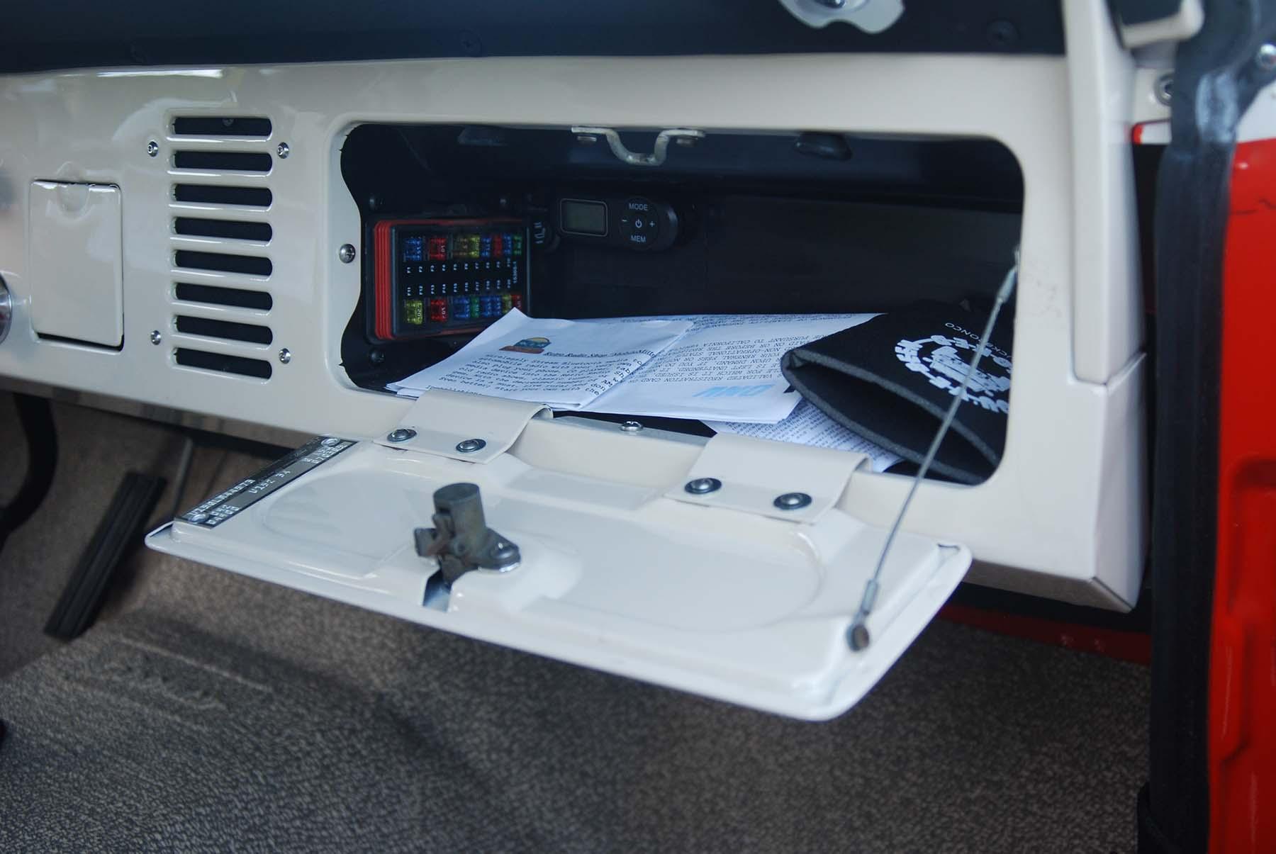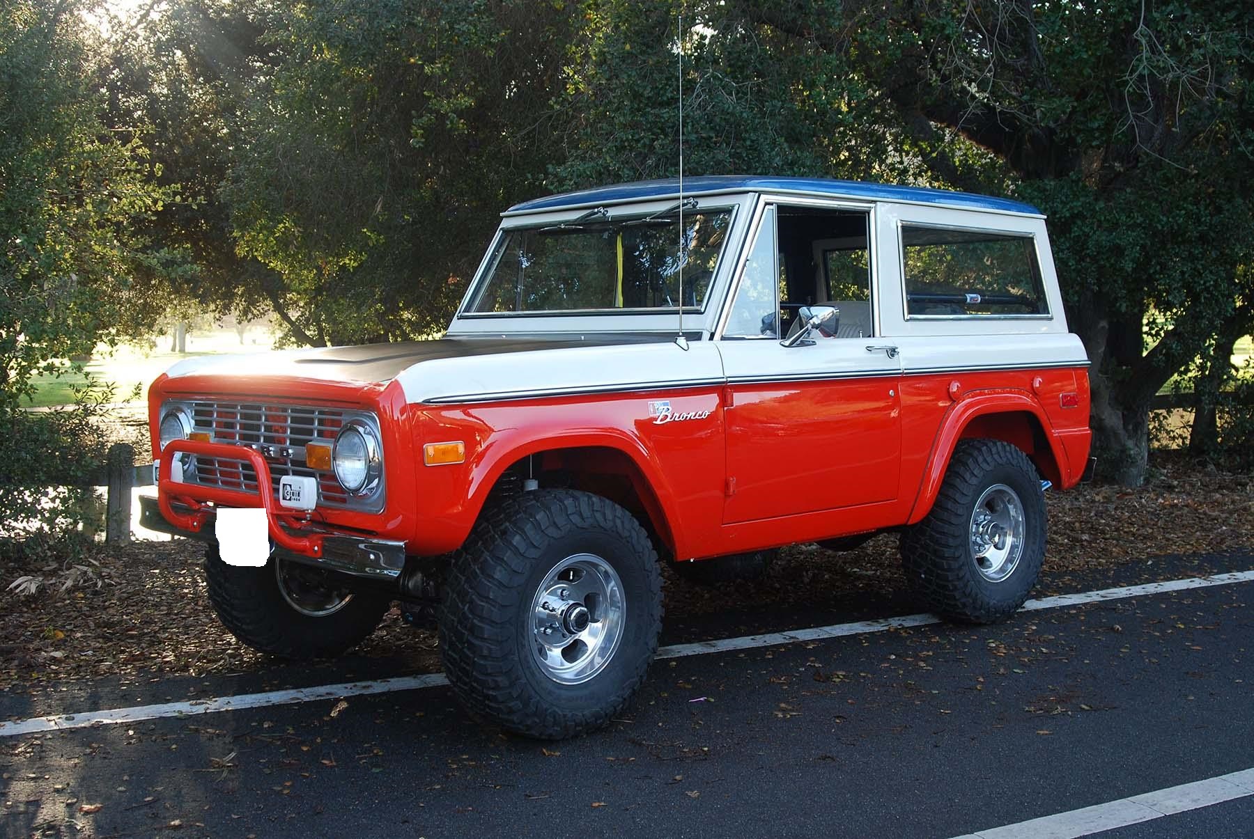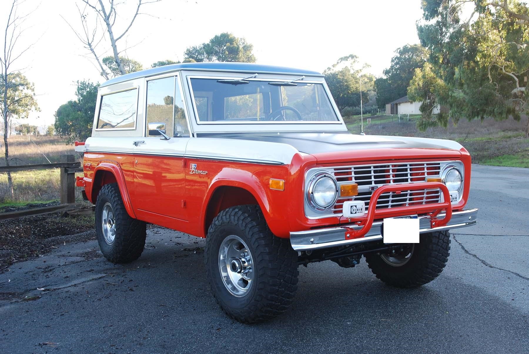 This 1973 Ford Bronco is one of a limited number of Baja models produced between 1971 and 1975 to commemorate victories in the Baja 500 and Baja 1000 by Bill Stroppe-prepared Broncos. the truck was subsequently refinished in red, white, and blue and fitted with a 5.0-liter V8 that was sourced from a 1987 Ford Mustang and fitted with Edelbrock Pro Flo 4 fuel injection, Sealed Power hypereutectic pistons, and Eagle connecting rods. Limited-slip front and rear differentials were also installed along with 3.55:1 gear sets, 15″ US Mags Indy wheels, James Duff radius arms, and Wilwood four-wheel disc brakes. The three-speed automatic transmission is linked to a dual-range transfer case, and other details include manually locking front hubs, power steering, a removable hardtop, chrome bumpers, a “Cactus Smasher” pushbar, and Cibie auxiliary lights. Inside, heated front seats are trimmed in Parchment upholstery, and a Bluetooth module is located in the glovebox.