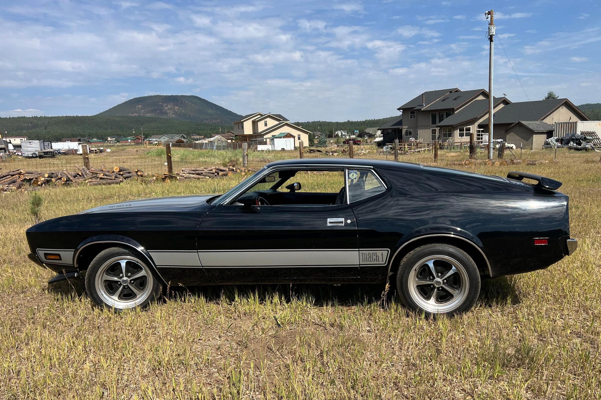This particular final model-year Mach 1 boasts a 4-speed manual transmission and a muscular 408-cubic-inch V8 that has reportedly been rebuilt. It also touts several nice upgrades, including a Holley Sniper II electronic fuel injection system, an MSD electronic ignition system, and 17-inch American Racing wheels.