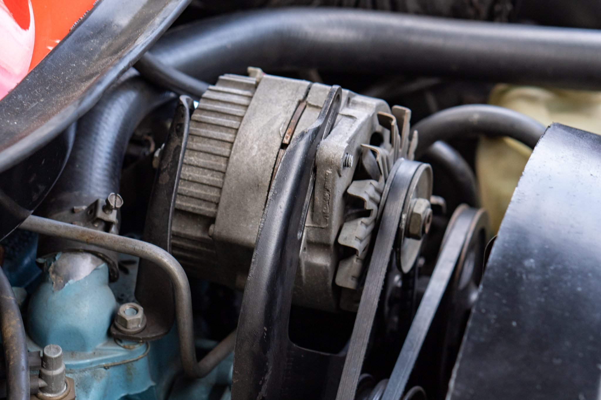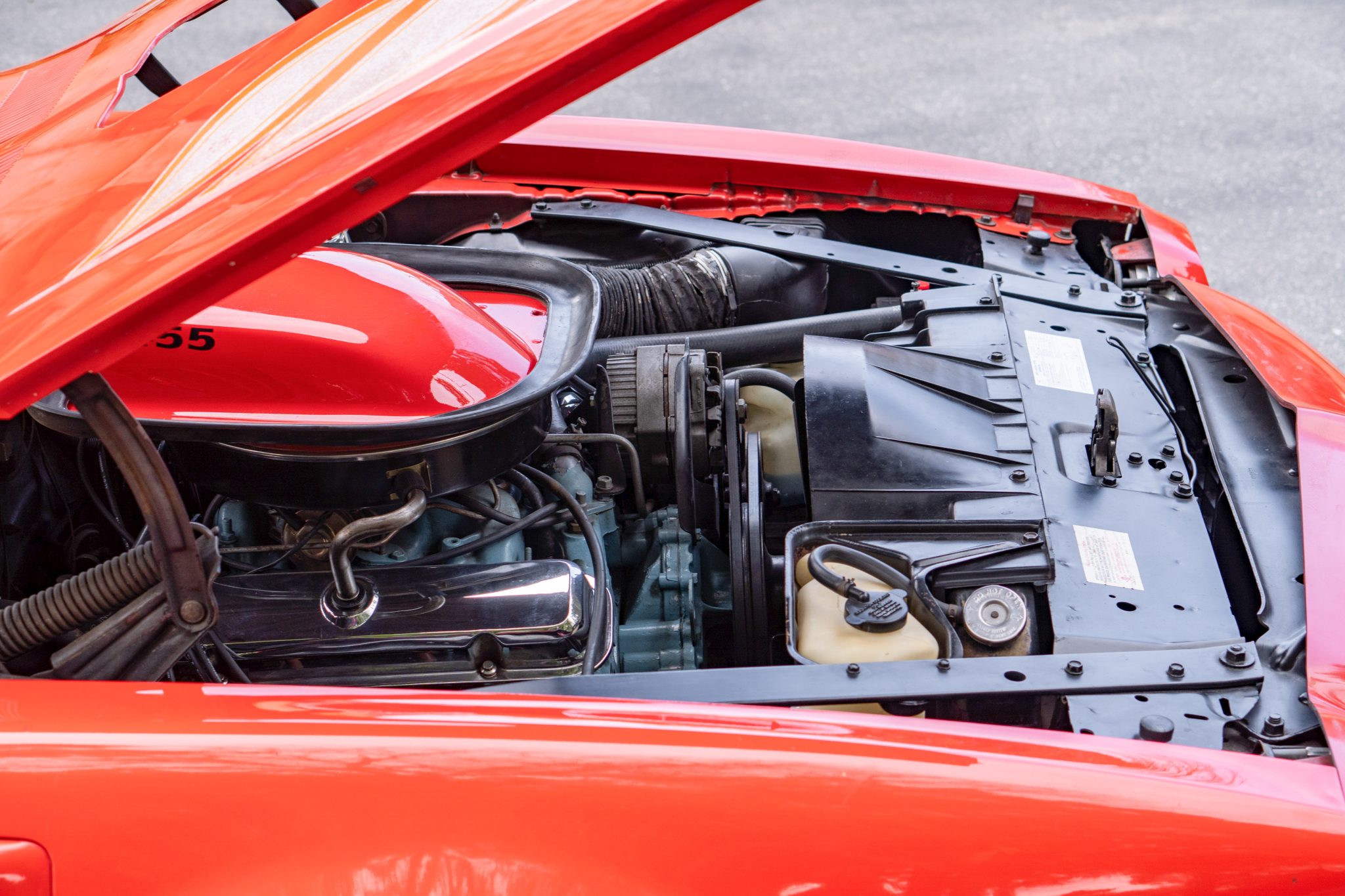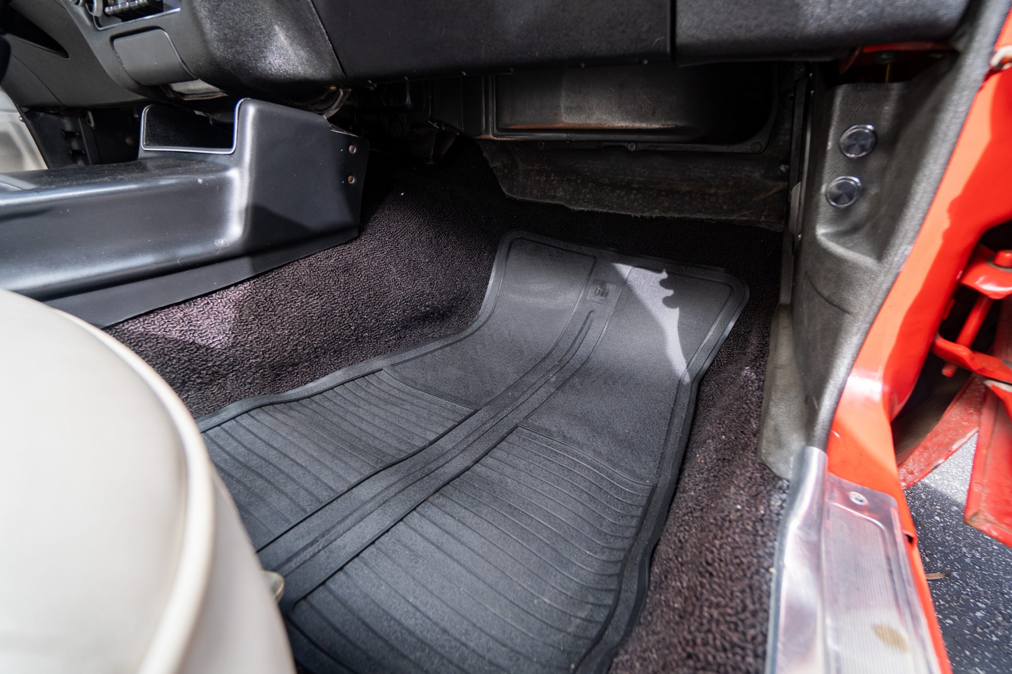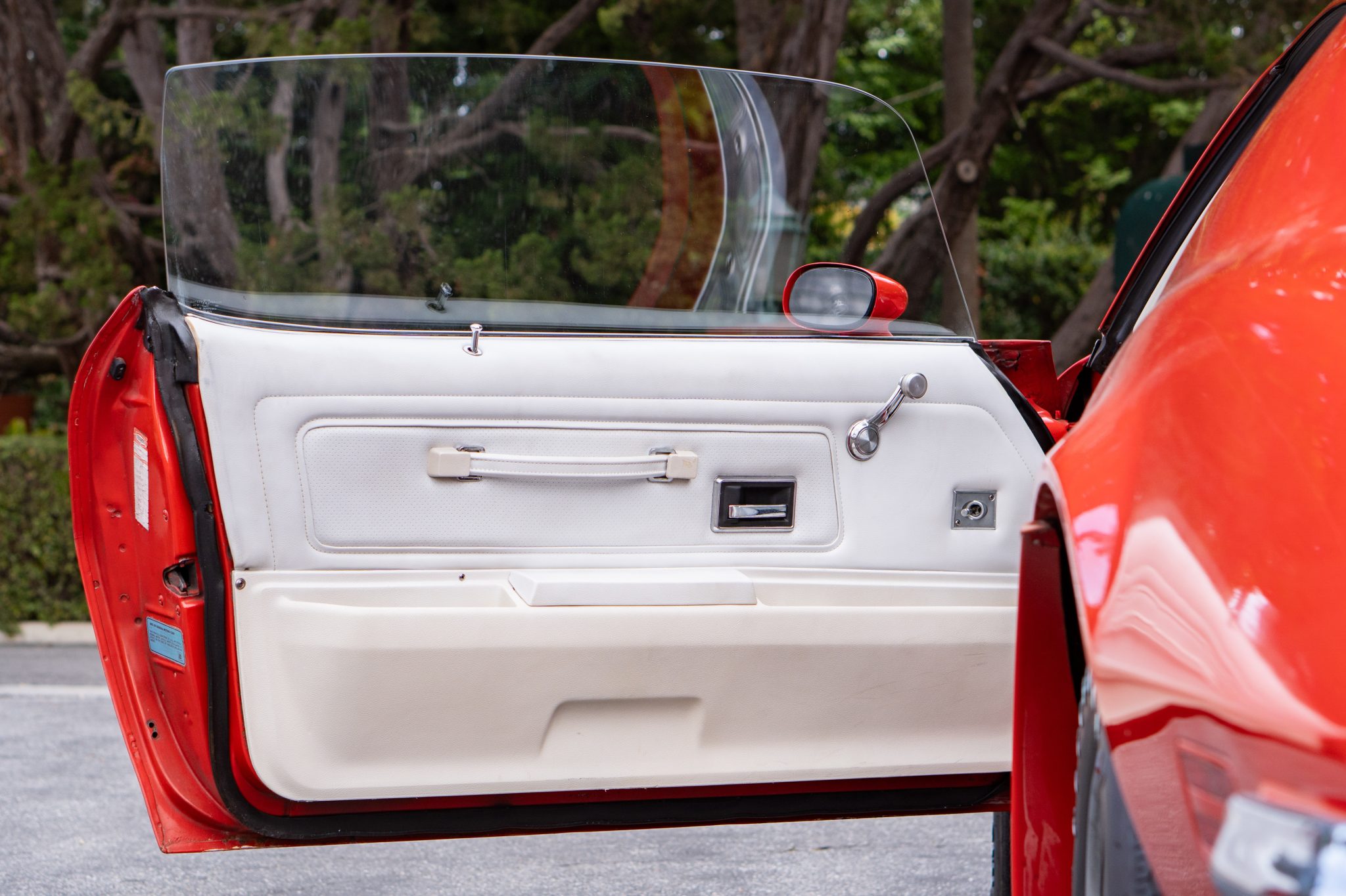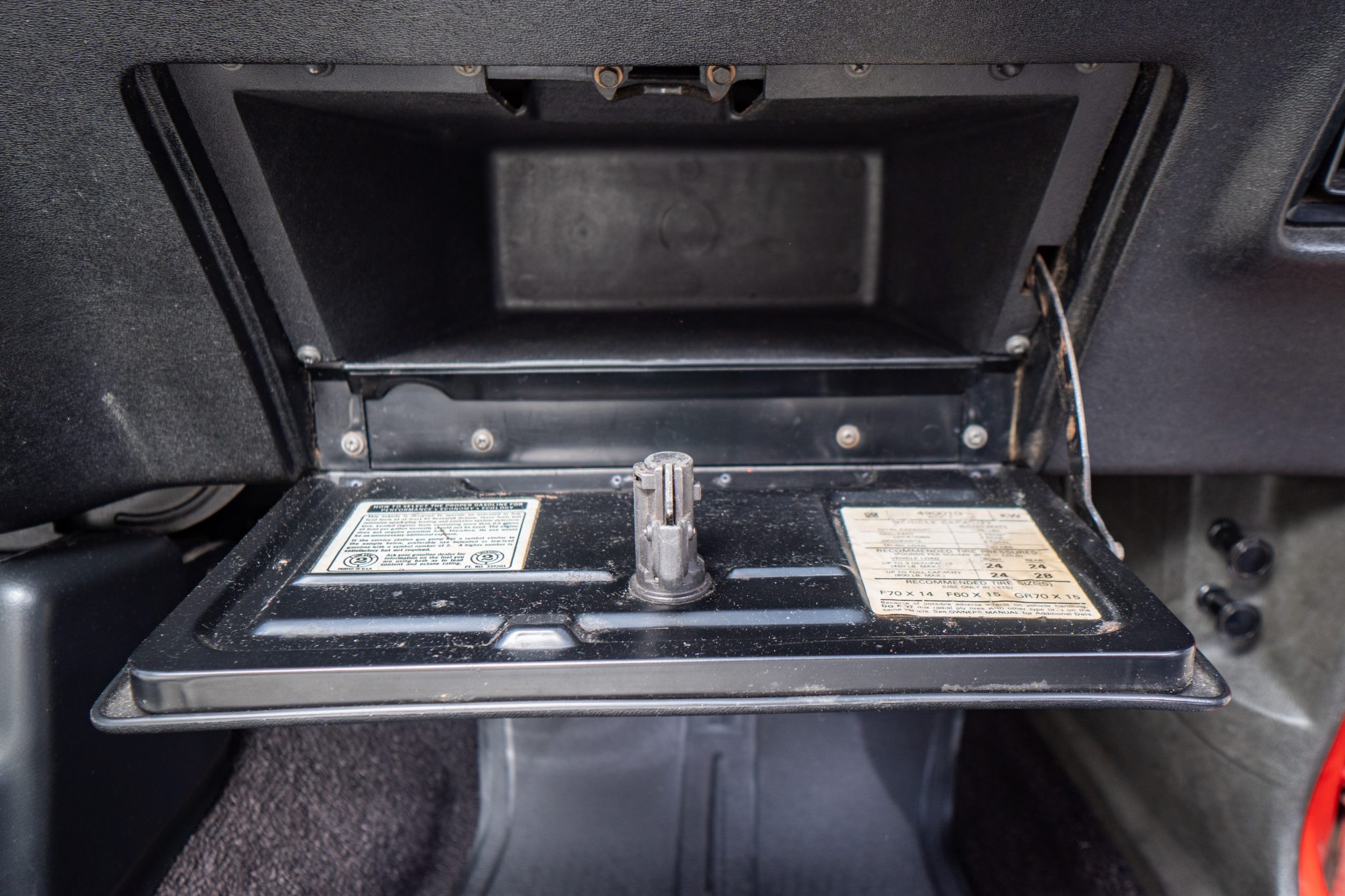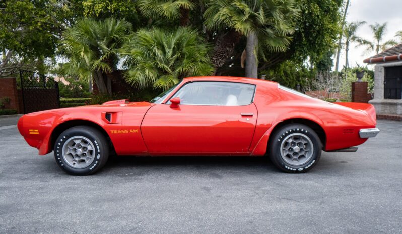 The car was optioned with a 455ci V8 linked to a Turbo Hydra-Matic three-speed automatic transmission and a Safe-T-Track limited-slip differential, and it is finished in Buccaneer Red over white vinyl. Equipment includes a shaker hood, a Trans Am hood decal, 15″ honeycomb-style wheels, power-assisted brakes, power steering, front bucket seats, an AM/FM radio, and a heater.