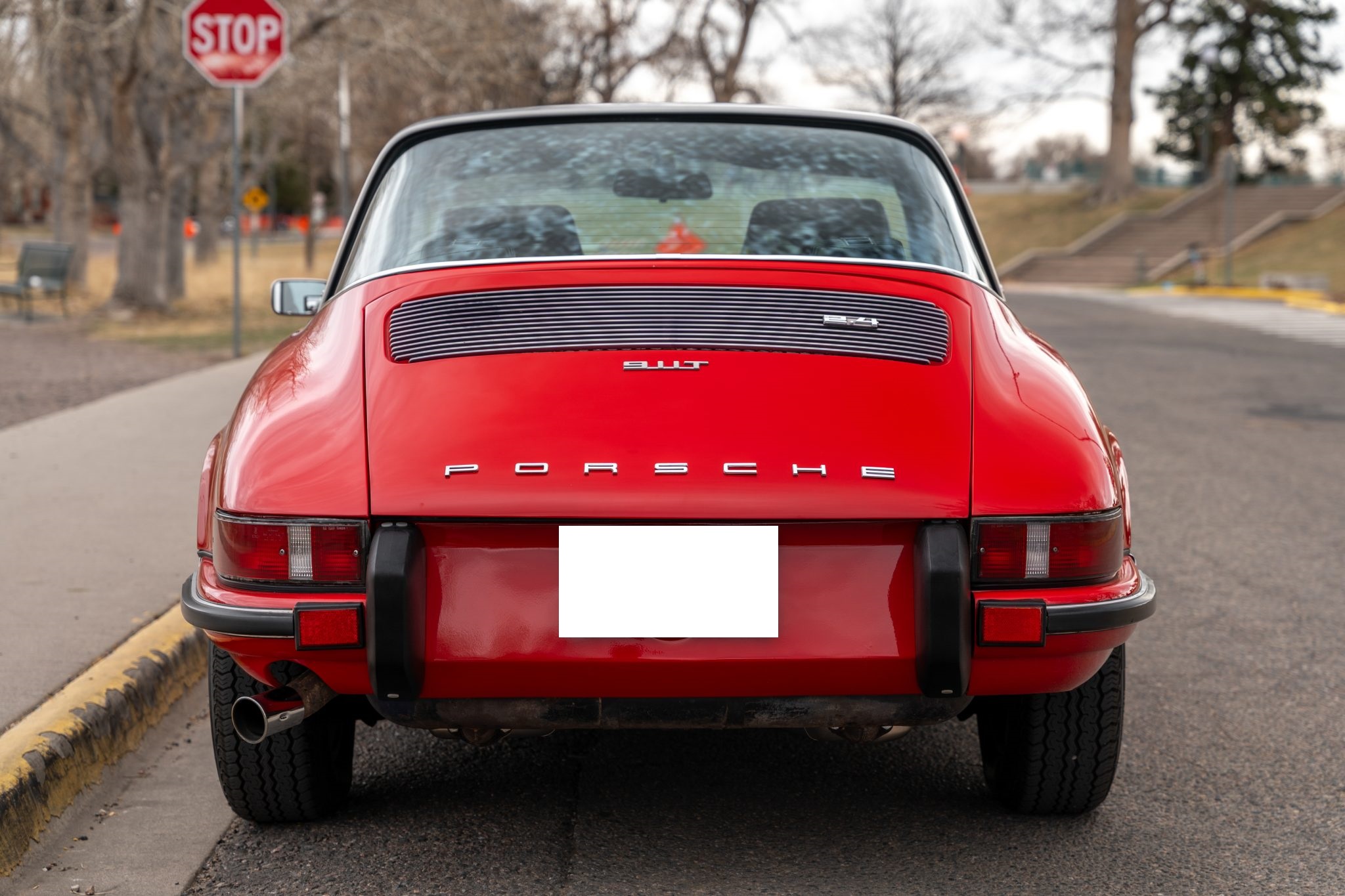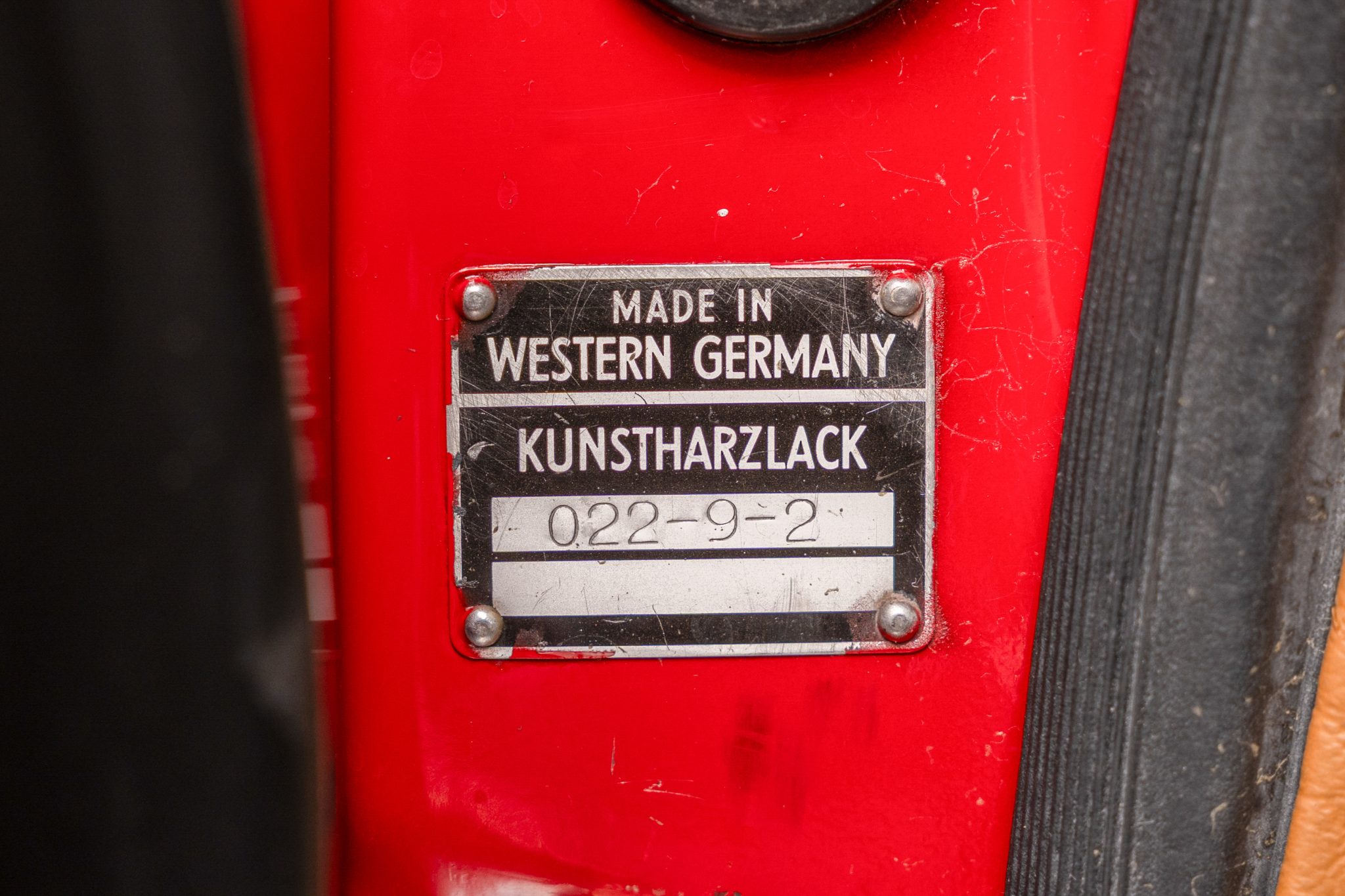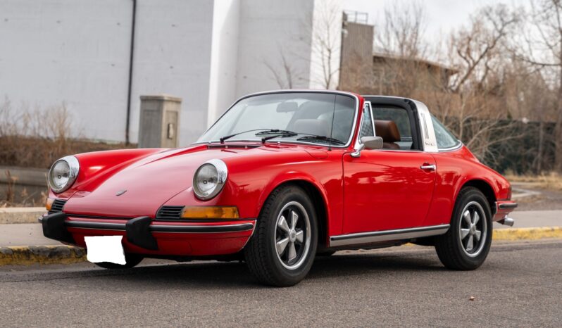 Work included rebuilding the air-cooled 2.4L flat-six and five-speed manual transaxle, refinishing the red exterior, and refreshing the brown vinyl and plaid fabric interior. The car is equipped with a removable black roof panel, 15″ Fuchs alloy wheels, four-wheel disc brakes, Bilstein dampers, oil-fed chain tensioners, square-weave carpeting, Recaro front seats, and a retro-style head unit.
