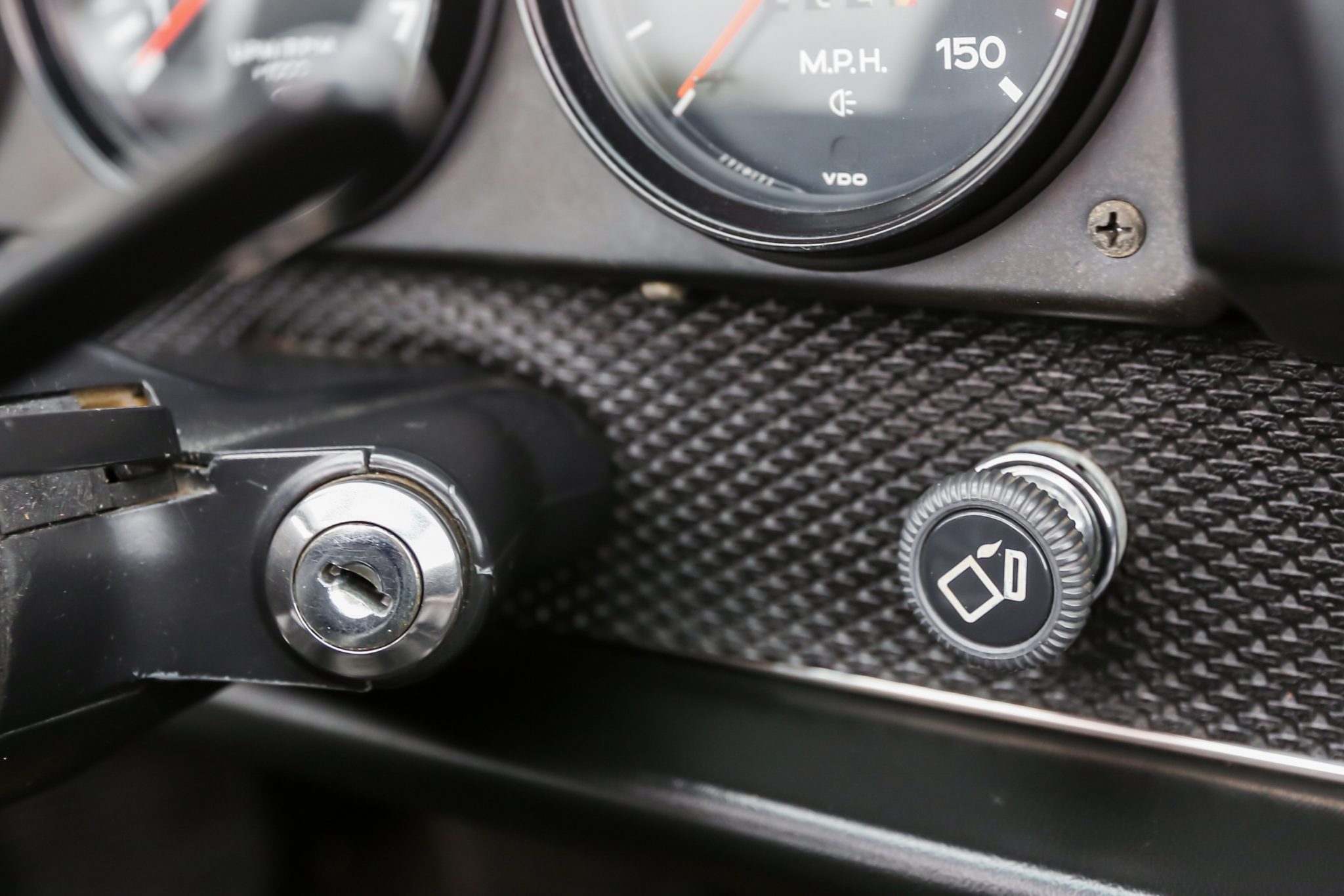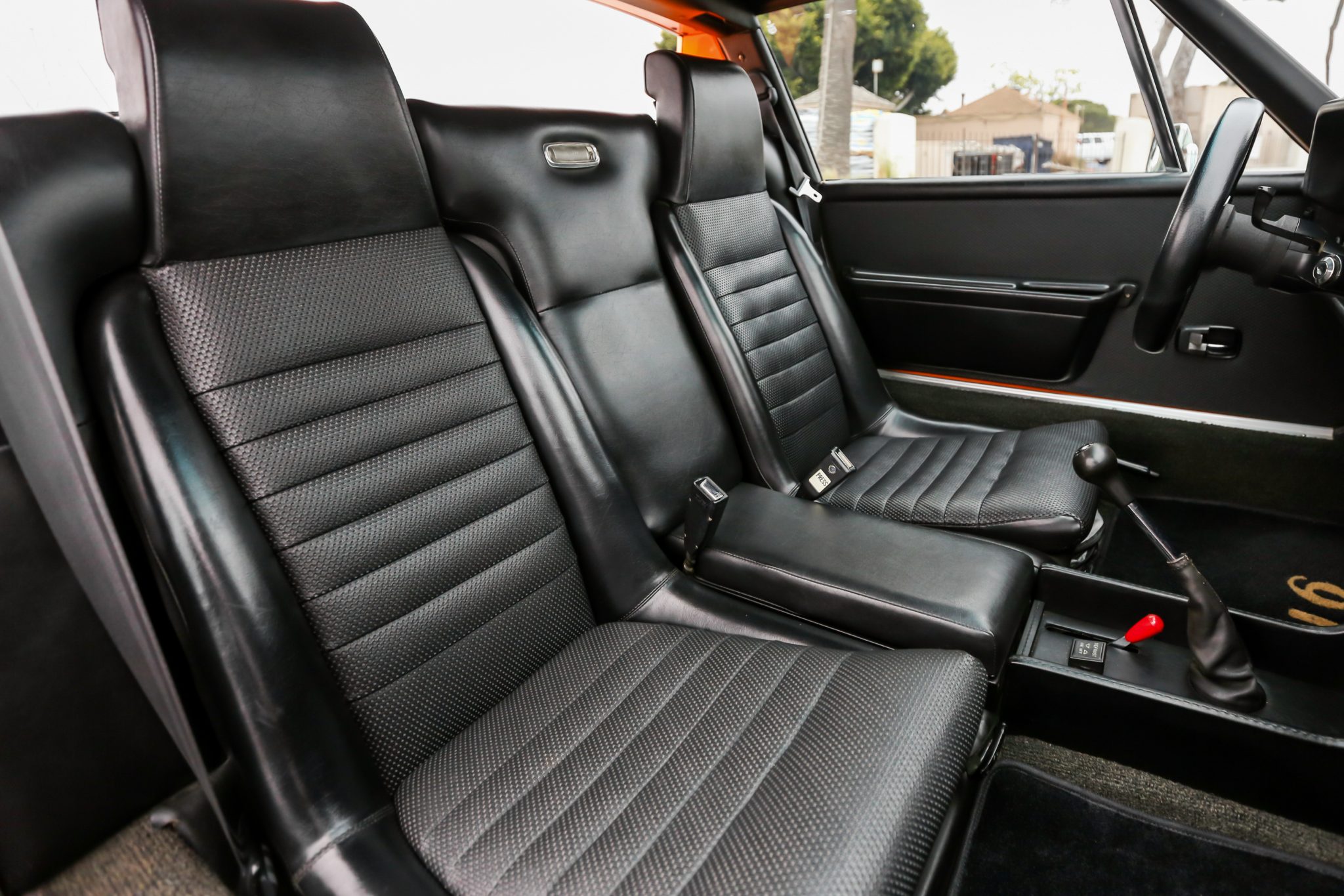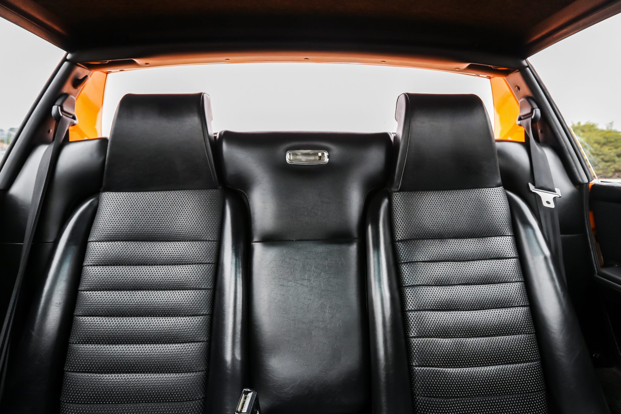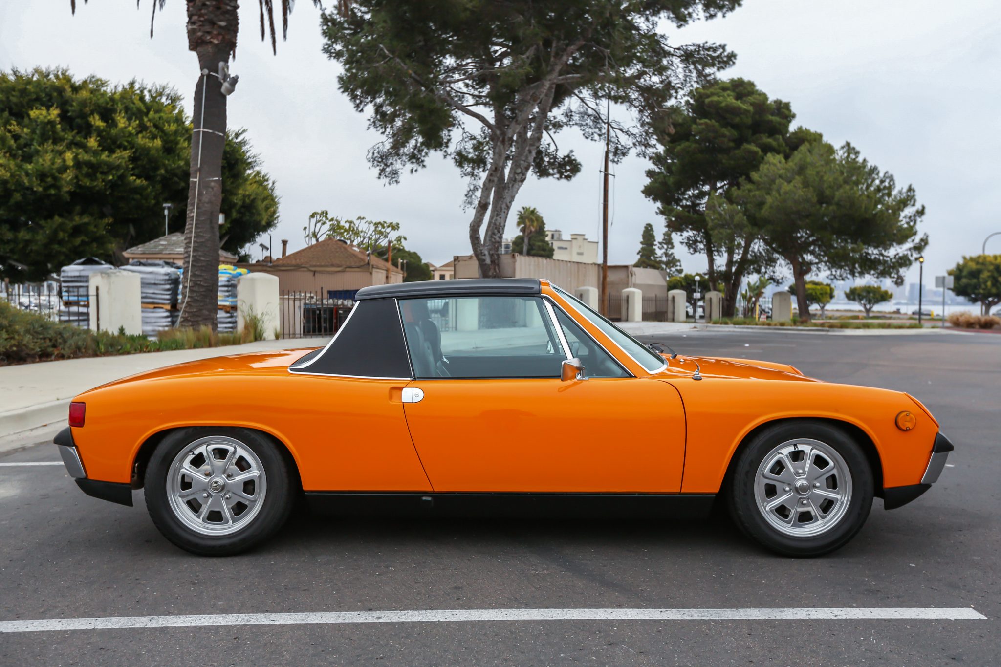 It is powered by a 2.0L air-cooled flat-four paired with a five-speed manual transaxle and is finished in orange over black vinyl upholstery. Equipment includes 15″ Fuchs-style alloy wheels, disc brakes, Elephant Racing PolyBronze suspension bushings, a removable Targa top, fog lights, a Kenwood cassette stereo, a cigarette lighter, and Bosch D-Jetronic fuel injection.