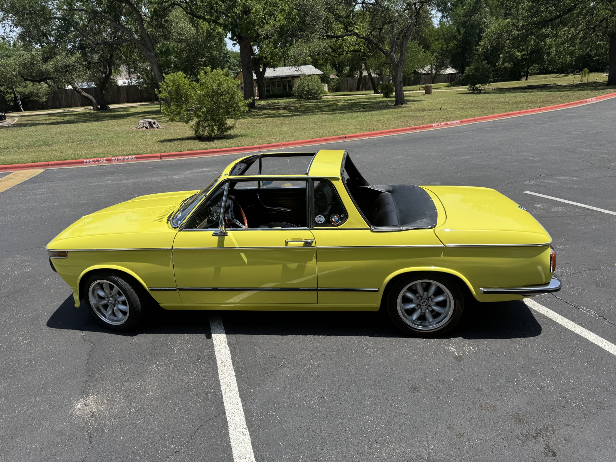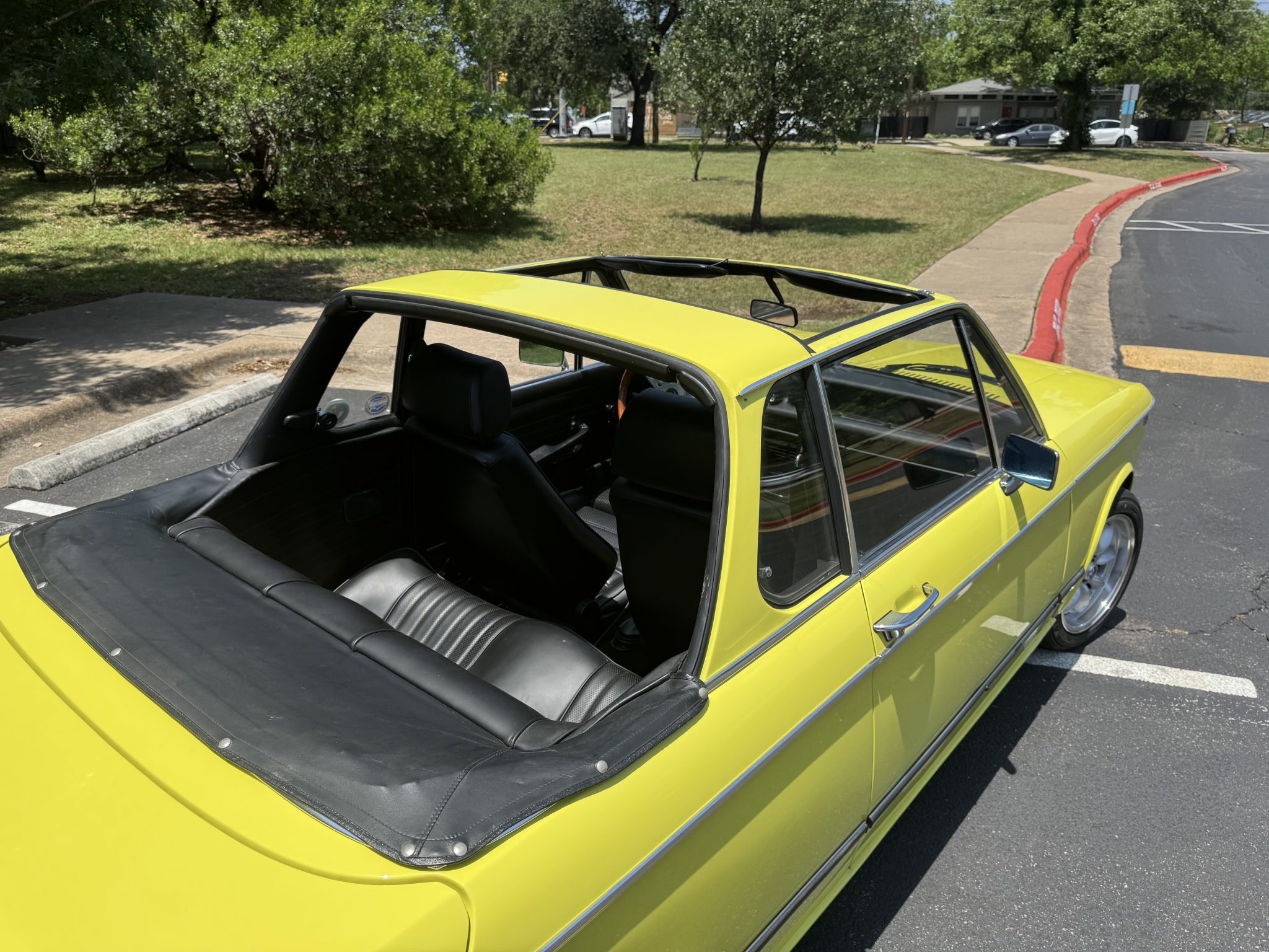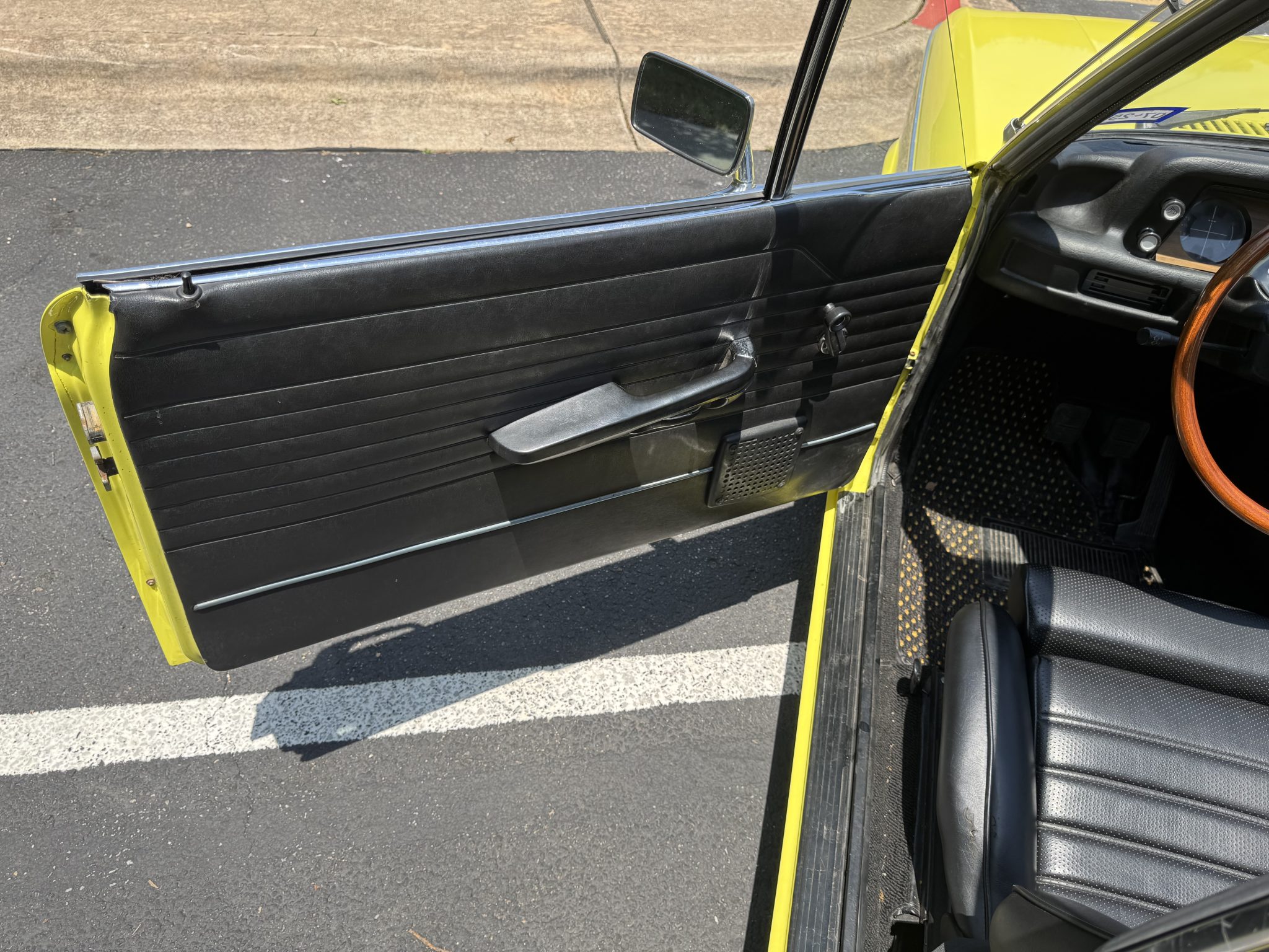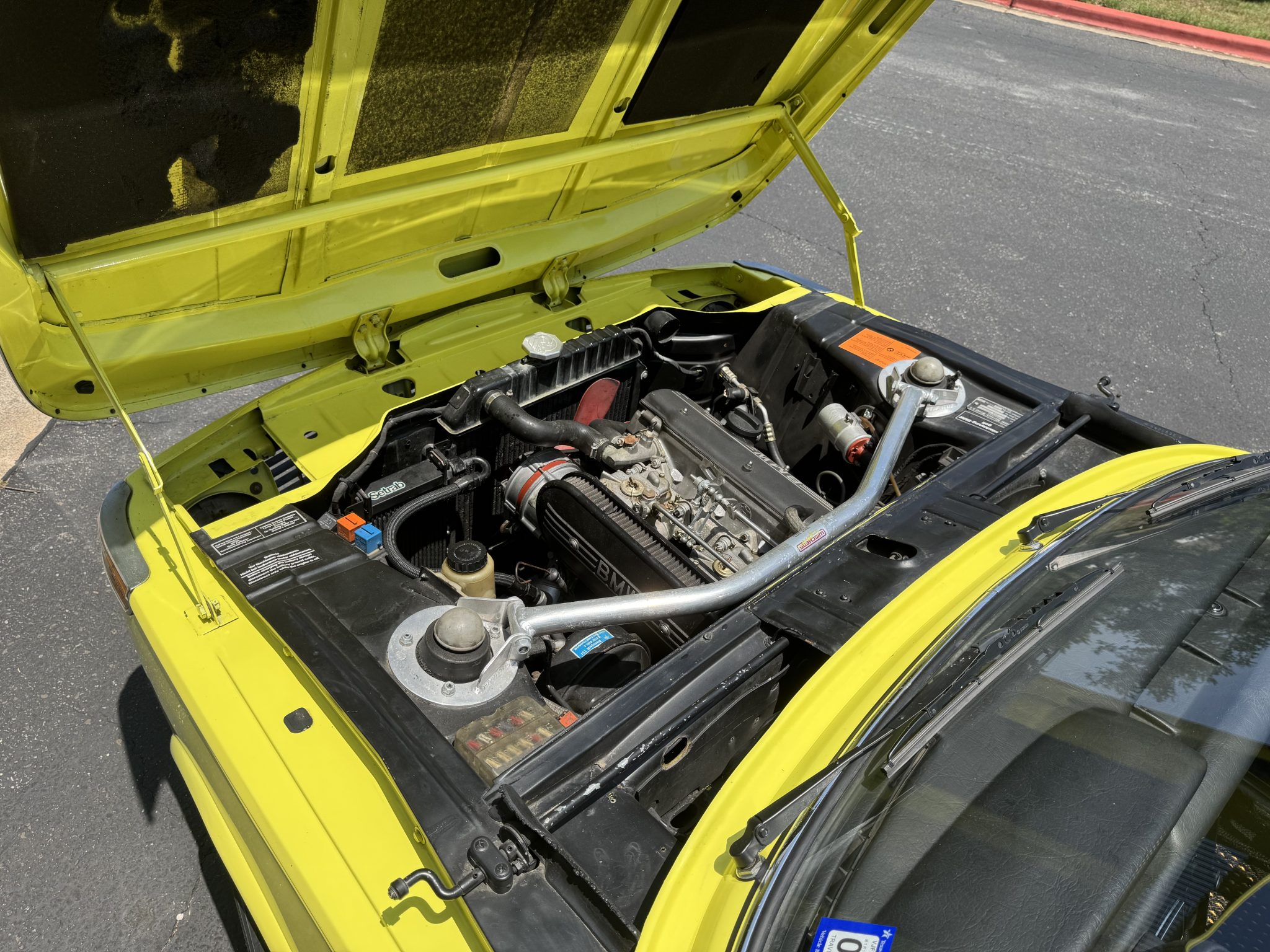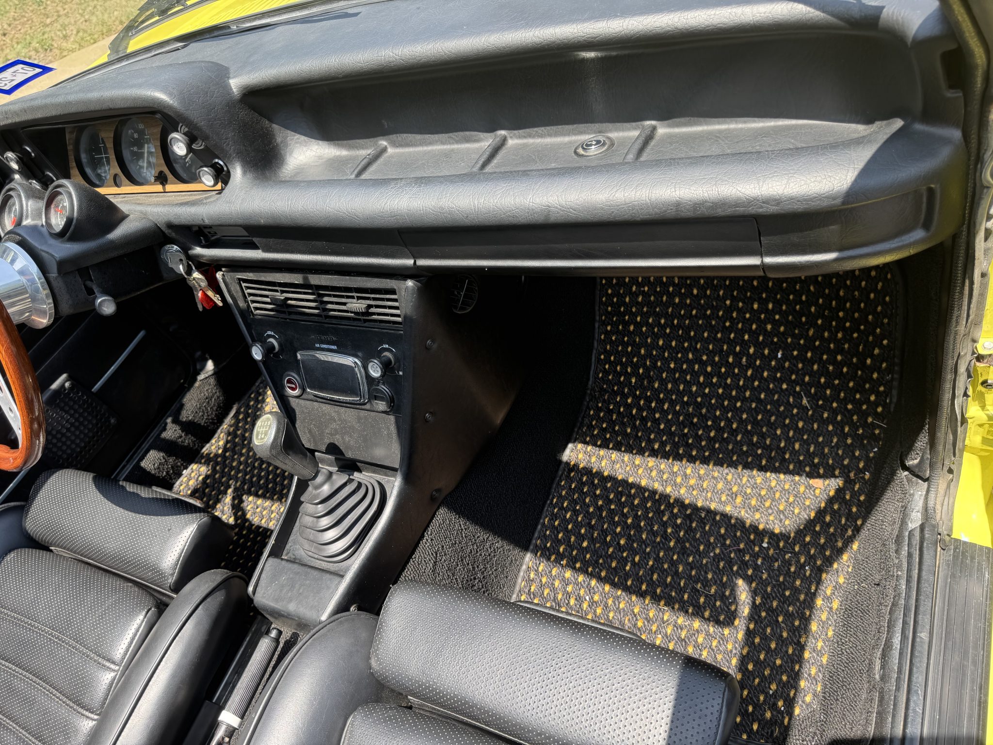Finished in Golf over black Skai vinyl, it was retrofitted with a 2.3-liter inline-four with Weber carburetors. It also features a Getrag 245 five-speed manual transmission, a limited-slip differential, Panasport-style 15″ wheels, Wilwood disc brakes, Recaro front seats, and air conditioning.