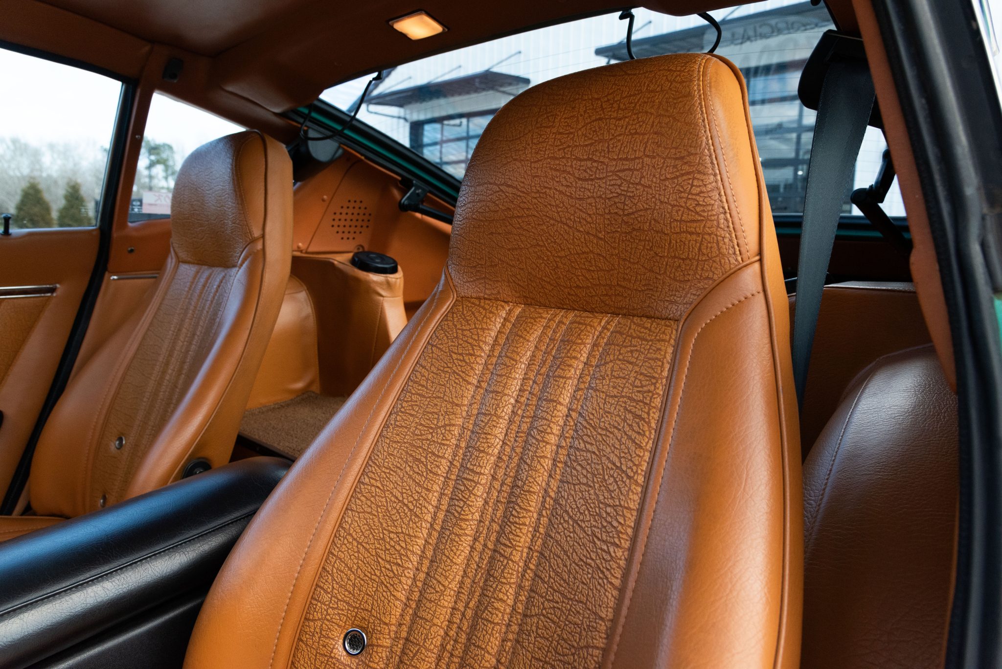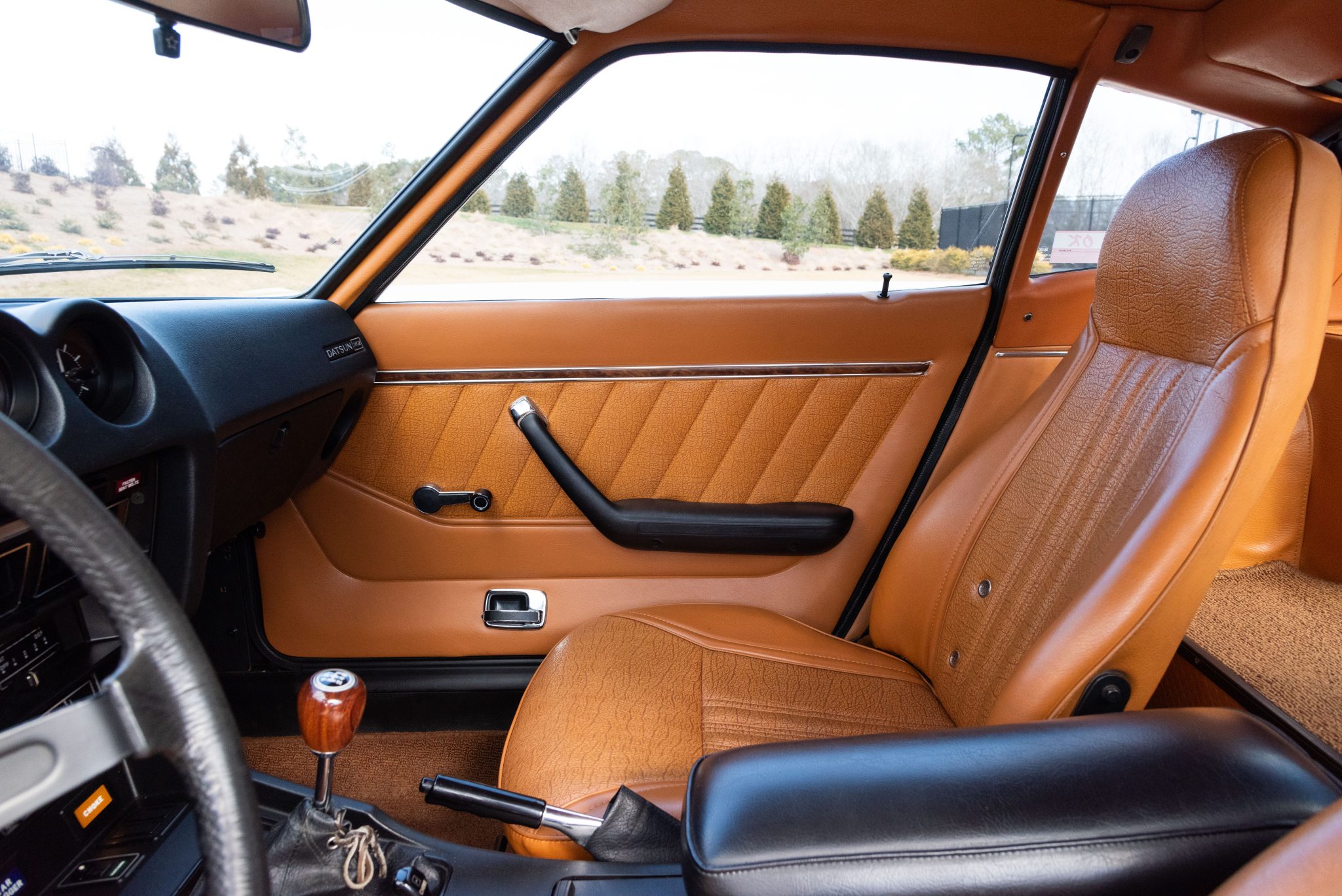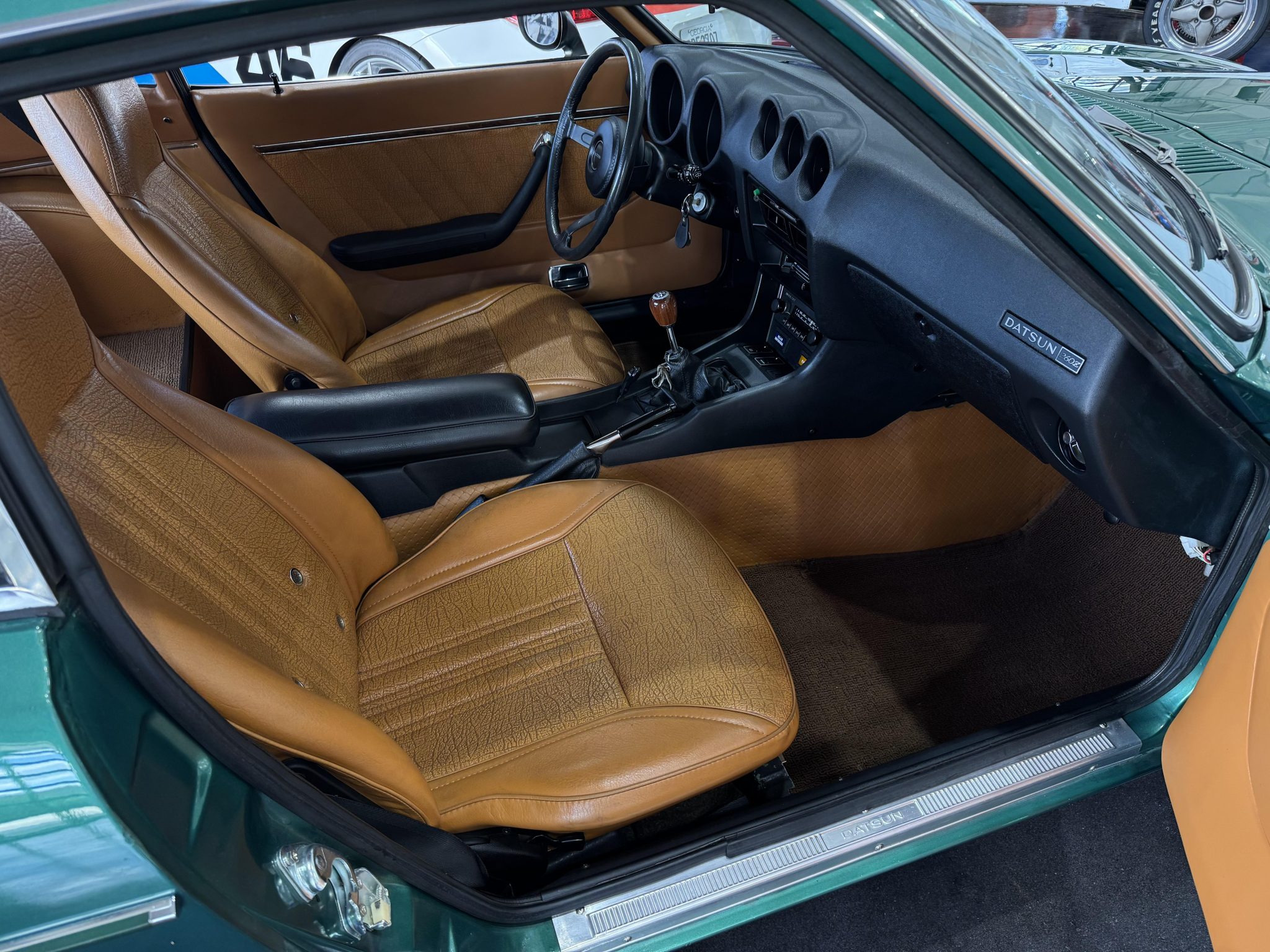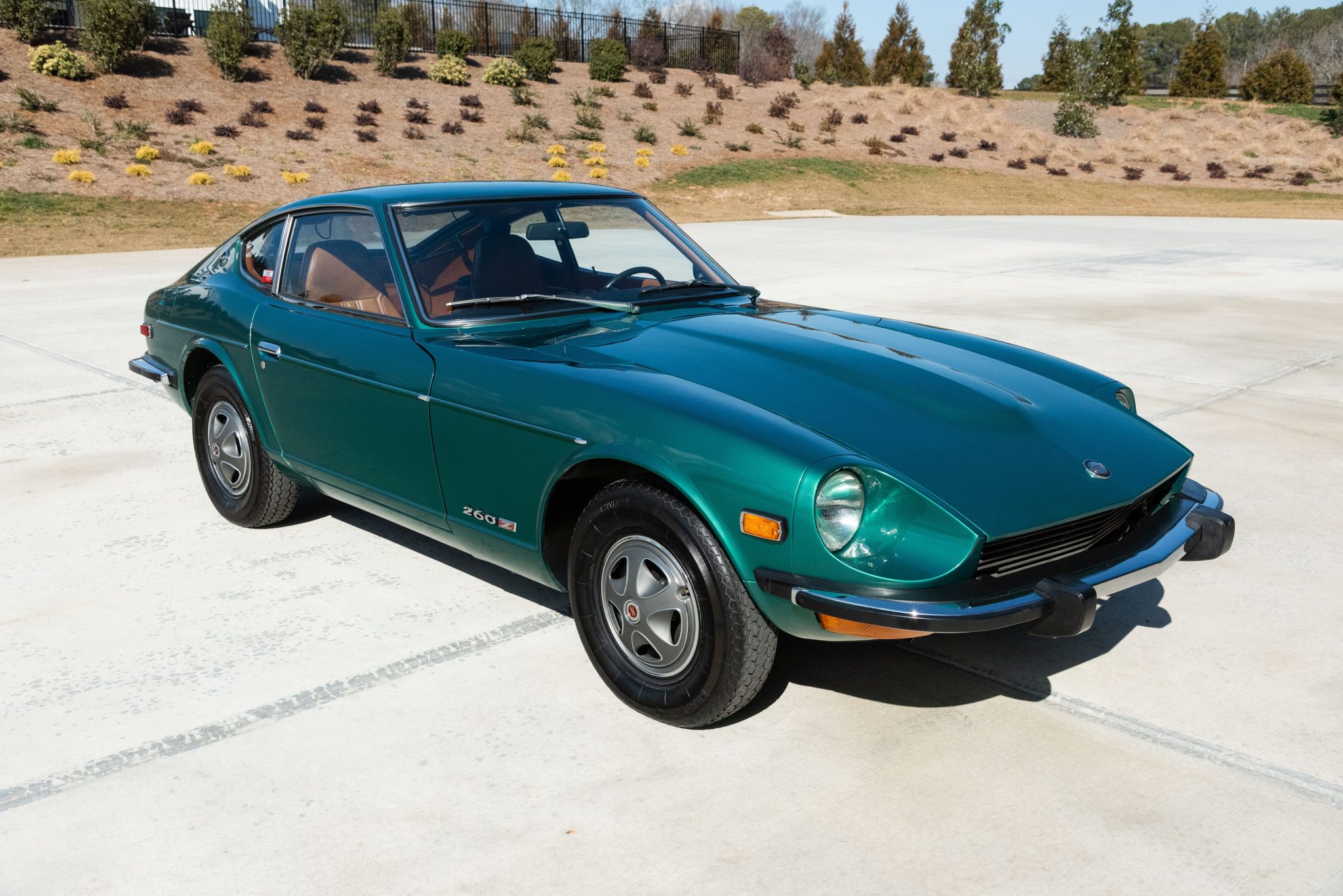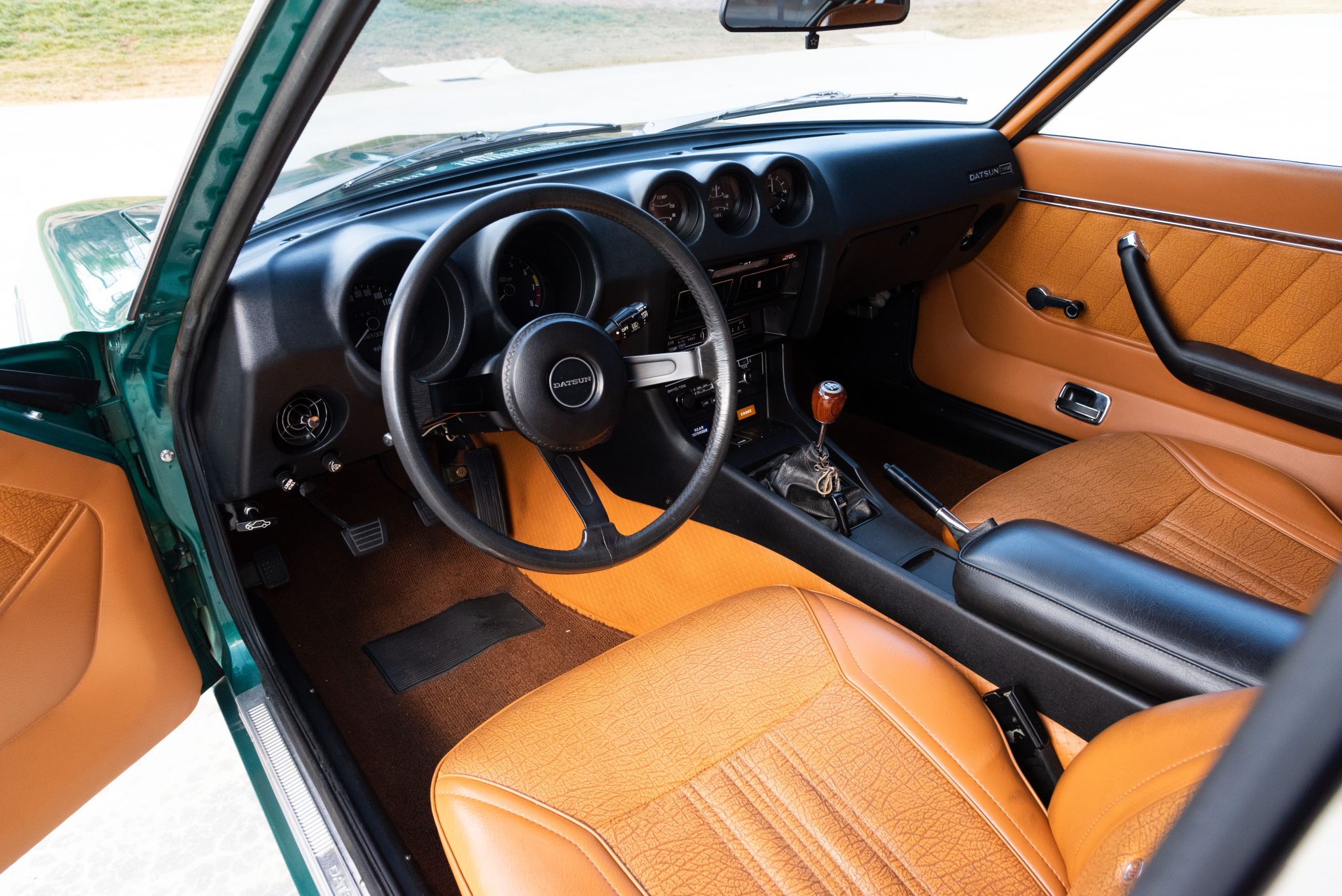 Finished in Emerald Green over tan vinyl upholstery, it is powered by a 2.6-liter inline-six paired with a four-speed manual transmission. Equipment includes 14″ steel wheels with full covers along with power-assisted front disc brakes, chrome bumpers, a power antenna, a rear window defroster, a Hitachi AM/FM radio, and air conditioning.