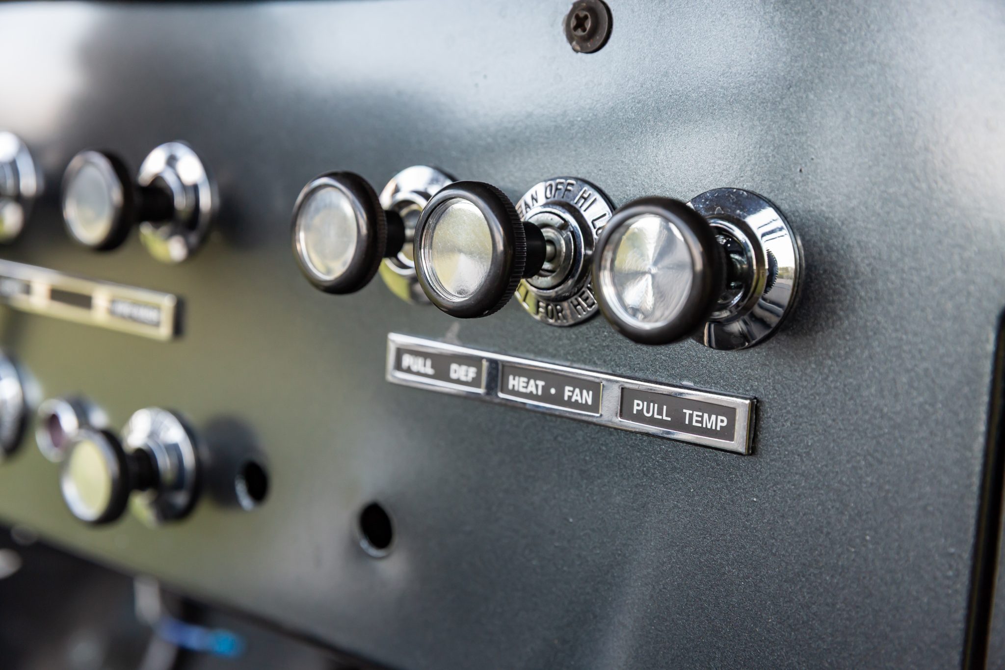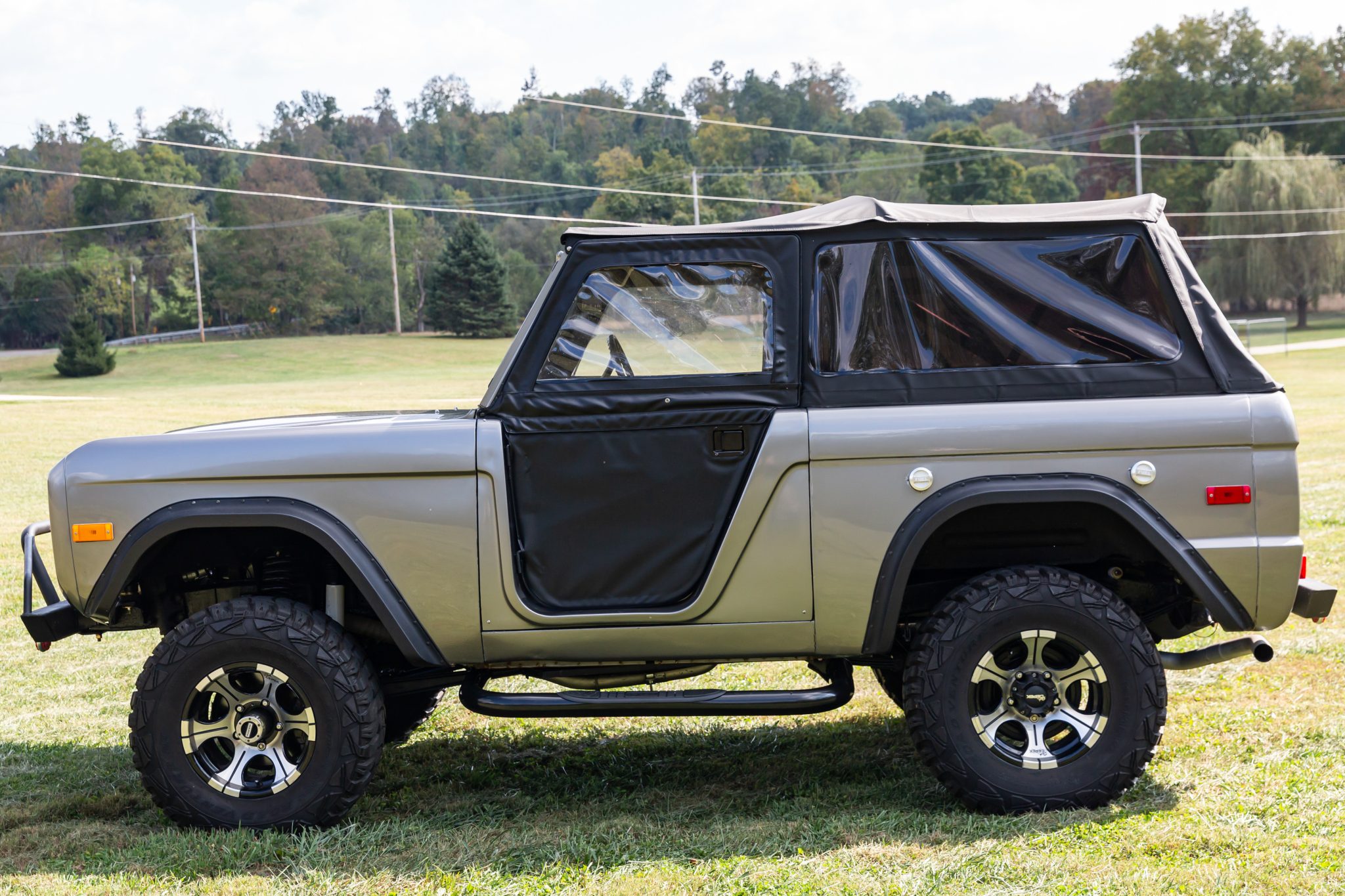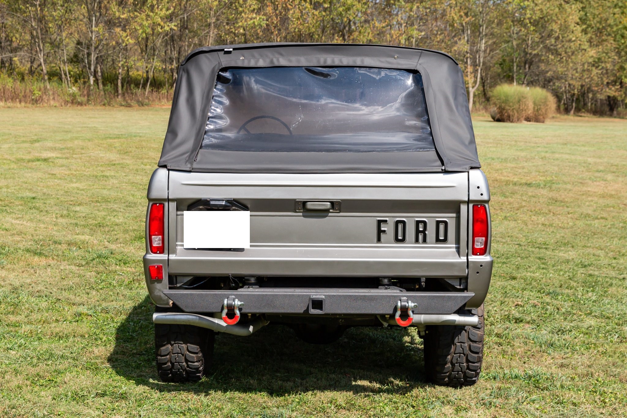 In addition to overhauling its body and 302ci V8, their subsequent refurbishments included a five-speed manual swap, adding front disc brakes, and refreshing its suspension and interior. The truck is refinished in gray with a black soft top, and it has gray leatherette upholstery, a roll bar, an auxiliary fuel tank, a limited-slip rear differential, a twin-stick transfer case, aftermarket bumpers, 15″ Dick Cepek wheels, tubular headers, and a dual exhaust with Flow FX mufflers.