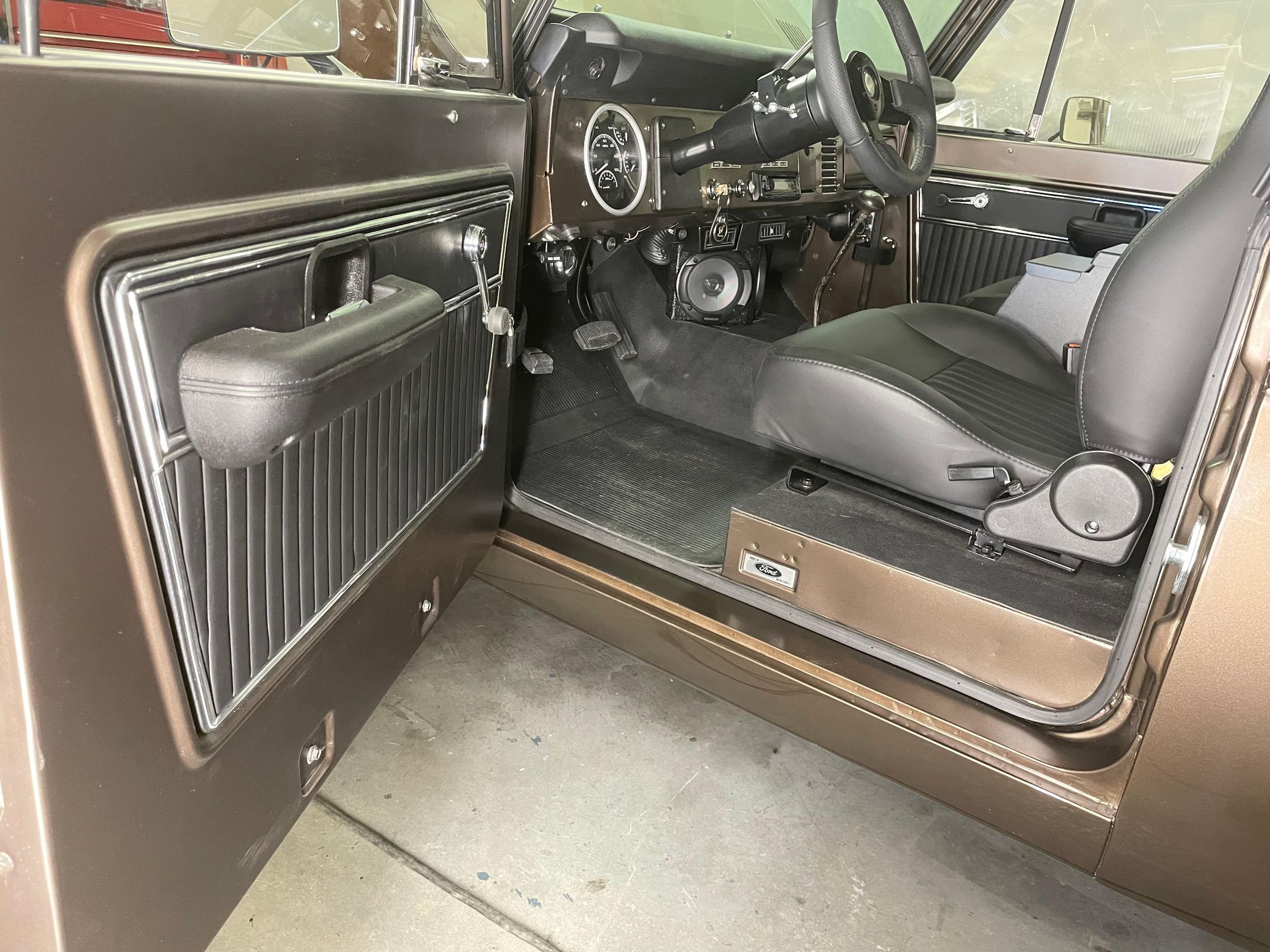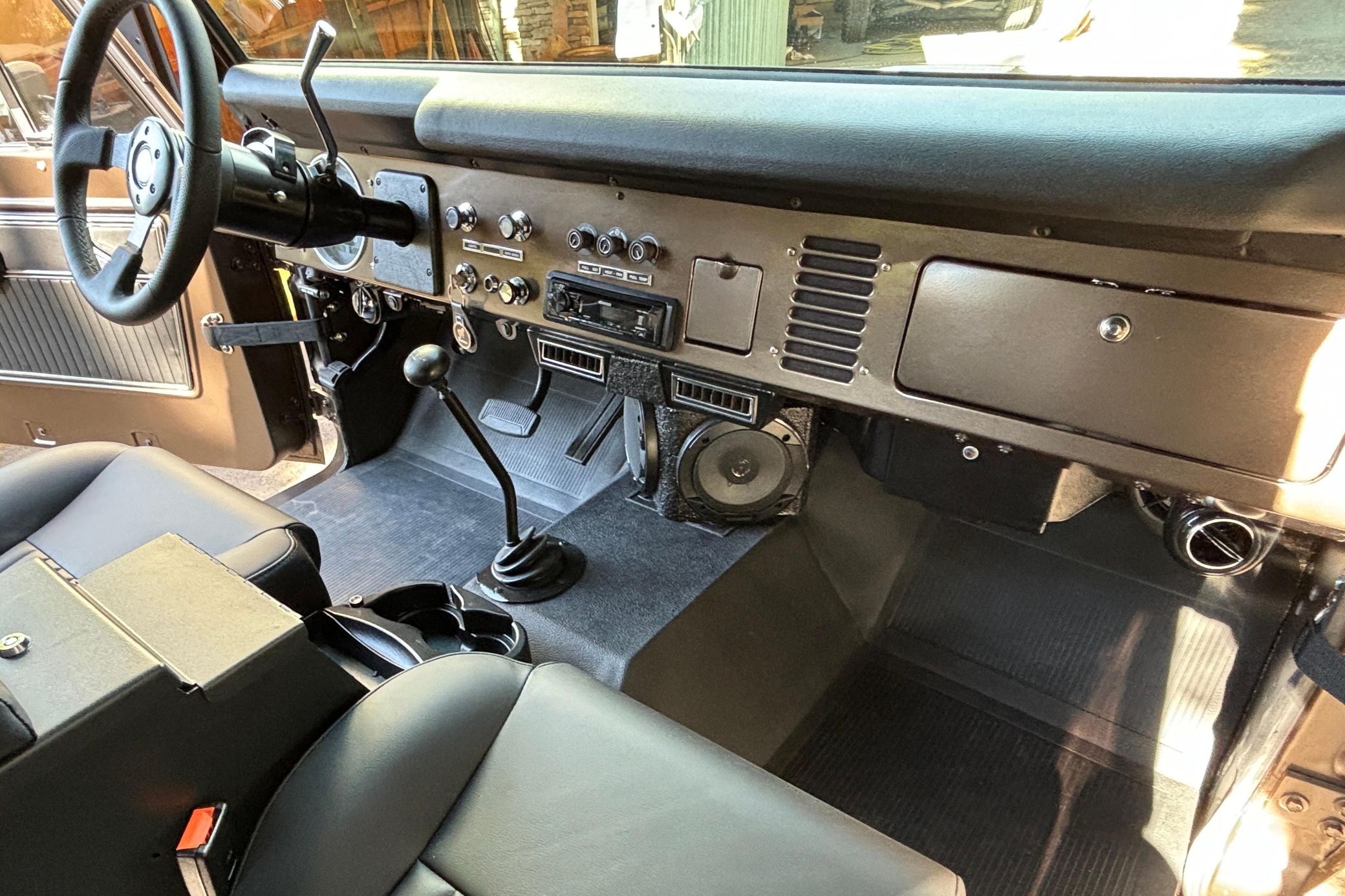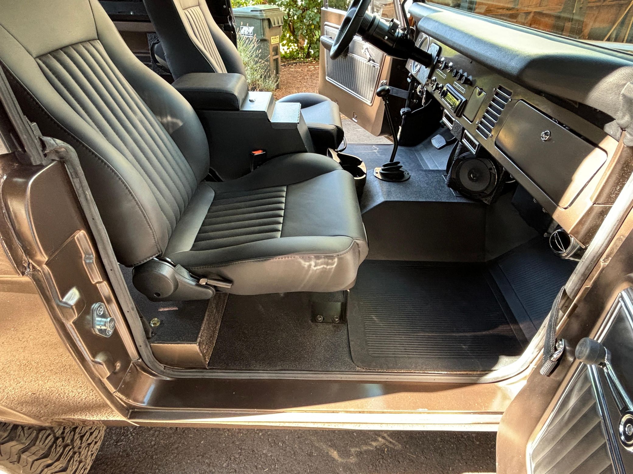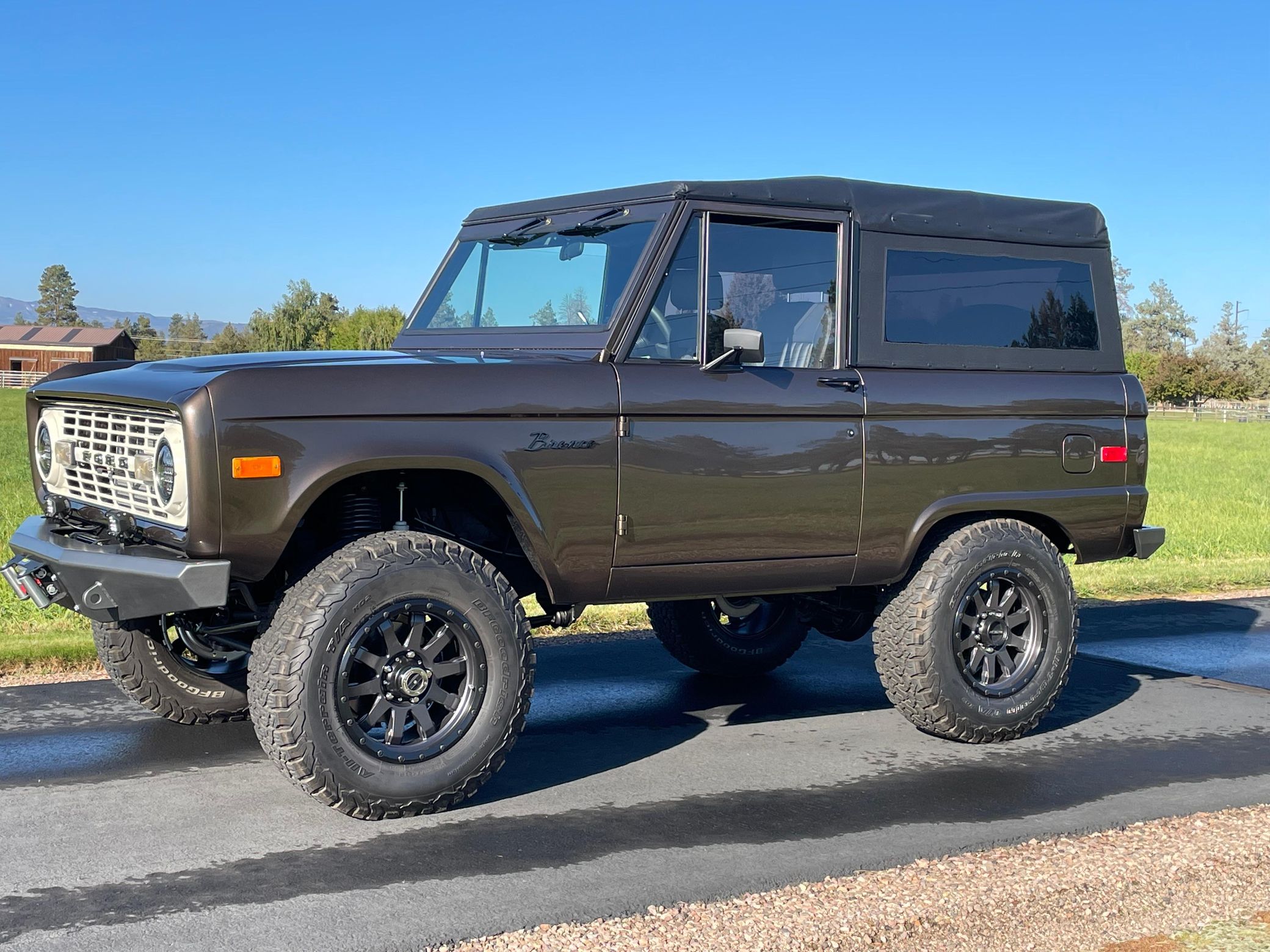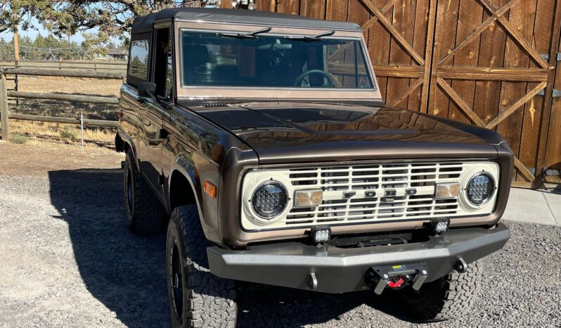 This particular Bronco boasts a fairly recent restoration that included a repaint in gorgeous Twilight Bronze Metallic, a refurbished interior, and the installation of a fuel-injected 302-cubic-inch V8, a TOMS OFFROAD 3.5-inch lift kit, a Smittybilt 9,000-pound winch, and a Vintage Air air conditioning system. It also boasts a BC Broncos removable soft top for top-down driving fun.