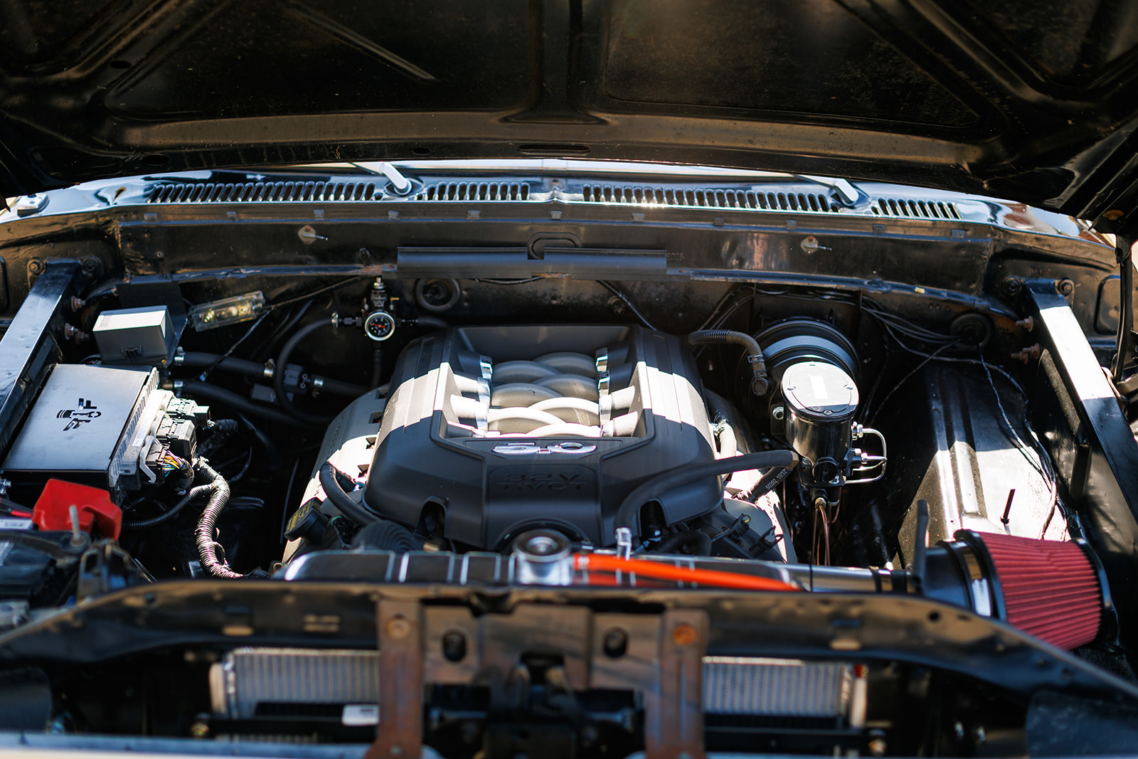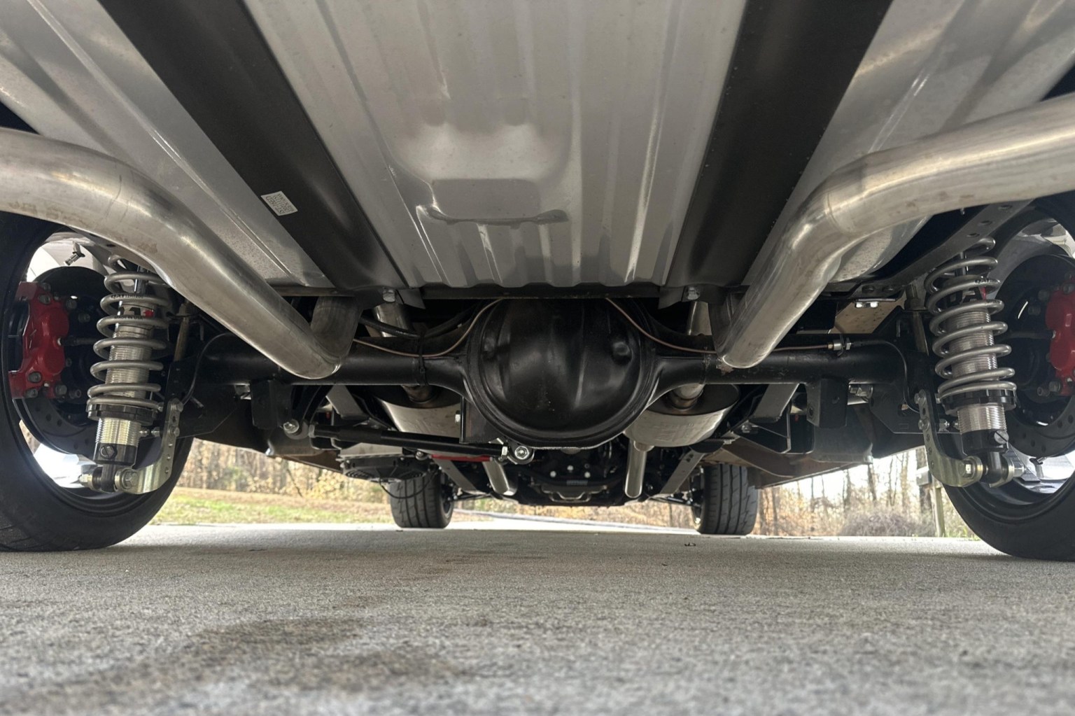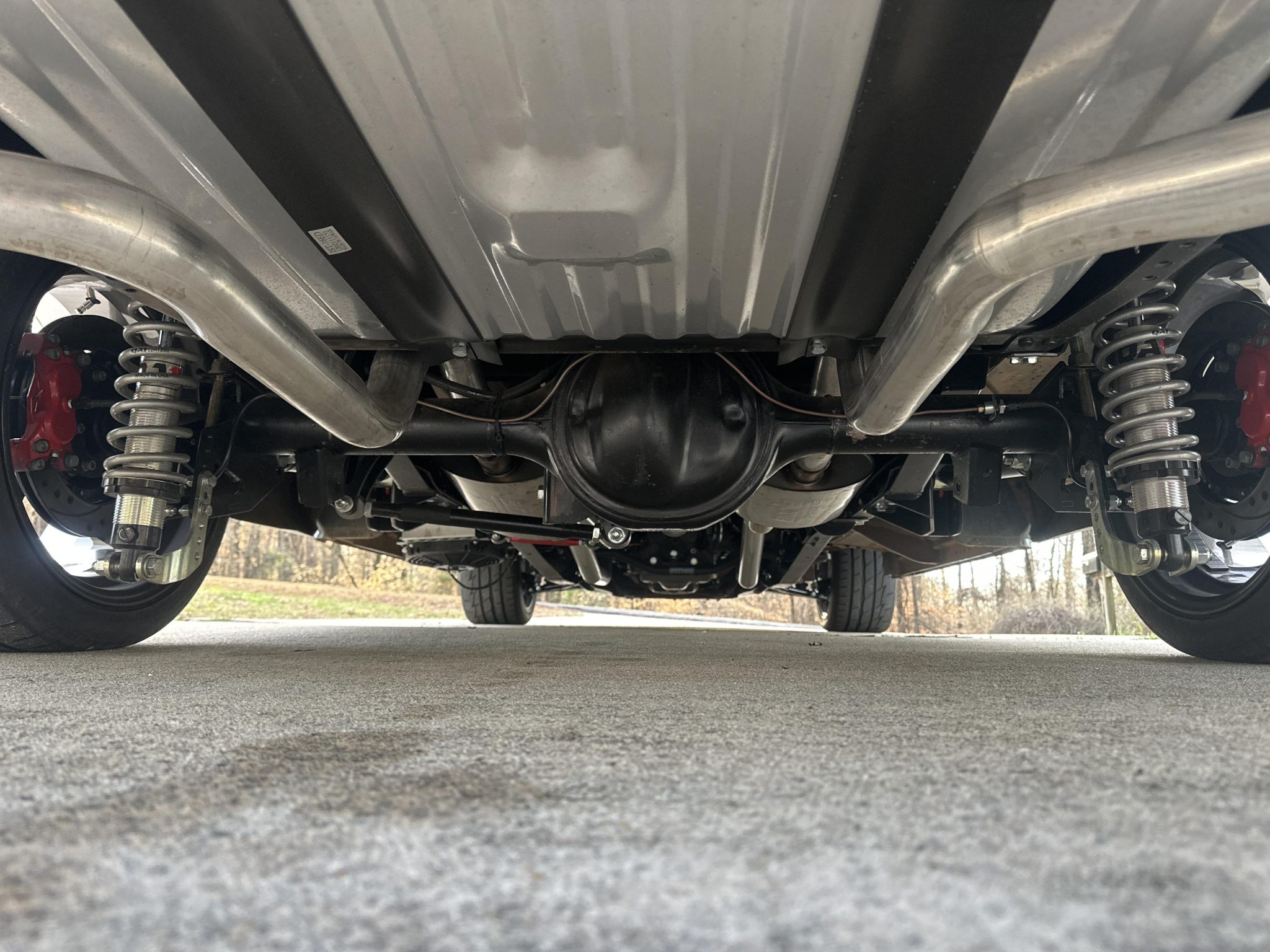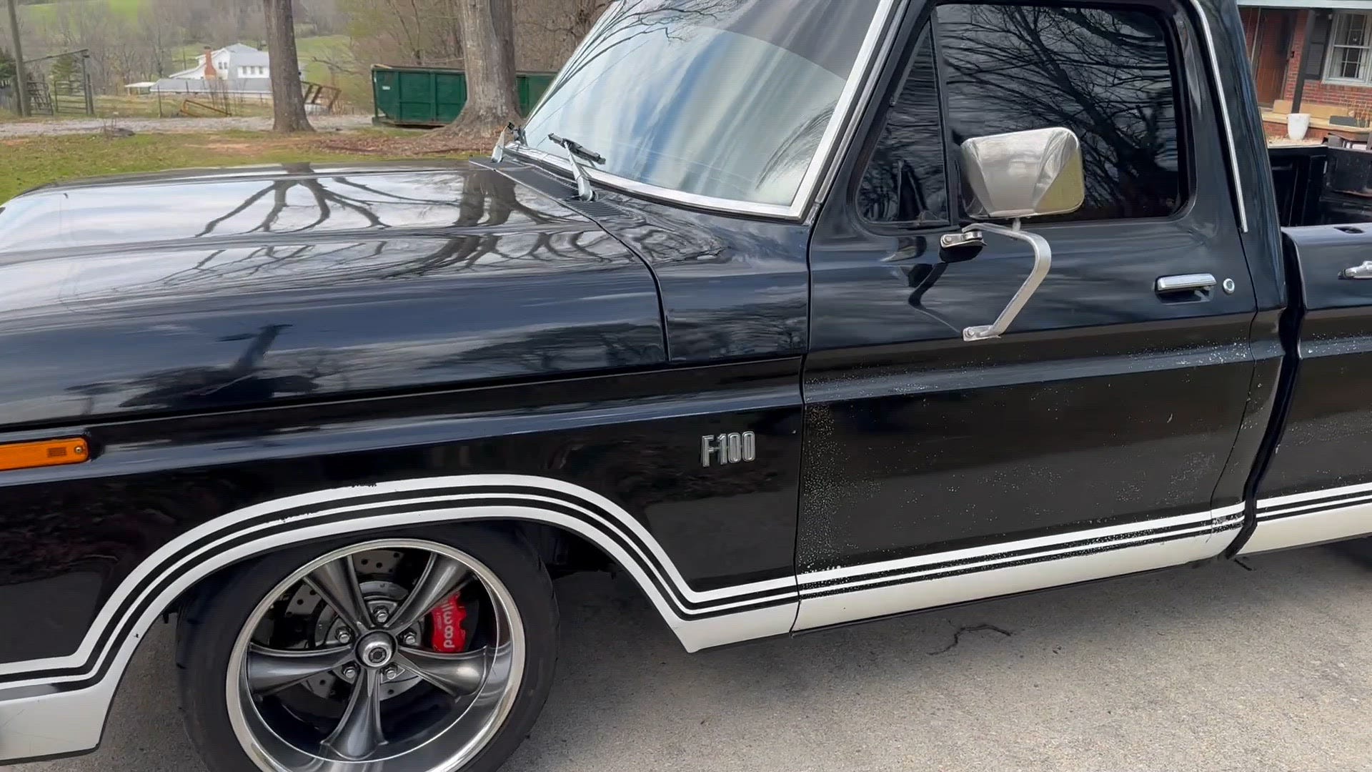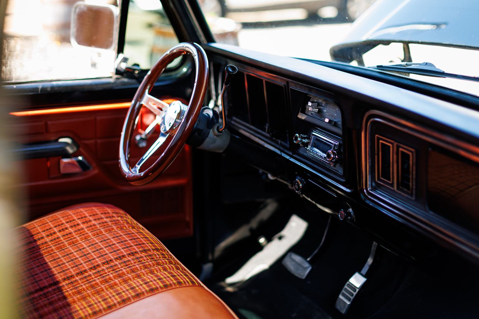 The frame was separated from the body and fitted with QA1 front and rear suspension systems as well as a 5.0-liter Coyote V8 backed by a 6R80 six-speed automatic transmission. The truck also features Wilwood disc brakes, rack-and-pinion power steering, adjustable coilovers, an aluminum radiator, Borla mufflers, 18″ American Racing wheels, LED headlights, Dakota Digital instrumentation, and Vintage Air climate control.