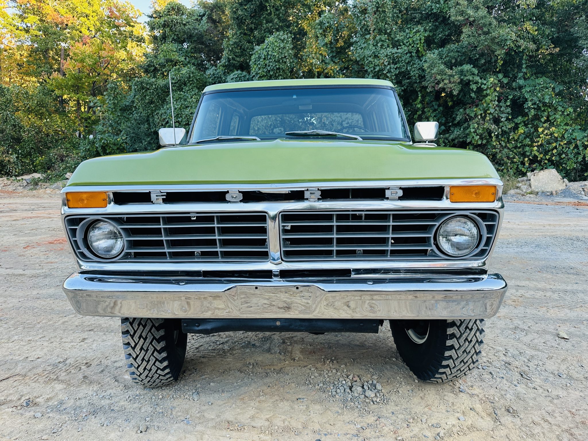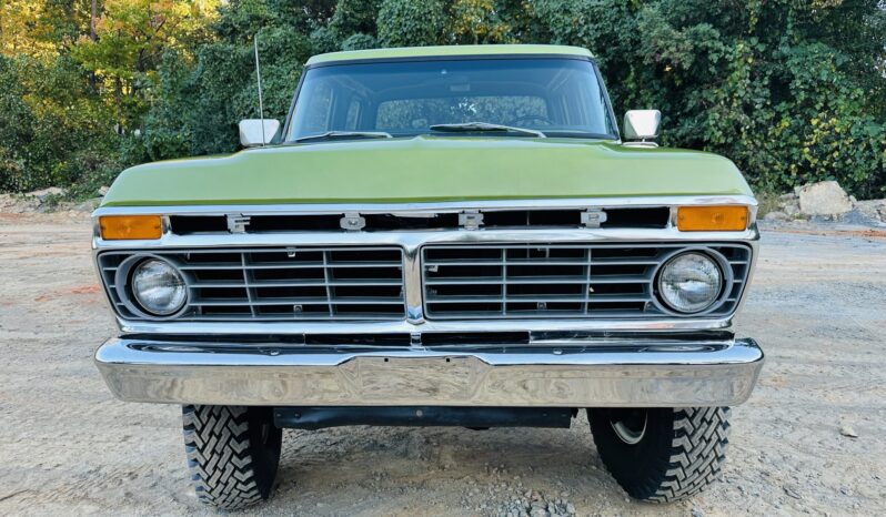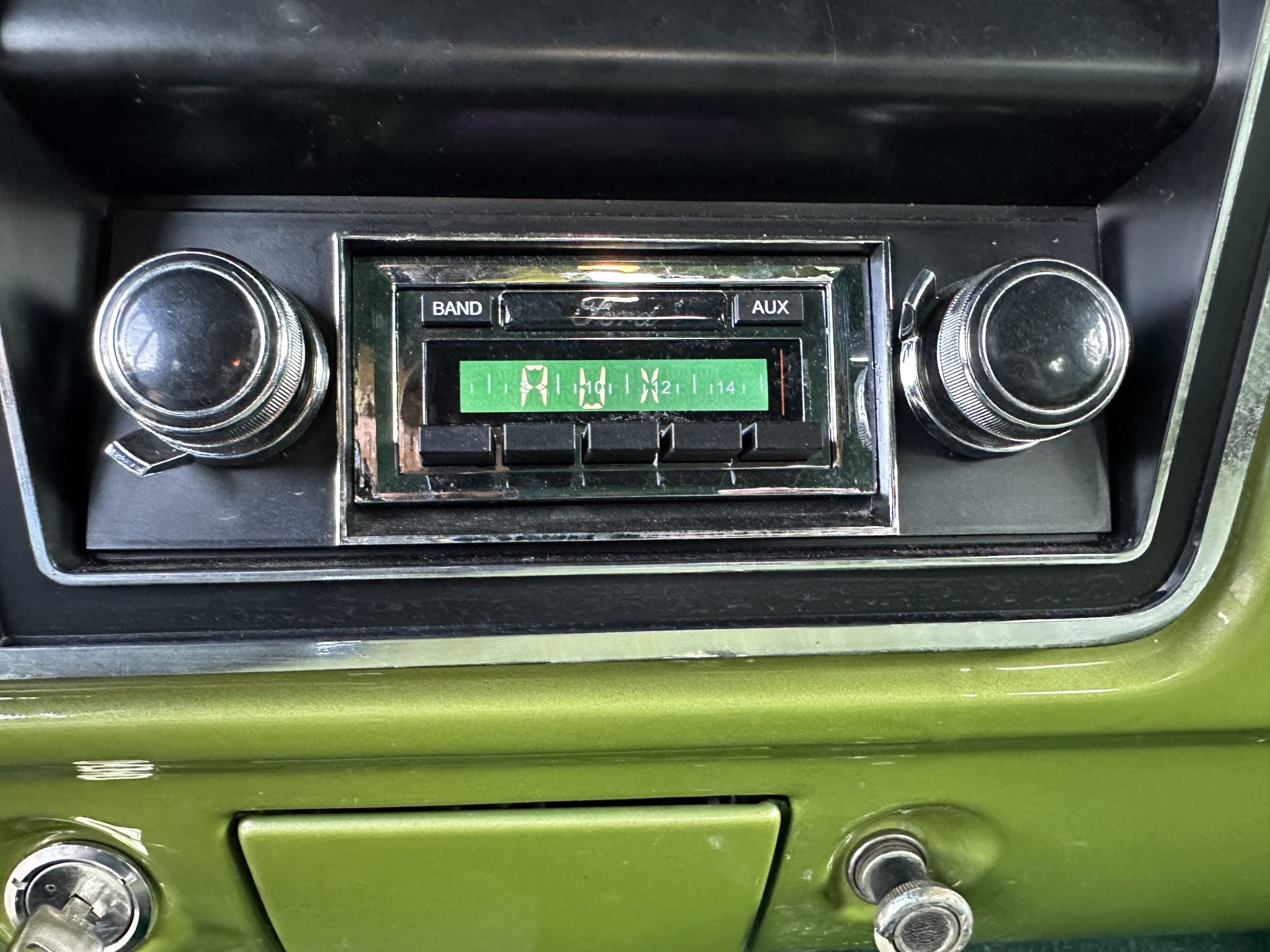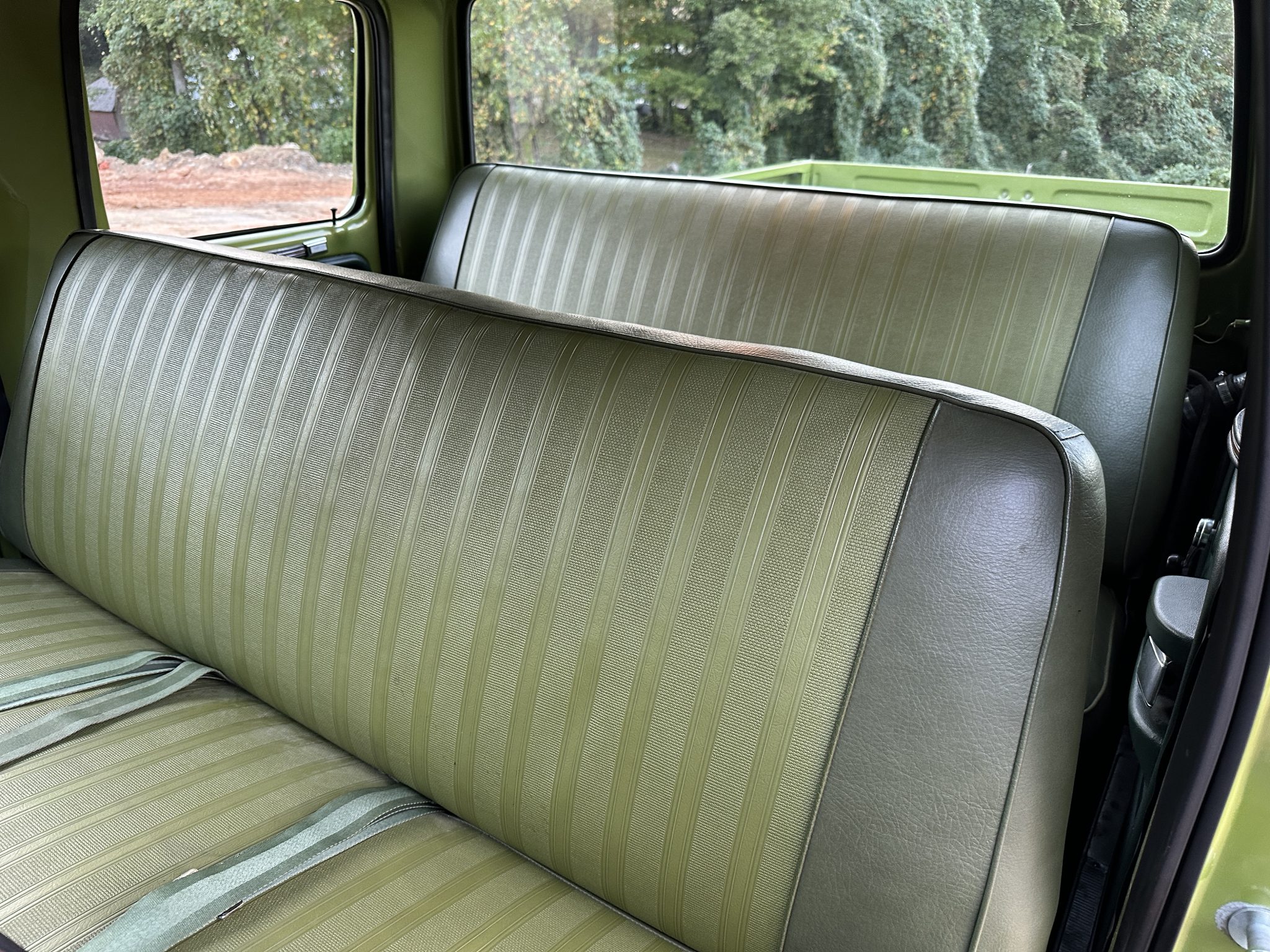 This 1974 Ford F-250 Custom 4×4 is a Crew Cab pickup A subsequent refurbishment involved rebuilding the three-speed automatic transmission, repainting the body in metallic green, and refreshing the green interior in addition to installing a dual exhaust system and replacement shocks. Power comes from a 390ci V8, and equipment includes manually locking front hubs, power steering and brakes, a body-color spray-on bed liner, air conditioning, and a retro-look digital radio with Bluetooth.