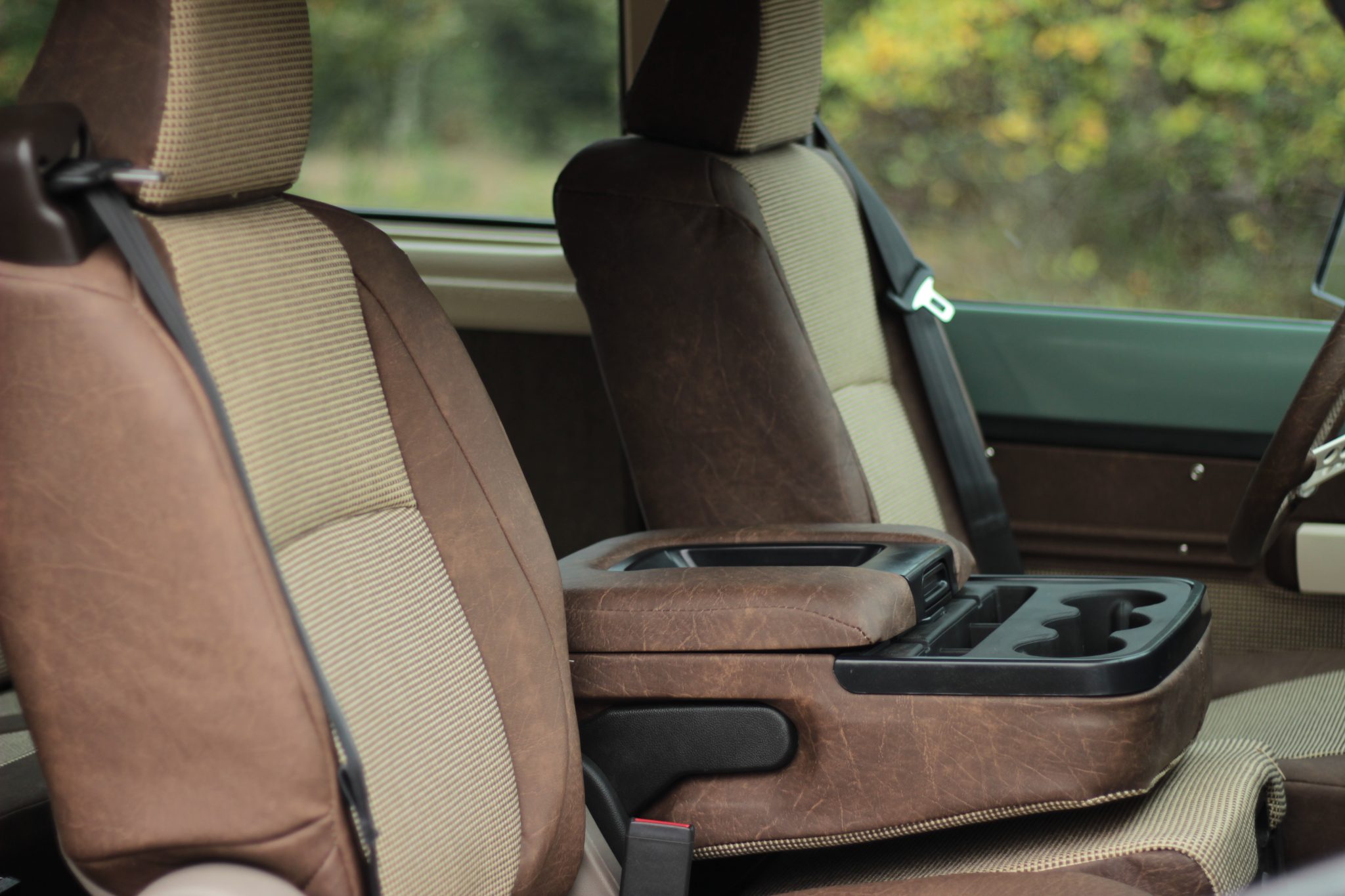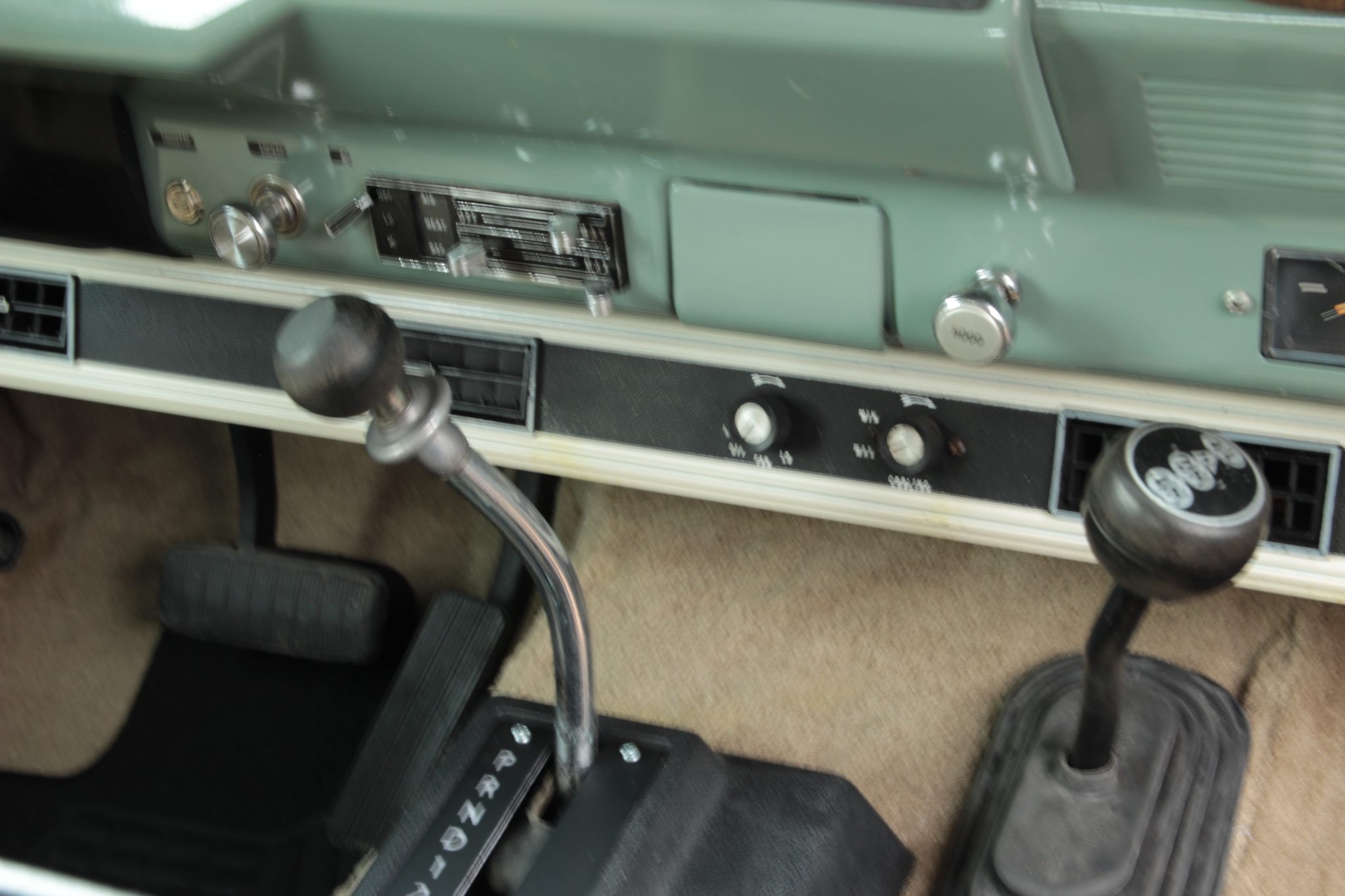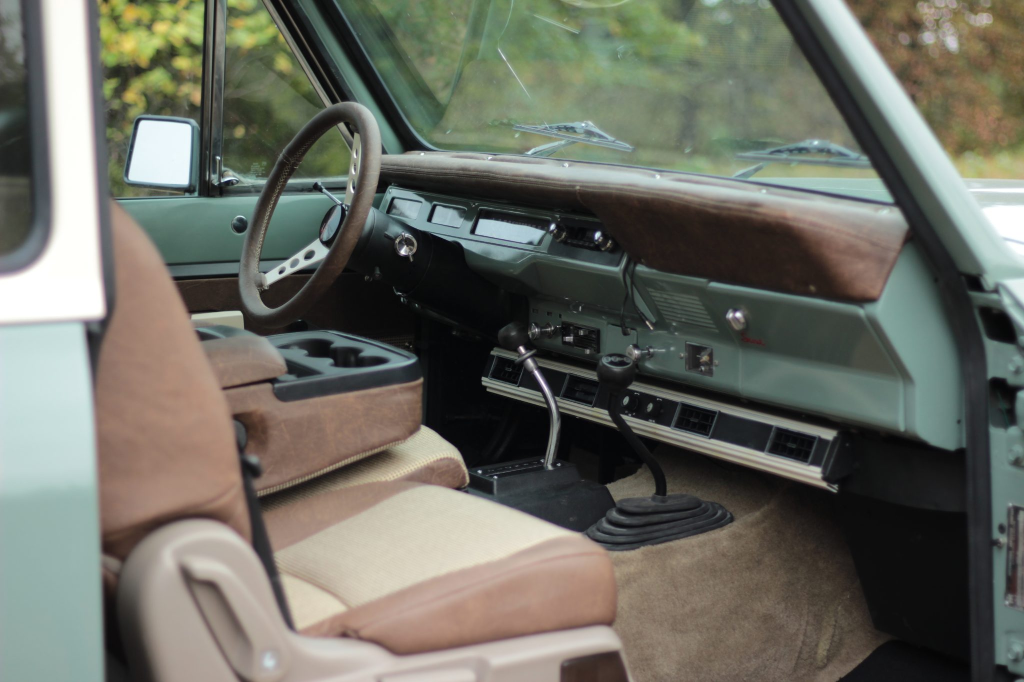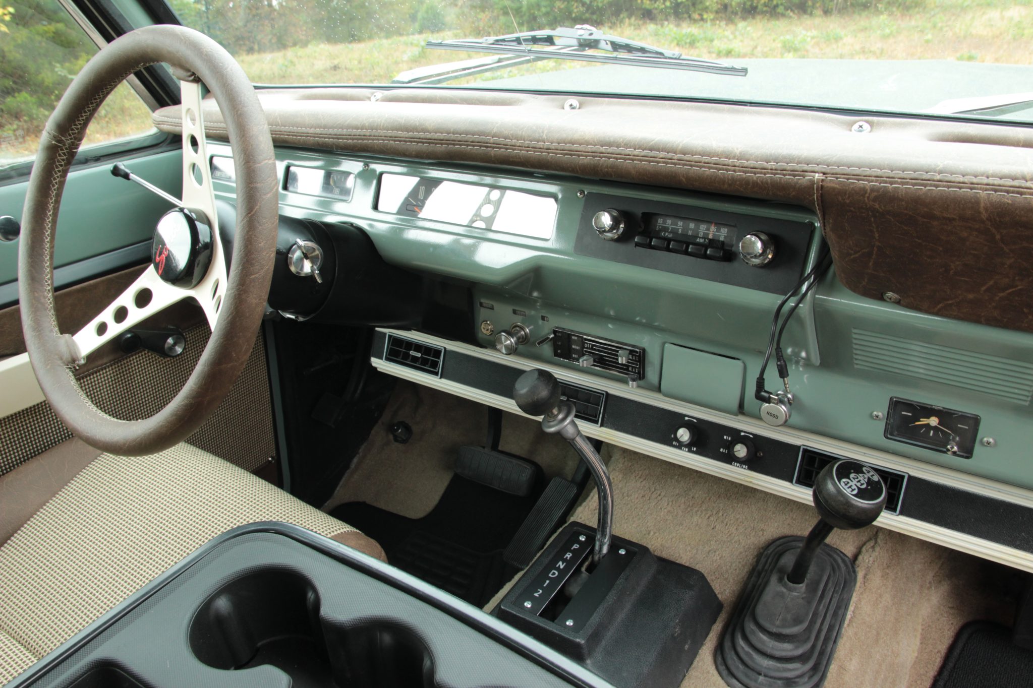 Work included installing a 4.8-liter Vortec V8 linked to a four-speed 4L60E automatic transmission and a dual-range transfer case as well as repainting the body in Sage Green, retrimming the interior in tan vinyl, overhauling the brake system, and retrofitting a Rough Country suspension lift. Riding on 15″ wheels, the truck is further equipped with a removable hardtop, front vent windows, a split front bench seat, air conditioning, an AM/FM stereo, aftermarket speakers, and a stainless steel exhaust system.