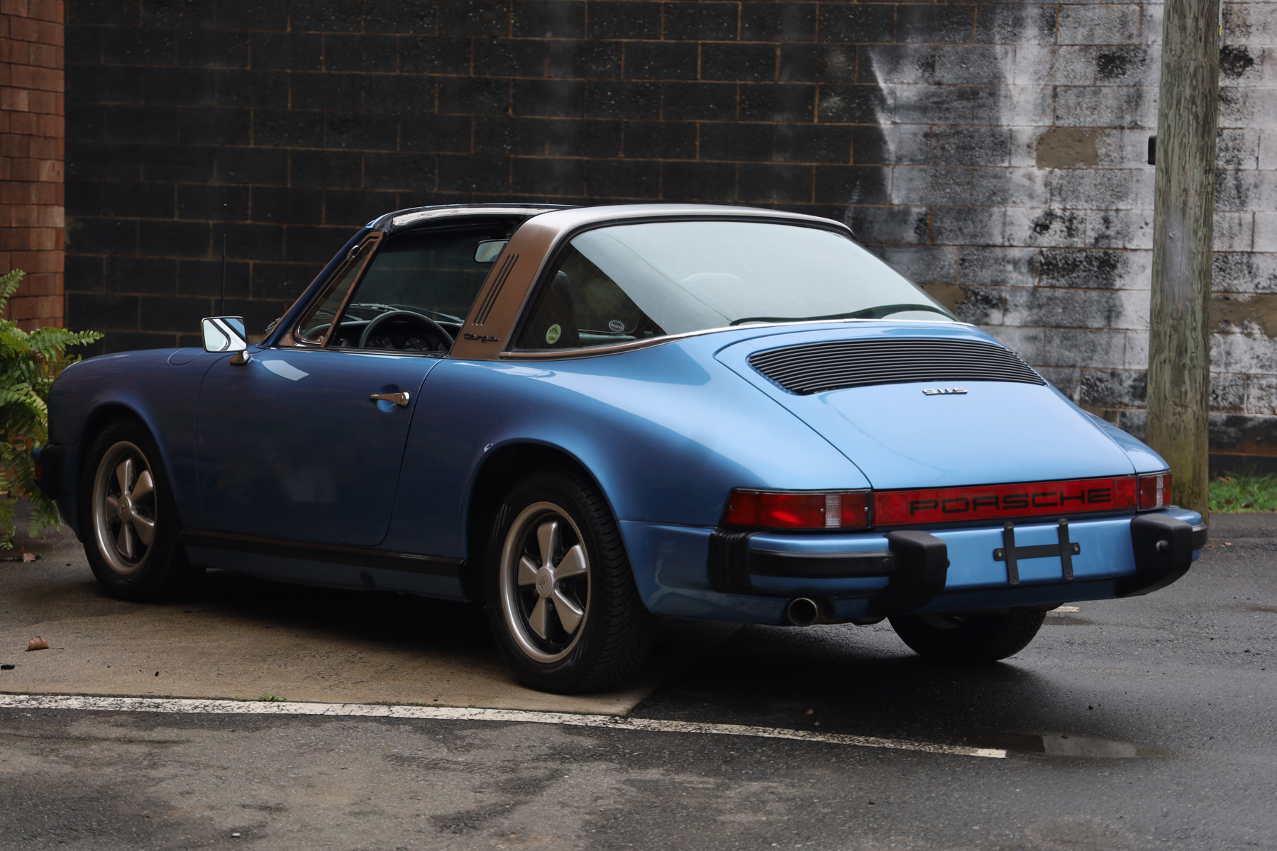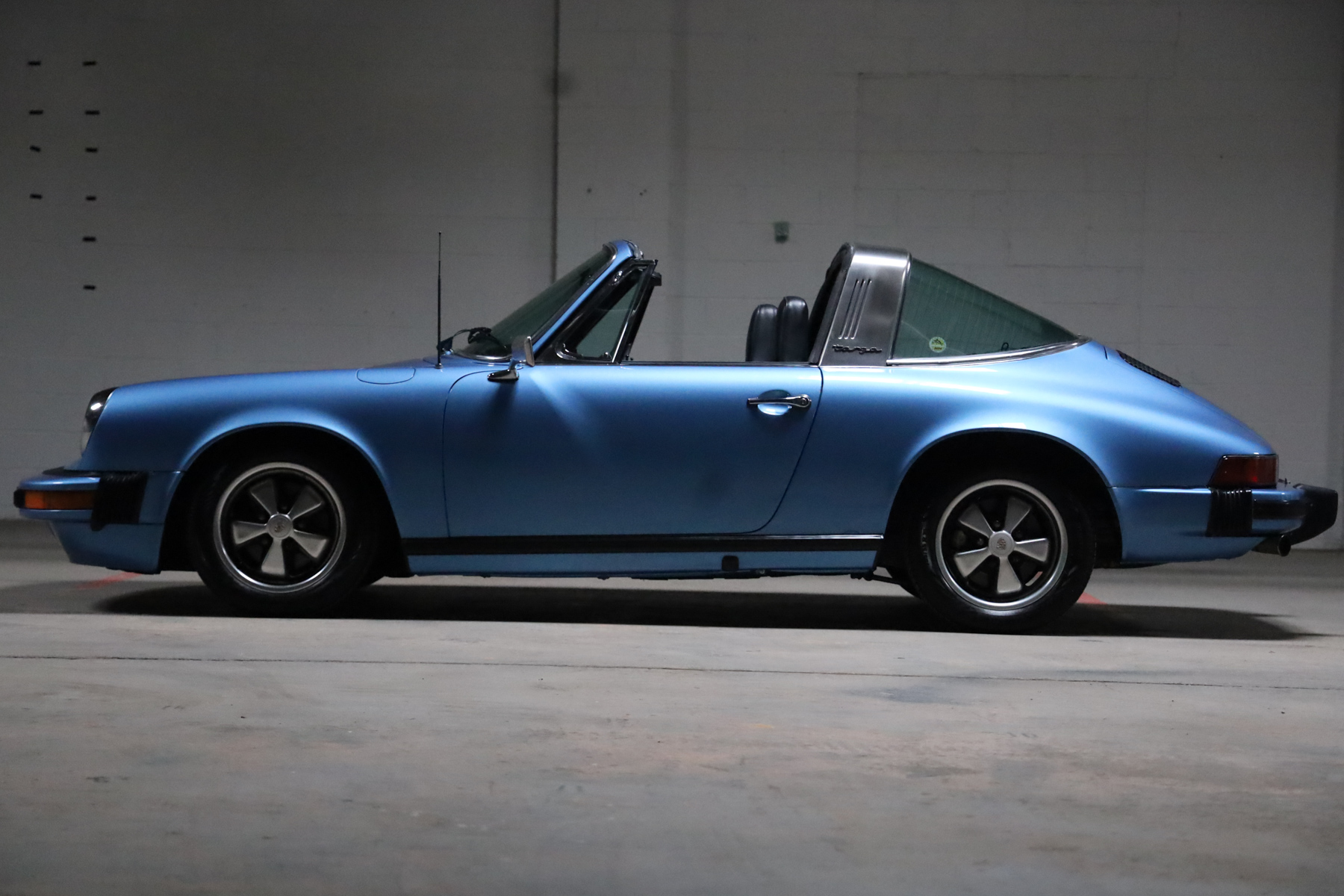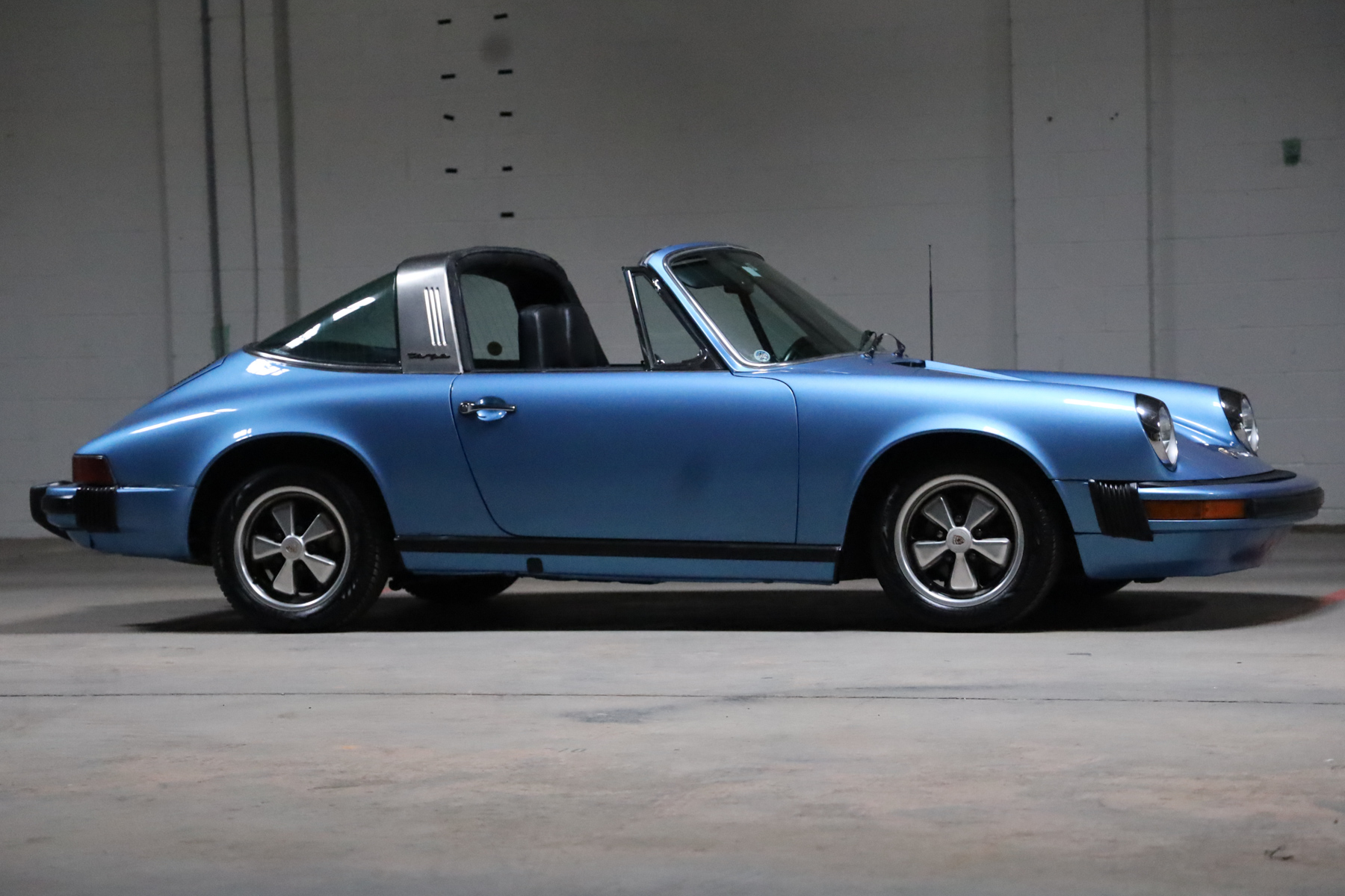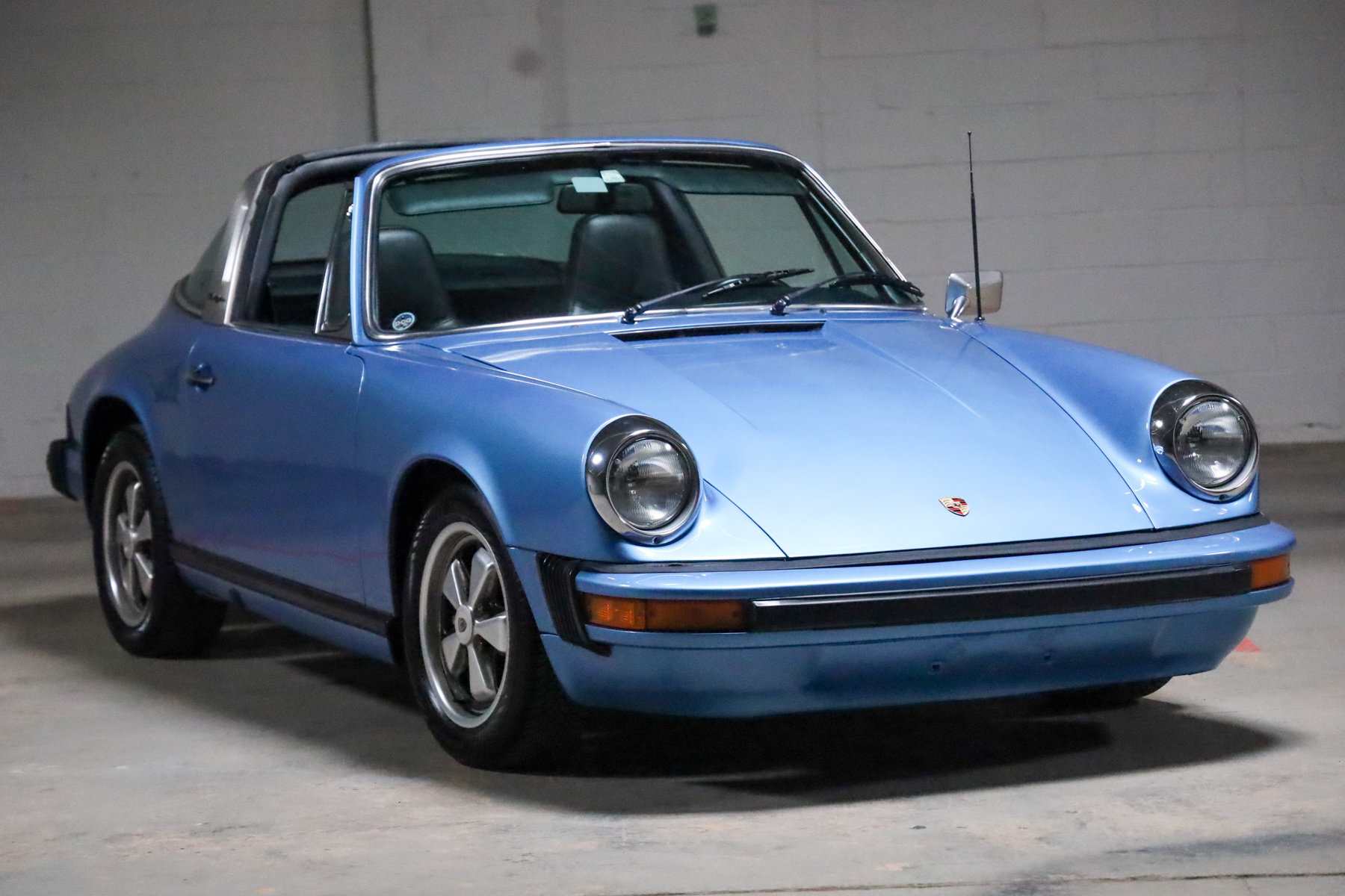 A rebuild of the 2.7-liter flat-six, a recharge of the air conditioning, and replacement of the clutch, flywheel, ignition wiring, tires, engine and transaxle mounts, fuel pump, fuel level sending unit, and turn signal and headlight switches. The five-speed manual transaxle was rebuilt, the interior was refreshed, and a PCCM infotainment unit was installed in 2019. Finished in Gemini Blue Metallic over black leather upholstery, the car is equipped with SSI heat exchangers, a Dansk muffler, 15″ Fuchs alloy wheels, a black removable roof panel, a brushed Targa bar, body-color bumpers, and a heated rear window.