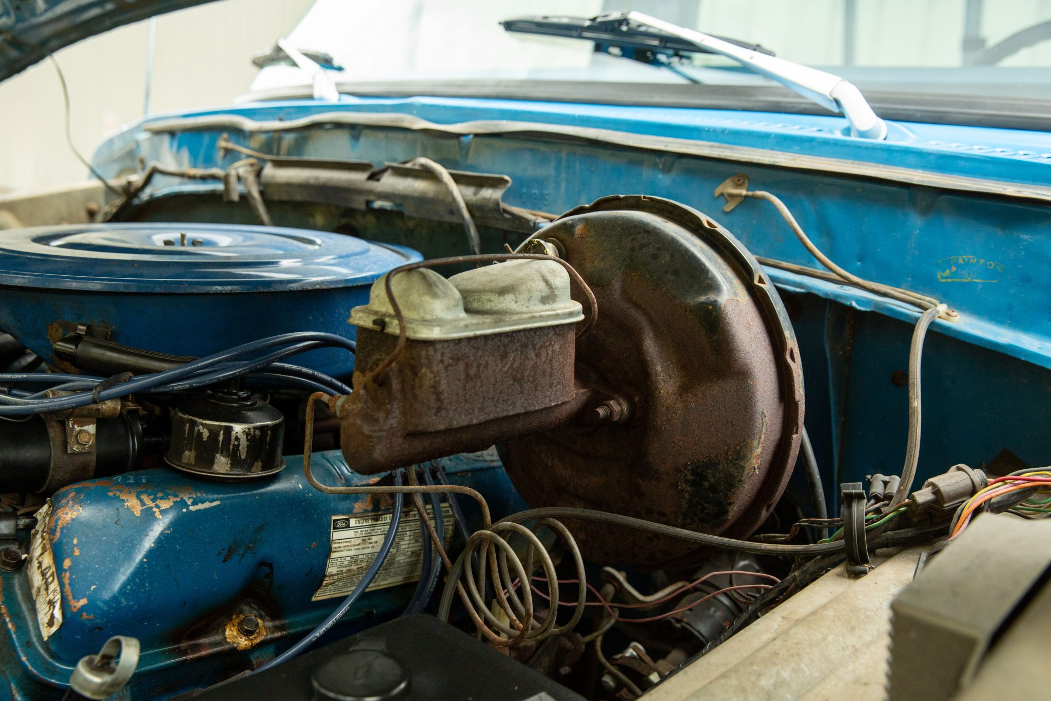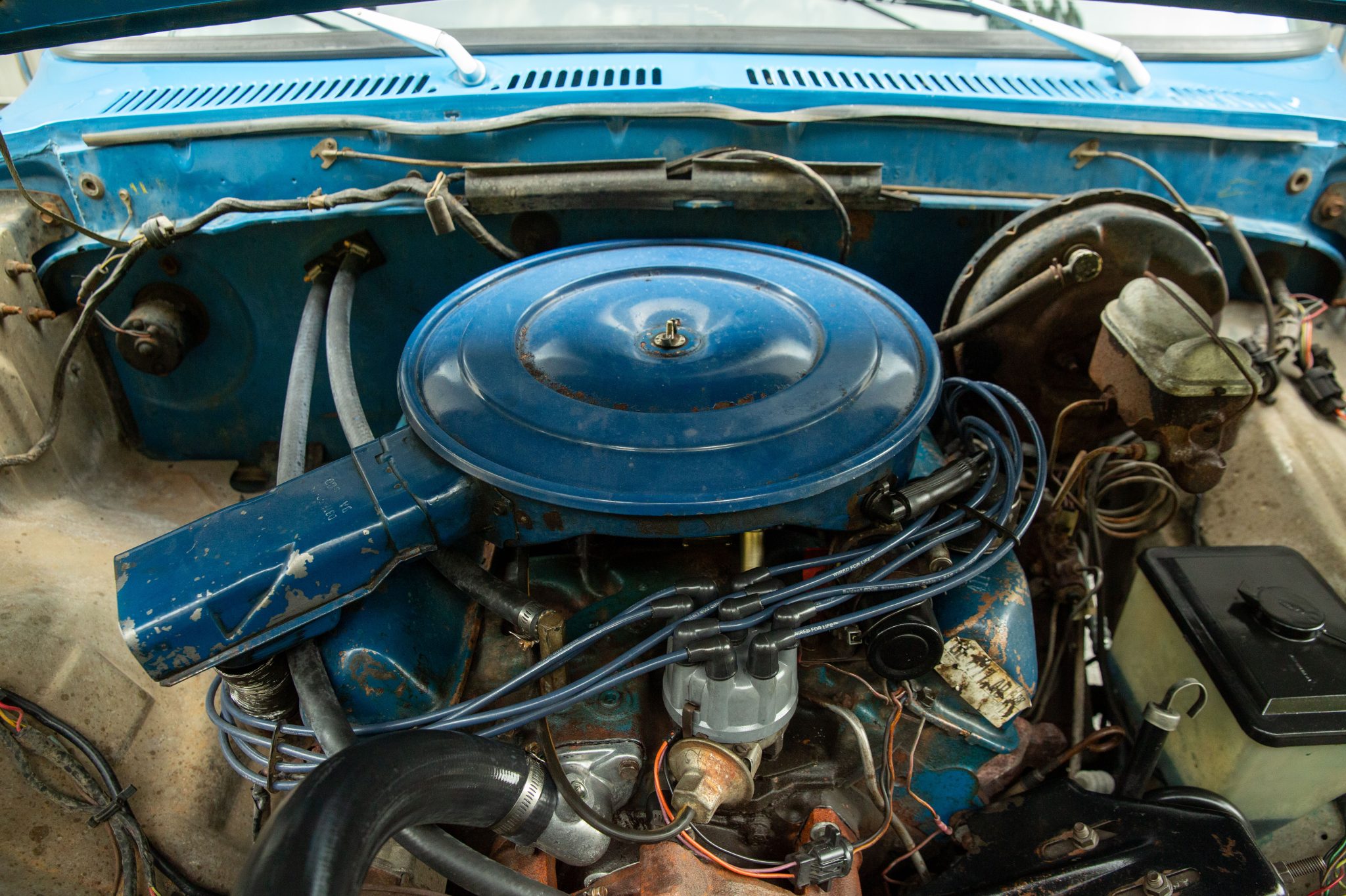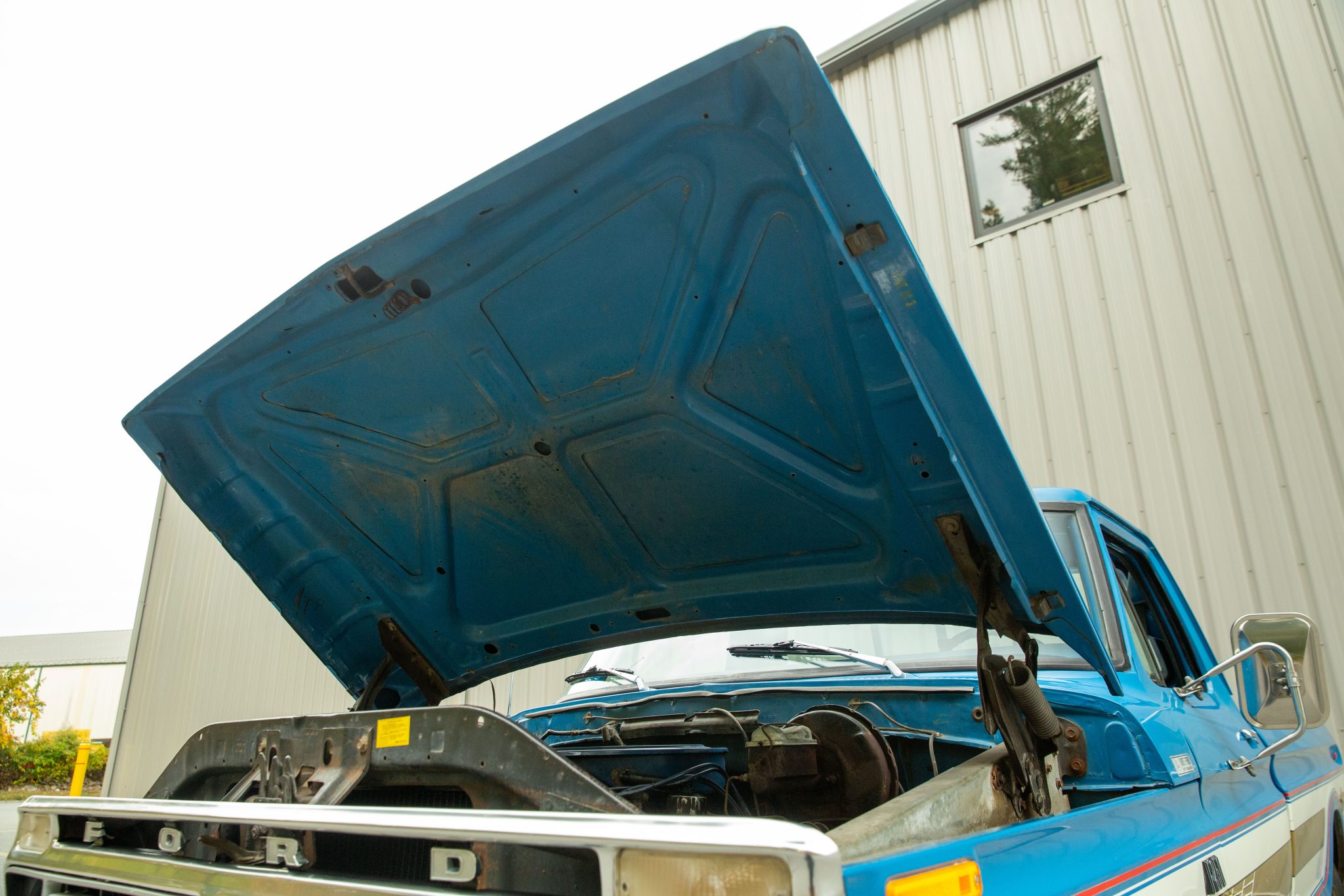 This Bahama Blue 1976 Ford F-250 is a Custom 4×2 that was ordered with a Bicentennial trim package, which featured side graphics in addition to red, white, and blue plaid cloth upholstery. Powered by a 390ci V8 paired with a three-speed automatic transmission, it has power steering, 16.5″ steel wheels, towing mirrors, a sliding rear window, and an AM radio.