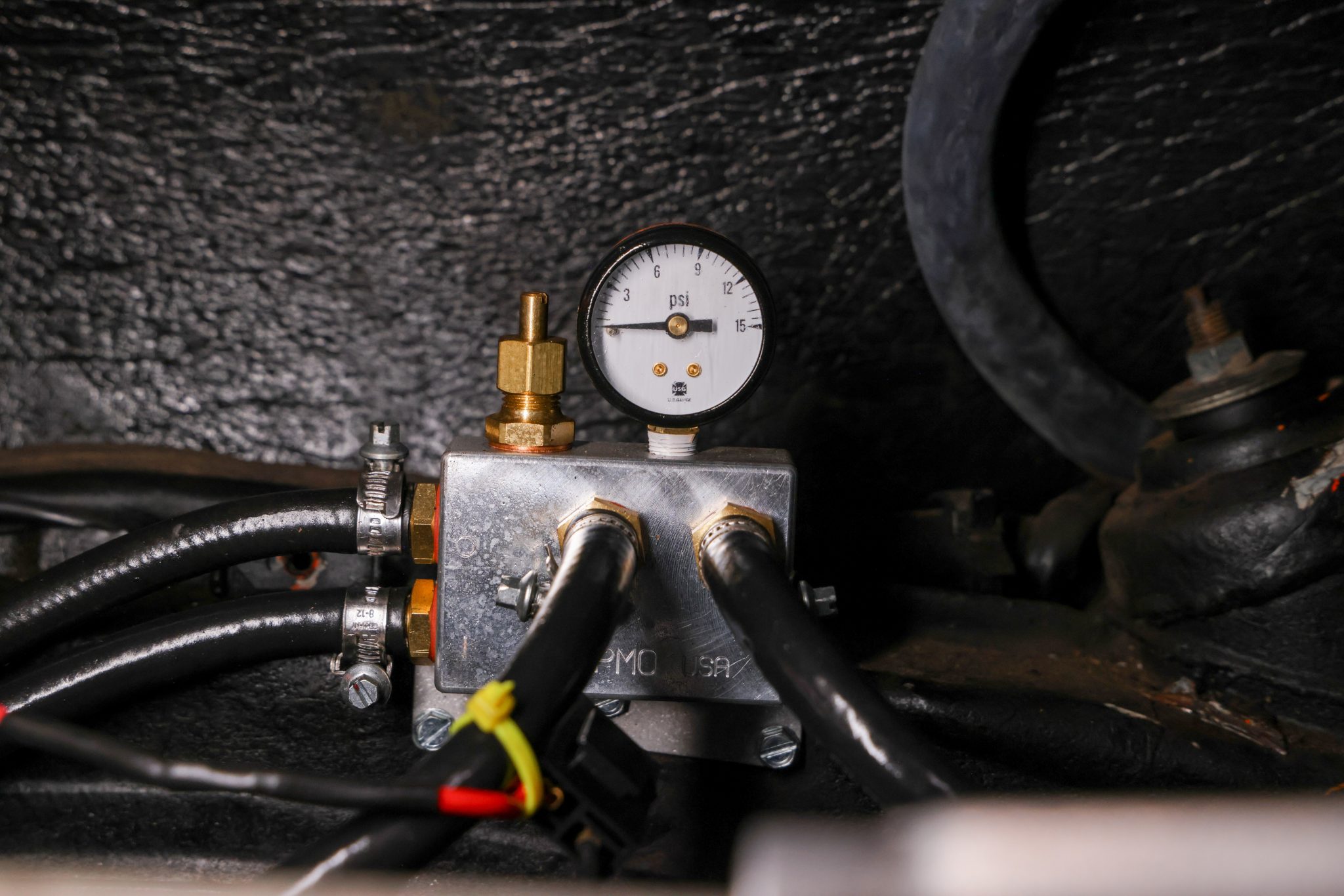 In 2024, the flat-four was rebuilt with an LN Engineering 2270 kit, and the five-speed manual transaxle was also reportedly overhauled. also added a Tangerine Racing exhaust system, a short-shift kit, a Griffiths air-conditioning kit, and high-velocity blowers for the heating system. The car is further equipped with dual Weber carburetors, black leatherette upholstery, Continental head unit, and 15″ Fuchs-style wheels.