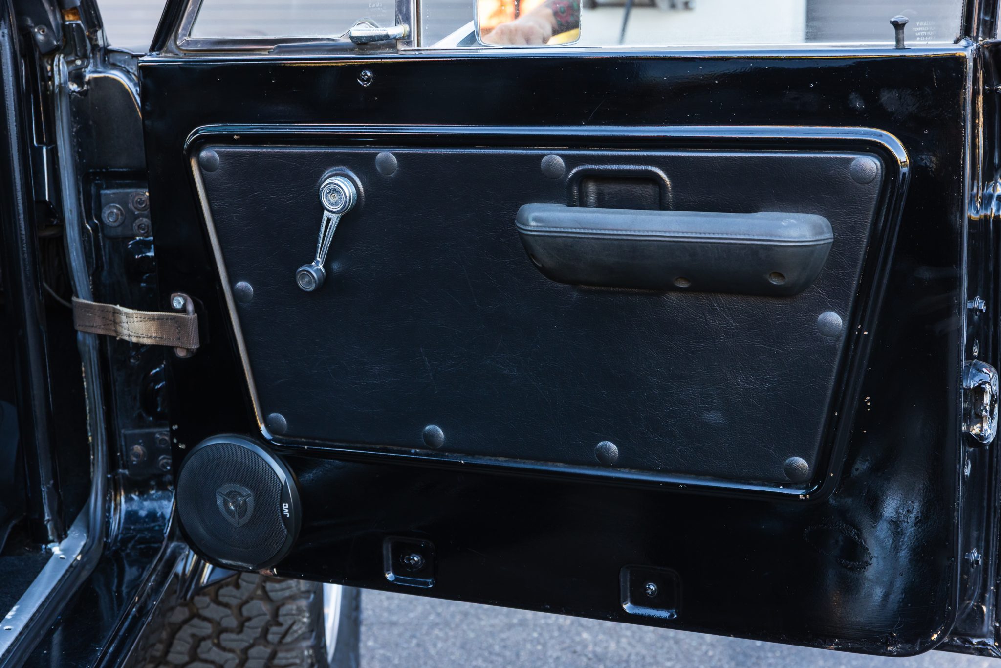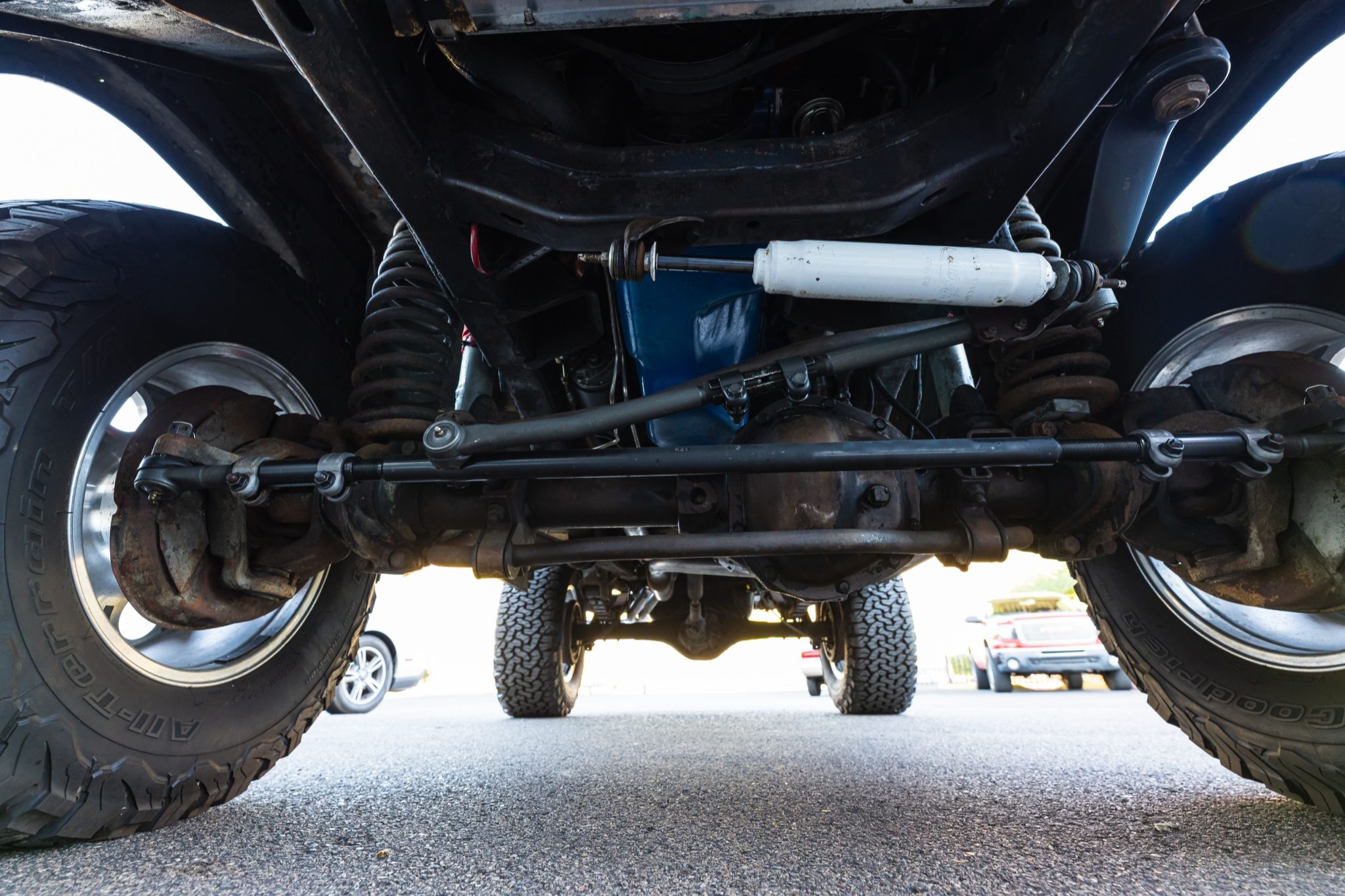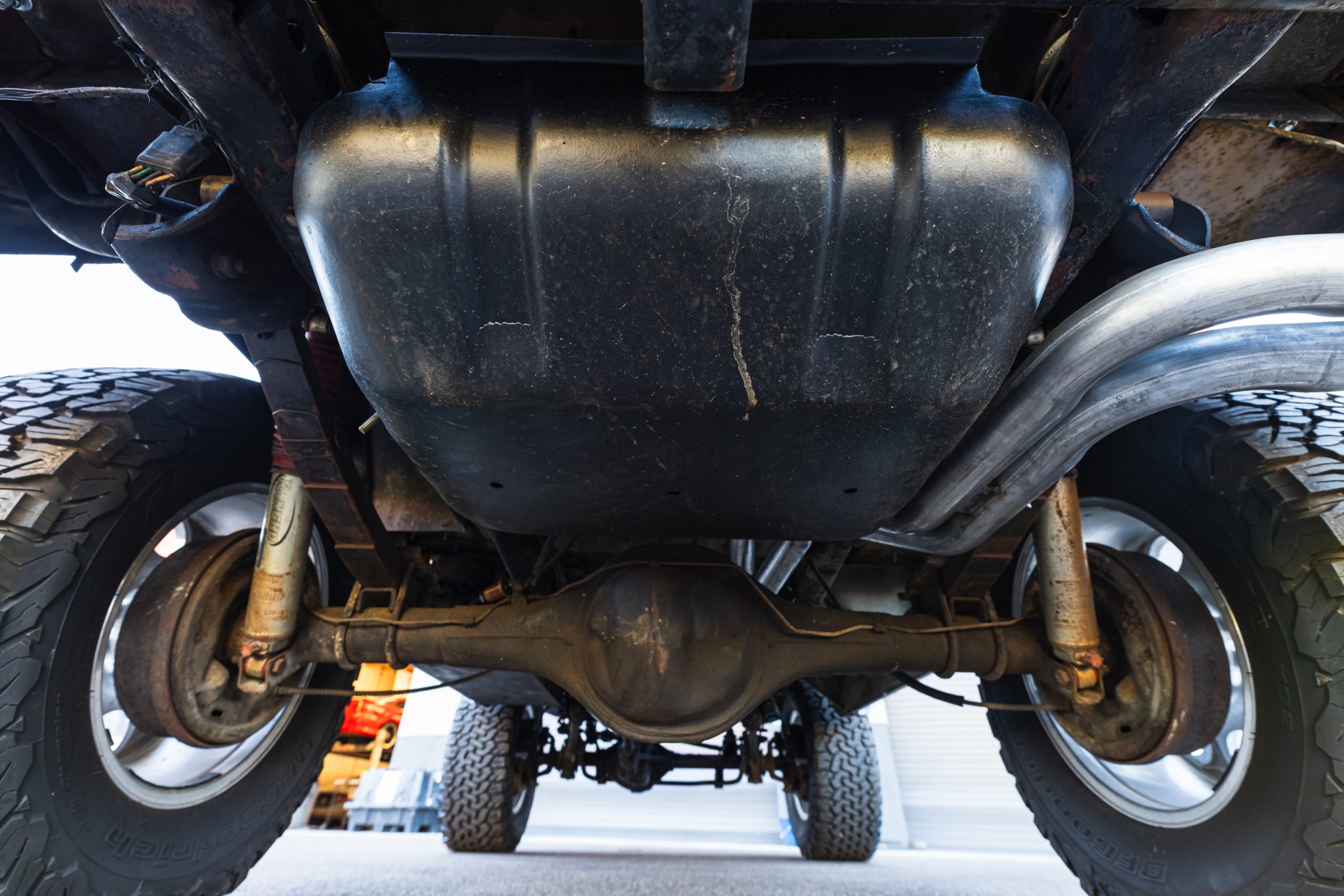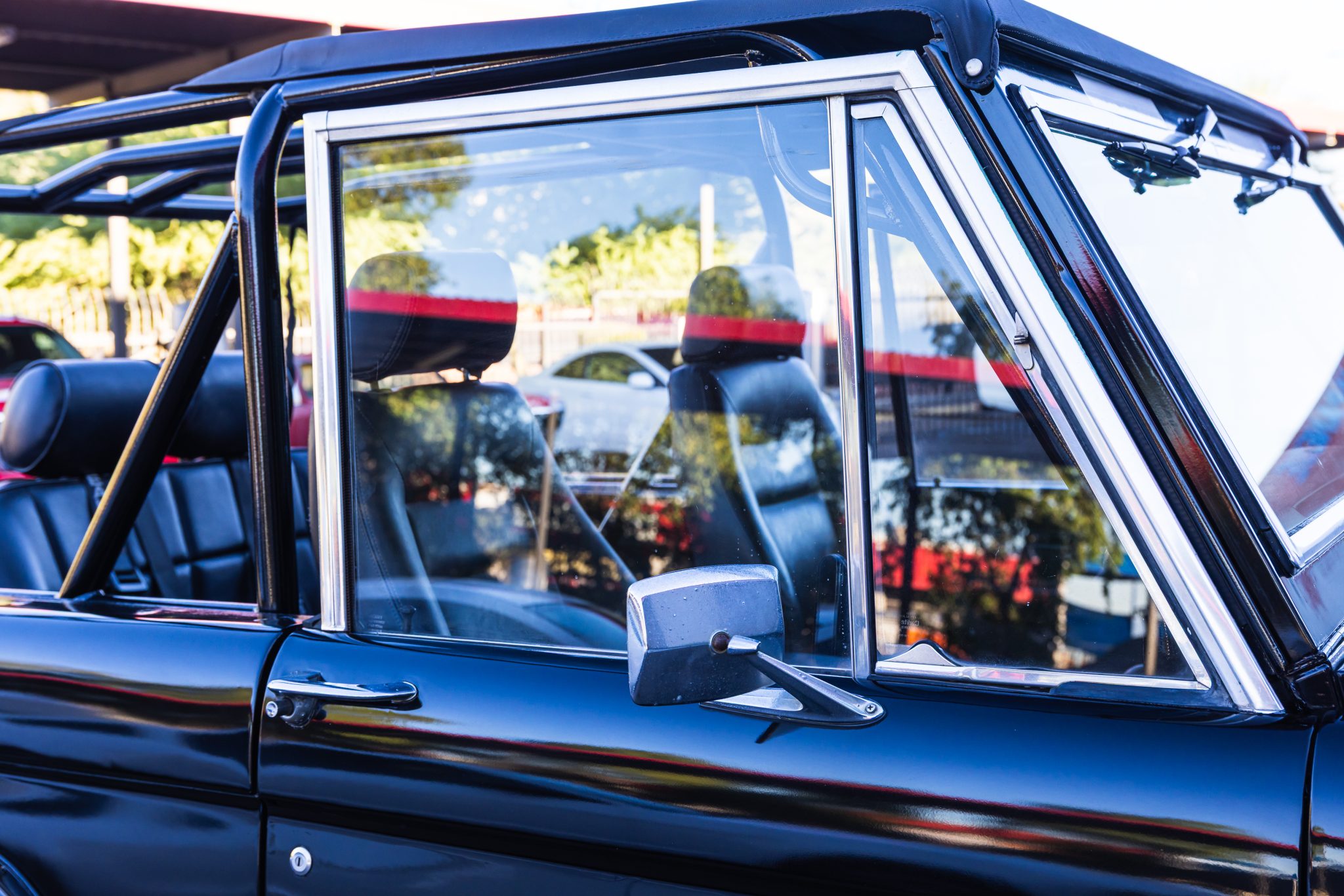 This 1977 Ford Bronco is powered by a replacement 302ci V8 linked with a three-speed automatic transmission and a dual-range transfer case and it is finished in black with white stripes over black upholstery. The truck is equipped with a suspension lift kit, a family-style roll cage, a bikini soft top, bolt-on fender extensions, a swing-out rear tire carrier, 17″ US Mags wheels, manually locking front hubs, power steering, power front disc brakes, a Kenwood stereo, shorty-style headers, a MagnaFlow muffler, and MSD ignition components.