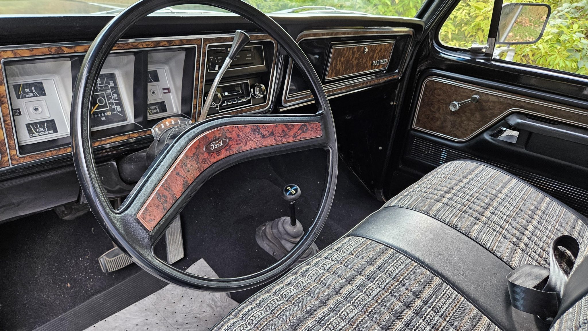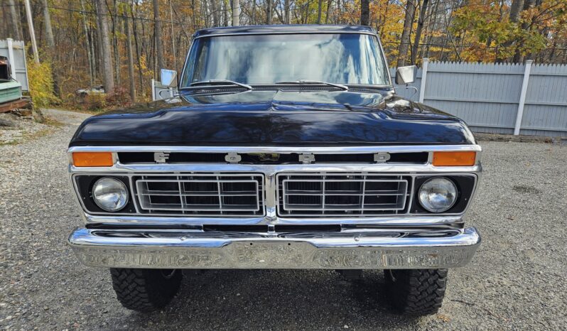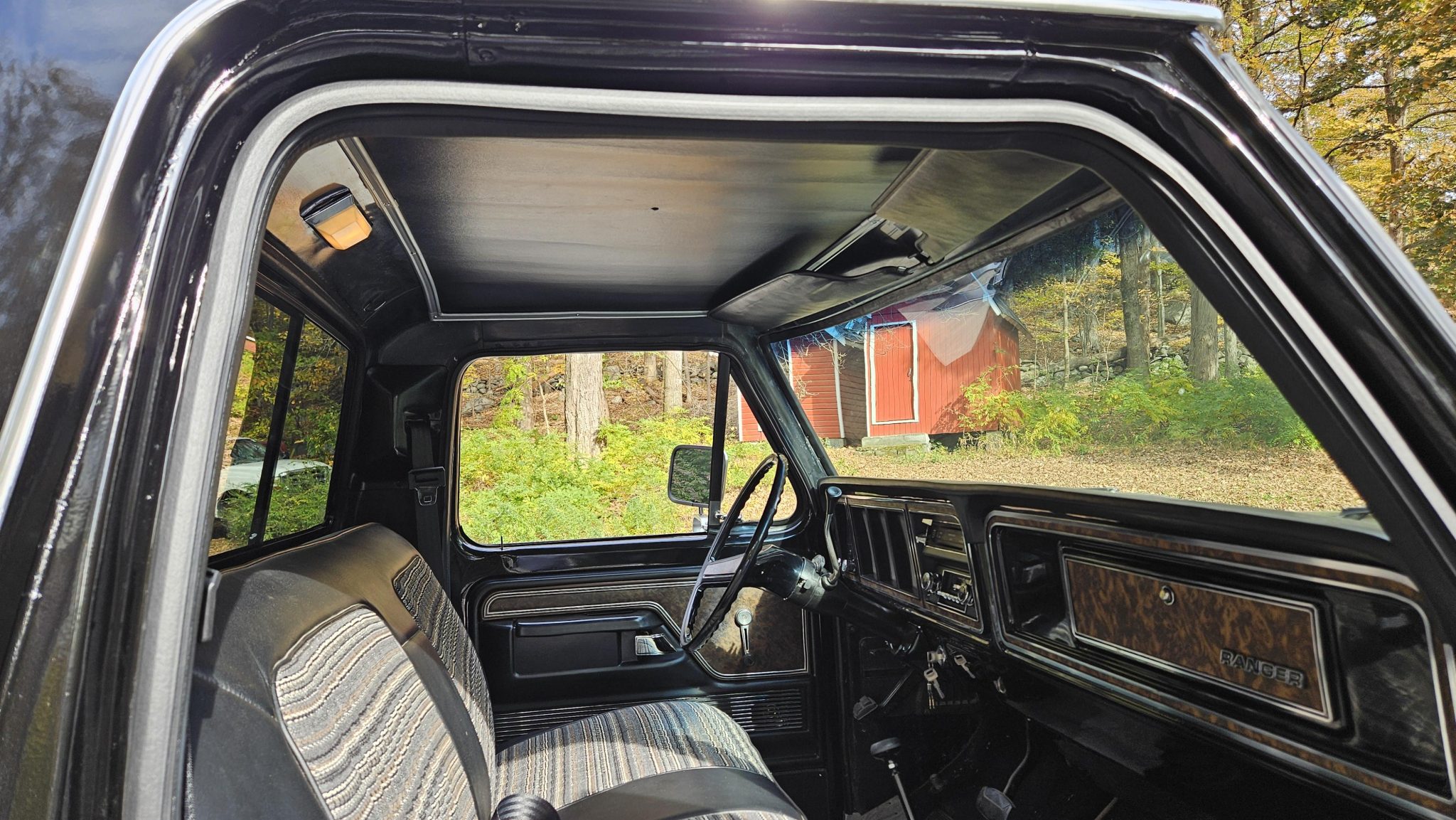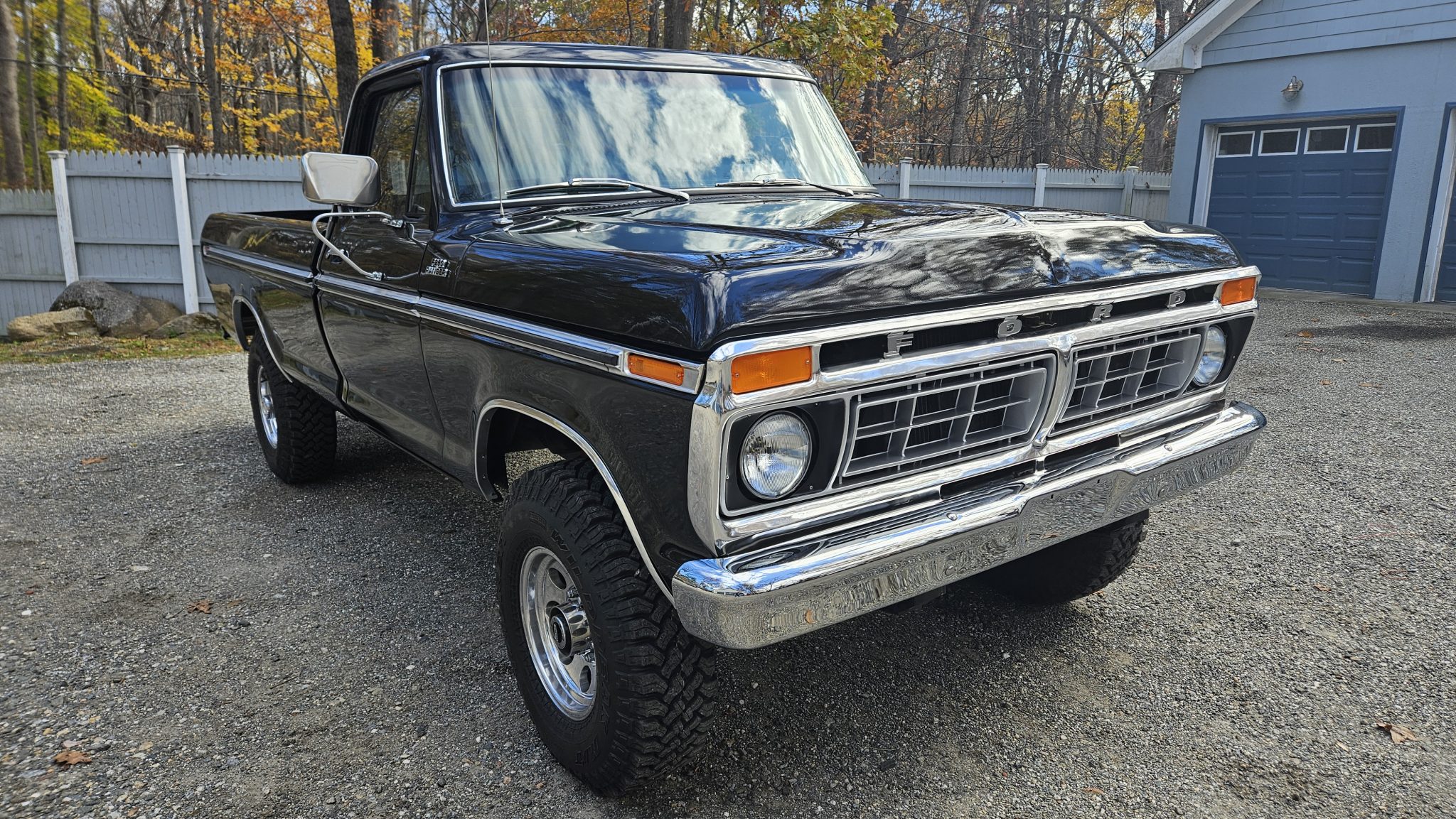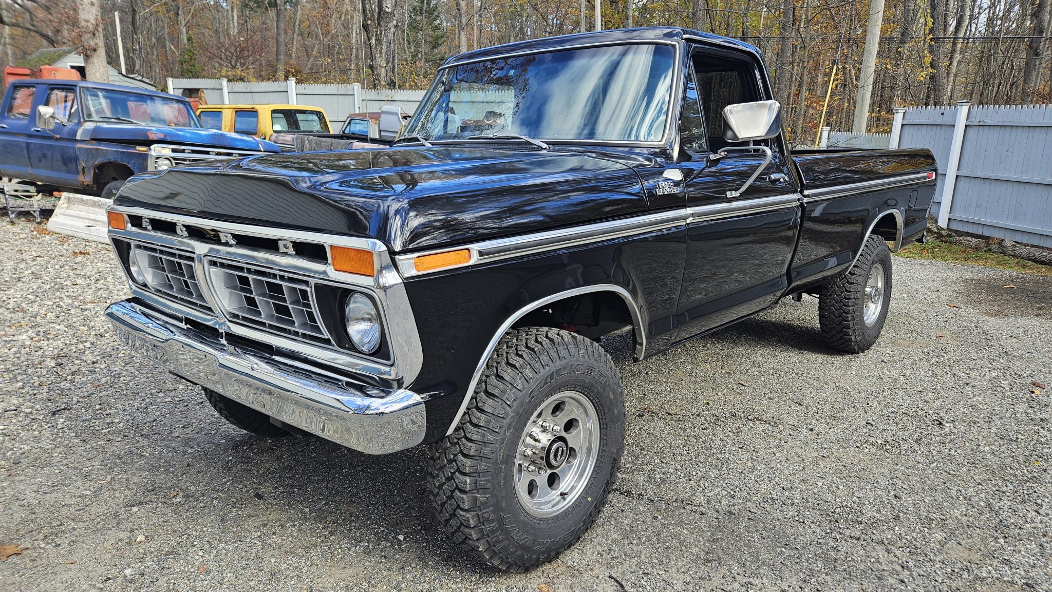 This 1977 Ford F-250 Ranger 4×4 pickup It was repainted black following the selling dealer’s acquisition in 2024, and additional work is noted to have included rebuilding the carburetor, installing Rancho shock absorbers and a Champion radiator, and replacing the fuel tank, heater core, body mount bushings, and various steering components. Power comes from a 400ci V8 linked to a three-speed automatic transmission, a dual-range transfer case, and a limited-slip rear differential, and the truck rolls on 16″ wheels. Additional equipment includes a sliding rear window, manually locking front hubs, power-assisted front disc brakes, and a digital stereo.