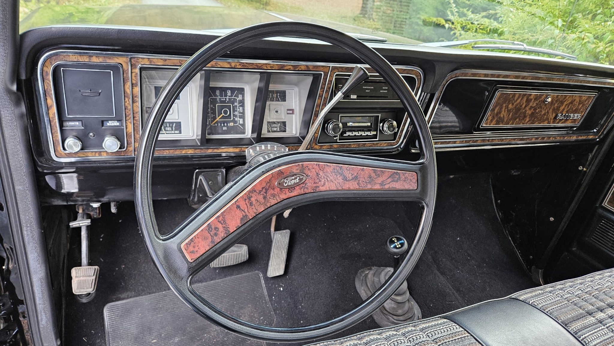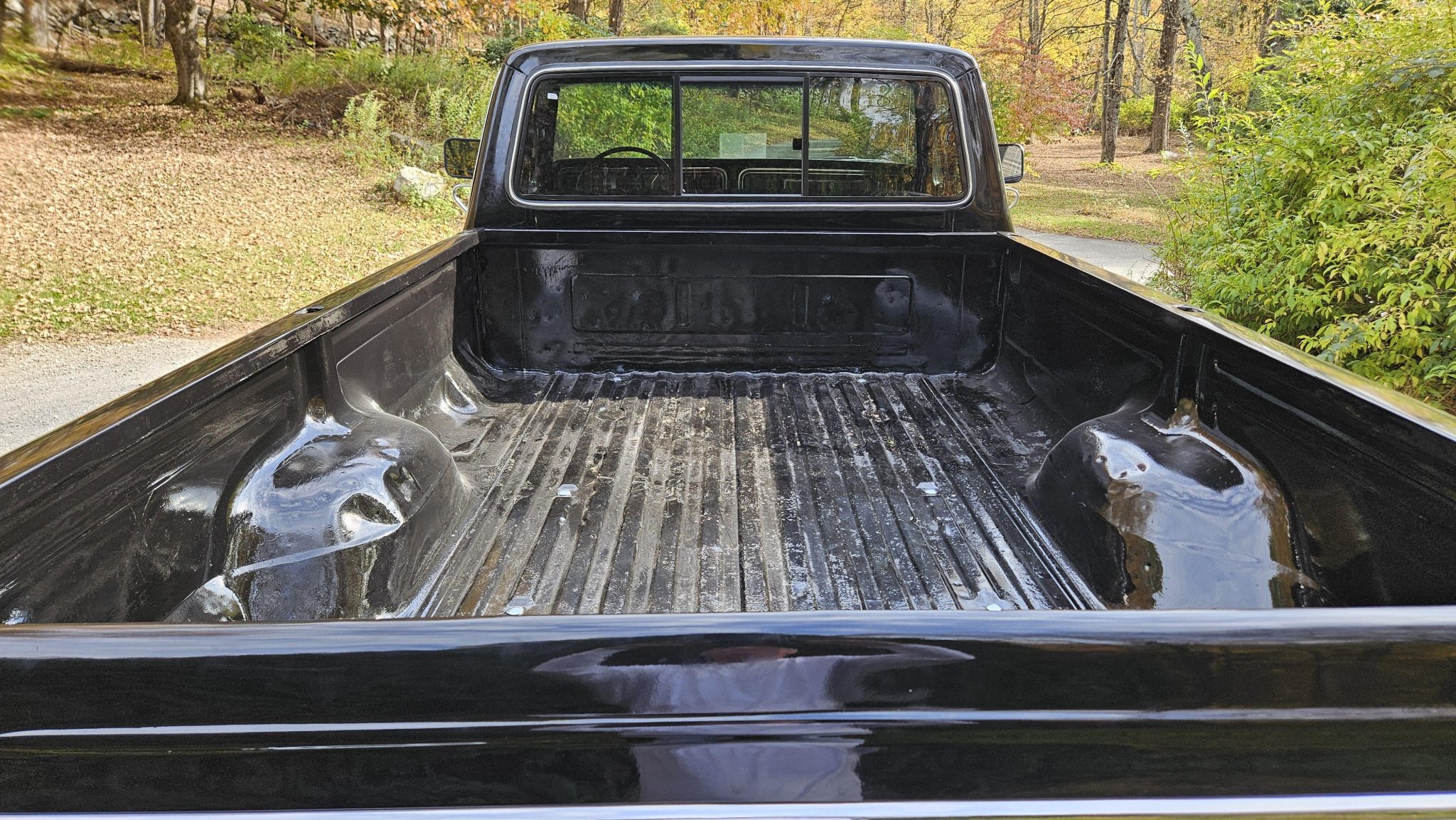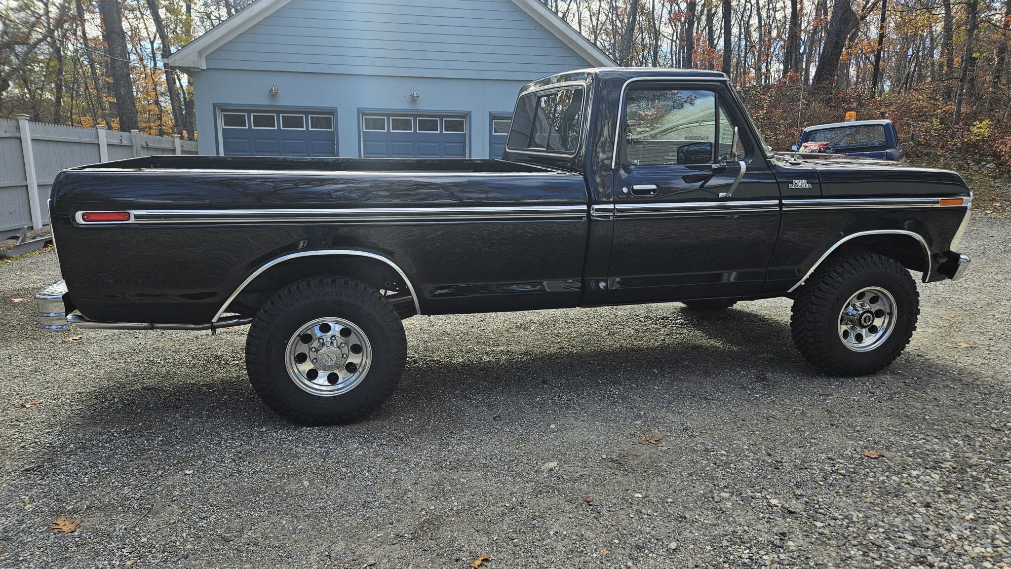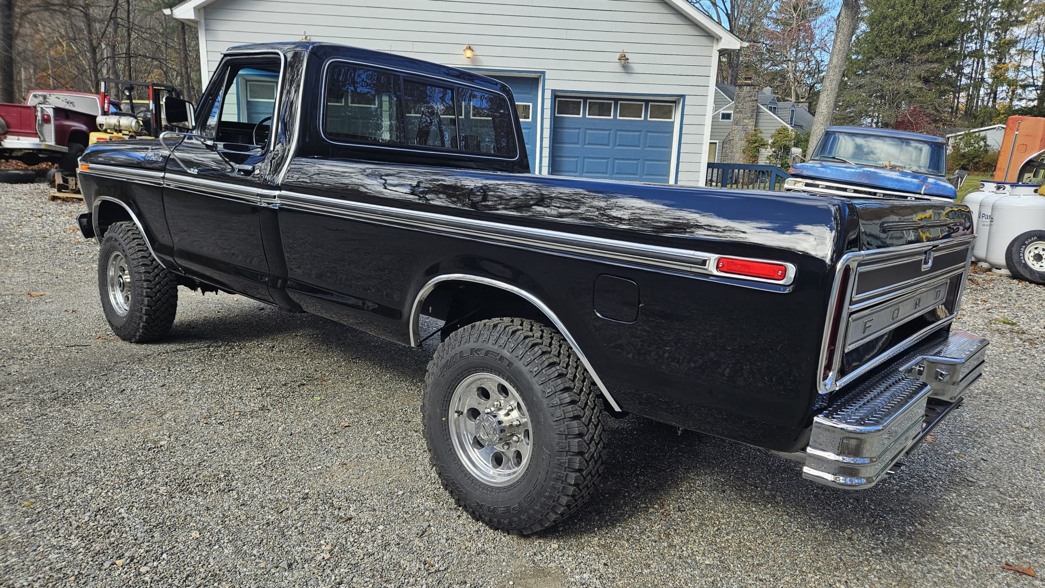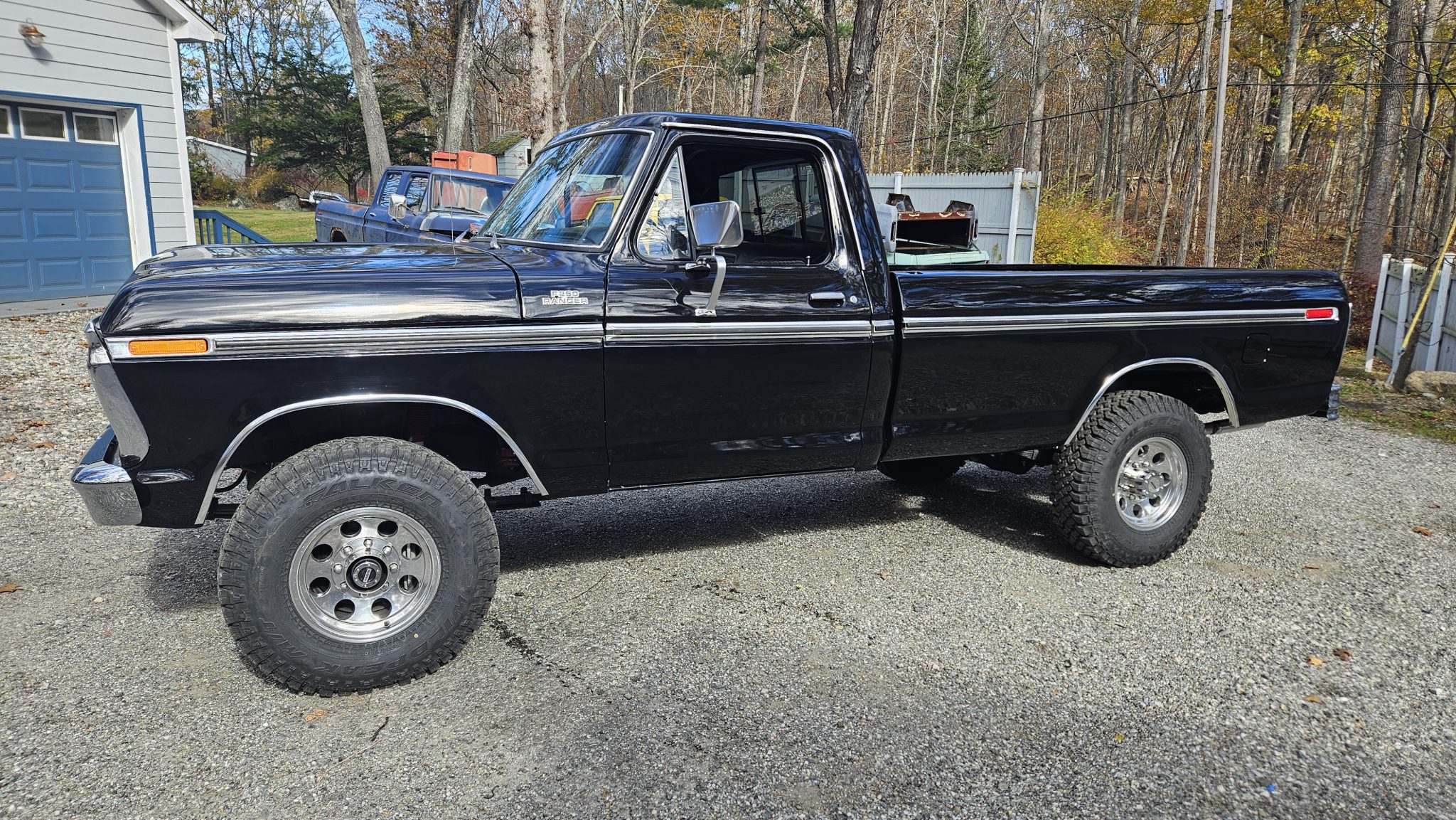 This 1977 Ford F-250 Ranger 4×4 pickup It was repainted black following the selling dealer’s acquisition in 2024, and additional work is noted to have included rebuilding the carburetor, installing Rancho shock absorbers and a Champion radiator, and replacing the fuel tank, heater core, body mount bushings, and various steering components. Power comes from a 400ci V8 linked to a three-speed automatic transmission, a dual-range transfer case, and a limited-slip rear differential, and the truck rolls on 16″ wheels. Additional equipment includes a sliding rear window, manually locking front hubs, power-assisted front disc brakes, and a digital stereo.