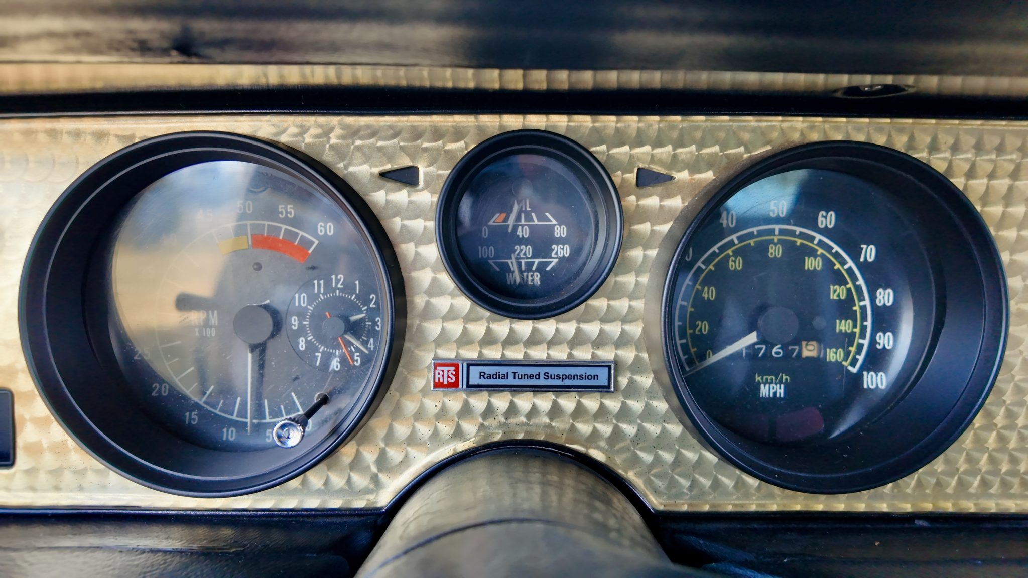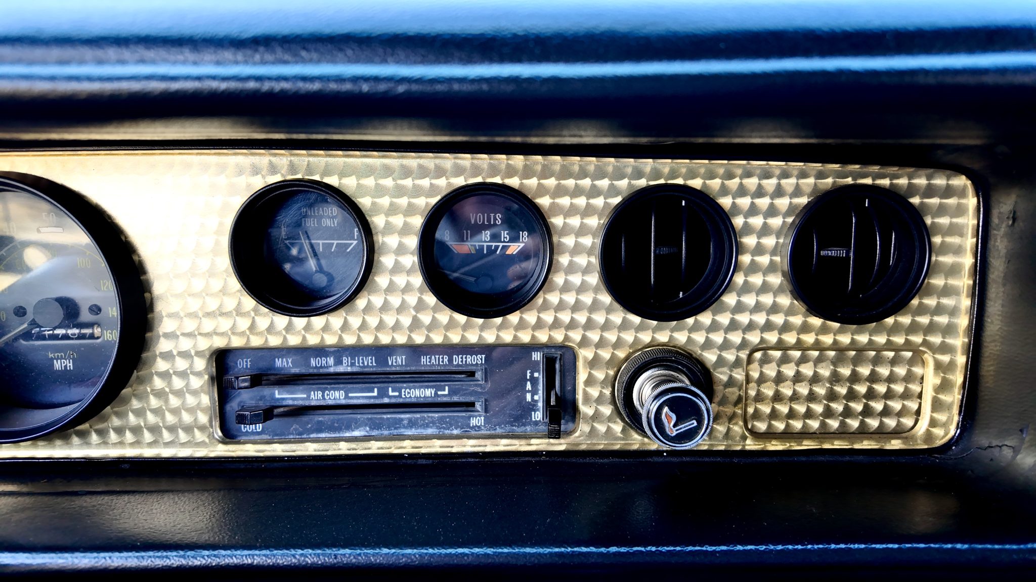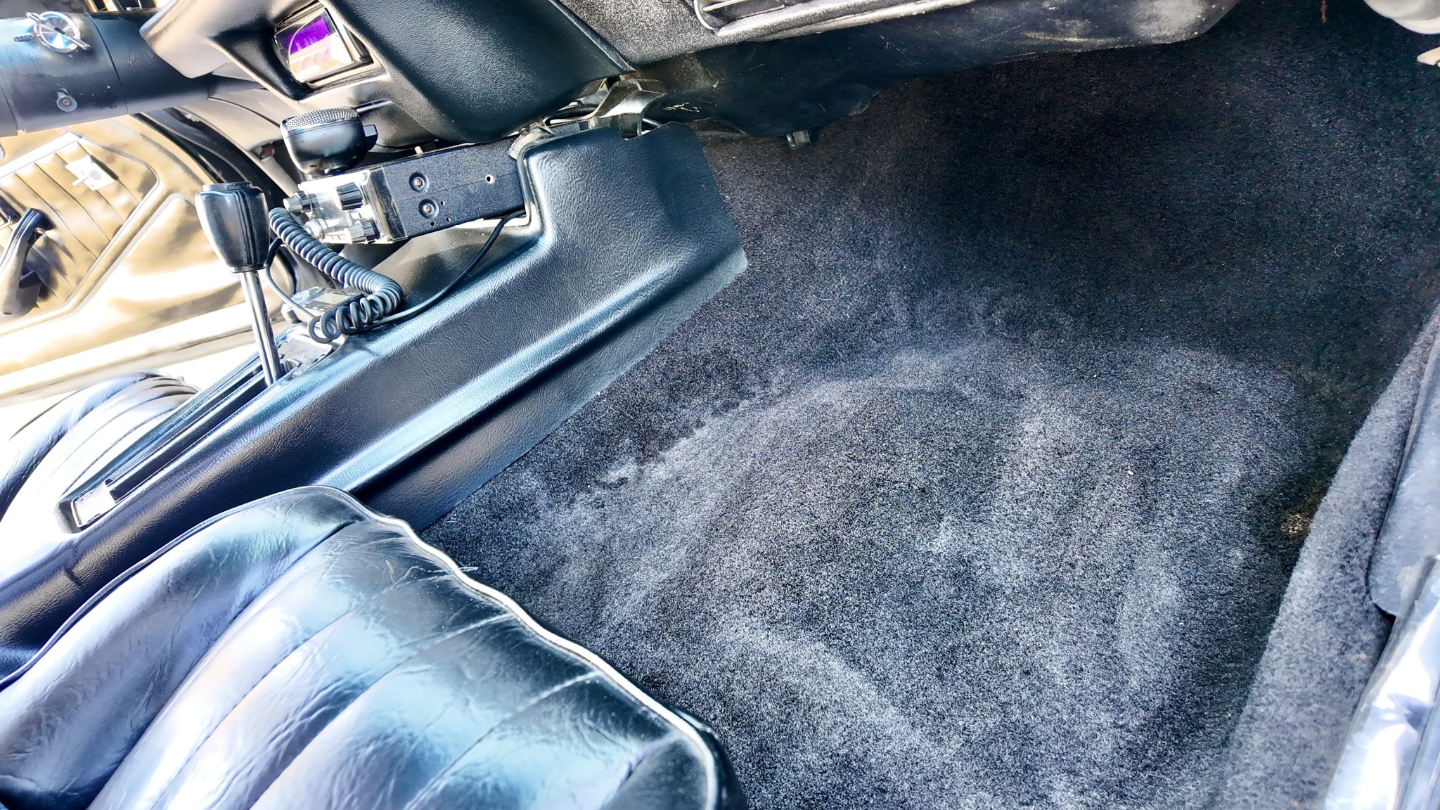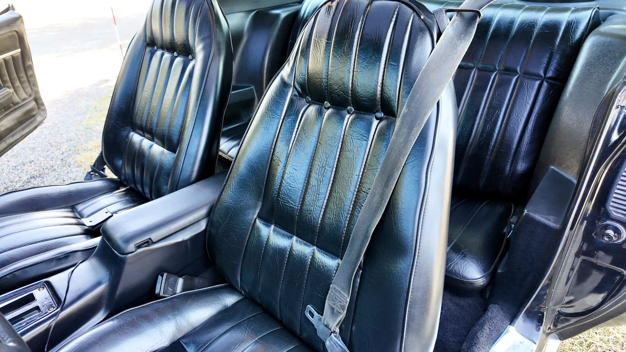 This 1977 Pontiac Firebird Trans Am was refurbished and is refinished in black over black vinyl. Power is provided by a 400ci V8 linked with a three-speed automatic transmission and a Safe-T-Track limited-slip differential. Equipment includes removable t-top roof panels, a shaker hood, 15″ gold-finished snowflake wheels, power steering, a CD stereo, a CB radio, and air conditioning.