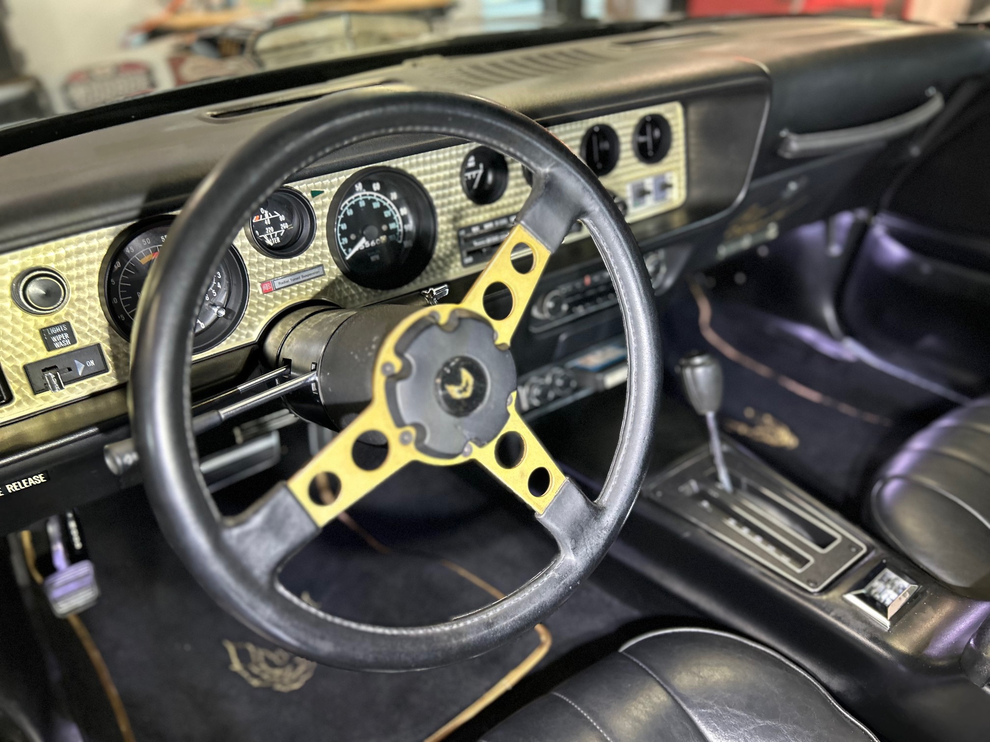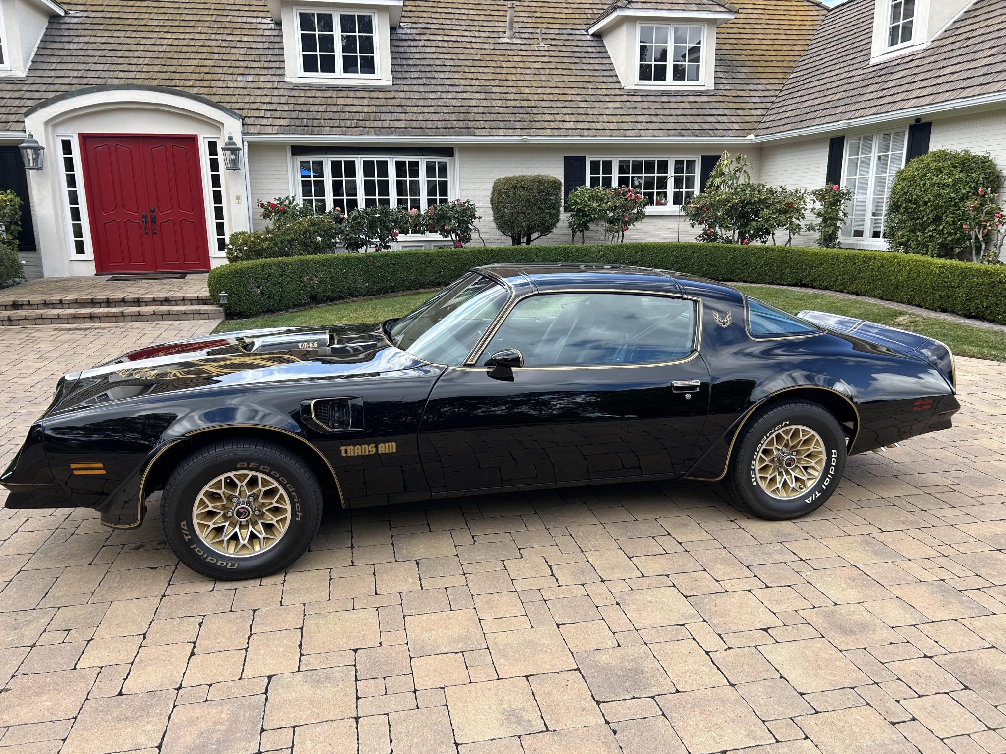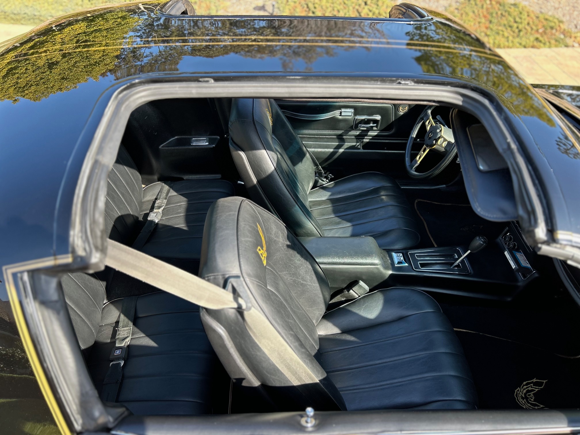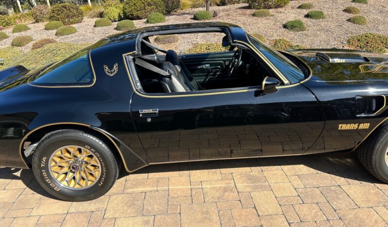 This 1977 Pontiac Firebird Trans Am is a black-over-black Special Edition example Now showing 26k miles, the car is powered by a 400ci V8 linked to a three-speed automatic transmission and a limited-slip differential. Additional equipment includes removable Hurst Hatch T-top roof panels, 15″ gold-accented snowflake wheels, power steering, power-assisted front disc brakes, a shaker hood, and aftermarket exhaust components as well as an eight-track tape player, cruise control, and power windows.