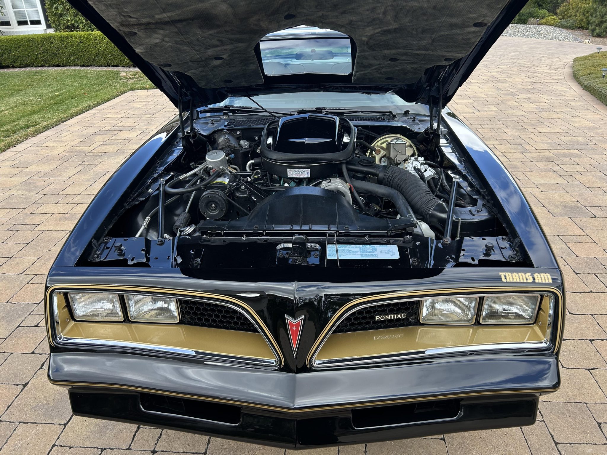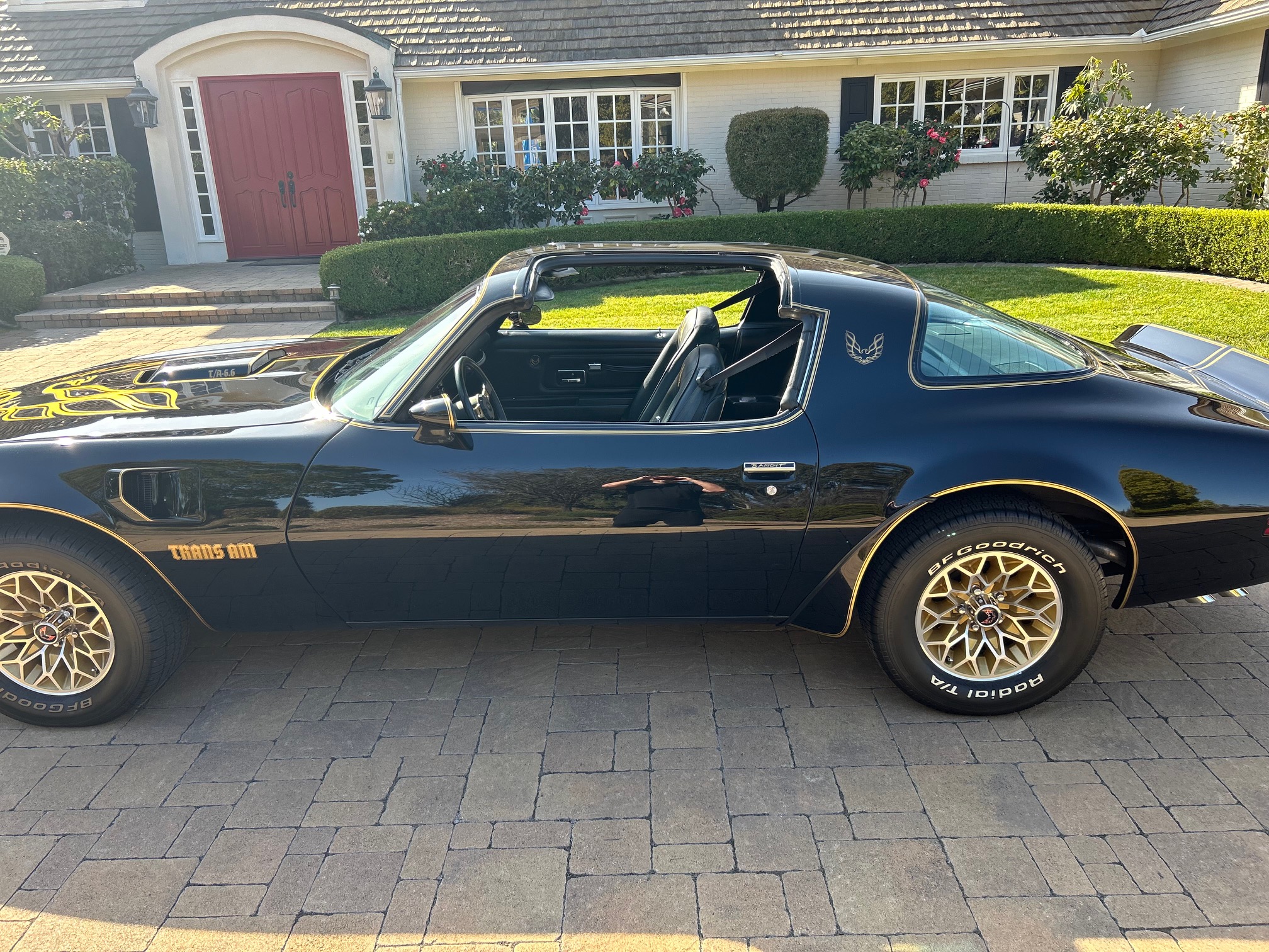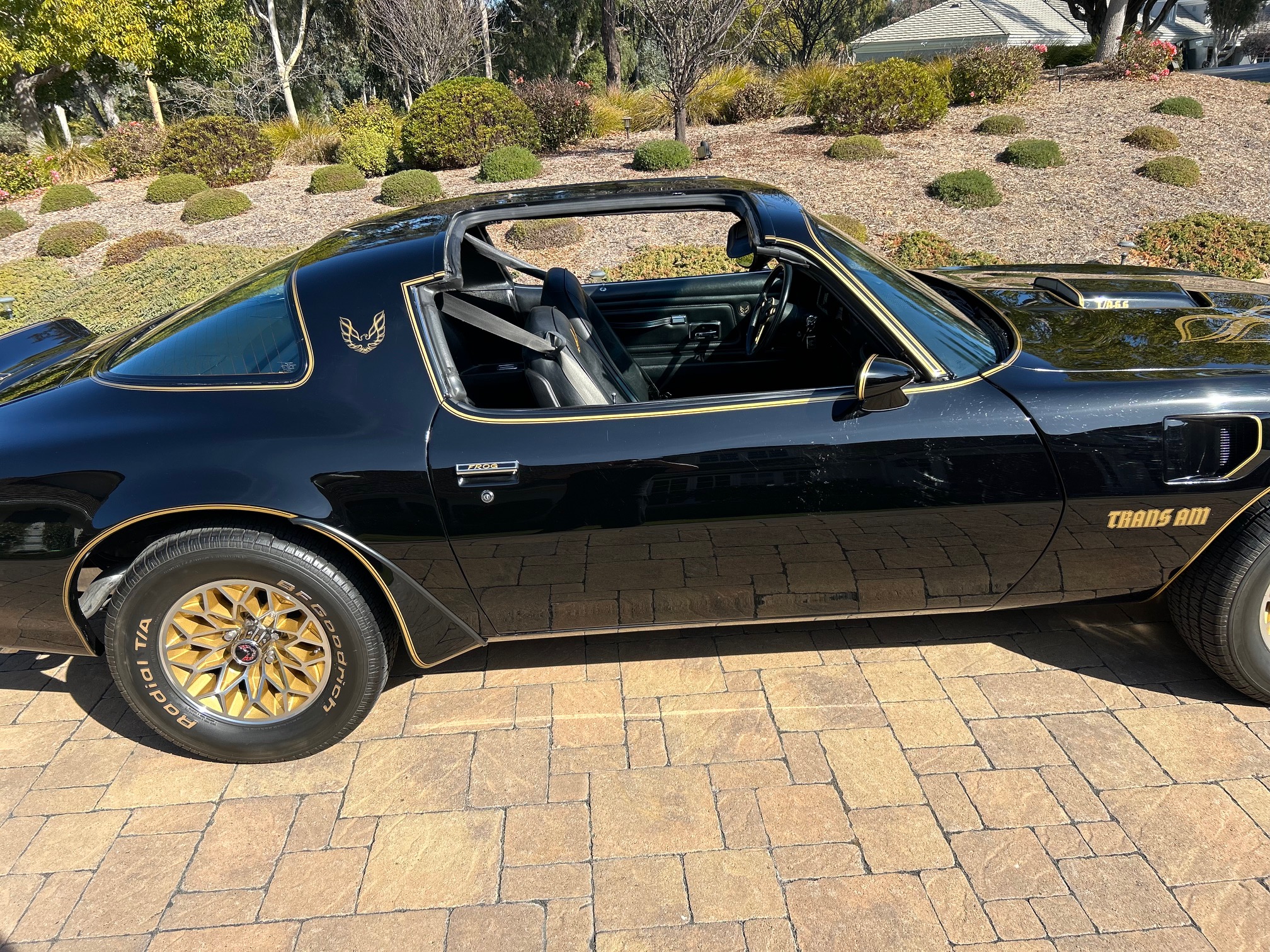 This 1977 Pontiac Firebird Trans Am is a black-over-black Special Edition example Now showing 26k miles, the car is powered by a 400ci V8 linked to a three-speed automatic transmission and a limited-slip differential. Additional equipment includes removable Hurst Hatch T-top roof panels, 15″ gold-accented snowflake wheels, power steering, power-assisted front disc brakes, a shaker hood, and aftermarket exhaust components as well as an eight-track tape player, cruise control, and power windows.