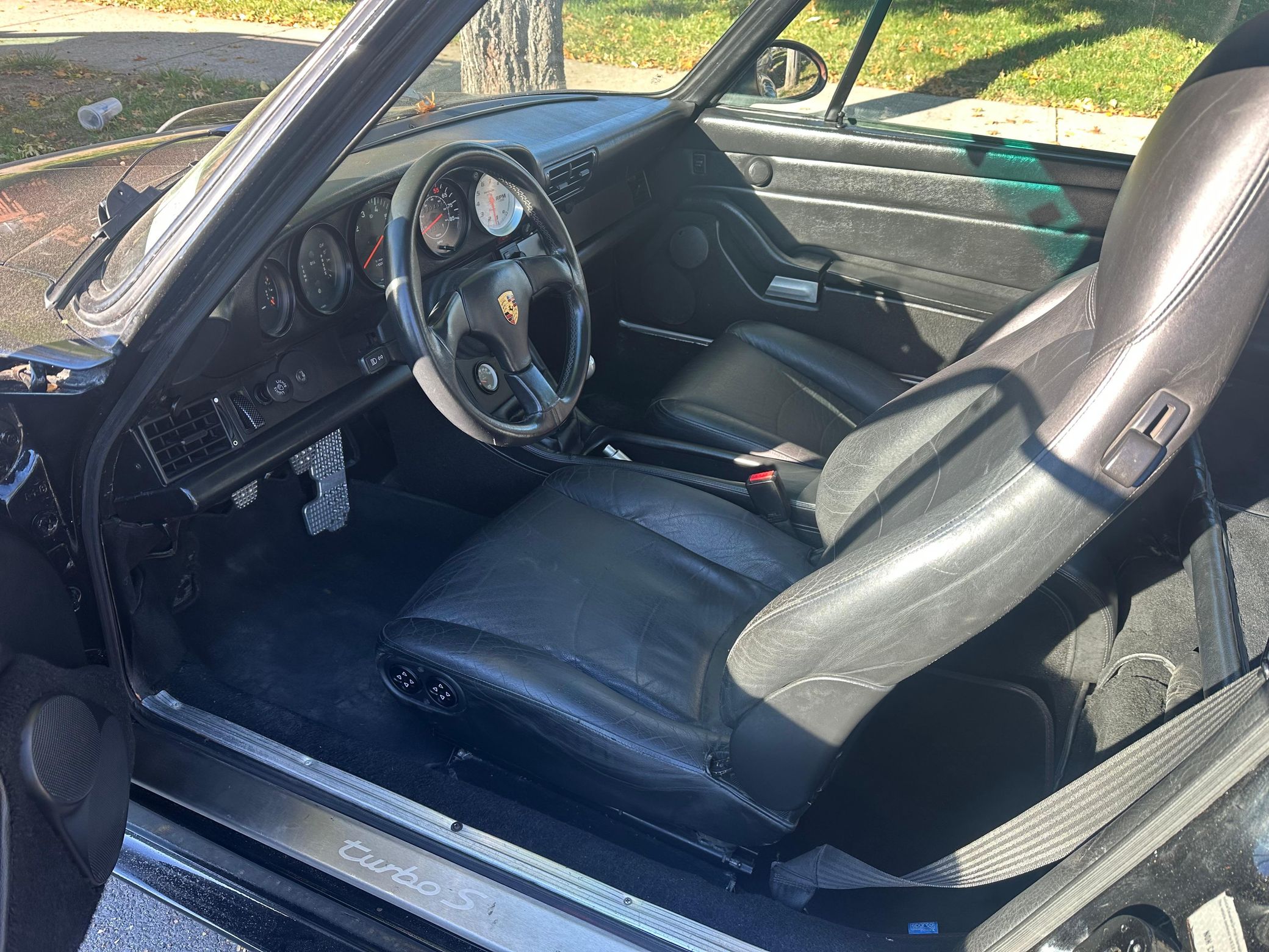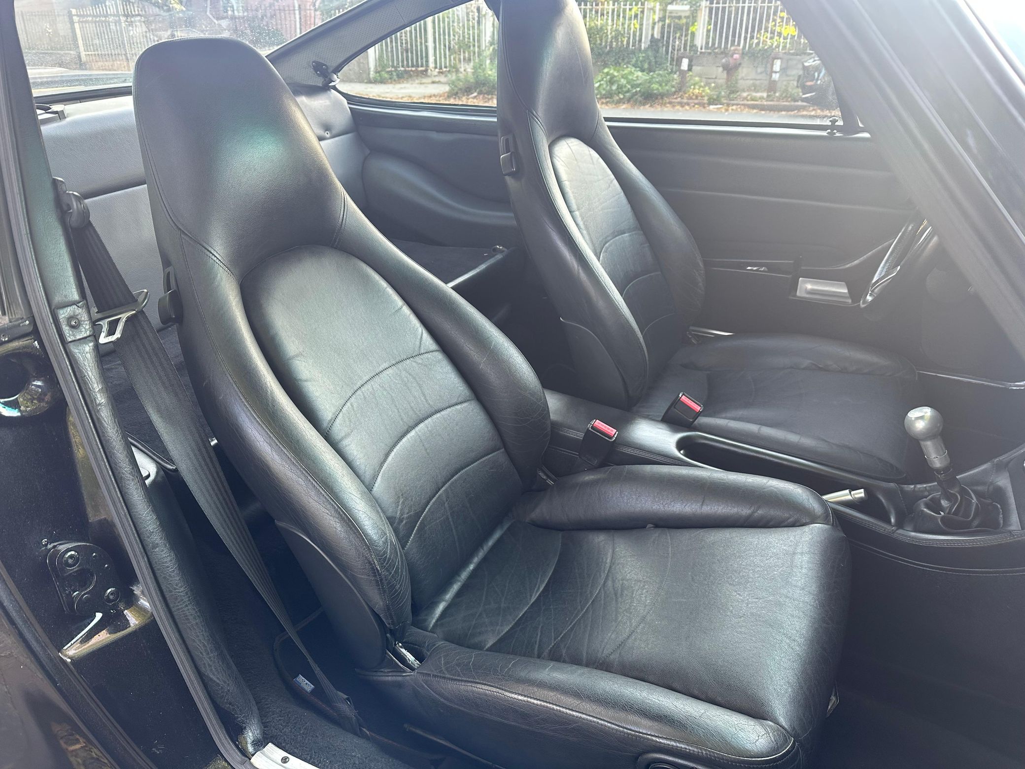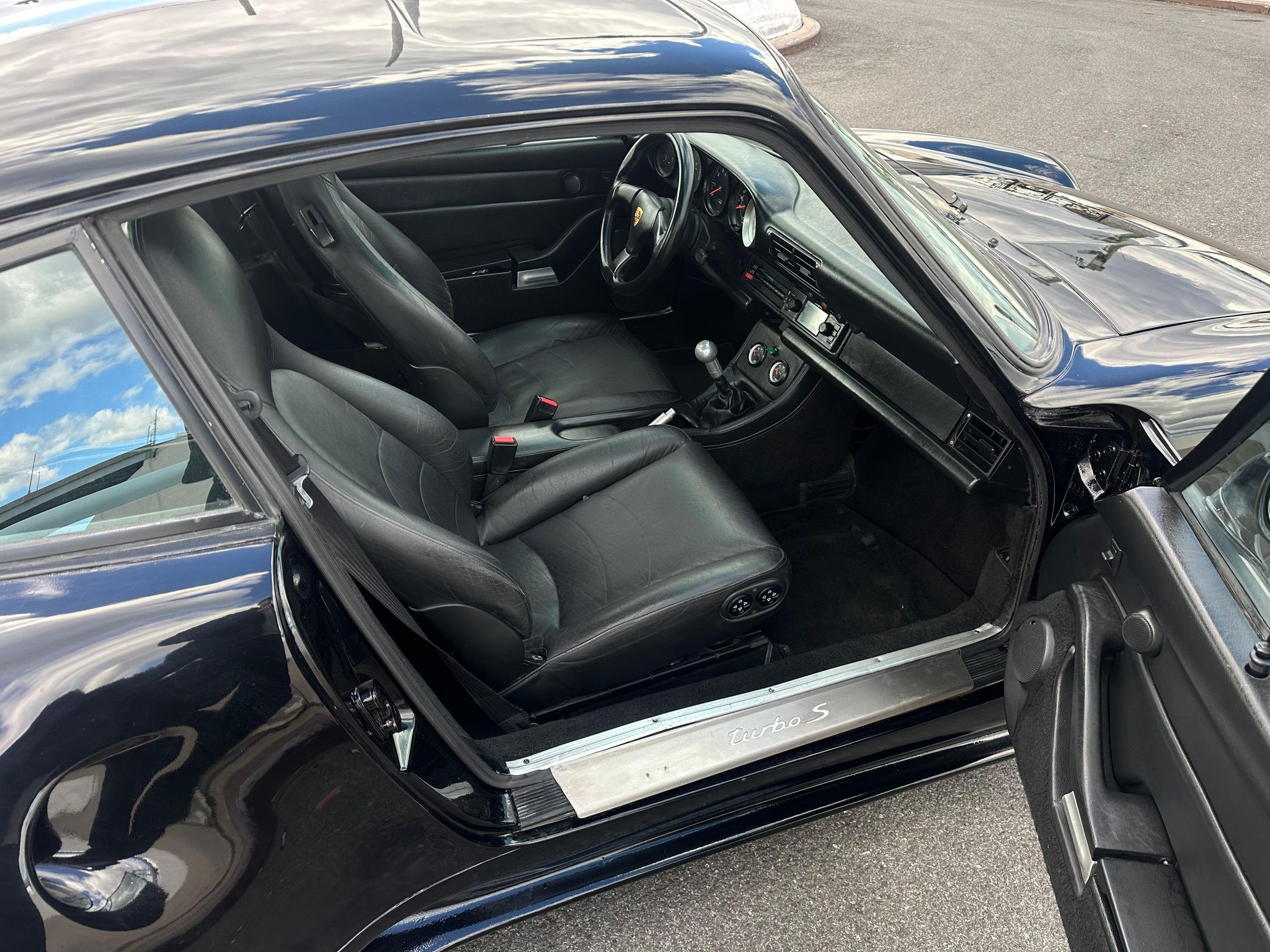 This particular 911S has been modified with a 993 Turbo S Leichtbau–style widebody kit, which looks fantastic. It's also been fitted with a larger 3.0-liter flat-6 that's paired with a 5-speed manual transmission – and it features several other neat modifications like 18-inch wheels, an upgraded lowered suspension, and a PCCM head unit