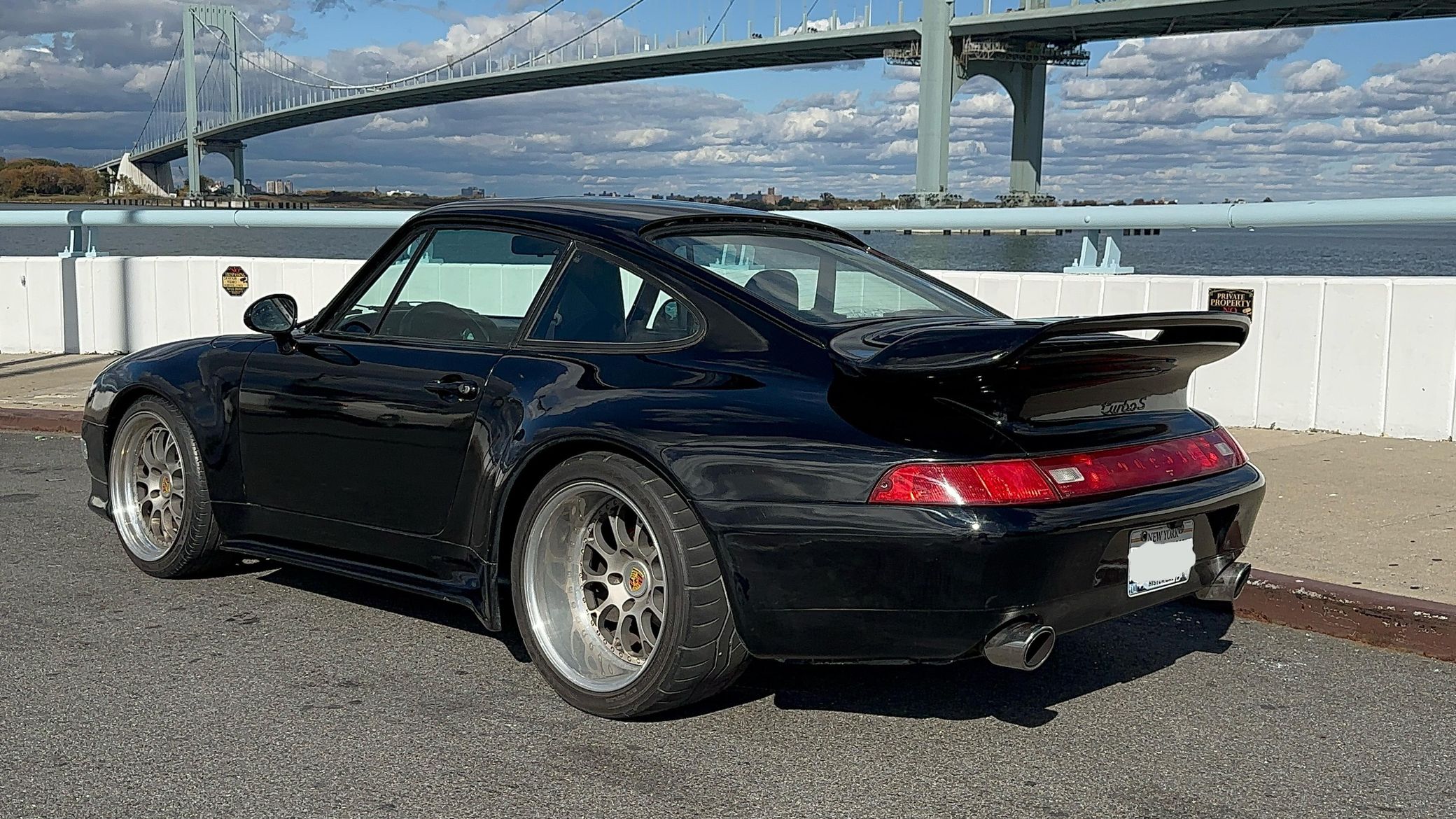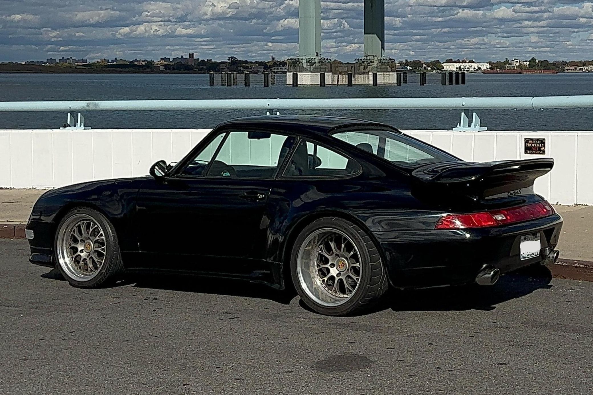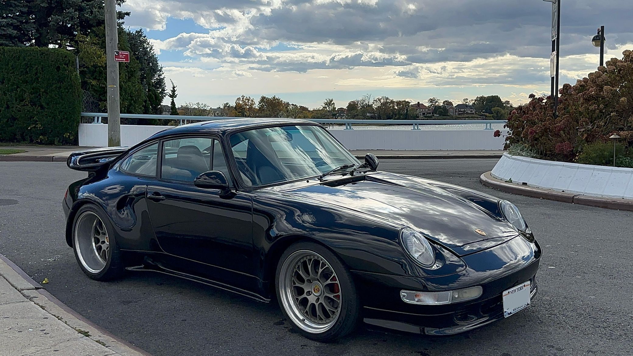 This particular 911S has been modified with a 993 Turbo S Leichtbau–style widebody kit, which looks fantastic. It's also been fitted with a larger 3.0-liter flat-6 that's paired with a 5-speed manual transmission – and it features several other neat modifications like 18-inch wheels, an upgraded lowered suspension, and a PCCM head unit
