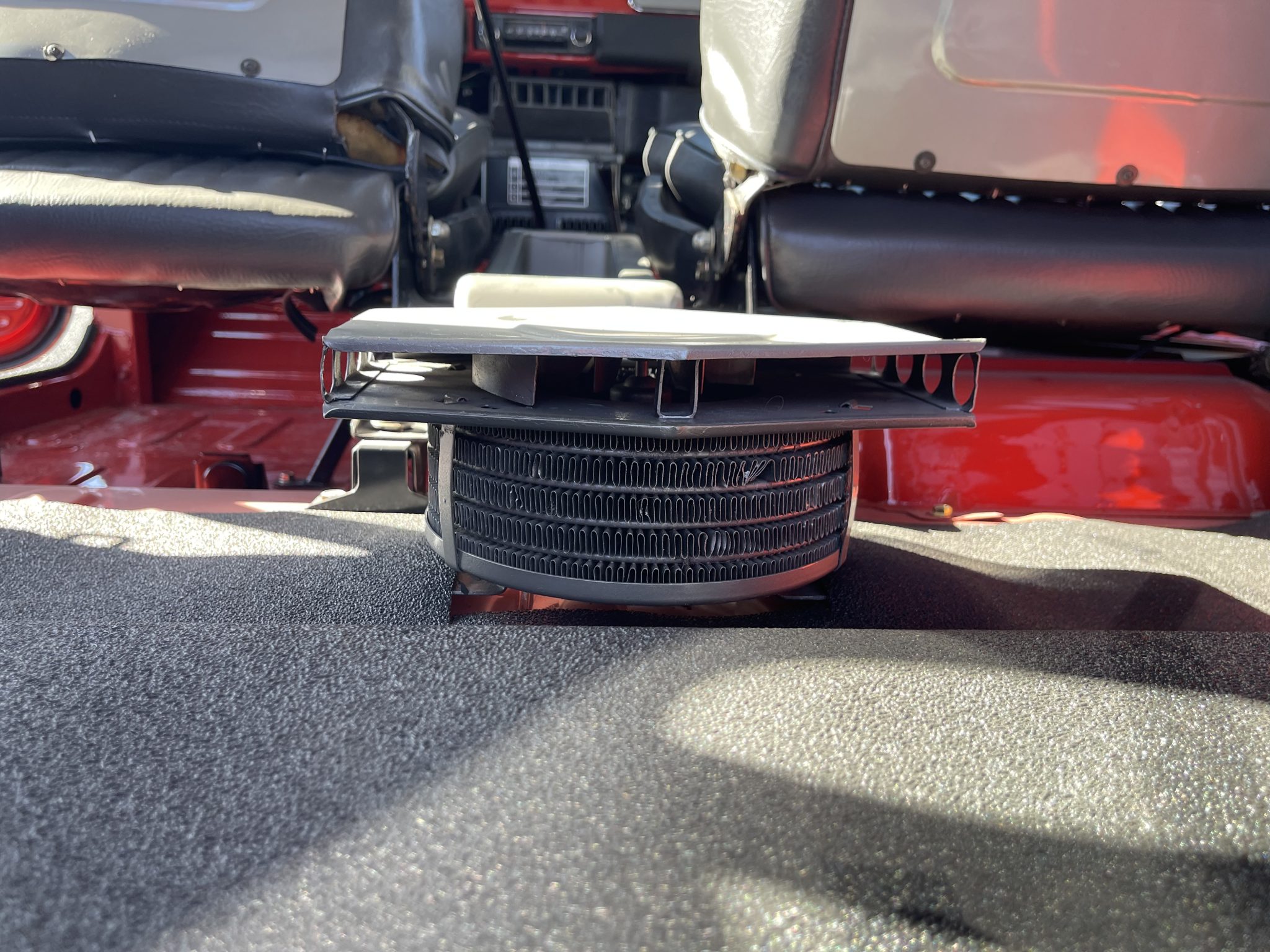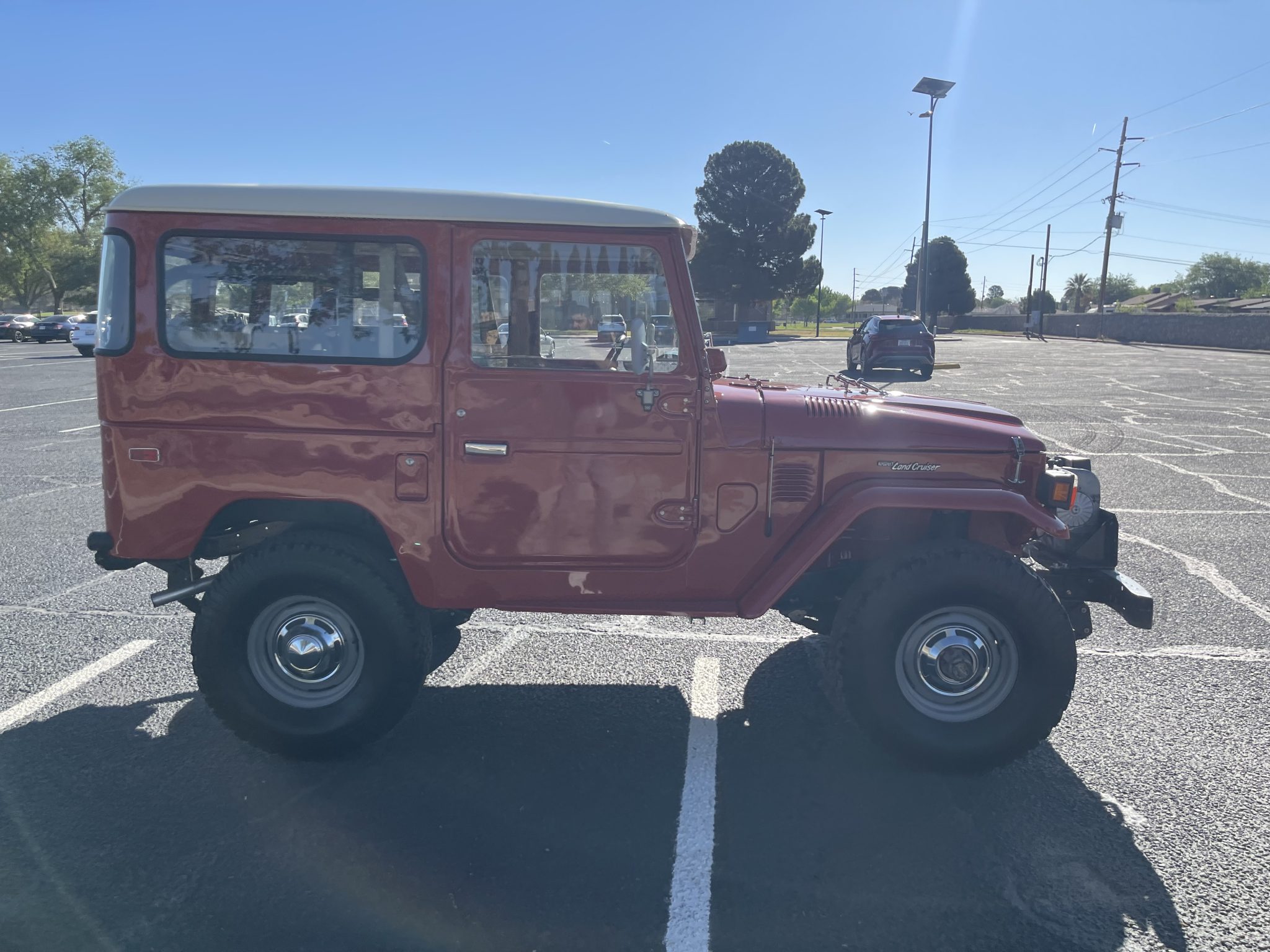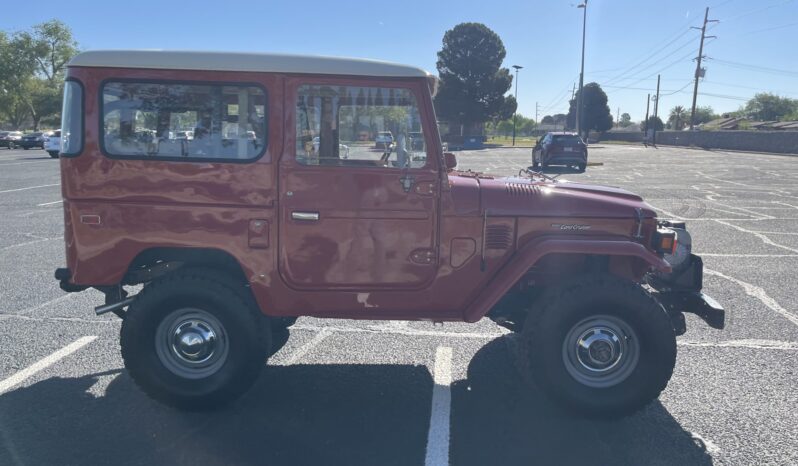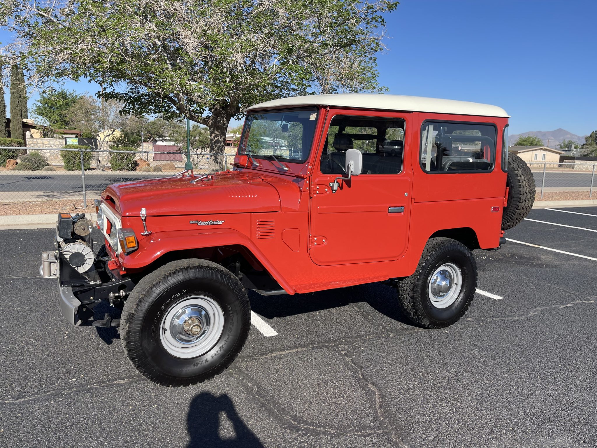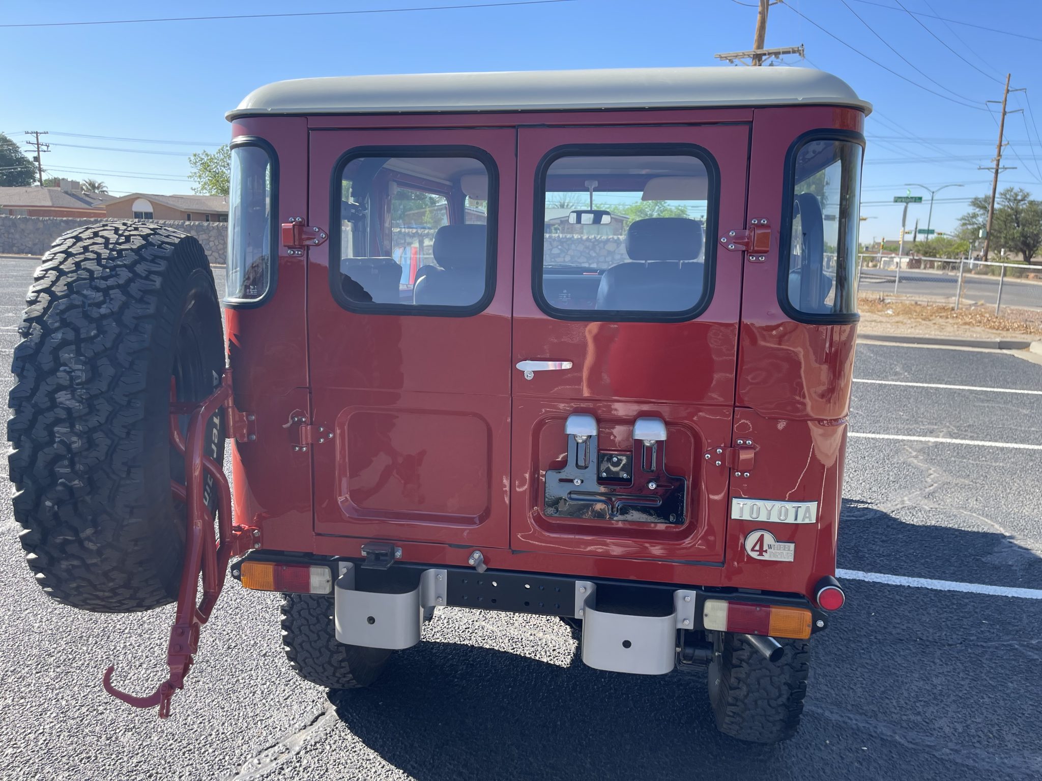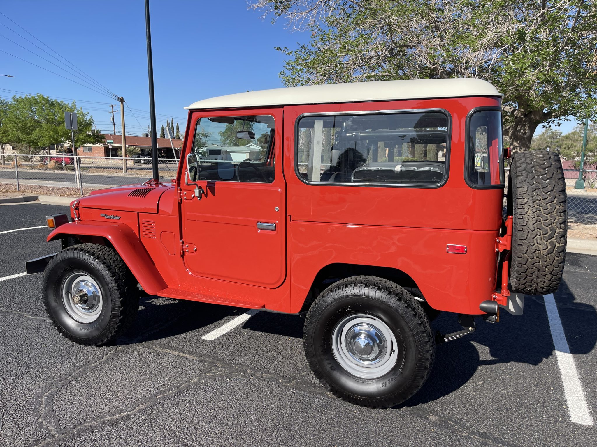 Finished in Freeborn Red over gray vinyl upholstery, the truck is powered by a 4.2-liter inline-six linked with a four-speed manual transmission and a dual-range transfer case. Equipment includes a removable hardtop with a white roof as well as manually locking front hubs, an Old Man Emu suspension, front disc brakes, 15″ steel wheels, a winch, ambulance-style rear doors, a roll bar, a cabin heater, crank windows, rear jump seats, and an AM radio.