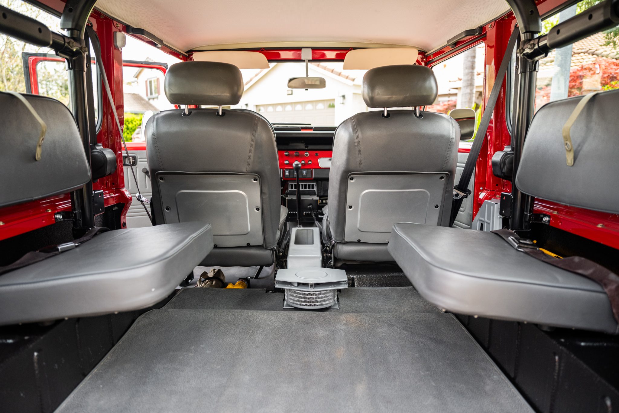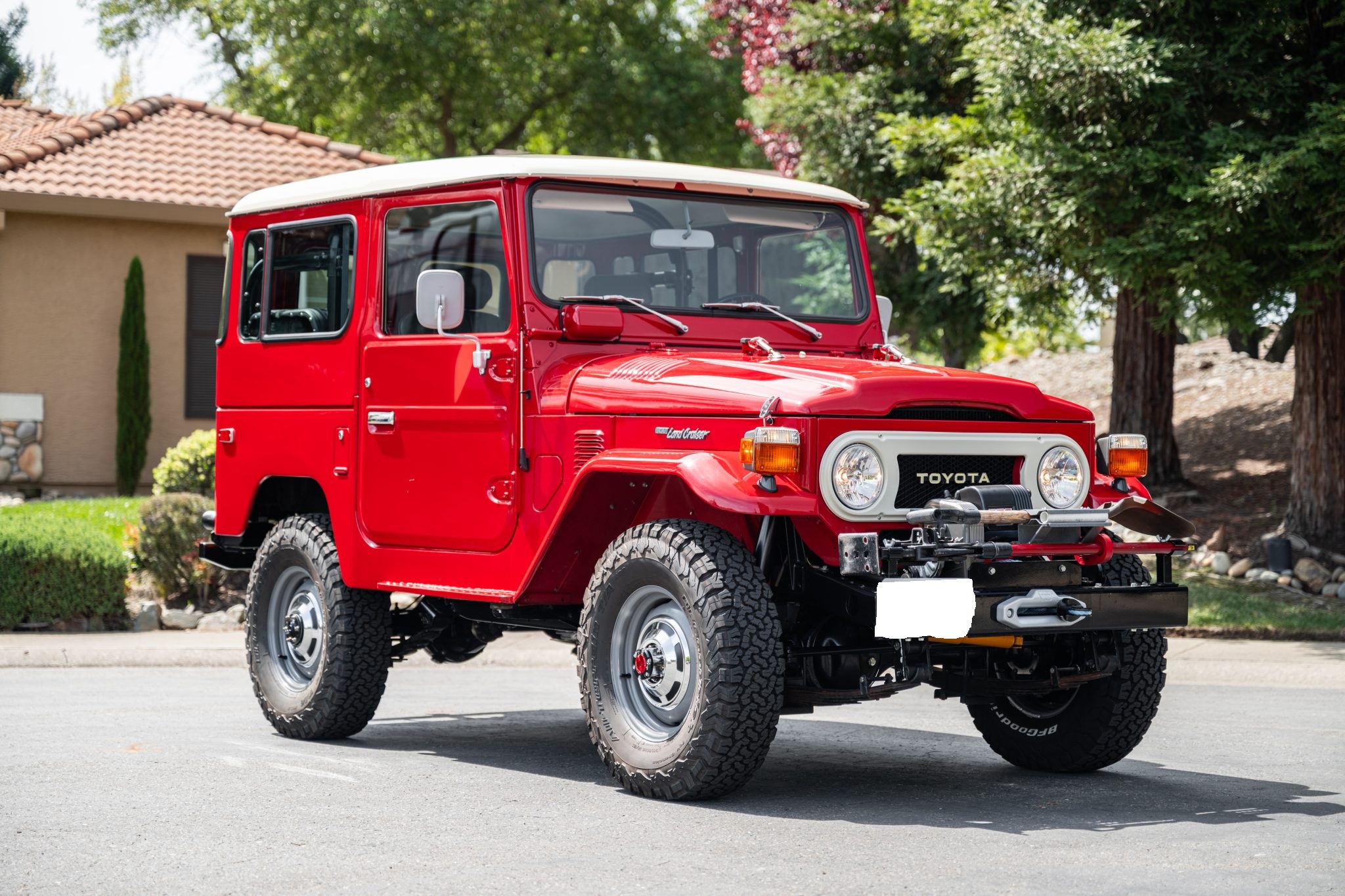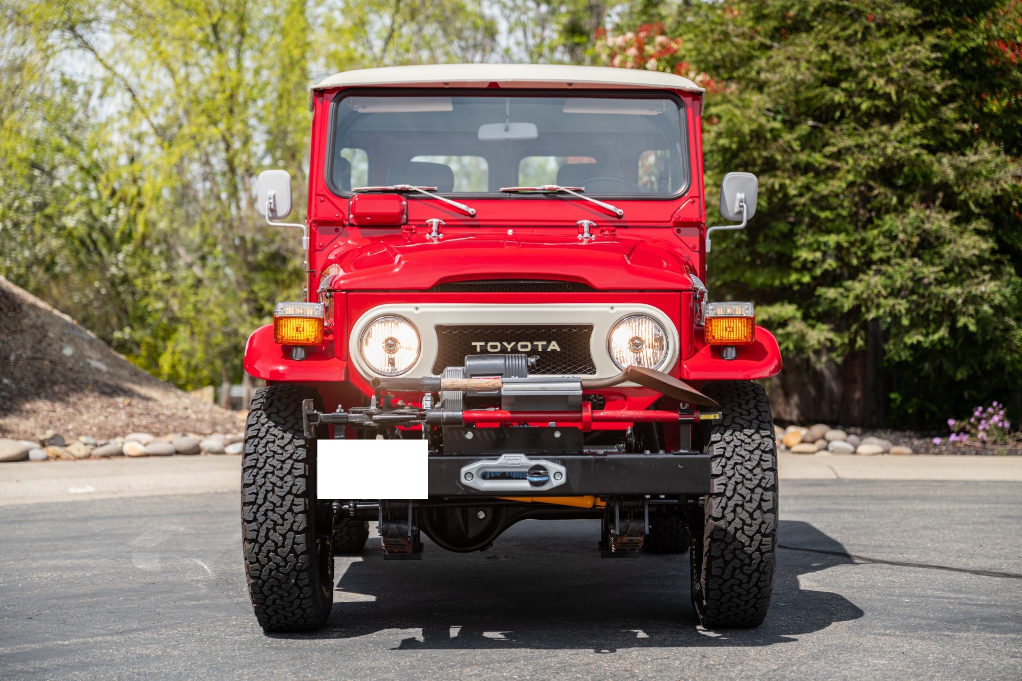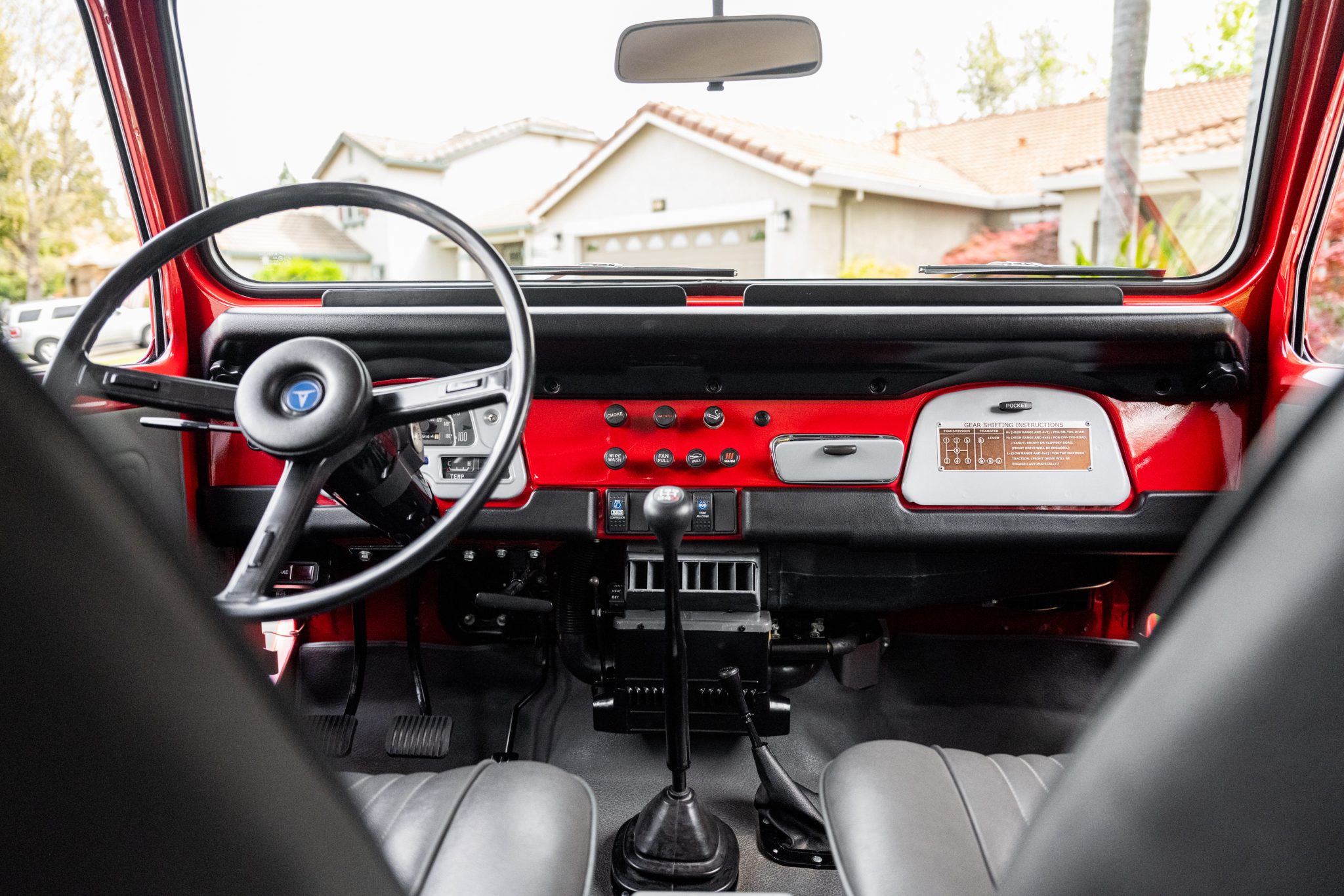 In addition to overhauls of its body, chassis, and interior, the body-off project involved selecting modifications from other Land Cruiser years, models, and markets, and the truck features an H55 five-speed manual transmission, an FJ60 split transfer case, an FJ45 full floating rear axle, four-wheel disc brakes, 1979/80-spec power steering, and a 1980/81-spec block for its 4.2L 2F inline-six. Finished in Freeborn Red with a Cygnus White roof over gray upholstery, it also has Old Man Emu lifted suspension, a front winch, welded 16″ steel wheels, front and rear heaters, and ARB air lockers.