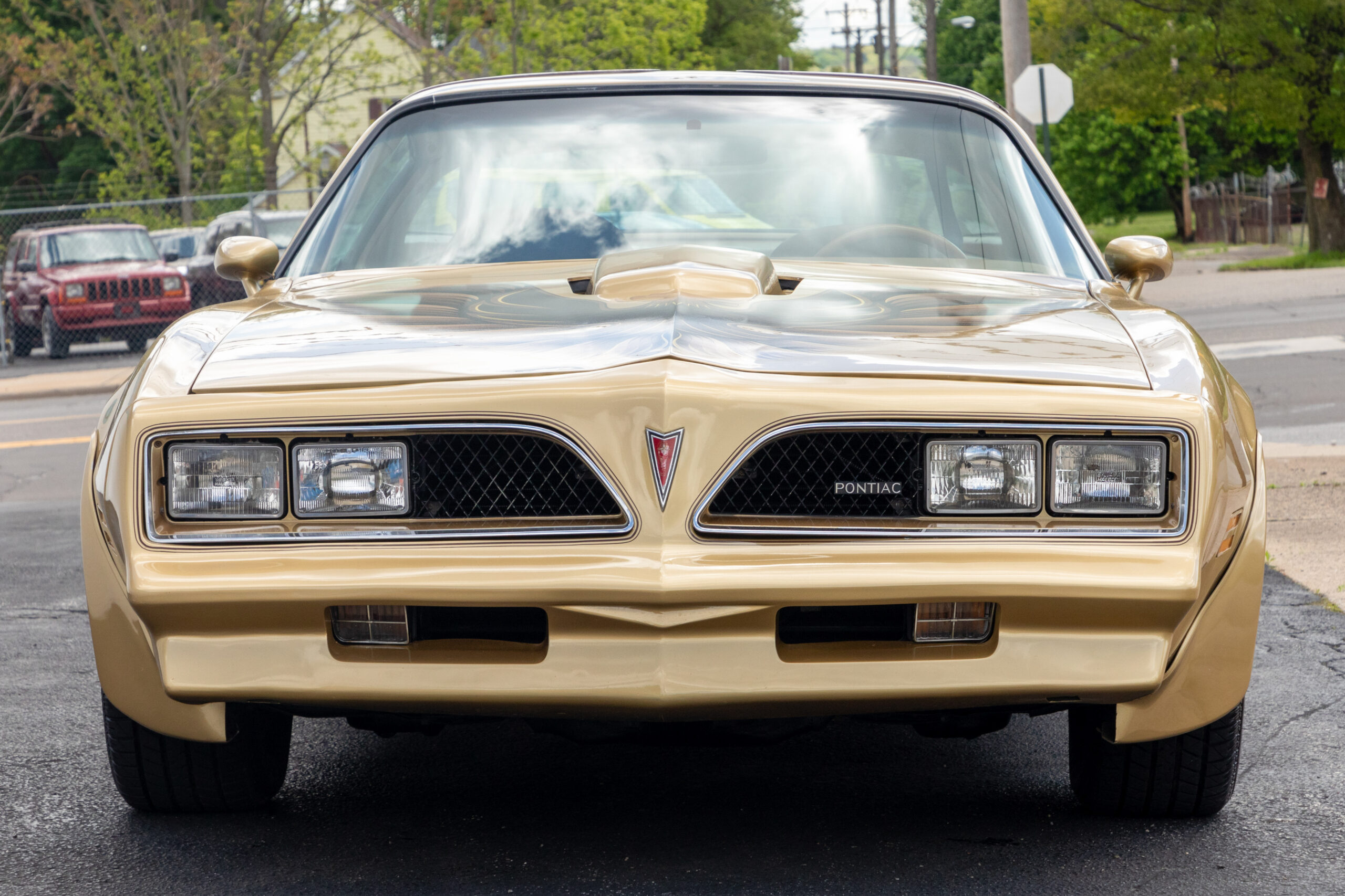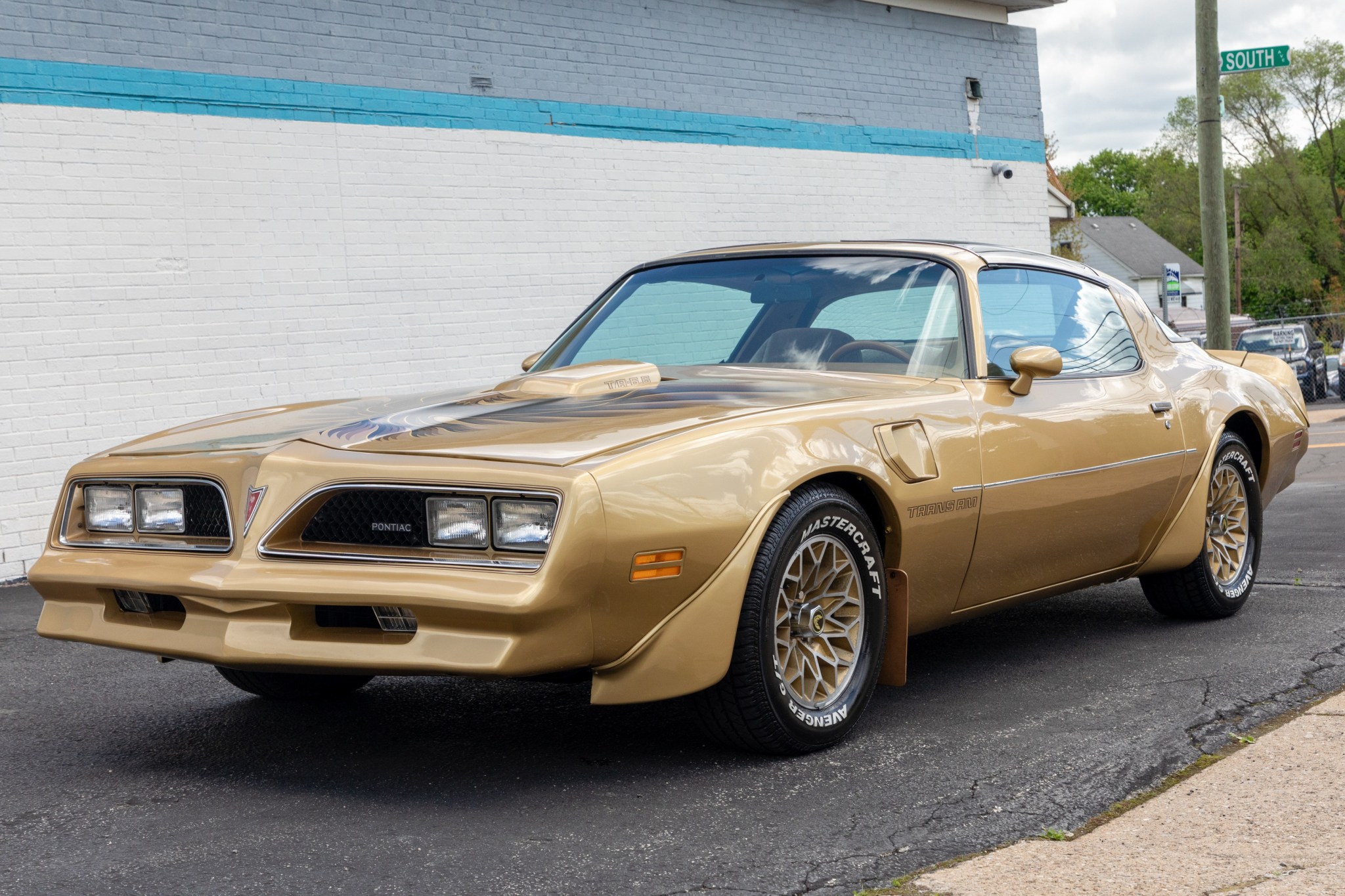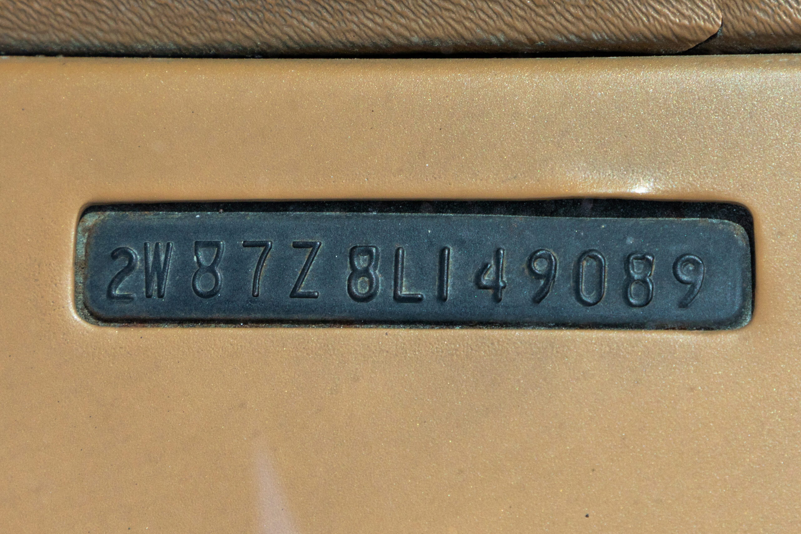 Recent work consisted of rebuilding the engine and repainting the body. The car is finished in Solar Gold over Camel Tan velour and is powered by a 400ci V8 linked with a three-speed automatic transmission and a Safe-T-Track limited-slip differential. Equipment includes removable t-top roof panels, a shaker hood, 15″ gold-finished snowflake wheels, power steering, power windows, an AM/FM radio, cruise control, and air conditioning.
