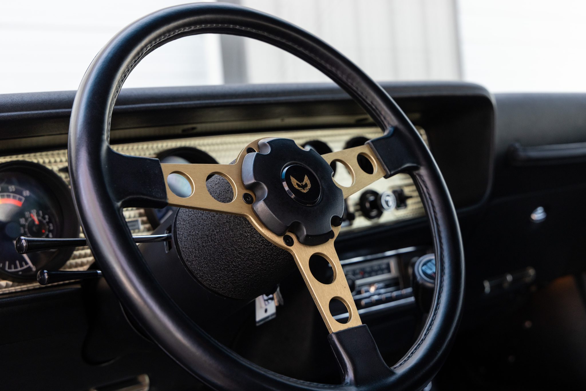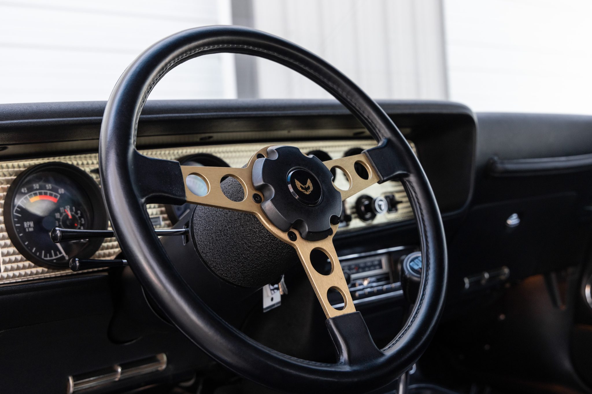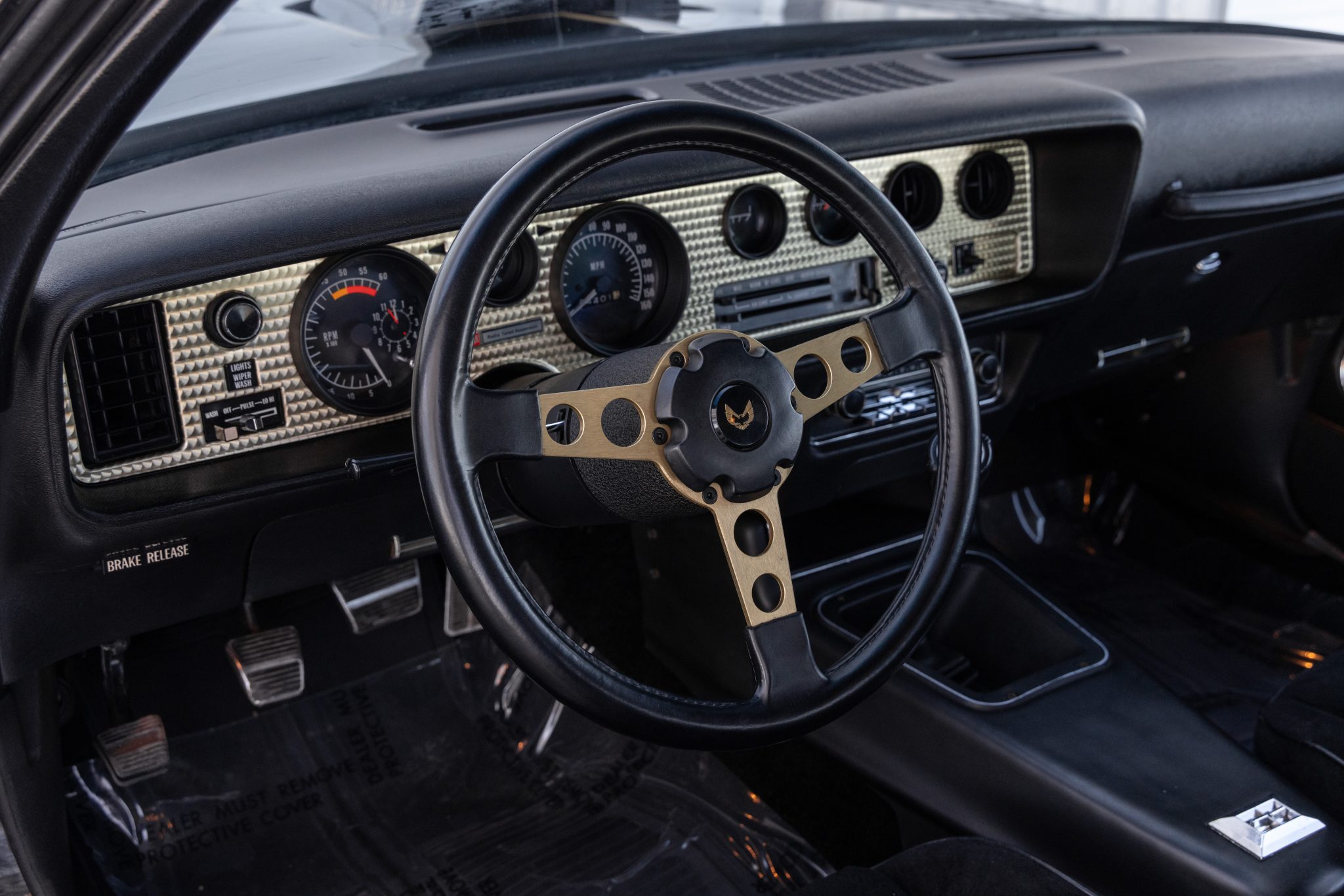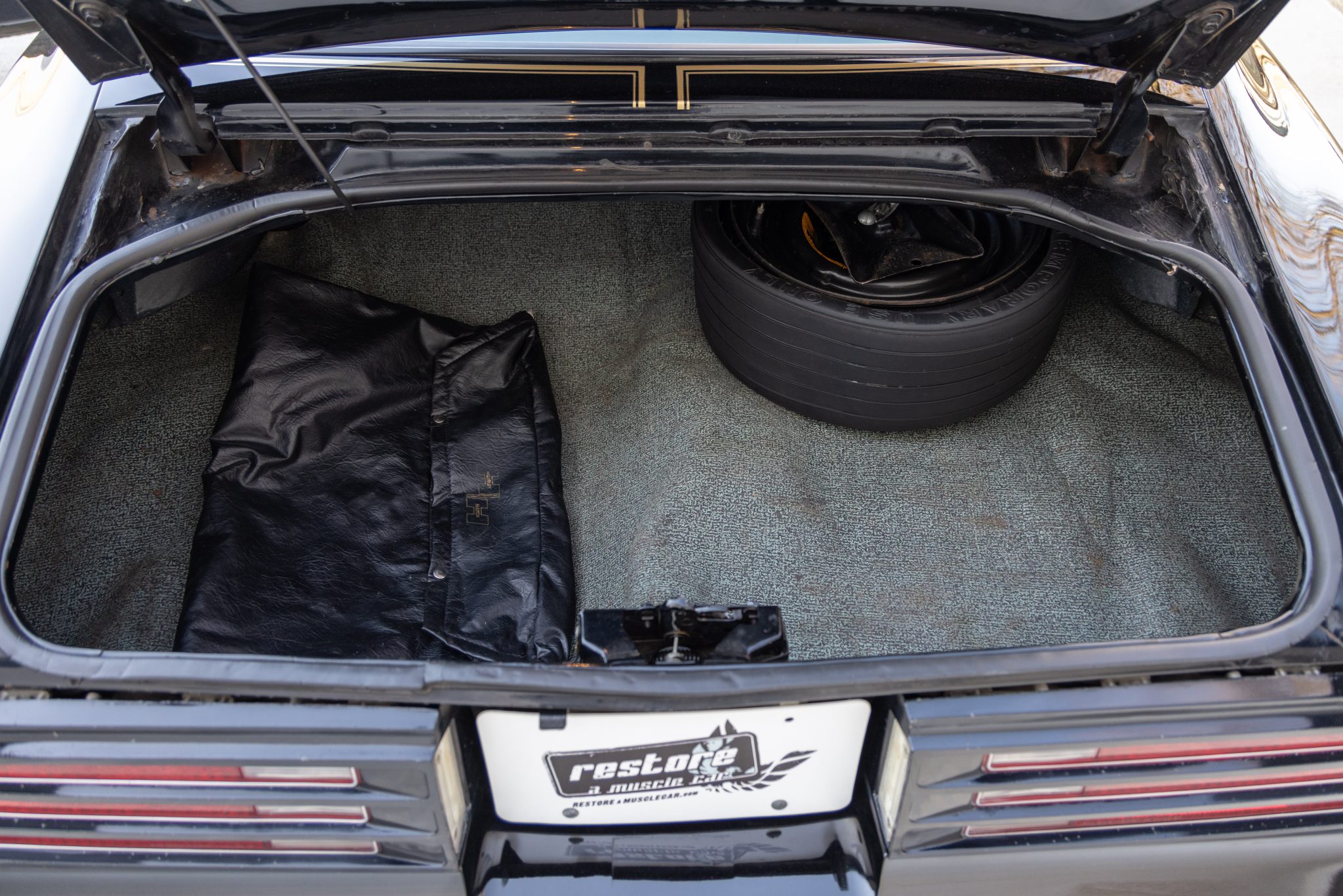 The car is finished in Starlight Black over black velour and is powered by a 400ci V8 linked with a four-speed manual transmission and a Safe-T-Track limited-slip differential. Equipment includes removable t-top roof panels, a shaker hood, 15″ gold-finished snowflake wheels, power steering, power windows, an 8-track tape player, and air conditioning. The engine and transmission were rebuilt in 2024, and work in preparation for the sale involved servicing the front brakes, replacing the tires, and dry-ice cleaning the underside.
