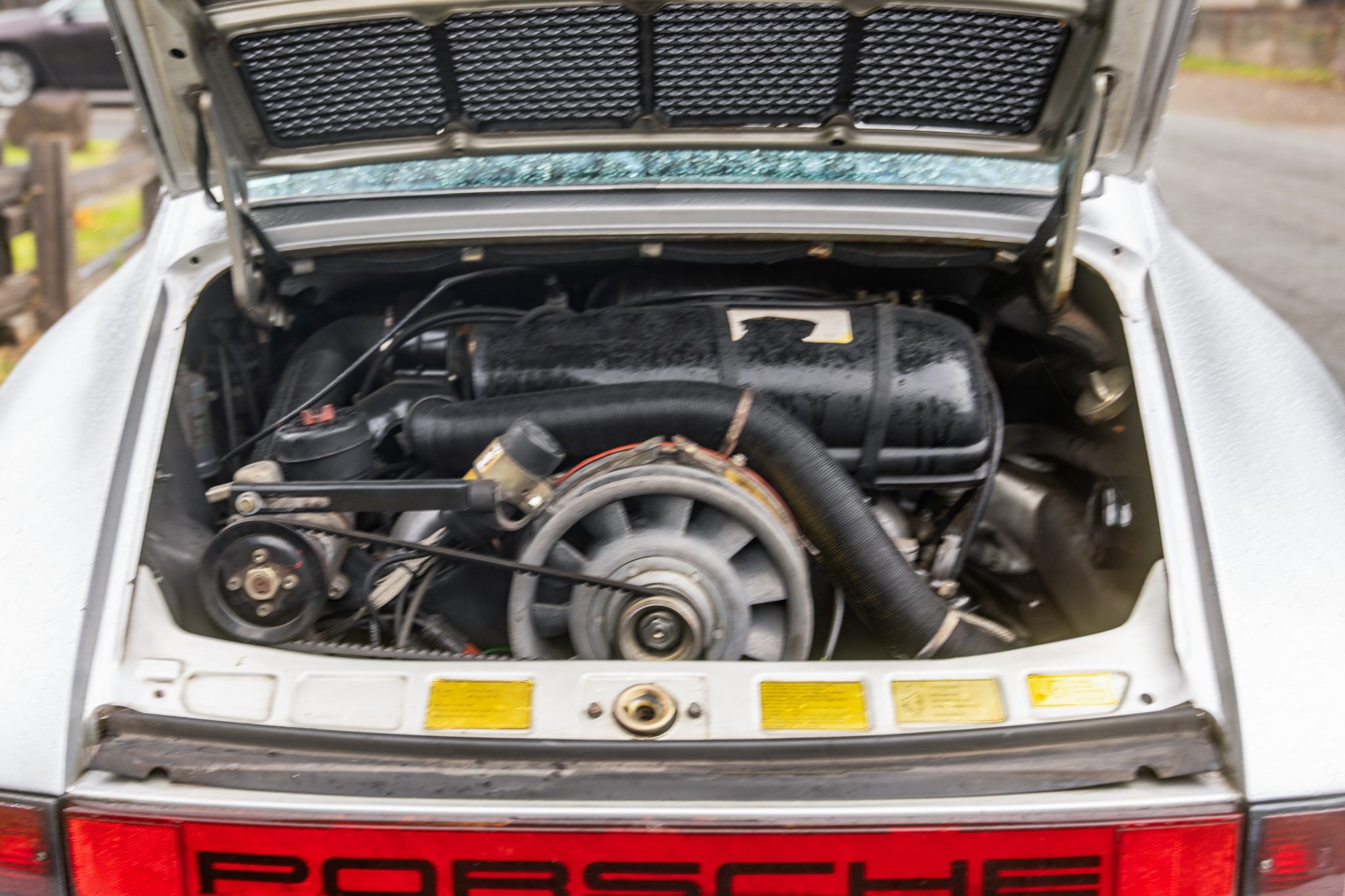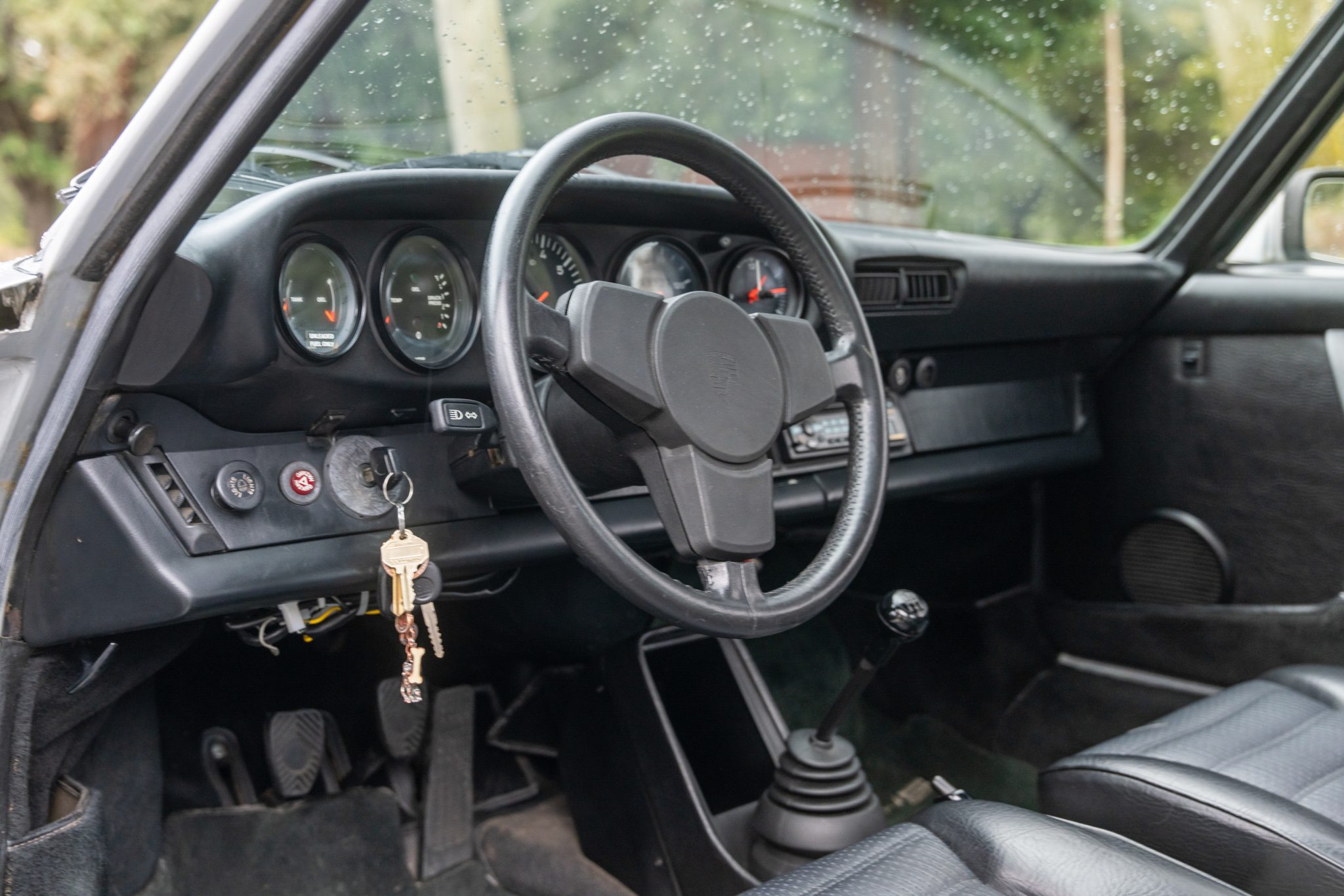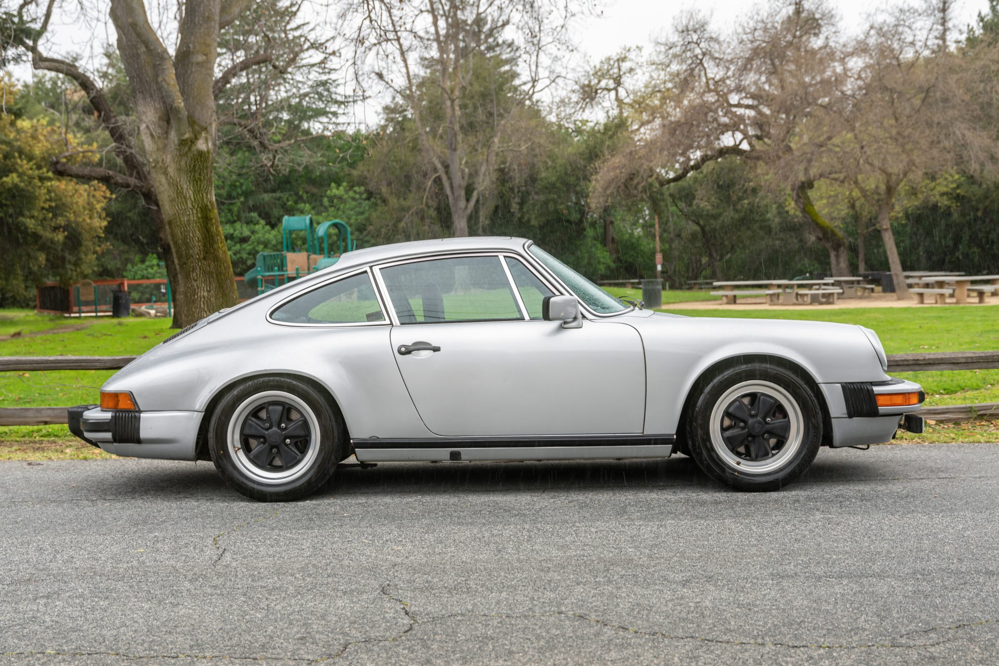 Now showing 129k miles, the car is finished in silver over black leather. Power is provided by a 3.0-liter flat-six paired with a five-speed manual transaxle, and equipment includes fog lights, heated side mirrors, replacement headlight assemblies, 16″ Fuchs alloy wheels, a leather-wrapped steering wheel, and an Alpine CD stereo.