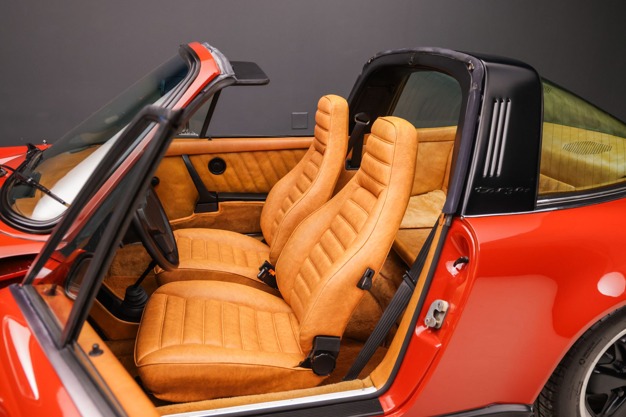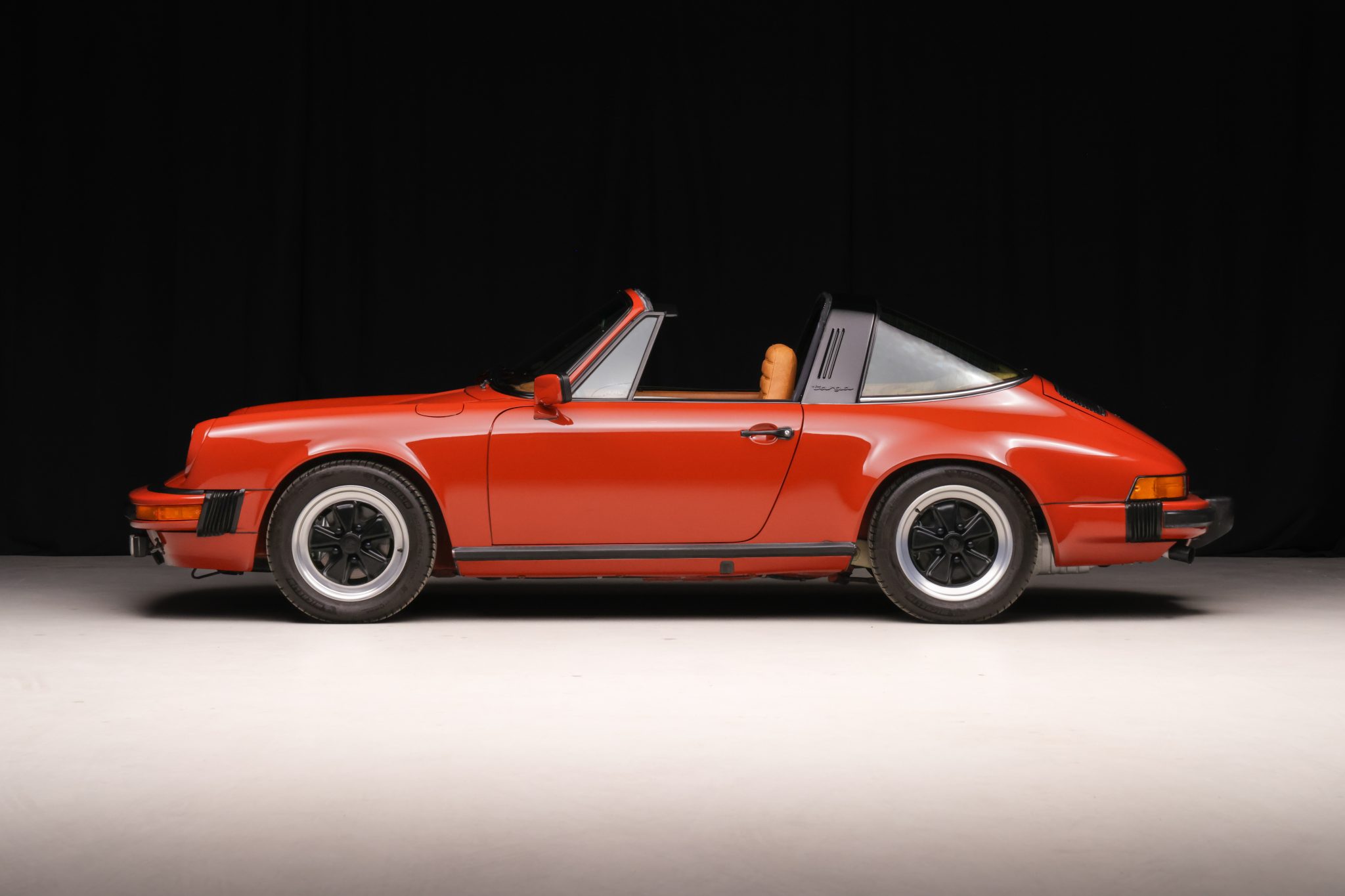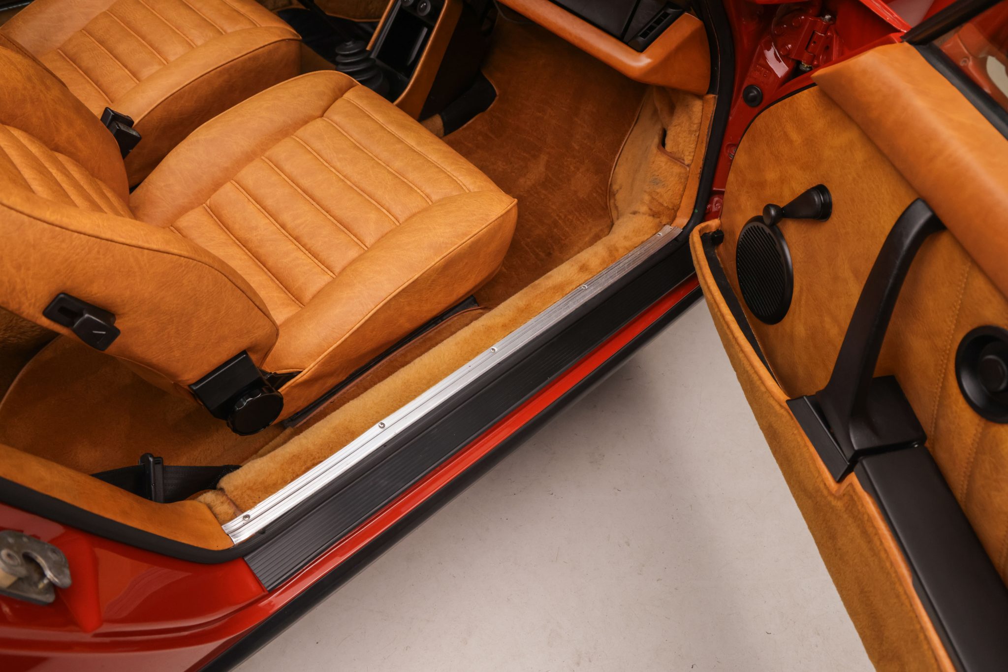 This 1978 Porsche 911SC Targa is finished in paint-to-sample Peru Red over Cork leatherette upholstery and is powered by a 3.0-liter flat-six paired with a five-speed manual transaxle. It features a removable roof panel, 16″ Fuchs wheels, fog lights, R134a-based air conditioning, and a cassette stereo. Subsequent work included installing replacement main bearings, resealing the engine, overhauling the brakes, performing lighting repairs, and replacing the exhaust, clutch disc, pressure plate, and several exterior and interior components